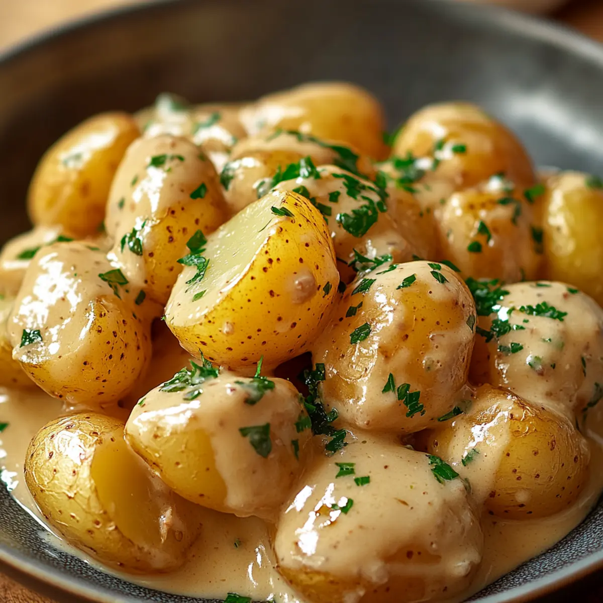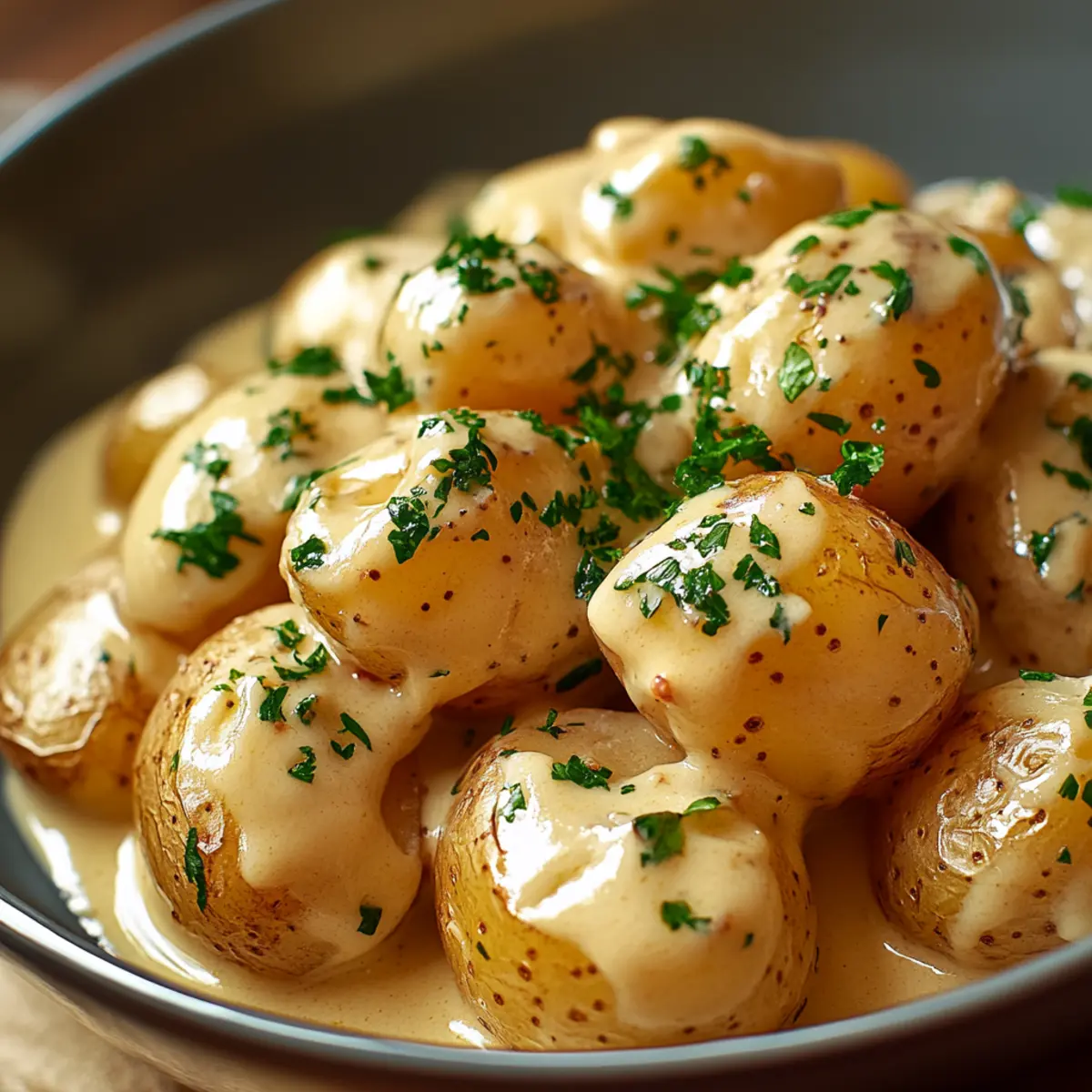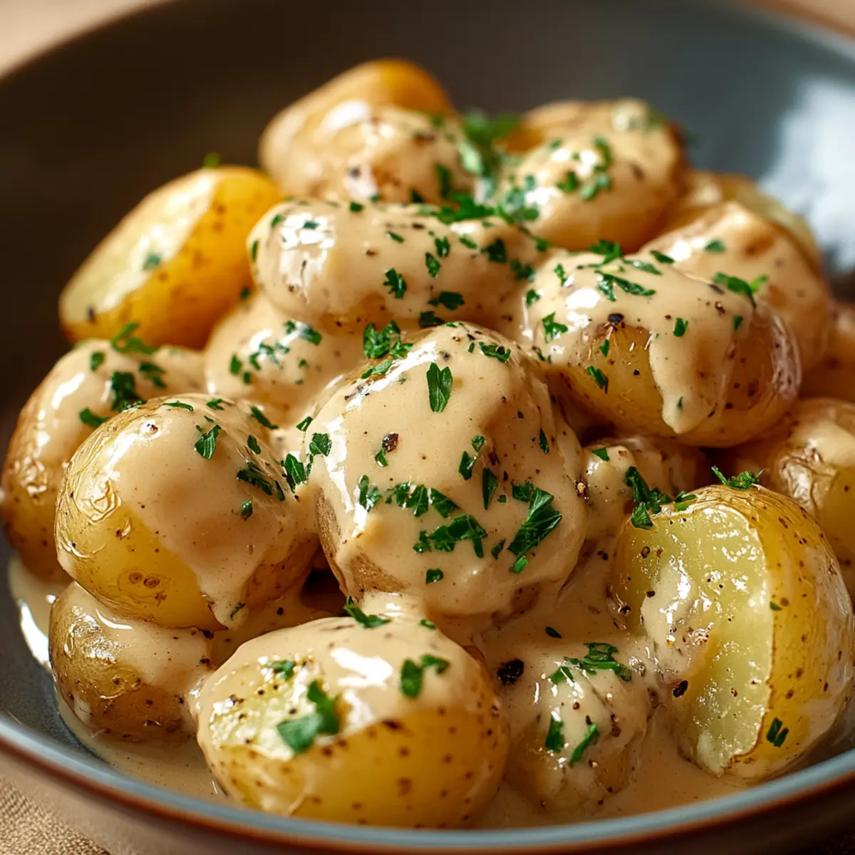 Comforting and Indulgent: These baby potatoes boast a rich, velvety garlic cream sauce that feels like a warm hug for your taste buds.