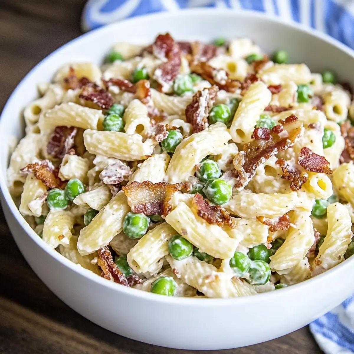 As I rummaged through my fridge, looking for something to elevate my next lunch, I stumbled upon a few staple ingredients that sparked a culinary idea: a creamy pasta salad. This isn’t just any ordinary side dish; my Creamy Pasta Salad with Peas and Bacon offers a delightful blend of textures and flavors, making it an instant classic for potlucks and barbecues. What makes it even better? It’s quick to whip up and fully customizable, so you can add whatever catches your eye—think fresh corn or juicy tomatoes. Picture this vibrant dish as your go-to crowd-pleaser that brings everyone together around the table, ready to make new memories. Ready to dive into the world of creamy goodness? Let’s get started!