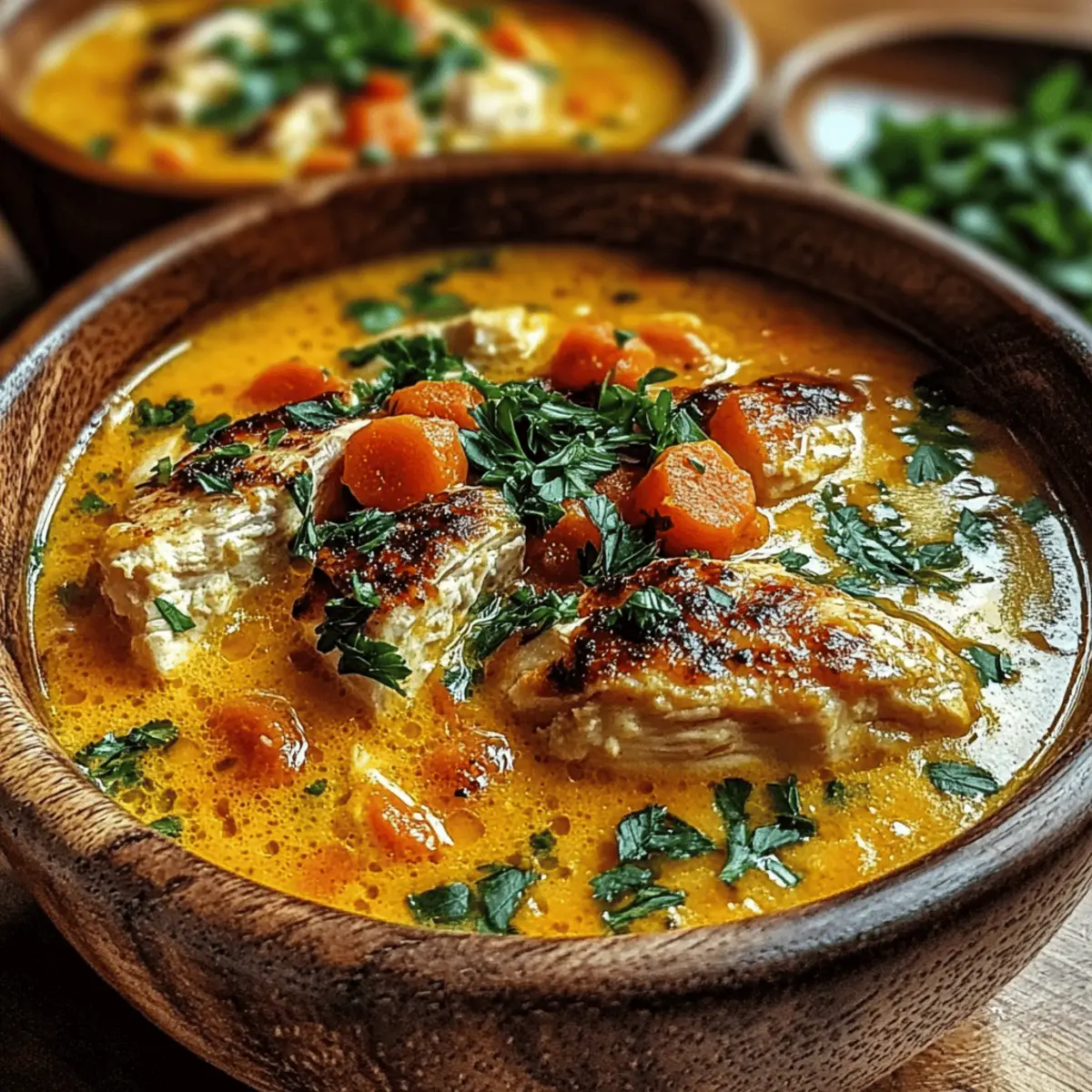 As the air turns crisp and leaves begin to fall, there’s a special comfort in a warm bowl of soup that wraps you in a cozy embrace. This Creamy Pumpkin Chicken Soup Delight perfectly captures the essence of autumn, blending nourishing chicken with the subtle sweetness of pumpkin for a dish that’s both heartwarming and nutritious. Not only is it a delightful treat for the taste buds, but it also boasts effortless preparation with the help of a crockpot, making it ideal for busy evenings. Plus, with options for a dairy-free twist, this comforting meal can cater to everyone’s cravings. Are you ready to savor the flavors of fall in your kitchen? Let’s dive into this delicious recipe that will surely become a seasonal staple! Why is this soup a must-try? Comforting Warmth: Imagine cozying up with a bowl of rich, silky soup that warms you from the inside out. Nutritious Goodness: Packed with vitamins and lean protein, this dish satisfies both hunger and health. Flexible Options: Whether you need a dairy-free alternative or want to add more greens, customization is a breeze. Effortless Slow Cooking: Just set it and forget it, making mealtime a stress-free experience. Enjoy with crusty bread or alongside a refreshing salad for a complete meal, just like with our delightful Chicken Noodle Soup or comforting One Pot Chicken. Dive into this fall favorite! Creamy Pumpkin Chicken Soup Ingredients For the Soup Base • Chicken Breasts – Lean protein source; tenderizes beautifully during cooking. • Pumpkin Puree – The star of the show, packed with vitamins A and C; use canned for ease. • Chicken Broth – Adds depth of flavor; opt for gluten-free options if needed. • Onion – A savory foundation; substitute with shallots for a milder flavor. • Garlic – Elevates the overall taste; fresh is best, but garlic powder works in a pinch. • Carrots – Brings natural sweetness and color; can be swapped with parsnips. • Celery – Adds a delightful crunch; feel free to omit if you prefer. For Seasoning • Cumin – Provides warming earthiness; smoked paprika can be a great alternative. • Cinnamon – Adds a touch of sweetness; nutmeg might also work in its place. • Nutmeg – Enhances the pumpkin flavor; use it sparingly for balance. • Salt and Pepper – Essential for seasoning; adjust to personal taste. For Creaminess • Heavy Cream – Creates that luxurious, creamy texture; coconut milk makes for a dairy-free substitute. • Cream Cheese – Adds a tangy richness; low-fat versions are an option for lighter fare. For Garnish • Fresh Parsley or Cilantro – Enhances fresh flavor and adds a pop of color to your bowl! Dive into this Creamy Pumpkin Chicken Soup experience and create a bowl of warmth that your family will love! Step‑by‑Step Instructions for Creamy Pumpkin Chicken Soup Delight Step 1: Prepare Ingredients Start by gathering all your ingredients for the Creamy Pumpkin Chicken Soup Delight. Chop the onion, carrots, and celery into small, even pieces, and mince the garlic. Next, season the chicken breasts with salt, pepper, cumin, cinnamon, and nutmeg, allowing the spices to infuse. Set up your crockpot on your kitchen counter, ready for layering the ingredients. Step 2: Layer Chicken Place the seasoned chicken breasts at the bottom of the crockpot, creating a sturdy foundation for your soup. This helps the chicken tenderize beautifully during cooking. Make sure to space them out so they cook evenly. The aroma of the spices will start to fill your kitchen, hinting at the delicious flavors to come. Step 3: Add Vegetables Evenly layer the diced onion, minced garlic, chopped carrots, and celery on top of the chicken. Each vegetable contributes to the richness of the soup, resulting in a harmonious blend of flavors. As you layer, visualize how the colors and textures will infuse into the Creamy Pumpkin Chicken Soup as it cooks down. Step 4: Incorporate Pumpkin Spoon the pumpkin puree over the vegetable layer, ensuring all the ingredients are covered for even cooking. The vibrant orange color will stand out, promising a touch of sweetness. By adding the puree now, it will blend beautifully with the other ingredients, creating a luscious base for your creamy soup. Step 5: Pour Broth Carefully pour in enough chicken broth to just cover the ingredients, ensuring everything cooks evenly. Using homemade broth will enhance the flavor, but store-bought will work just fine. The liquid will start to bubble, filling your kitchen with an enticing aroma, making you eager for the final dish. Step 6: Season Soup Sprinkle the remaining spices over the top of the mixture, and stir gently to combine. This allows the spices to distribute evenly throughout the Creamy Pumpkin Chicken Soup. Take a moment to appreciate the layered beauty in your crockpot, as each ingredient intertwines to create a delightful experience. Step 7: Cook Cover the crockpot and set it to cook on low for 6-8 hours or high for 3-4 hours. Allow the magic to happen as the ingredients meld together. The chicken should be tender and easily shredable. In the meantime, enjoy the comforting smells wafting throughout your home, reminiscent of cozy fall days. Step 8: Shred Chicken Once cooking time is up, carefully remove the chicken from the crockpot. Use two forks to shred the chicken into bite-sized pieces before returning it back to the pot. The shredded chicken will blend seamlessly into the Creamy Pumpkin Chicken Soup, enriching each spoonful with tender, savory chicken. Step 9: Add Creaminess Stir in the heavy cream and cream cheese, mixing until the soup is velvety and creamy. This addition transforms your soup into a rich delight that enhances the pumpkin’s natural sweetness. Watch as the color deepens, creating a soothing, inviting bowl that’s perfect for warming your soul. Step 10: Taste and Adjust Finally, taste your Creamy Pumpkin Chicken Soup Delight and adjust the seasoning with more salt or pepper as n