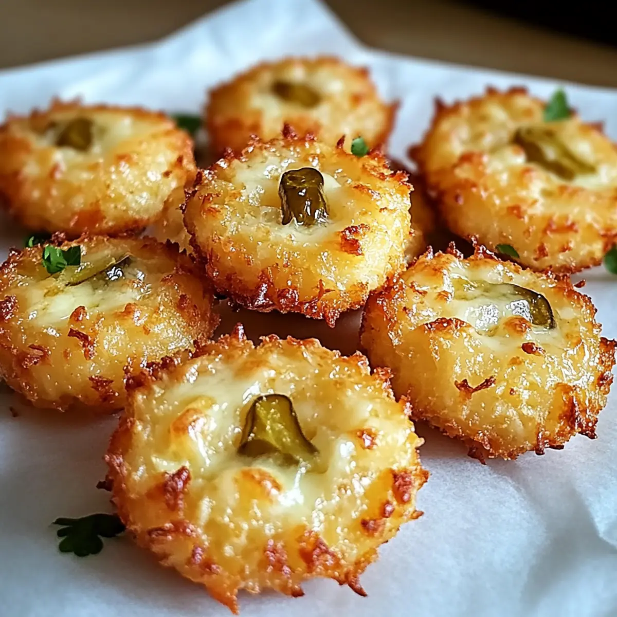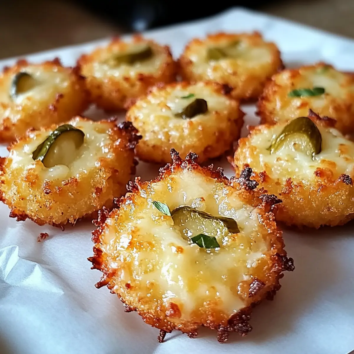 The satisfying crunch of something special always draws me in, especially when it’s a flavor-packed creation like Crispy Pickle Cheese Bites. Imagine gooey cheese surrounded by a crisp, golden shell and a delightful zing from dill pickles—it’s pure snack bliss! What I love most about this recipe, besides its mouthwatering flavor, is how quickly it comes together—just 20 minutes from start to finish. Whether you’re entertaining guests or sneaking a late-night treat, these bites are a crowd-pleaser made for all occasions. Plus, they’re versatile; you can easily customize them to suit spicy cravings or fresh herbal notes. Ready to dive into your new favorite snack? Let’s get started! Why Are Crispy Pickle Cheese Bites Amazing? Quick Prep Time: In just 20 minutes, you can whip up these delightful snacks that are sure to impress! Irresistible Flavor: The tangy dill pickles combined with gooey cheese create a bold, mouthwatering taste experience. Versatile Options: Customize your bites with spicy jalapeños or herby flavors based on your cravings. Crowd Favorite: Perfect for gatherings, these bites are a hit with both kids and adults. Gluten-Free Friendly: Easily adapt the recipe with gluten-free breadcrumbs to make everyone feel included. Snack time has never been this easy or delicious—whether paired with a zesty ranch dip or enjoyed straight from the oven, these Crispy Pickle Cheese Bites will never disappoint! Crispy Pickle Cheese Bites Ingredients • This collection includes everything you need to make the perfect Crispy Pickle Cheese Bites, including optional twists for flavor enhancement! For the Cheese Mixture Shredded Cheddar Cheese – Provides a rich, tangy flavor; substitute with Monterey Jack or pepper jack for a spicy kick. Shredded Mozzarella Cheese – Adds creaminess and stretch; alternatives include Provolone or Gouda for different textures. Chopped Dill Pickles – Offers tang and crunch; feel free to use bread-and-butter pickles or pickled jalapeños for a sweeter note. Garlic Powder – Enhances flavor immensely; for a twist, try adding onion powder for another aromatic boost. For the Crunchy Coating Breadcrumbs – Ensures extra crunchiness; use gluten-free breadcrumbs for a gluten-free version. Nonstick Spray – Helps in easy baking and cleanup, allowing those bites to crisp up beautifully. Parchment Paper – This makes lining the baking sheet a breeze and prevents sticking to the surface. These ingredients will set you on the path to creating mouthwatering Crispy Pickle Cheese Bites that will leave everyone asking for more! Step‑by‑Step Instructions for Crispy Pickle Cheese Bites Step 1: Preheat Oven Begin by preheating your oven to 375°F (190°C). While the oven warms, prepare a baking sheet by lining it with parchment paper or spraying it lightly with nonstick spray. This will ensure that your Crispy Pickle Cheese Bites come out perfectly golden without sticking, making your cleanup a breeze. Step 2: Mix Ingredients In a large mixing bowl, combine the shredded cheddar cheese, shredded mozzarella cheese, chopped dill pickles, and garlic powder. If desired, add breadcrumbs for an extra crunch. Stir the ingredients well until they form a cohesive mixture, ensuring that every piece of pickle and cheese is evenly distributed throughout the mix. Step 3: Shape Bites Using your hands, scoop out portions of the cheese mixture and form small balls, about the size of a golf ball, to create your Crispy Pickle Cheese Bites. Arrange them on the prepared baking sheet, leaving some space between each bite to allow for even baking. This spacing will help them achieve that fabulous crispy exterior. Step 4: Bake Place the baking sheet in the preheated oven and bake for 10 minutes. Keep an eye on the bites, looking for a beautiful golden brown color, which indicates they are perfectly crispy. The aroma of melted cheese will fill your kitchen, a tantalizing teaser of the delicious snacks to come. Step 5: Cool and Serve After 10 minutes, carefully remove the baking sheet from the oven and let the Crispy Pickle Cheese Bites cool for a few minutes on the tray. This cooling period is important, as it allows the cheese to firm up a bit, preventing burns from the hot melted cheese inside. Once slightly cooled, they’re ready to enjoy! Storage Tips for Crispy Pickle Cheese Bites Room Temperature: Keep the bites out for up to 1 hour to maintain their crispy texture for casual snacking. Refrigerator: Store your leftover Crispy Pickle Cheese Bites in an airtight container for up to 2 days to savor their flavor. Freezer: Freeze unbaked bites for up to 3 months; simply bake from frozen, adding a few extra minutes to ensure they heat through properly. Reheating: Reheat baked bites in the oven at 350°F (175°C) for about 5-7 minutes for that fresh-out-of-the-oven taste and crunch. Expert Tips for Crispy Pickle Cheese Bites • Fresh Cheese Matters: Using freshly shredded cheese enhances the melting and overall flavor of your Crispy Pickle Cheese Bites. • Dry Those Pickles: Blot chopped dill pickles with a paper towel to reduce moisture, ensuring a perfect crispy bite without sogginess. • Chill the Mixture: If the cheese mixture feels too sticky, chilling it for 10 minutes before shaping helps maintain the ideal texture. • Space Them Out: Leave enough room between each bite on the baking sheet, allowing hot air to circulate for even baking and crunchiness. • Cool Before Serving: Allowing the bites to cool slightly after baking firms up the cheese center, avoiding burns and enhancing the snacking experience. Make Ahead Options These Crispy Pickle Cheese Bites are perfect for meal prep enthusiasts looking to save time during busy weeknights! You can prepare the cheese mixture up to 24 hours in advance by combining the shredded cheddar, mozzarella, chopped dill pickles, and garlic powder in a bowl. Cover the mixture tightly and refrigerate until you’re ready to shape and