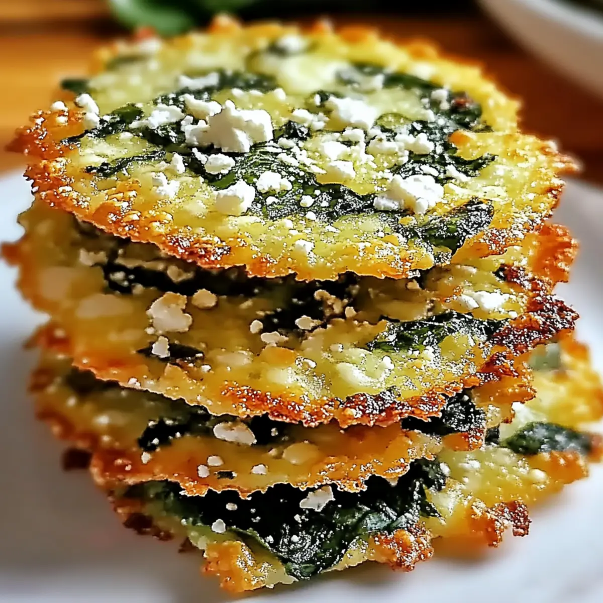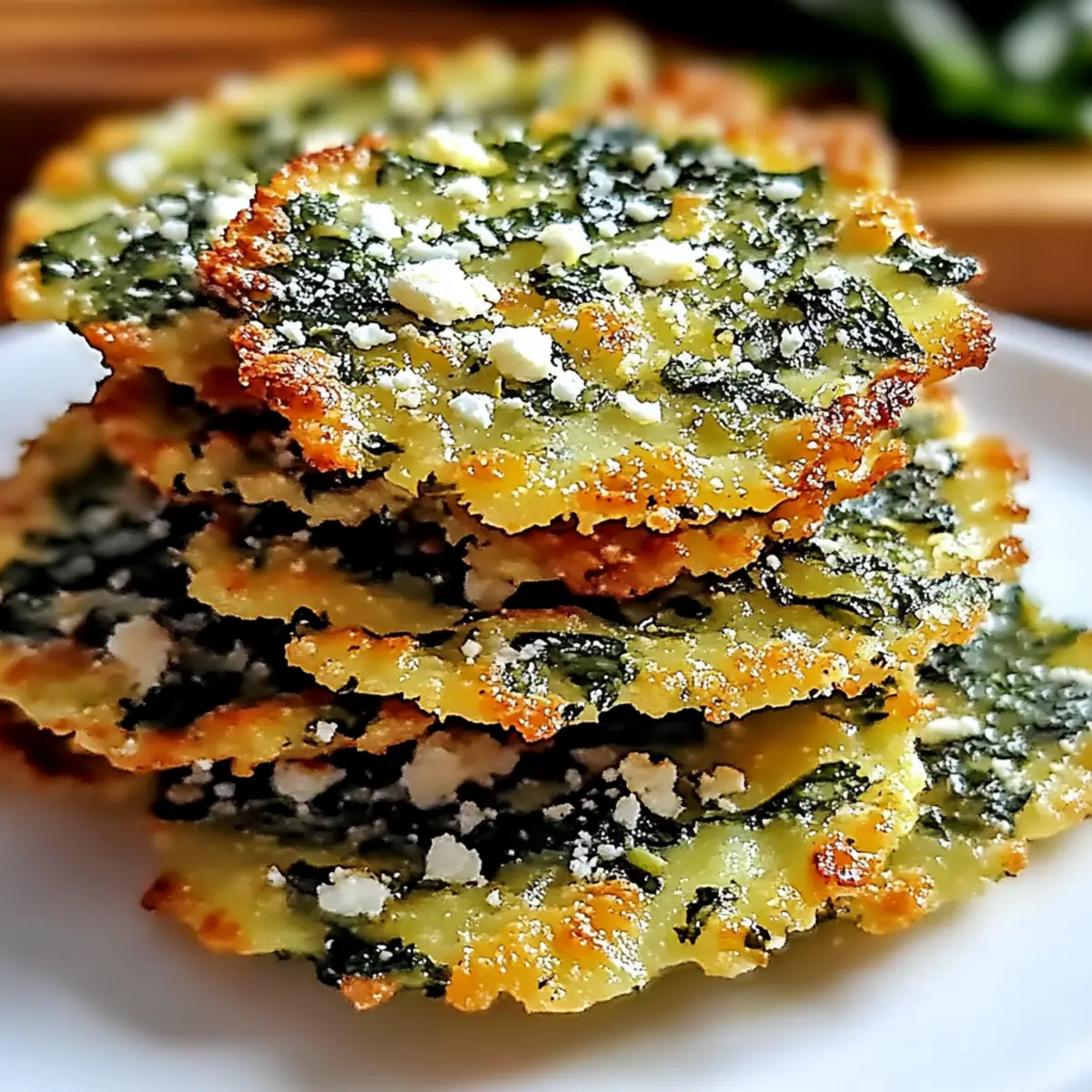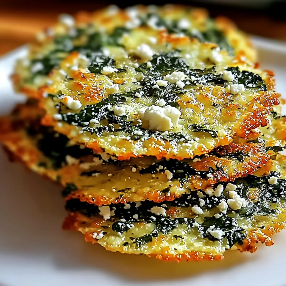 As I stood in my kitchen, the tantalizing scent of melting feta filled the air, whisking me away to sun-drenched Mediterranean markets. It was time to whip up my favorite snack: Crispy Spinach and Feta Crisps. Perfect for when the midday munchies hit or when friends drop by unexpectedly, these little bites embody simplicity and satisfaction. Not only are they incredibly quick to prepare—ready in under 30 minutes—but they’re also wonderfully customizable to fit your dietary needs. Whether you’re seeking a gluten-free alternative or wish to make them vegan with a flaxseed egg, the options are endless! Trust me, you won’t want to miss making these delightfully crunchy morsels. So, what twist will you put on your own batch? Why are Spinach and Feta Crisps a Must-Try? Irresistible Flavor: Each bite bursts with the creamy tang of feta and the vibrant, fresh taste of spinach, making these crisps a delightful treat. Quick and Easy: Whip up these crispy snacks in under 30 minutes—perfect for busy days! Customizable Options: Whether gluten-free or vegan, these crisps adapt easily to suit your dietary preferences, just like our Oven Baked Chicken Thighs. Great for Sharing: Serve them at gatherings or enjoy them solo; they please palates at any occasion! Healthy Indulgence: At about 150 calories each, they’re a guilt-free snack option loaded with vitamins A and C. Don’t miss out on making these flavorful treats a staple in your kitchen. Crispy Spinach and Feta Crisps Ingredients For the Filling Fresh Spinach – Essential for vibrant flavor and nutrients; fresh is ideal, but well-packed frozen spinach works too. Feta Cheese – Adds a creamy, tangy twist; you can opt for dairy-free feta for a vegan version. Eggs – Necessary for binding the ingredients; substitute with a flaxseed egg (1 tbsp ground flaxseed + 3 tbsp water) for a vegan alternative. All-Purpose Flour – Contributes to the crisps’ texture; use gluten-free flour if needed. Seasonings – Enhances the flavor profile (think salt, pepper, and maybe a dash of garlic powder); adjust to your personal taste. Optional Add-ins Sun-Dried Tomatoes – Add a burst of sweetness and texture; they pair wonderfully with the feta! Fresh Herbs – Basil or parsley can elevate the flavor profile, bringing freshness to the crisps. Red Pepper Flakes – Perfect for those who enjoy a spicy kick; a little goes a long way in the flavor department. These deliciously crispy Spinach and Feta Crisps are tantalizing snacks that not only fulfill cravings but also fit a variety of dietary needs. Enjoy their delightful crunch as a healthy indulgence! Step‑by‑Step Instructions for Crispy Spinach and Feta Crisps Step 1: Preheat the Oven Begin by preheating your oven to 375°F (190°C). While it heats, prepare a baking tray by lining it with parchment paper to ensure your Crispy Spinach and Feta Crisps don’t stick. This will create a non-stick surface for the crisps, allowing them to bake evenly and turn golden brown. Step 2: Prepare the Filling In a large mixing bowl, combine finely chopped fresh spinach, crumbled feta cheese, beaten eggs, flour, and your chosen seasonings. Mix them vigorously until all ingredients are well incorporated and form a cohesive mixture. Ensure the spinach is packed tightly to maximize flavor and moisture, creating the perfect filling for your crispy bites. Step 3: Portion the Mixture Using a tablespoon, scoop out portions of the mixture and place them onto the prepared baking tray, ensuring there is enough space between each mound. This spacing allows your Crispy Spinach and Feta Crisps to spread while baking, yielding a delightfully crispy edge. Aim for about 2 inches apart to give them room to expand. Step 4: Bake the Crisps Slide the baking tray into your preheated oven and set a timer for 15 to 20 minutes. Bake until the crisps are golden brown, with a tantalizing aroma wafting through your kitchen. Keep an eye on them, as the baking time can vary slightly depending on your oven and the size of the portions. Step 5: Cool and Serve Once the Crispy Spinach and Feta Crisps are perfectly baked, remove the tray from the oven and allow them to cool for a few minutes. This cooling period helps the crisps firm up, enhancing their texture. Serve them warm, or at room temperature, and feel free to pair them with your favorite dips for a flavorful snack experience. Make Ahead Options These Crispy Spinach and Feta Crisps are perfect for busy weeknights or last-minute gatherings! You can prepare the filling up to 24 hours in advance; simply mix all the ingredients and store them in an airtight container in the refrigerator. This not only saves you time but also allows the flavors to meld beautifully. On the day you plan to serve, just scoop the mixture onto a lined baking tray and bake as directed for 15-20 minutes until golden and crispy. If you want to prep even further, you can portion the uncooked crisps and freeze them for up to 3 months; just add a couple of extra minutes to the baking time when cooking from frozen. Enjoy these delicious treats with minimal effort by prepping ahead! What to Serve with Crispy Spinach and Feta Crisps Elevate your snack game by pairing these delightful morsels with complementary sides that enhance their flavors. Creamy Yogurt Dip: A cool, tangy yogurt dip provides a refreshing contrast and adds a creamy texture that perfectly balances the crispy bites. Crunchy Side Salad: A simple mixed green salad with a zesty vinaigrette adds freshness and crunch, creating a light and vibrant meal. Toss in some cherry tomatoes and cucumber for extra flair! Hummus Variety Platter: The nutty flavors of hummus (whether classic, roasted red pepper, or garlic) enhance the savory notes in the crisps, making each bite irresistible. Herbed Quinoa Salad: A light quinoa salad topped with fresh herbs and lemon juice adds a nutritious element, delivering a burst of flavor and texture that complements the crispiness