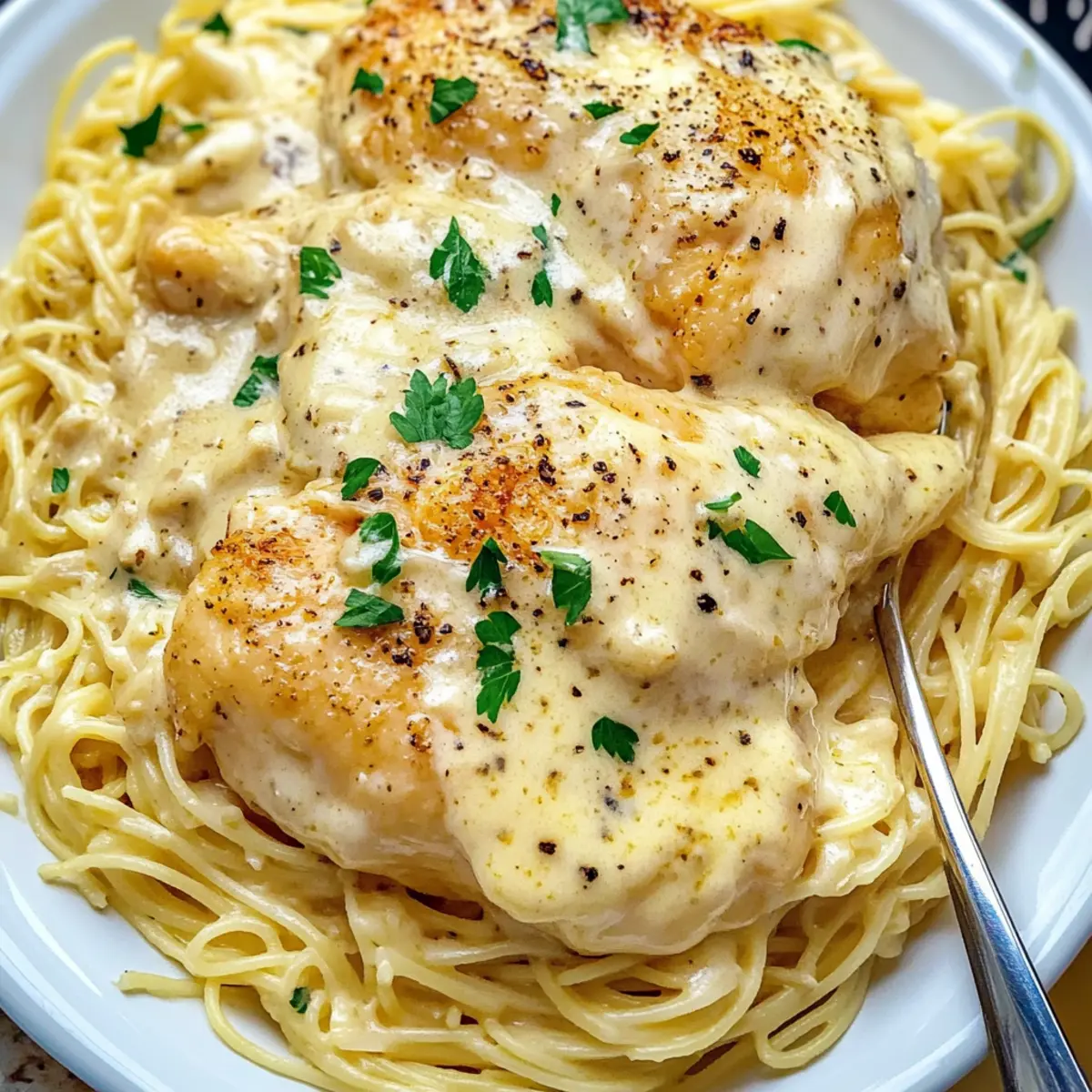 If you’ve ever faced the conundrum of dinner prep during a whirlwind week, you’ll love my go-to solution: Crock Pot Angel Chicken. This family-friendly dish is the epitome of creamy Italian comfort food, where tender chicken simmers in a luscious sauce that melds beautifully with fluffy pasta or rice. With minimal effort, the slow cooker transforms simple ingredients into a rich and satisfying meal that rivals any restaurant’s. Not only is it a breeze to prepare, but the comforting aroma will fill your home, making it impossible for anyone to resist gathering around the dinner table. So, are you ready to make your weeknight dinners deliciously effortless? Why is Crock Pot Angel Chicken a must-try? Simplicity at Its Best: The magic of this dish lies in its easy preparation… Family-Friendly Appeal: Everyone loves a creamy pasta dish, and this one is sure to please even the pickiest eaters! Flavor Explosion: The blend of cream cheese and garlic makes for a rich sauce that clings deliciously to each bite. Versatile Serving Options: From fluffy angel hair to rice or even mashed potatoes, you can easily customize how you enjoy it. Time-Saving Solution: Let your slow cooker do the heavy lifting while you focus on other tasks, ensuring dinner is hassle-free. Making Crock Pot Angel Chicken is a delightful alternative to monotonous fast food dinners, and you can easily pair it with a fresh salad or some garlic bread for a complete meal experience! Crock Pot Angel Chicken Ingredients For the Chicken • Boneless, Skinless Chicken Breasts (1.5 pounds) – The heart of this dish, soaking up the creamy flavors as it cooks. For the Sauce • Cream Cheese (4 ounces) – Adds the dreamy creaminess that makes this sauce so irresistible; consider substituting with dairy-free options if needed. • Unsalted Butter (3 tablespoons) – Infuses the sauce with richness; use olive oil for a lighter twist. • Cream of Chicken Soup (10.5 ounces) – Acts as the creamy base; opt for low-sodium if watching salt intake. • Garlic (3 cloves, minced) – Elevates the flavor profile; garlic powder can stand in if you’re short on fresh. • Chicken Broth (¾ cup) – Enhances flavor depth; homemade or low-sodium versions are ideal for healthier cooking. • Good Seasons Dry Italian Salad Dressing Mix (1 packet, 0.7 ounces) – Imparts a delightful Italian herb blend; make your own mix for a homemade touch. For Cooking • Vegetable Oil – Use to sear the chicken for enhanced flavor and moisture; olive oil is a perfect substitute. For Serving • Angel Hair Pasta (16 ounces) – The ideal base for this creamy dish; swap for any pasta type, including gluten-free options. • Fresh Parsley, Cracked Pepper, and/or Grated Parmesan Cheese (optional) – These garnishes add a touch of flavor and presentation to your Crock Pot Angel Chicken. This comforting dish is the answer to your weeknight dinner dilemmas, offering simplicity and deliciousness in every bite! Step‑by‑Step Instructions for Crock Pot Angel Chicken Step 1: Sear the Chicken Heat a cast iron skillet over medium-high heat, adding a drizzle of vegetable oil. Season both sides of the boneless, skinless chicken breasts generously with salt and pepper. Sear the chicken for 2-3 minutes on each side, until they develop a golden-brown crust. This step enhances the flavor of your Crock Pot Angel Chicken and seals in the juices. Once done, remove the chicken from the skillet. Step 2: Prepare the Sauce In a medium bowl, combine the softened cream cheese, unsalted butter, cream of chicken soup, minced garlic, chicken broth, and Good Seasons Dry Italian Salad Dressing Mix. Whisk these ingredients together until smooth and creamy, ensuring there are no lumps. This luscious sauce will create the rich flavor profile in your Crock Pot Angel Chicken. Step 3: Assemble in the Crock Pot Lightly spray the inside of your crock pot with non-stick cooking spray to prevent sticking. Place the seared chicken breasts in the bottom of the crock pot, ensuring they lay flat. Pour the creamy sauce mixture over the chicken, making sure to coat each piece well. This creates the perfect foundation for your flavorful dish as it cooks slowly. Step 4: Cook to Perfection Cover the crock pot with its lid, then set it to cook on low for 3-4 hours. This gentle cooking method allows the chicken to become tender, absorbing the flavors of the sauce. Use a meat thermometer to check for doneness; the internal temperature should reach 165°F. For extra tenderness, feel free to let it cook a bit longer. Step 5: Cook the Pasta Shortly before you’re ready to serve your Crock Pot Angel Chicken, bring a large pot of salted water to a boil. Add the angel hair pasta and cook according to the package instructions, typically 4-5 minutes for al dente. Once cooked, drain the pasta in a colander, then set aside. This will serve as the perfect base for your creamy chicken dish. Step 6: Serve and Garnish Once the chicken is fully cooked and tender, you can serve it whole or shredded over the prepared pasta. Ladle the creamy sauce generously over the top, coating the pasta beautifully. For an added touch, garnish with fresh parsley, cracked pepper, or grated Parmesan cheese, if desired. Your Crock Pot Angel Chicken is now ready to enjoy! Make Ahead Options Crock Pot Angel Chicken is ideal for meal prep enthusiasts! You can prepare the creamy sauce (step 2) up to 24 hours in advance by whisking together the softened cream cheese, butter, cream of chicken soup, minced garlic, chicken broth, and Italian dressing mix. Simply refrigerate it in an airtight container. If you’re short on time, you can also sear the chicken (step 1) ahead and keep it in the fridge for up to 3 days. When you’re ready to serve, just combine the seared chicken and sauce in the crock pot (step 3), then cook on low for 3-4 hours until tender. This approach saves time while ensuring your Crock Pot Angel Chicken remains just as delicio