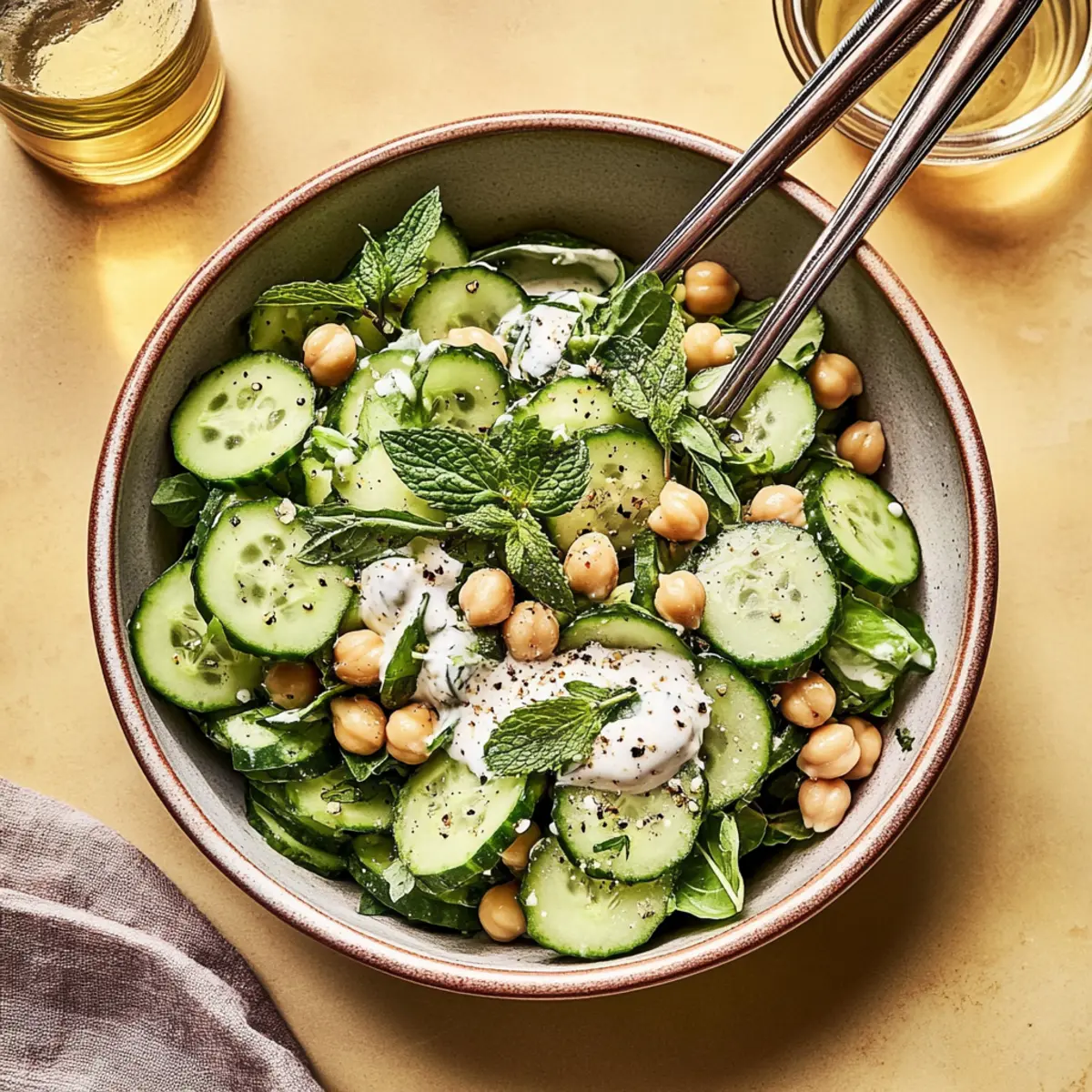 On a sweltering summer afternoon, who hasn’t craved something cool, crisp, and utterly refreshing? My creamy cucumber salad with chickpeas is the perfect answer to beat the heat while delighting your taste buds. Combining tender cucumbers with protein-packed chickpeas and vibrant herbs like mint and dill, this dish offers a nutritious side that pairs perfectly with grilled meats or shines as a standalone meal. Not only is it quick and easy to whip up, but it bursts with fresh flavors that elevate your palate. Whether you’re hosting a barbecue or simply enjoying a quiet dinner at home, this salad is bound to impress. Curious about how to make this delightful dish that everyone will love? Let’s dive in and savor the freshness! Why is this cucumber salad a must-try? Freshness in every bite: Our creamy cucumber salad is loaded with crisp, tender cucumbers that provide the perfect crunch. Protein-packed goodness: Featuring chickpeas, this salad is not just refreshing but also high in protein, making it a nutritious choice. Versatile and adaptable: Whether served alongside grilled meats or enjoyed as a light meal, this salad fits perfectly into any dining occasion, just like our Pesto Pasta Salad. Simple preparation: With just a few ingredients and quick steps, you can have a stunning dish ready in no time. Herbaceous flavors: The fresh mint and dill add delightful notes that elevate this salad from ordinary to extraordinary—perfect for impressing guests or indulging on a hot day! Dive into this vibrant salad and savor the healthy and creamy explosion of flavors! Cucumber Salad Ingredients For the Dressing Greek Yogurt – Provides creaminess and a tangy flavor; use full-fat yogurt for the best results. Extra-Virgin Olive Oil – Adds richness and depth with a citrusy note; opt for high-quality oil to enhance the dish. Fresh Lemon Juice – Brightens flavors and adds acidity; fresh juice is preferable for optimal taste. Garlic – Offers a robust flavor kick, minced for even distribution. Fresh Mint – Imparts a refreshing taste; can be swapped with basil if mint is not available. Kosher Salt and Black Pepper – Enhances overall flavor; adjust to taste. Za’atar – A unique spice blend that adds complexity; substitute with dried oregano if not available. For the Salad English Cucumber – Preferred for its crispness and minimal seeds; ideal for salads. Chickpeas – Adds texture and protein; canned for convenience, rinsed and drained. Red Onion – Provides a mild onion flavor; thinly sliced for the best texture. Flat-Leaf Parsley – Fresh herb that adds a touch of earthiness; can substitute with cilantro. Fresh Dill – Contributes a distinct flavor profile; fresh is recommended over dried. Savor the freshness of this Cucumber Salad, and enjoy a healthy and creamy dish that’s bound to become a favorite! Step‑by‑Step Instructions for Cucumber Salad Step 1: Make the Dressing In a small bowl, combine 1 cup of Greek yogurt, 2 tablespoons of extra-virgin olive oil, and the juice of half a lemon. Add 2 minced garlic cloves, 2 tablespoons of chopped fresh mint, and a pinch of kosher salt and black pepper. Stir in 1 teaspoon of za’atar until thoroughly blended. The dressing should be creamy and well-combined, offering a rich, tangy scent that will elevate your cucumber salad. Step 2: Prepare the Salad In a large mixing bowl, slice 2 English cucumbers thinly and add them to the bowl. Next, incorporate 1 can of drained and rinsed chickpeas, ½ of a thinly sliced red onion, and 2 tablespoons of chopped flat-leaf parsley. Then, toss in 2 tablespoons of chopped fresh dill and a few extra mint leaves. The combination of textures should be vibrant, with the crunch of cucumbers complemented by the creaminess of the chickpeas. Step 3: Combine Drizzle the prepared dressing over the salad ingredients in the large bowl. Using tongs or a large spoon, gently toss everything together until all the vegetables are thoroughly coated with the creamy dressing. Aim for an even distribution so that every bite of your cucumber salad bursts with flavor and freshness. You should see the colorful ingredients glisten with the dressing. Step 4: Serve For the best experience, refrigerate the cucumber salad for about 15-30 minutes before serving, allowing the flavors to mingle and the salad to chill. When ready to serve, transfer it to a beautiful serving bowl or plate. Your refreshing creamy cucumber salad with chickpeas is now ready, showing off a vibrant mix of colors and textures, ideal for any gathering or a cozy meal at home. Cucumber Salad Variations & Substitutions Customize your creamy cucumber salad to create delightful new flavors and textures that will excite your taste buds! Veggie-Loaded: Add bell peppers or cherry tomatoes for extra crunch and color. This mix brings a wonderful burst of freshness to each bite. Herb Swap: Use basil or cilantro instead of mint for a different aromatic profile. Each herb transforms the salad’s essence into something uniquely flavorful. Dairy-Free Delight: Swap Greek yogurt with a creamy plant-based yogurt for a vegan-friendly option without sacrificing texture. Your salad will still feel indulgent and light! Nutty Crunch: Sprinkle toasted walnuts or almonds for an unexpected crunch and rich flavor. These additions bring a delightful contrast and depth to your dish. Zesty Twist: Drizzle balsamic vinegar or a splash of apple cider vinegar for an extra zing that brightens the overall flavor. A little acidity transforms this salad into a culinary adventure. Spicy Kick: Incorporate diced jalapeños or crushed red pepper flakes for heat. Just a pinch will elevate your cucumber salad to tantalizing new heights. Protein Boost: Replace chickpeas with cooked and seasoned quinoa or even grilled chicken for a heartier meal. These swaps not only add protein but also create a fulfilling dish. Explore the versatility of this cucumber salad; it’s just as delightful as our Chi