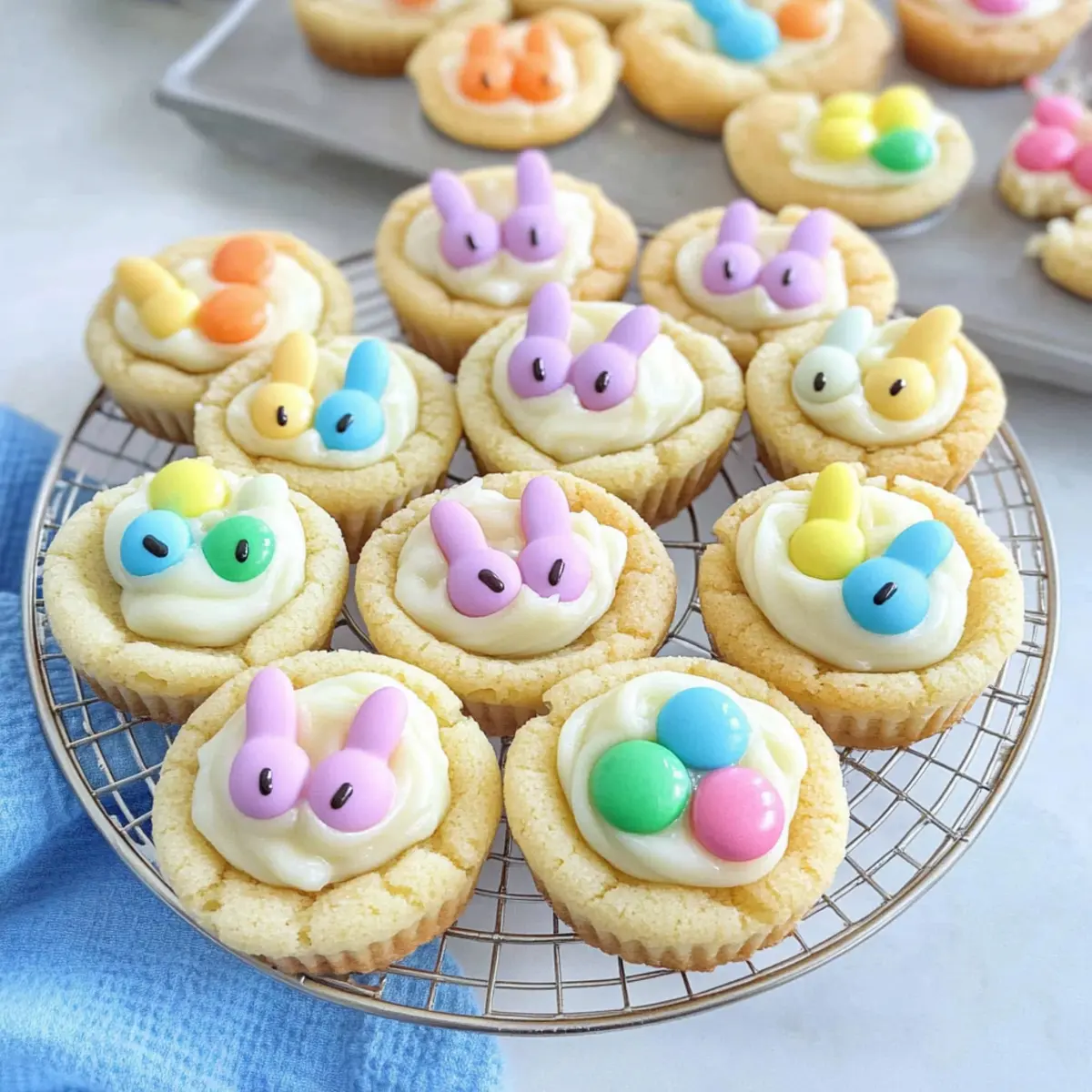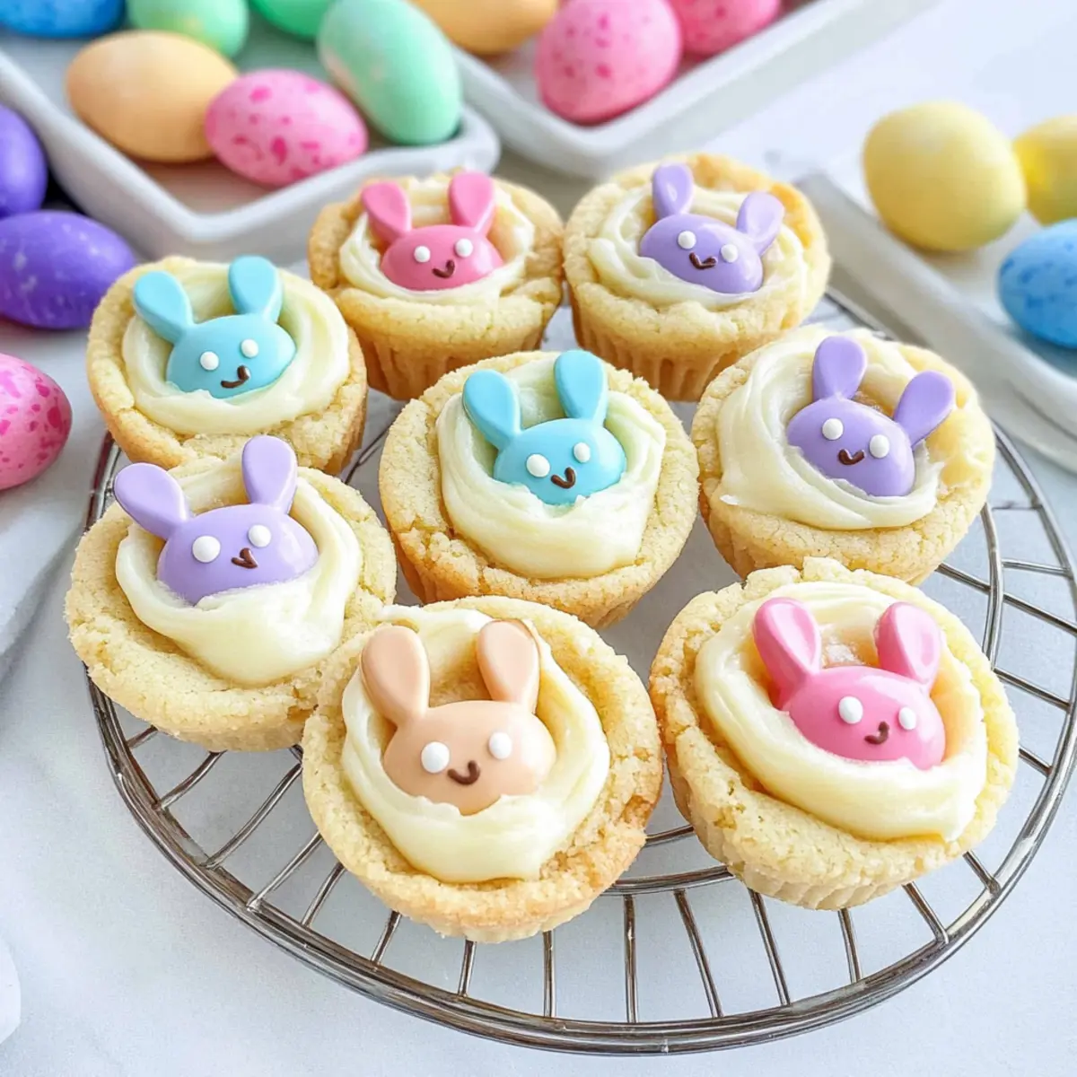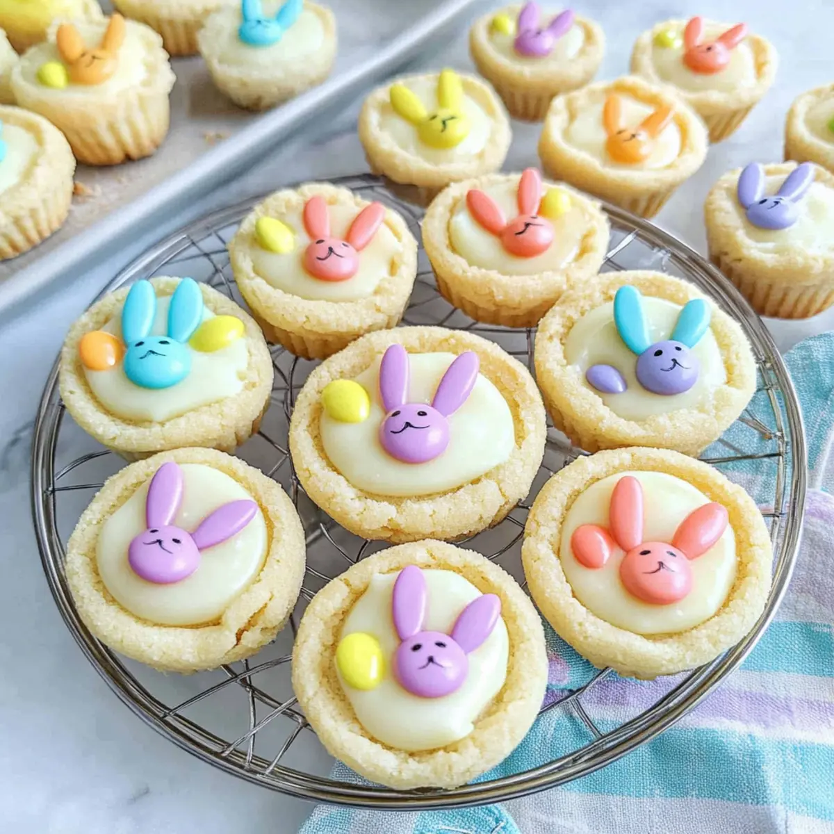 The scent of buttery cookies wafting through the air can instantly transport me back to cherished childhood memories, where sweet treats were the highlight of every holiday gathering. This Easter, I’m excited to share my recipe for Easter Bunny Sugar Cookie Cups—a playful twist on classic cookies that bring a smile to both kids and adults alike. Not only are these delightful cookie cups easy to whip up, being crafted from a simple cake mix, but they also showcase a creamy white chocolate ganache that feels indulgent yet fun. With the added joy of decorating them like little bunnies, they’re perfect for sprucing up your Easter celebrations. Curious about how to make these adorable treats? Let’s hop into the details! Why Are These Cookie Cups So Special? Adorable Decoration: The fun M&M bunny designs turn simple cookie cups into festive masterpieces that will delight family and guests alike. Effortless Preparation: With a base made from cake mix, these cookies come together in no time—perfect for those busy holiday moments. Rich, Creamy Ganache: The luscious white chocolate filling takes the flavor to a whole new level, turning an ordinary cookie into a decadent dessert! Versatile Flavors: Feel free to switch up the cake mix flavor—chocolate, funfetti, or strawberry—for a delightful surprise in every batch. Perfect for Sharing: Their bite-sized nature makes these cookie cups an attractive treat for gatherings, ensuring everyone gets in on the fun. Eager to explore more delightful treats? Check out these Biscoff Cookie Cheesecake or Banana Oatmeal Cookies for additional inspiration! Easter Bunny Sugar Cookie Cups Ingredients • Get ready to hop into a world of flavor! For the Cookie Cups White or Yellow Cake Mix (13.25 oz.): The base provides a sweet and fluffy foundation; feel free to explore different flavors like chocolate or funfetti. All-Purpose Flour (¼ cup): Ensures a better structure for your cookies; adjust if you choose a richer cake mix. Unsalted Butter (8 tbsp, melted and cooled): Adds moisture and richness; you can swap it with margarine, but it may slightly change the flavor. Large Egg (1): Serves as a binder to keep your cookie cups intact; don’t substitute, as it’s essential for the recipe. Large Egg Yolk (1): Boosts the richness of the cookie; omitting it could affect texture, but if needed, two egg whites can be a substitute. Pure Vanilla Extract (2 tsp): Enhances the overall flavor; almond extract can be a delightful alternative for a twist. Granulated Sugar (¼ cup, for rolling): Coats the cookie balls for a sweet crunch; optional but highly recommended for added texture. For the Ganache Filling White Chocolate Chips (1 cup): Essential for creating a rich and creamy ganache; milk or dark chocolate can work as a substitute if preferred. Heavy Cream (¼ cup): Gives the ganache its luxurious creaminess; coconut cream is a great dairy-free alternative. For Decoration M&M’s (58 total, approximately 2 per cookie cup): Adds that cute bunny face touch; choose seasonal colors to make your treats even more festive! With these ingredients ready, you’re all set to create Easter Bunny Sugar Cookie Cups that will delight and impress! Step‑by‑Step Instructions for Easter Bunny Sugar Cookie Cups Step 1: Preheat & Prepare Begin by preheating your oven to 325°F (163°C) to ensure optimal baking. While the oven heats, take a mini muffin tin and spray it generously with cooking spray to prevent sticking. Set it aside, as you’ll need it for your adorable Easter Bunny Sugar Cookie Cups. Step 2: Mix Dough In a large mixing bowl, combine the white or yellow cake mix with the all-purpose flour, whisking them together to remove any lumps. Next, add in the melted butter, one whole egg, an egg yolk, and the pure vanilla extract. Mix until a soft dough forms, making sure all ingredients are well incorporated. Step 3: Shape & Bake Scoop out tablespoon-sized balls of dough and roll them in granulated sugar for added sweetness. Place them into the prepared mini muffin tin, spacing them out evenly. Bake in the preheated oven for about 14 minutes, or until they are puffy but not golden brown. Keep an eye on them for perfect doneness! Step 4: Form Cups Remove the muffin tin from the oven once your cookie cups are puffy. Quickly press an indent in the center of each warm cookie using a utensil, creating the cup shape for your ganache. Allow the cookie cups to cool in the pan for 5-10 minutes before carefully transferring them to a wire rack to cool completely. Step 5: Prepare Ganache In a microwave-safe bowl, combine the white chocolate chips and heavy cream. Heat the mixture in the microwave in 30-second intervals, stirring well after each interval, until smooth and creamy. This luscious ganache will be the delectable filling for your Easter Bunny Sugar Cookie Cups. Step 6: Decorate Once the cookie cups have cooled, fill each one generously with the creamy ganache. Top each filled cookie with an M&M, positioning them to resemble bunny faces. For adorable ears, slice another M&M in half and place the halves alongside the whole M&M to complete the look. Step 7: Set & Store Allow the ganache to set for about 1-2 hours at room temperature, letting the flavors meld beautifully. Store your delightful Easter Bunny Sugar Cookie Cups in an airtight container at room temperature for up to 2 days, or refrigerate them for longer freshness. Enjoy these charming treats with family and friends! Make Ahead Options These Easter Bunny Sugar Cookie Cups are a game changer for busy home cooks looking to simplify their holiday baking! You can prepare the cookie dough up to 24 hours in advance by mixing all ingredients and chilling the dough in the fridge to make it easier to handle. Additionally, you can make the ganache filling and store it in an airtight container in the refrigerator for up to 3 days. When you’re ready to complete your adorable cookie cups, simply scoop and bake the prepared