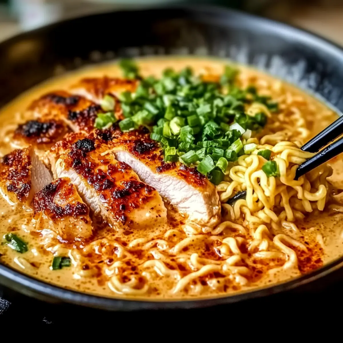 Comforting Textures: The smooth, creamy sauce wraps around tender chicken and soft ramen, ensuring a satisfying bite every time.