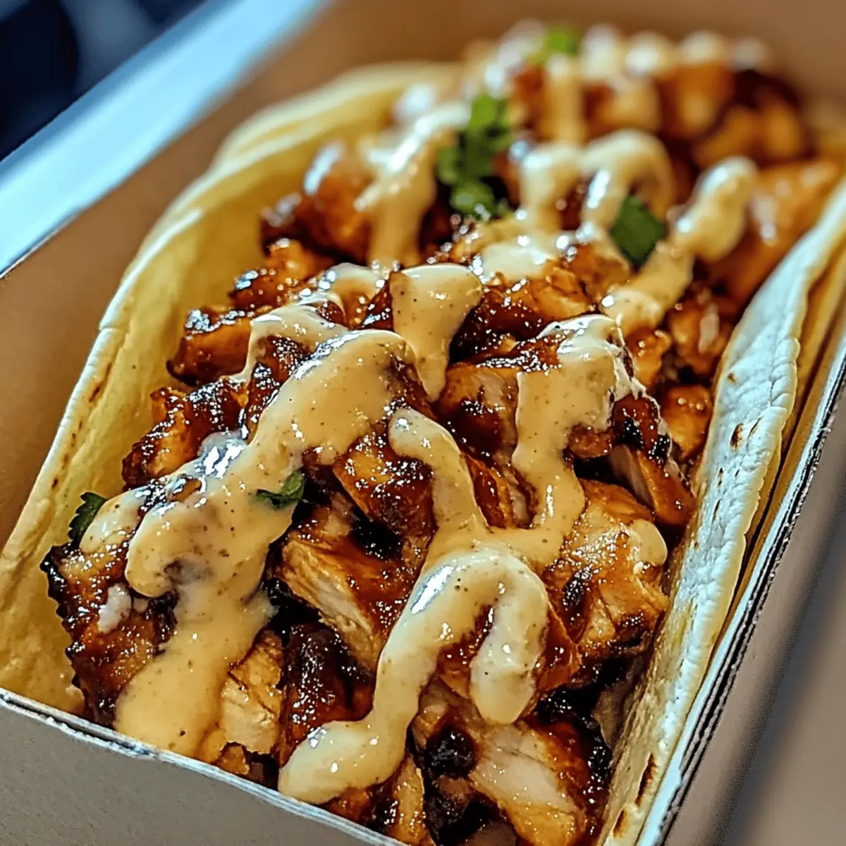 “Your tastebuds are about to embark on a thrilling journey! I recently discovered the joy of Garlic Butter Honey BBQ Chicken Tacos, a dish so easy to whip up that it feels like a weekly celebration. This recipe strikes the perfect balance of sweet and savory, making it a hit for family dinners or casual get-togethers with friends. You’ll love how quickly it comes together, meaning you can enjoy delicious, homemade tacos even on your busiest nights. Plus, they’re fully customizable—get creative with toppings or adapt the recipe to cater to everyone’s dietary needs. Curious how to make these irresistible tacos that will have everyone asking for seconds?” Why Are These Tacos So Irresistible? Flavorful Fusion: Each bite of these Garlic Butter Honey BBQ Chicken Tacos bursts with a delightful combination of sweet honey and zesty BBQ, capturing your taste buds in a completely new way. Quick to Make: With just a few simple steps, you can have this easy dinner ready in under 30 minutes, perfect for busy weeknights. Customizable Goodness: Personalize your tacos by experimenting with toppings or alternative proteins; try a vegetarian twist using roasted cauliflower for a healthy choice! Guaranteed Crowd-Pleaser: Whether it’s family dinner or a backyard barbecue, these tacos are bound to impress your guests—no one can resist the rich flavors and textures. Meal Prep Friendly: Prep the sauce and chicken ahead of time to save time during the week and enjoy quick, delightful meals on the go. Pair with some refreshing sides like Garlic Butter Chicken or a bright salad! Garlic Butter Honey BBQ Chicken Tacos Ingredients For the Chicken • Chicken (1½ lbs) – Use boneless, skinless thighs for more moisture and flavor. • Salt (1 tsp) – Essential for enhancing the overall taste of the chicken. • Black Pepper (½ tsp) – Adds a mild heat that deepens the seasoning. • Smoked Paprika (½ tsp) – Provides a delightful smoky flavor that pairs perfectly with BBQ sauce. • Garlic Powder (½ tsp) – Boosts the savory profile of your chicken. • Onion Powder (½ tsp) – Enriches the dish with subtle sweetness and depth. For the Sauce • Unsalted Butter (3 tbsp) – Creates a rich base for the BBQ sauce. • Garlic (4 cloves, minced) – Offers essential aromatic flavors to elevate the sauce. • Honey (¼ cup) – Sweetens the sauce, perfectly balancing the tanginess of BBQ. • BBQ Sauce (½ cup) – Adds essential flavor and moisture; choose your favorite brand or make it homemade. • Soy Sauce (1 tbsp) – Infuses umami depth and provides saltiness. • Apple Cider Vinegar (1 tbsp) – Brightens the sauce with acidity. • Red Pepper Flakes (½ tsp, optional) – Gives a kick of spicy heat if you desire. For the Tacos • Tortillas (8 small, flour or corn) – Choose based on your preference or dietary needs for the tacos. • Shredded Lettuce (½ cup) – Adds a refreshing crunch to each bite. • Diced Tomatoes (½ cup) – Provides juiciness and vibrant color. • Chopped Red Onion (¼ cup) – Contributes sharpness and an extra crunch. • Shredded Cheese (½ cup, cheddar or Monterey Jack) – Offers creaminess and delightful flavor. • Chopped Fresh Cilantro (¼ cup) – Introduces a fresh, herbaceous note that brightens the dish. • Lime (1, cut into wedges) – Squeeze over tacos for an added burst of freshness. • Sour Cream or Greek Yogurt (½ cup, for serving) – Creamy accompaniment to drizzle on top. These Garlic Butter Honey BBQ Chicken Tacos are a celebration of flavors, and with these ingredients, you’re just moments away from a delicious homemade feast. Step‑by‑Step Instructions for Garlic Butter Honey BBQ Chicken Tacos Step 1: Prepare Chicken First, gather your chicken pieces (1½ lbs) and pat them dry with a paper towel. In a small bowl, mix together salt, black pepper, smoked paprika, garlic powder, and onion powder. Rub the seasoning generously over the chicken, ensuring each piece is well coated. This step sets the foundation for the flavorful Garlic Butter Honey BBQ Chicken Tacos you’ll soon create! Step 2: Sear Chicken Heat a large skillet over medium-high heat and add 1 tablespoon of olive oil. Once hot, place the seasoned chicken in the skillet and sear for about 5-6 minutes on each side until golden brown and cooked through (internal temperature should reach 165°F). Remove the chicken from the skillet and let it rest for a few minutes before slicing it into bite-sized pieces, allowing the juices to settle. Step 3: Make Sauce In the same skillet, reduce the heat to medium and add 3 tablespoons of unsalted butter. Once melted, add 4 minced garlic cloves and sauté for 30-45 seconds until fragrant—avoiding any browning. Stir in ¼ cup honey, ½ cup BBQ sauce, 1 tablespoon soy sauce, 1 tablespoon apple cider vinegar, and optional red pepper flakes. Simmer the sauce for 2-3 minutes until it thickens slightly, creating a mouthwatering glaze for your chicken. Step 4: Coat Chicken Once the sauce is ready, return the sliced chicken to the skillet. Gently toss the chicken in the sauce, ensuring each piece is thoroughly coated. Let it simmer for about 2 minutes, allowing the flavors of the Garlic Butter Honey BBQ Chicken to meld beautifully with the sauce. The chicken will absorb that sweet and smoky goodness, making your tacos extra delicious. Step 5: Warm Tortillas While the chicken is absorbing the sauce, warm the tortillas. In a separate dry skillet over medium heat, add the tortillas one at a time, heating them for 15-20 seconds on each side. You want them to be warm and slightly charred, which enhances the texture and flavor of the Garlic Butter Honey BBQ Chicken Tacos. Step 6: Assemble Tacos Now it’s time to build your tacos! On each warmed tortilla, place a generous amount of the glazed chicken. Top with shredded lettuce, diced tomatoes, chopped red onion, and shredded cheese for added flavor and texture. Don’t forget to sprinkle some fres