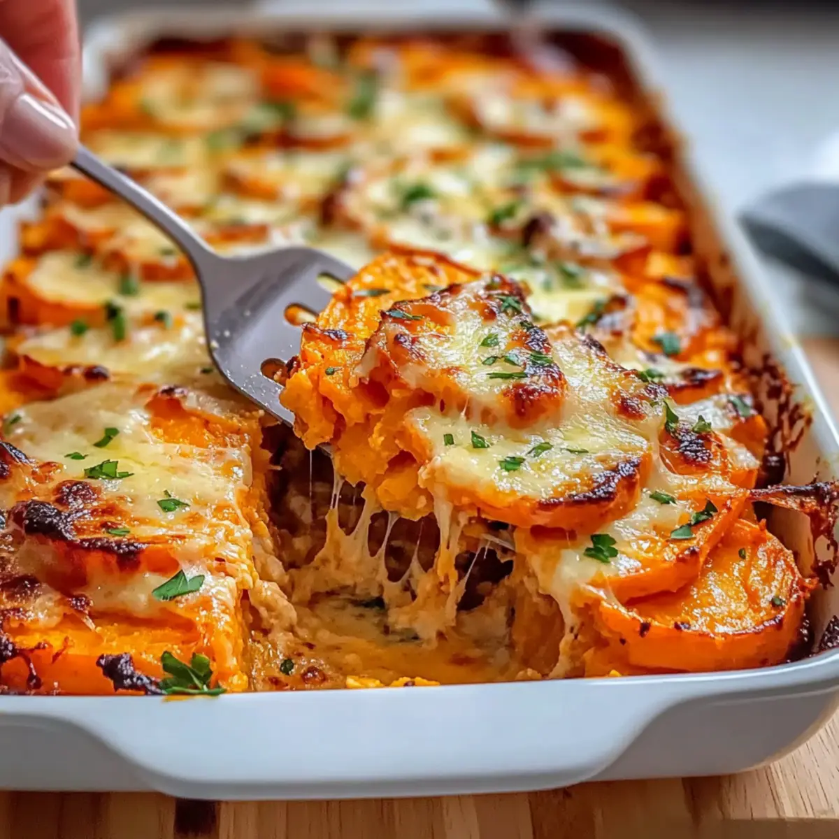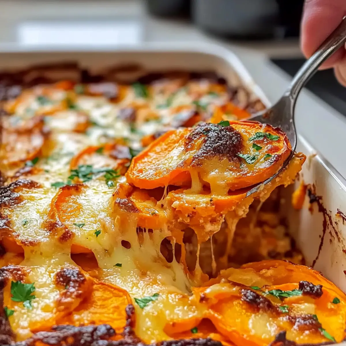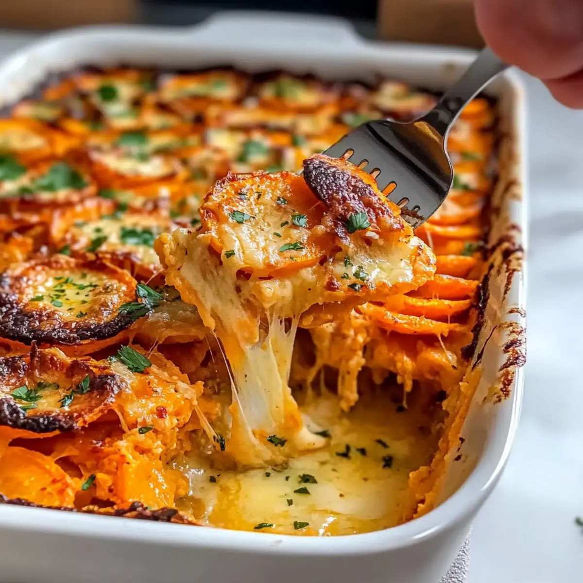 As I stood by the oven, the enchanting aroma of garlic and creamy goodness filled the kitchen, creating an atmosphere that felt like a warm hug. That’s when I knew my Garlic Butter Sweet Potato Bake was becoming something special. This comforting dish is a delightful blend of tender sweet potato slices enveloped in a rich, aromatic garlic-infused cream sauce, making it the perfect centerpiece for any weeknight dinner or festive gathering. Not only is it incredibly easy to prepare—taking less than an hour from start to finish—but it also transforms humble ingredients into a creamy indulgence that everyone will love. Whether you’re warming up after a long day or hosting friends for a cozy meal, this bake is your ticket to satisfying comfort food. Are you ready to dive into this creamy delight? Let’s get started! Why is this sweet potato bake special? Comforting: This Garlic Butter Sweet Potato Bake wraps you in warmth with every bite, making it the perfect dish for chilly evenings. Easy to make: With straightforward steps, you’ll be savoring this creamy delight in under an hour—ideal for busy weeknights or last-minute gatherings. Flavor-packed: The dreamy garlic-infused cream sauce and melty cheese blend perfectly to elevate the natural sweetness of the potatoes. Versatile: Customize your bake by adding herbs like rosemary or swapping sweet potatoes for regular ones, ensuring it fits any palate. Crowd-pleaser: Whether it’s a family dinner or a festive get-together, this dish impresses everyone from foodies to casual diners, making it an instant favorite. Need more delicious ideas? Try pairing this bake with some Garlic Butter Chicken or serve it alongside Honey Garlic Chicken for a complete meal! Garlic Butter Sweet Potato Bake Ingredients • Here’s what you’ll need to create this creamy, comforting dish: For the Bake Sweet Potatoes – These are the star of the dish, providing natural sweetness and a creamy texture; use orange-fleshed varieties for the best flavor. Heavy Cream – This adds rich creaminess to the bake; if you’re looking for a lighter option, half-and-half works well as a substitute. Butter – Essential for making that delightful garlic butter sauce; be sure to use unsalted butter to control the seasoning. Garlic – Fresh garlic elevates the dish with its fragrant, savory notes; aim for the freshest bulbs for maximal flavor. Fresh Thyme – It lends a wonderful aroma; if fresh thyme isn’t available, dried thyme can be a suitable substitute. Kosher Salt & Black Pepper – These simple seasonings enhance all the flavors; season to your taste for the best results. Parmesan Cheese – This provides a cheesy, golden topping; feel free to swap it with Gruyère or cheddar for a different flavor profile. Cornstarch – Used to thicken the cream sauce, ensuring a velvety consistency that clings beautifully to the sweet potatoes. Ready to bring this Garlic Butter Sweet Potato Bake to life? Gather your ingredients and let’s create a dish that’ll warm both hearts and bellies! Step-by-Step Instructions for Garlic Butter Sweet Potato Bake Step 1: Preheat and Prepare Begin by preheating your oven to 375°F (190°C). While the oven heats, grease a 9×13-inch baking dish with butter to ensure your Garlic Butter Sweet Potato Bake doesn’t stick. This step ensures even cooking and allows for a beautiful presentation when served. Step 2: Whisk the Cream Mixture In a small saucepan over medium-low heat, whisk together cornstarch and heavy cream until smooth. Slowly add diced unsalted butter, minced garlic, fresh thyme, kosher salt, and black pepper. Stir the mixture until it’s just hot, allowing the flavors to meld without boiling, which could harm the garlic’s essence. Step 3: Layer the Sweet Potatoes Thinly slice the sweet potatoes to about 1/8 inch thick for even cooking. Arrange the slices in the prepared baking dish, overlapping them slightly to create a beautiful layer. Don’t forget to sprinkle a pinch of salt and pepper between the layers, enhancing the flavor of your creamy sweet potato bake. Step 4: Combine and Pour Once your sweet potato layers are all set, pour the hot cream mixture over them evenly. Use a spatula to gently press down the sweet potatoes to ensure they’re submerged, allowing the garlic butter flavor to permeate every delicious layer of the Garlic Butter Sweet Potato Bake. Step 5: Bake it Perfectly Place the baking dish into the oven and bake uncovered for 30 minutes. You’ll know it’s ready when the sweet potatoes are fork-tender and a delightful aroma fills your kitchen. This initial baking helps develop the creamy texture and rich flavor you crave in this comforting dish. Step 6: Add the Finishing Touch After the first 30 minutes, sprinkle a generous layer of grated Parmesan cheese over the top of the bake. Return the dish to the oven and bake for another 10 minutes until the cheese is melted, bubbly, and golden brown, creating a tantalizing, cheesy crust on your Garlic Butter Sweet Potato Bake. Step 7: Crisp it Up (Optional) For an extra crispy cheese topping, turn on the broiler for the last 1-2 minutes of baking. Keep a close eye during this step to prevent burning, as your Garlic Butter Sweet Potato Bake reaches that desired crunchy perfection! Step 8: Rest and Serve Once baked to perfection, remove the dish from the oven and let it rest for 10 minutes. This resting period allows the flavors to settle and the garlic butter to thicken slightly. Serve warm as a delightful side or main feature, enjoying every creamy bite of your irresistible Garlic Butter Sweet Potato Bake. Garlic Butter Sweet Potato Bake Variations Feel free to explore the delightful possibilities of this recipe and make it your own! Regular Potatoes: Substitute sweet potatoes with russet or Yukon gold potatoes for a classic twist that everyone will enjoy. Creamy Vegan Option: Use coconut cream and vegan butter for a plant-based version that’s just as 
