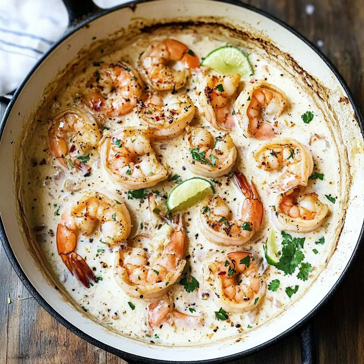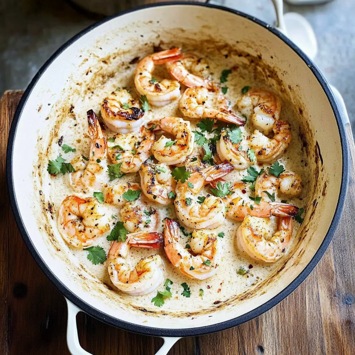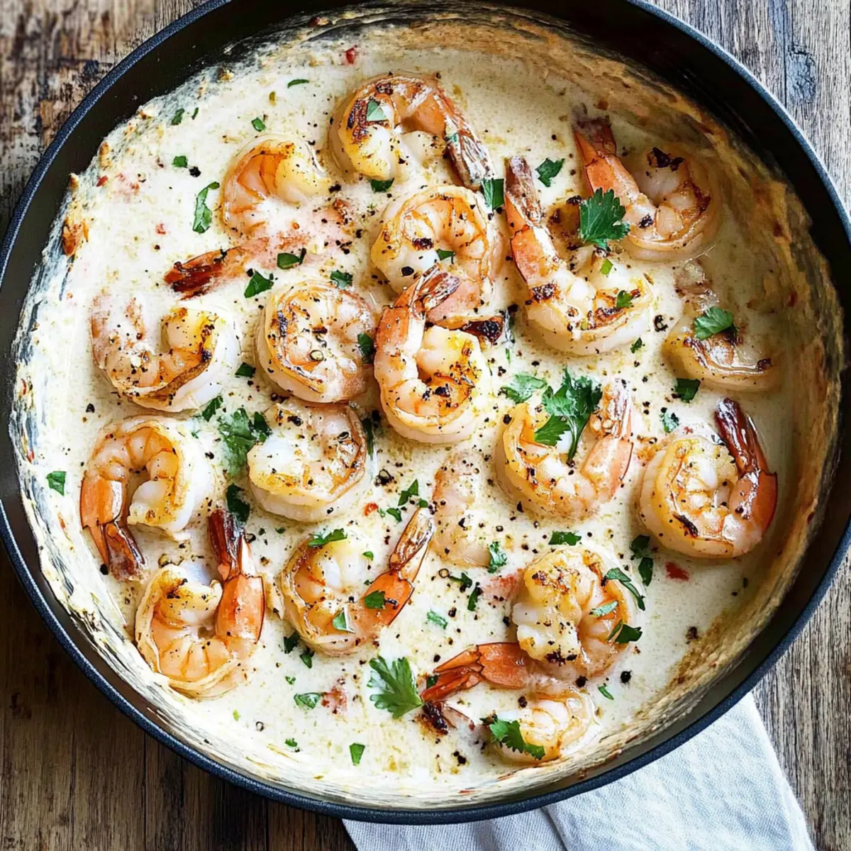 As I stirred the aromatic blend of garlic and warm coconut milk, I found myself transported to a sun-soaked beach, where flavors dance like gentle waves on the shore. This Garlic Shrimp in Coconut Milk recipe has become one of my go-to quick meals, combining the joy of seafood with a light, creamy sauce that’s both satisfying and quick to prepare. In just 20 minutes, you can whip up this delightful dish that’s not only a crowd-pleaser, but also gluten-free and perfect for busy weeknights. The interplay of lime and honey creates a refreshing twist that beckons everyone into the kitchen, filling the air with a tantalizing aroma. Are you ready to dive into this flavorful adventure? Why is this garlic shrimp dish special? Simplicity: This dish is a quick and easy 20-minute meal that fits perfectly into any busy schedule. Irresistible Aroma: The fragrant blend of garlic and coconut milk fills your kitchen, making it impossible for anyone to resist. Versatile Options: Not only does this recipe shine with shrimp, but you can easily swap in scallops or white fish for a delightful twist. Flavor Harmony: The refreshing zing of lime combined with a hint of sweetness from honey creates a unique balance that excites the palate. Gluten-Free Treat: Enjoy a low-calorie, gluten-free option that satisfies both seafood lovers and health-conscious eaters alike. Crowd-Pleasing Appeal: Perfect for family dinners or gatherings, this creamy seafood dream is sure to impress everyone at the table, just like my Garlic Shrimp Pasta does! Garlic Shrimp in Coconut Milk Ingredients • Dive into this flavorful dish! For the Shrimp • Shrimp – Peeled and deveined, shrimp ensure a quick cooking time for your Garlic Shrimp in Coconut Milk. • Salt – Enhances overall flavor; adjust to your dietary needs. • Black Pepper – Adds warmth; use freshly cracked for better taste. For the Sauce • Sweet Paprika – Provides subtle sweetness and color; feel free to substitute with smoked paprika. • Garlic Powder – Adds savory depth; complement with fresh minced garlic for aroma. • Unsalted Butter – Provides richness; swap for more olive oil if dairy-free. • Olive Oil – Ideal for cooking shrimp; you can use vegetable oil as an alternative. • Garlic Cloves – Freshly minced garlic significantly boosts flavor; don’t skip this ingredient! • Yellow Onion – Offers sweet and savory base flavor; shallots work as a great substitute. • Coconut Milk – Creates a creamy sauce; full-fat adds richness, while light coconut milk is lower in calories. • Cornstarch – Thickens the sauce; omit if you prefer a thinner consistency. • Fish Sauce – Provides umami; soy sauce can be a vegetarian substitute. • Honey – Adds sweetness; maple syrup is a great vegan alternative. • Lime Juice – Balances flavors with acidity; lemon juice is a suitable substitute. For Garnish and Spice • Chopped Cilantro – Fresh herb garnish that enhances brightness; leave it out if not a fan. • Chili Flakes – Adds heat; adjust the quantity according to your preference. • Freshly Cracked Black Pepper – Adds freshness as a finishing touch when serving. Step‑by‑Step Instructions for Garlic Shrimp in Coconut Milk Step 1: Prep the Shrimp In a bowl, combine the peeled and deveined shrimp with salt, black pepper, sweet paprika, and garlic powder. Toss the shrimp well to ensure they are evenly coated with the seasonings. This step not only enhances the flavor of your Garlic Shrimp in Coconut Milk but also makes each bite a delicious experience. Step 2: Prepare Aromatics Mince the garlic cloves and finely dice the yellow onion. Set them aside so they’re ready for the next steps. The aroma from the garlic and onion will elevate your dish, creating that irresistible scent that will draw everyone to the kitchen. Step 3: Sear the Shrimp In a large skillet, heat 1 tablespoon of olive oil and 1 tablespoon of unsalted butter over high heat until shimmering—about 1-2 minutes. Add the seasoned shrimp and sear them for 1 minute on each side until they turn pink and opaque. Once done, remove them from the skillet and set aside; they will return later to soak up all the flavors. Step 4: Sauté the Aromatics Reduce the heat to low and add the minced garlic and diced onion to the skillet. Sauté for about 3 minutes, stirring frequently, until the onion is translucent and the garlic is fragrant. This step is crucial for developing a rich flavor base for your Garlic Shrimp in Coconut Milk. Step 5: Create the Sauce Pour three-quarters of the coconut milk into the skillet, stirring well to combine. In a separate small bowl, mix the remaining coconut milk with cornstarch until smooth, then add this mixture to the skillet. Cook while stirring gently for about 2-3 minutes until the sauce thickens slightly, creating a creamy texture. Step 6: Add Flavoring Ingredients While the sauce is simmering, stir in the fish sauce, honey, and lime juice. Allow the mixture to simmer for an additional 2 minutes, letting the flavors meld together beautifully. The combination of these ingredients adds a sweet and savory depth to your Garlic Shrimp in Coconut Milk. Step 7: Finish Cooking the Shrimp Return the seared shrimp to the skillet, gently tossing them to coat in the luscious sauce. Simmer everything together for another minute, until the shrimp are heated through and fully infused with the vibrant flavors of the sauce. Step 8: Serve and Garnish Finally, serve your Garlic Shrimp in Coconut Milk warm, garnished with freshly chopped cilantro and a sprinkle of chili flakes and cracked black pepper. This dish pairs wonderfully with jasmine rice, noodles, or crusty bread to soak up that delightful sauce. Variations & Substitutions for Garlic Shrimp in Coconut Milk Feel free to tweak and personalize this recipe to match your palate and dietary preferences! Seafood Swap: Replace shrimp with scallops or white fish for a delightful change in texture and tast