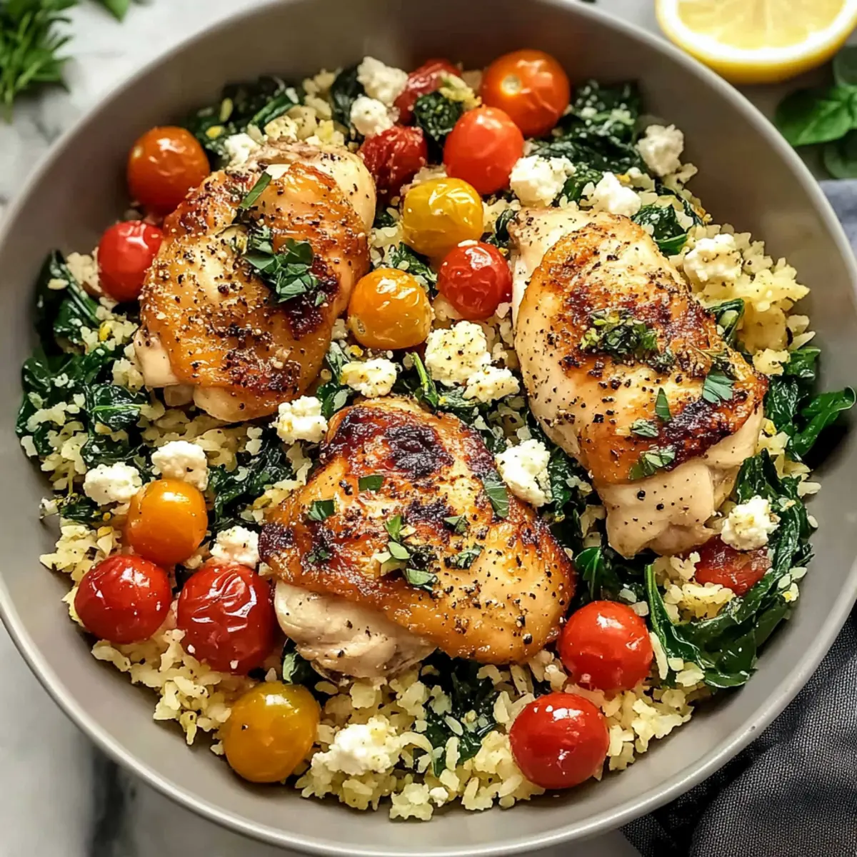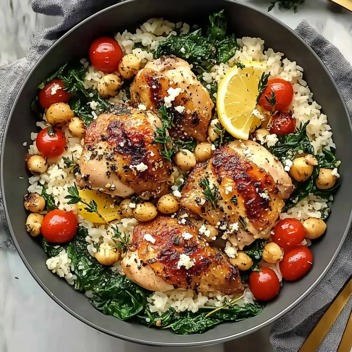 On a bustling weeknight, nothing feels quite as satisfying as creating a meal that transports you straight to the sun-kissed shores of Greece. My One-Pot Greek Chicken and Lemon Rice combines vibrant Mediterranean flavors and hearty ingredients for a fulfilling dish that cooks up in no time. Picture tender chicken thighs simmering in a fragrant blend of lemon and spices, nestled on a bed of fluffy rice, brightened up with fresh spinach and chickpeas. This family-friendly recipe is a dream come true for those looking to ditch the takeout and embrace comfort food that doesn’t skimp on nutrition. What’s better? You’ll enjoy less time in the kitchen and more laughter around the dinner table. Ready to dive into a plate full of sunshine? Why is this recipe a must-try? Simplicity Personified: This One-Pot Greek Chicken and Lemon Rice is incredibly easy to make, appealing to both novice cooks and seasoned chefs alike. Flavor Explosion: Bright lemon juice blended with aromatic herbs and spices creates a vibrant, Mediterranean taste experience that your taste buds will love. Time-Saving Meal: With everything cooking together in one pot, you can whip up a delicious dinner quickly, leaving you more time for family or relaxation. Nutrient-Rich Ingredients: Packed with protein from chicken and chickpeas, along with fresh spinach, this dish is as healthy as it is satisfying—perfect for those who crave comfort without guilt. Versatile and Customizable: Whether you’re a meat lover or prefer a vegetarian twist, this recipe adapts seamlessly—try grilled portobello mushrooms for a delightful meat-free option! For additional Mediterranean inspiration, don’t miss out on trying my delicious Lemon Garlic Butter Chicken or zest up your meal time with Caribbean Chicken Rice. Greek Chicken and Lemon Rice Ingredients For the Chicken Chicken Thighs – Tender protein base that’s full of flavor; bone-in, skin-on is best for richness. Oregano – Herbaceous flavoring agent; can substitute with thyme or Italian seasoning if needed. Salt – Essential seasoning to enhance overall taste and balance flavors. Paprika – Adds smokiness; use smoked paprika for a deeper flavor. Red Pepper Flakes – Provides a mild heat; omit if you prefer a milder dish. Olive Oil – Ideal cooking fat for searing; avocado oil is a great substitute if necessary. For the Rice Mixture Garlic – Aromatic base for depth of flavor; fresh cloves are best, but garlic powder can work in a pinch. Tomatoes – Adds acidity and moisture; cherry tomatoes can be a sweeter option. Spinach – Leafy green that contributes nutrition and color; kale or Swiss chard can be substituted. Chickpeas – Boosts protein and texture; canned are quick and convenient—just rinse and drain. Jasmine Rice – Starch base for fluffy texture; basmati or long-grain rice can be substituted. Lemon Juice – Brightens the dish with acidity; freshly squeezed is preferred for the best flavor. For the Feta Topping Feta Cheese – Creamy topping that adds a wonderful contrast in flavor; goat cheese can be used for similar tanginess. Olive Oil – Use to mix with feta for added moisture and richness. Lemon Juice – Enhances the feta mixture to maintain a bright flavor; fresh juice adds the best zing. Fresh Oregano – Provides a burst of herbal freshness; dried oregano can work but the flavor will be milder. Enjoy these delicious ingredients together, as they come together to create the delightful dish of Greek Chicken and Lemon Rice! Step‑by‑Step Instructions for Greek Chicken and Lemon Rice Step 1: Prep Chicken Begin by patting the chicken thighs dry with paper towels, which helps achieve a crispy skin. Next, season each piece generously with oregano, paprika, salt, and red pepper flakes for a vibrant flavor profile. Leave the seasoned chicken to rest while you prepare the next steps, allowing the spices to penetrate the meat. Step 2: Sear Chicken Heat a large skillet over medium-high heat and add olive oil. Once the oil is shimmering, carefully place the chicken thighs skin-side down in the skillet. Sear for about 5 minutes, or until the skin is golden brown and crisp. Flip the chicken and continue cooking until it reaches an internal temperature of 165°F. Remove the chicken from the skillet and set aside. Step 3: Sauté Aromatics In the same skillet, add an extra drizzle of olive oil if needed, and lower the heat to medium. Quickly toss in minced garlic, stirring for about 30 seconds until fragrant but not browned. Then add halved tomatoes, a sprinkle of oregano, and a pinch of salt, cooking until the tomatoes soften and release their juices, about 3-4 minutes. Step 4: Add Greens Stir in the fresh spinach, letting it wilt down, which should take about 1-2 minutes. As it shrinks, its vibrant color will brighten the mixture, making it visually appealing. This step not only adds nutrition but also enhances the overall feel of your Greek Chicken and Lemon Rice. Step 5: Prepare Rice While the vegetables are cooking, rinse the jasmine rice under cold water until the water runs clear to remove excess starch, which helps achieve fluffiness. In a separate pot, cook the rice according to the package instructions, usually about 15-20 minutes. Also, rinse and drain canned chickpeas during this time. Step 6: Combine Once the rice is fluffy and cooked, add it to the skillet along with the chickpeas. Gently mix everything together, allowing the rice to absorb the tasty juices from the tomatoes and vegetables. Add in fresh lemon juice and a splash more olive oil, stirring to ensure everything is well combined. Adjust the seasoning if necessary. Step 7: Feta Mixture In a mixing bowl, blend the crumbled feta cheese with a drizzle of olive oil, a squeeze of lemon juice, and some fresh oregano. This creates a creamy topping that will complement the Greek Chicken and Lemon Rice beautifully. Set this aside as you assemble the final dish. Step 8: Assemble Slice the seared chick