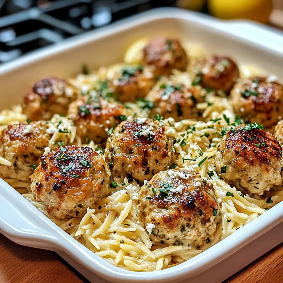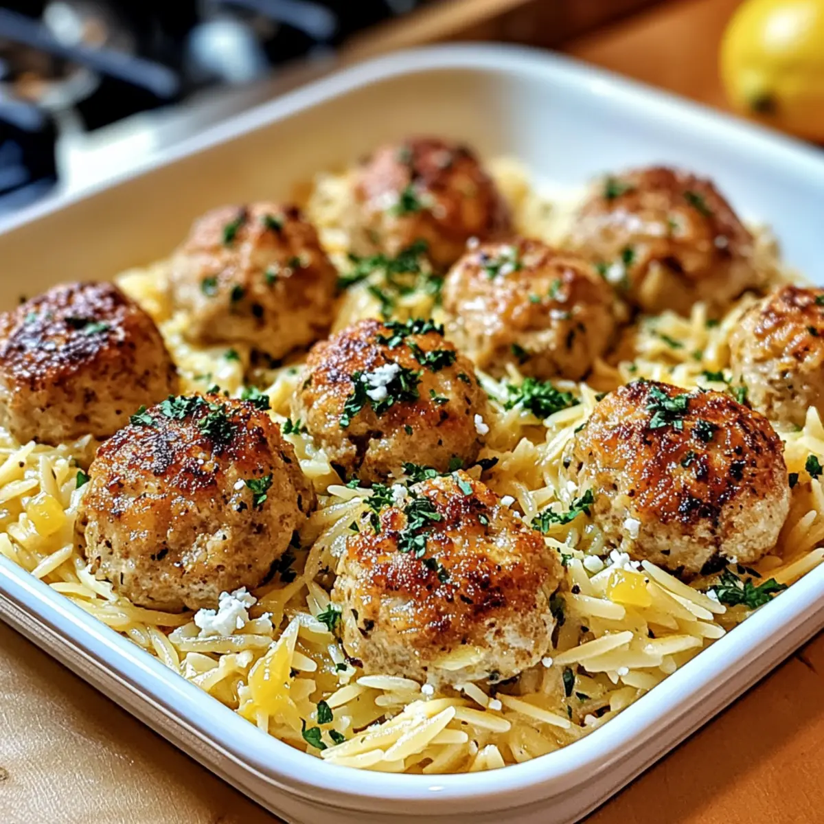As I stood in my kitchen, delicious aromas wafting through the air, I couldn’t help but smile at my latest creation: Greek Chicken Meatballs with Lemon Orzo. This dish is a lovely nod to my travels through the sun-soaked Mediterranean, bringing vibrant flavors right to my dining table. The best part? Not only are these meatballs bursting with tender goodness, but they’re also a healthy, gluten-free option that’s fantastic for meal prep or a cozy weeknight dinner. With their zesty lemon orzo complement, this recipe promises comfort and freshness in every bite. Curious about how to recreate this delightful dish in your own kitchen? Let’s dive in together! Why Will You Love Greek Chicken Meatballs? Bright, Fresh Flavors: The zesty lemon orzo perfectly complements the savory Greek chicken meatballs, creating a refreshing and vibrant dish that feels like a breath of Mediterranean air. Healthy Indulgence: Packed with lean protein and healthy ingredients, this recipe is a guilt-free option without sacrificing flavor, making it great for health-conscious diners. Versatile Options: Customize your meal by swapping out orzo for gluten-free pasta or quinoa, or pack in extra veggies like spinach or zucchini for a nutrient boost. Quick & Easy: Ready in about 30 minutes, this dish is perfect for busy weeknights or meal prep. Just make extra for lunches to enjoy throughout the week! Crowd-Pleasing Delight: With its appealing flavors and comforting textures, these Greek chicken meatballs are perfect for entertaining or cozy family dinners, just like my Lemon Garlic Butter or Lemon Butter Chicken. Get ready to impress with a dish that’s sure to become a new favorite! Greek Chicken Meatballs Ingredients For the Meatballs Ground Chicken – Lean protein that keeps these meatballs tender; can be swapped with ground turkey if you prefer. Egg – Binds the meatball mixture together for a perfect hold. Breadcrumbs – Adds essential texture; feel free to use plain or panko based on your preference. Olive Oil – Rich cooking oil perfect for frying; enhances flavor during cooking. Feta Cheese – Provides that classic Greek tang; consider sheep or goat milk feta for richer taste. Fresh Parsley – Freshness booster that adds vibrant color; a must for the meat mixture. Dried Oregano – A quintessential Greek herb that infuses essential flavor into the meatballs. Garlic (minced) – Imparts aromatic goodness; adjust the amount if you prefer a milder taste. Lemon (zest and juice) – Brightens up the entire dish; always use fresh for the best flavor. For the Orzo Orzo Pasta – Absorbs flavors beautifully; for a gluten-free option, you can replace it with rice or gluten-free pasta. Chicken Broth (or water) – The secret to flavorful orzo; using broth enhances its taste significantly. Butter (or olive oil) – Adds richness to the orzo; using oil makes it a lighter option. Fresh Dill (optional) – Great for garnish; adds a delightful herbaceous note when sprinkled on top. Get ready to create these delectable Greek Chicken Meatballs with Lemon Orzo and savor every bite of your Mediterranean adventure! Step‑by‑Step Instructions for Greek Chicken Meatballs with Lemon Orzo Step 1: Prepare the Meatball Mixture In a large mixing bowl, combine the ground chicken, egg, breadcrumbs, crumbled feta cheese, chopped parsley, dried oregano, minced garlic, lemon zest, salt, and pepper. Use your hands to gently mix everything together until just combined, being careful not to overmix. This mixture will form your savory Greek chicken meatballs, so set it aside for a few minutes to meld the flavors. Step 2: Shape the Meatballs With your hands, scoop out portions of the mixture and roll them into 1 ½ inch meatballs, aiming for about 16-20 pieces. The key is to have uniform sizes for even cooking. Once they are all shaped, place them on a plate, and feel free to chill them in the refrigerator for about 15 minutes; this helps them hold their shape better while cooking. Step 3: Cook the Meatballs Heat a skillet over medium heat and add a drizzle of olive oil. Once the oil is shimmering, carefully place the meatballs in the skillet in a single layer. Cook them for 4-5 minutes on each side until they turn golden brown and reach an internal temperature of 165°F, signaling that the Greek chicken meatballs are cooked through. Once done, remove them from the skillet and set aside. Step 4: Boil the Orzo In a medium saucepan, bring chicken broth to a boil over high heat. Once boiling, add the orzo pasta and reduce the heat to medium. Cook according to the package instructions, usually around 8-10 minutes, stirring occasionally. You want the orzo to be al dente, so keep an eye on it as it cooks. When ready, drain any excess liquid carefully. Step 5: Flavor the Orzo Return the cooked orzo to the saucepan, and stir in the butter, freshly squeezed lemon juice, lemon zest, and any remaining minced garlic. Mix well to ensure the orzo is coated in the buttery lemon sauce. Taste and season with salt and pepper as desired to enhance the flavors, creating a zesty base that perfectly complements your meatballs. Step 6: Assemble Your Dish To serve, spoon the lemon orzo into bowls, creating a fluffy base. Gently place the golden Greek chicken meatballs on top and garnish liberally with chopped parsley, fresh dill, and crumbled feta cheese. Add a wedge of lemon on the side for a bright touch and a little extra zing, completing your Mediterranean-inspired meal beautifully. What to Serve with Greek Chicken Meatballs with Lemon Orzo Enhance your Mediterranean meal experience with delightful side dishes and beverages that perfectly complement the vibrant flavors of your Greek chicken meatballs. Tzatziki Sauce: This cool, creamy dip made from yogurt, cucumber, and garlic not only adds freshness but also enhances the Mediterranean experience. Greek Village Salad: Packed with tomatoes, cucumbers, red onion, and olives, this salad offers a refreshi