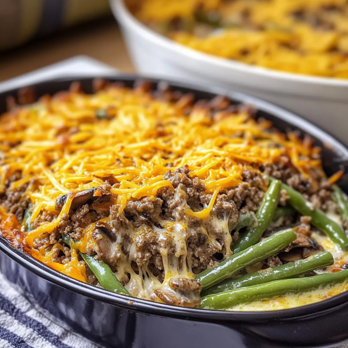 Stepping into my kitchen, the tantalizing aromas wafting through the air instantly transport me to cozy family dinners filled with laughter. Today, I’m excited to share my go-to recipe for Hamburger Green Bean Casserole with Mushrooms—a dish that perfectly balances comfort and nutrition. This one-pan meal is not just incredibly easy to whip up in about 25 minutes, but it’s also gluten-free and keto-friendly, making it a weeknight superstar that even the pickiest eaters will adore. Whether you’re seeking a hearty option for your family or a satisfying dish that doesn’t derail your healthy eating goals, this casserole is packed with savory goodness, crunchy veggies, and creamy cheese. Ready to dive into a bowl of warmth and flavor? Let’s make some kitchen magic together!
