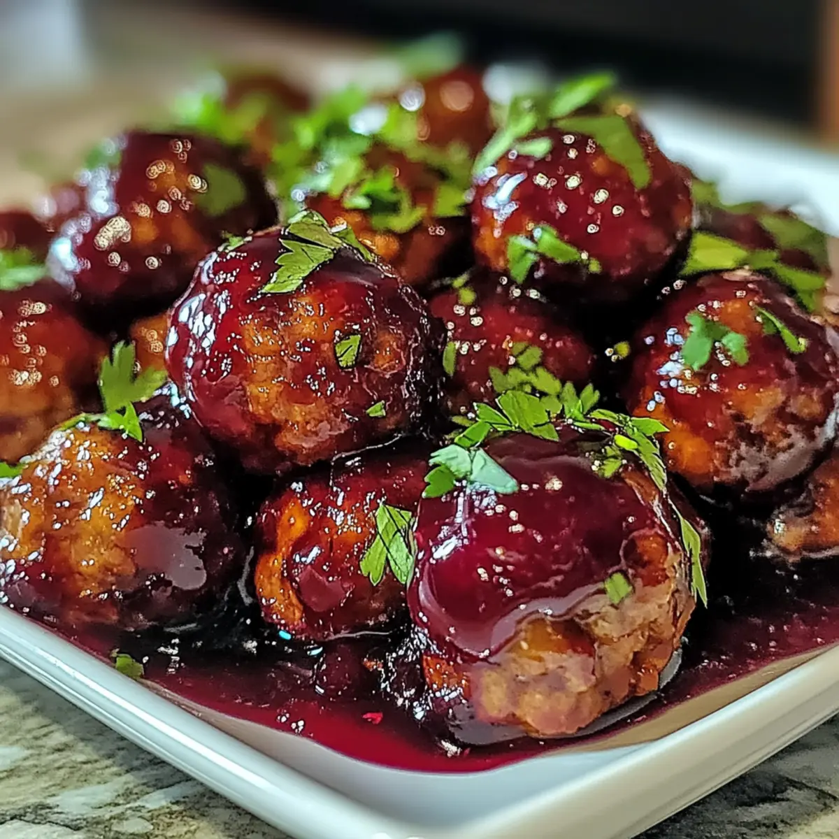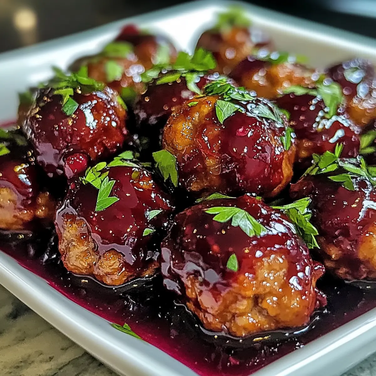 You won’t believe how easily you can turn ordinary ingredients into a festive feast! My Harvest Turkey Meatballs with Cranberry Glaze bring a burst of holiday spirit to your table, featuring tender meatballs enveloped in a luscious, tangy glaze. In just 40 minutes, this delightful dish transforms your crowded weeknight into a culinary joyride or elevates your special gatherings. With their low-fat profile, these meatballs are a guilt-free pleasure that keeps the cozy comfort of home-cooked meals in mind. Whether alongside mashed potatoes or served as finger food at a festive party, these meatballs are bound to impress. Are you ready to fill your kitchen with enchanting aromas and bring cheer to your dinner table? Why are these meatballs a must-try? Festive Flavors: Infused with a sweet and tangy cranberry glaze, these meatballs deliver the holiday spirit in every bite. Quick & Easy: In just 40 minutes, you can whip up this delectable dish, making it perfect for busy weeknights or last-minute gatherings. Low-Fat Option: Made with ground turkey, they’re a healthier alternative to traditional meatballs, allowing you to indulge guilt-free. Versatile Serving: Whether as a main course or festive appetizer on skewers, these meatballs can easily adapt to any occasion, just like my Texas Roadhouse Smothered Chicken or Roasted Chicken Garlic. Crowd-Pleaser: Their vibrant presentation and rich flavors are sure to impress family and friends, making them a delightful addition to your table. Harvest Turkey Meatballs Ingredients For the Meatballs • Ground Turkey – The star ingredient that keeps them lean and flavorful, perfect for those seeking lower-fat options. • Breadcrumbs – Helps to bind and add texture; opt for whole wheat or gluten-free for healthier alternatives. • Parmesan Cheese – Adds a savory depth; feel free to swap with nutritional yeast for a dairy-free delight. • Fresh Parsley – Brightens up the dish; dried parsley can be a fine stand-in if fresh isn’t on hand. • Egg – Binds everything together; flaxseed meal is a great vegan substitute. • Minced Garlic – Infuses flavor; garlic powder works well in a pinch. • Salt and Black Pepper – Essential for seasoning; adjust to taste for a personal touch. For the Cranberry Glaze • Cranberry Sauce – Forms the base of this tangy glaze, delivering delightful sweetness; choose homemade or store-bought as you prefer. • Dijon Mustard – Adds a little zing; yellow mustard is an acceptable alternative if Dijon is missing. • Honey – Sweetens the glaze beautifully; feel free to use maple syrup for a vegan-friendly option. These Harvest Turkey Meatballs with Cranberry Glaze are truly a celebration of flavors and will make your mouth water! Step‑by‑Step Instructions for Harvest Turkey Meatballs with Cranberry Glaze Step 1: Preheat the Oven Begin by preheating your oven to 375°F (190°C). This ensures an even cook for your Harvest Turkey Meatballs with Cranberry Glaze. As the oven warms, prepare your baking sheet by lining it with parchment paper or lightly greasing it to prevent sticking. Step 2: Mix the Meatball Ingredients In a large mixing bowl, combine ground turkey, breadcrumbs, Parmesan cheese, fresh parsley, egg, minced garlic, salt, and black pepper. Use your hands or a large spoon to mix gently until just combined; overmixing can lead to tough meatballs. Aim for a well-blended mixture to create tender meatballs. Step 3: Form the Meatballs Once your mixture is ready, take about a tablespoon of the meat mixture and roll it into 1-inch balls. As you form the Harvest Turkey Meatballs, place them on the prepared baking sheet, ensuring there’s space between each to allow for even cooking and browning. Step 4: Bake the Meatballs Transfer the baking sheet to your preheated oven and bake for 20 to 25 minutes. Look for a golden brown exterior and an internal temperature of 165°F (74°C) to confirm they’re fully cooked. The meatballs should be tender and juicy, an indication of perfect doneness. Step 5: Prepare the Cranberry Glaze While the meatballs are baking, prepare the glaze. In a saucepan over medium heat, combine cranberry sauce, Dijon mustard, and honey. Stir continuously until the mixture is well-blended and heated through, about 5 minutes. The glaze should be smooth and glossy, ready to coat your meatballs beautifully. Step 6: Toss the Meatballs in the Glaze Once the meatballs are out of the oven, transfer them to a large mixing bowl. Pour the warm cranberry glaze over the baked meatballs and gently toss to coat each meatball evenly. This charming glaze adds a festive touch to your Harvest Turkey Meatballs, making them irresistible. Step 7: Serve and Enjoy Finally, plate your delicious Harvest Turkey Meatballs with Cranberry Glaze and garnish with extra parsley, if desired. These meatballs can be enjoyed as a cozy main dish or served as delightful appetizers. Celebrate the flavors of the season with every bite! Storage Tips for Harvest Turkey Meatballs Refrigerator: Store cooked Harvest Turkey Meatballs in an airtight container for up to 3 days. Ensure they’re thoroughly cooled before refrigerating to maintain freshness. Freezer: These meatballs can be frozen for up to 3 months. Individually wrap them in plastic wrap and place them in a freezer bag to prevent freezer burn. Reheating: To reheat, thaw in the refrigerator overnight, then bake at 350°F (175°C) for about 15-20 minutes until heated through, or microwave until warm. Prepping Ahead: You can shape the meatballs and refrigerate them for up to 24 hours before baking. This makes it easy to have fresh Harvest Turkey Meatballs ready for cooking at a moment’s notice. Expert Tips for Harvest Turkey Meatballs Keep it Tender: Avoid overmixing the meatball mixture; this ensures a tender texture in your Harvest Turkey Meatballs. Check Doneness Accurately: Use a meat thermometer to make sure the internal temperature reaches 165°F (74°C) for sa
