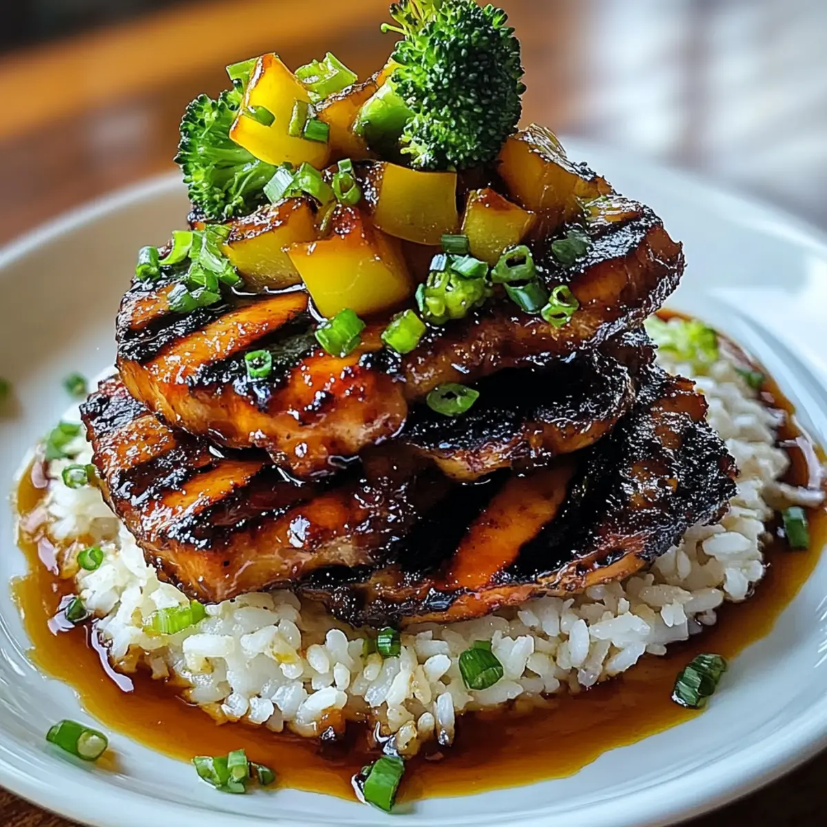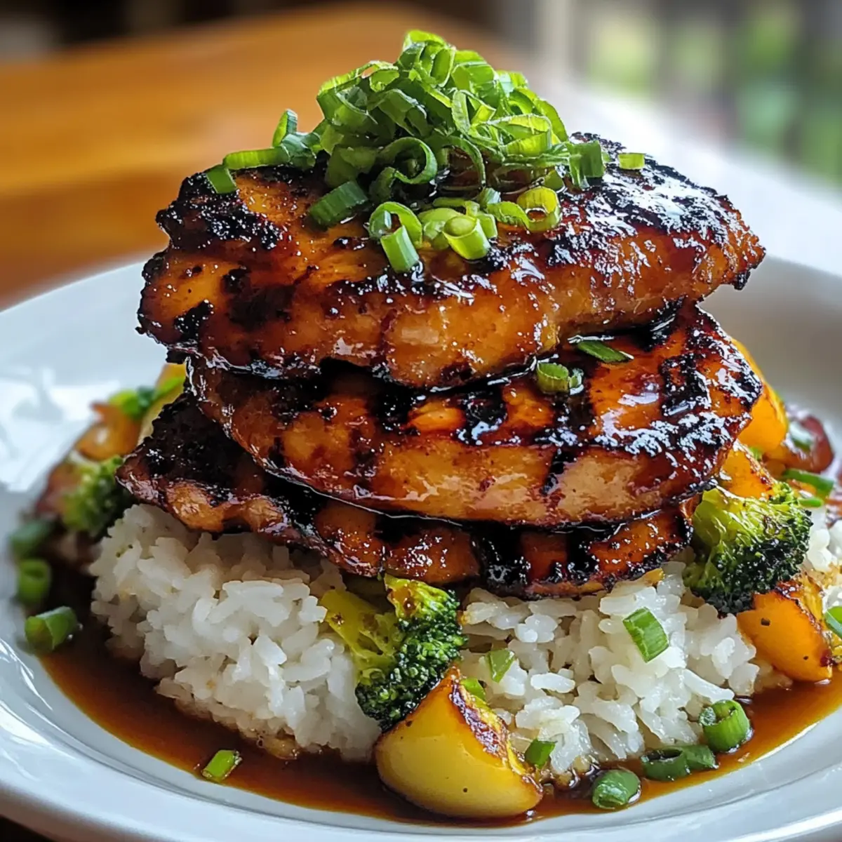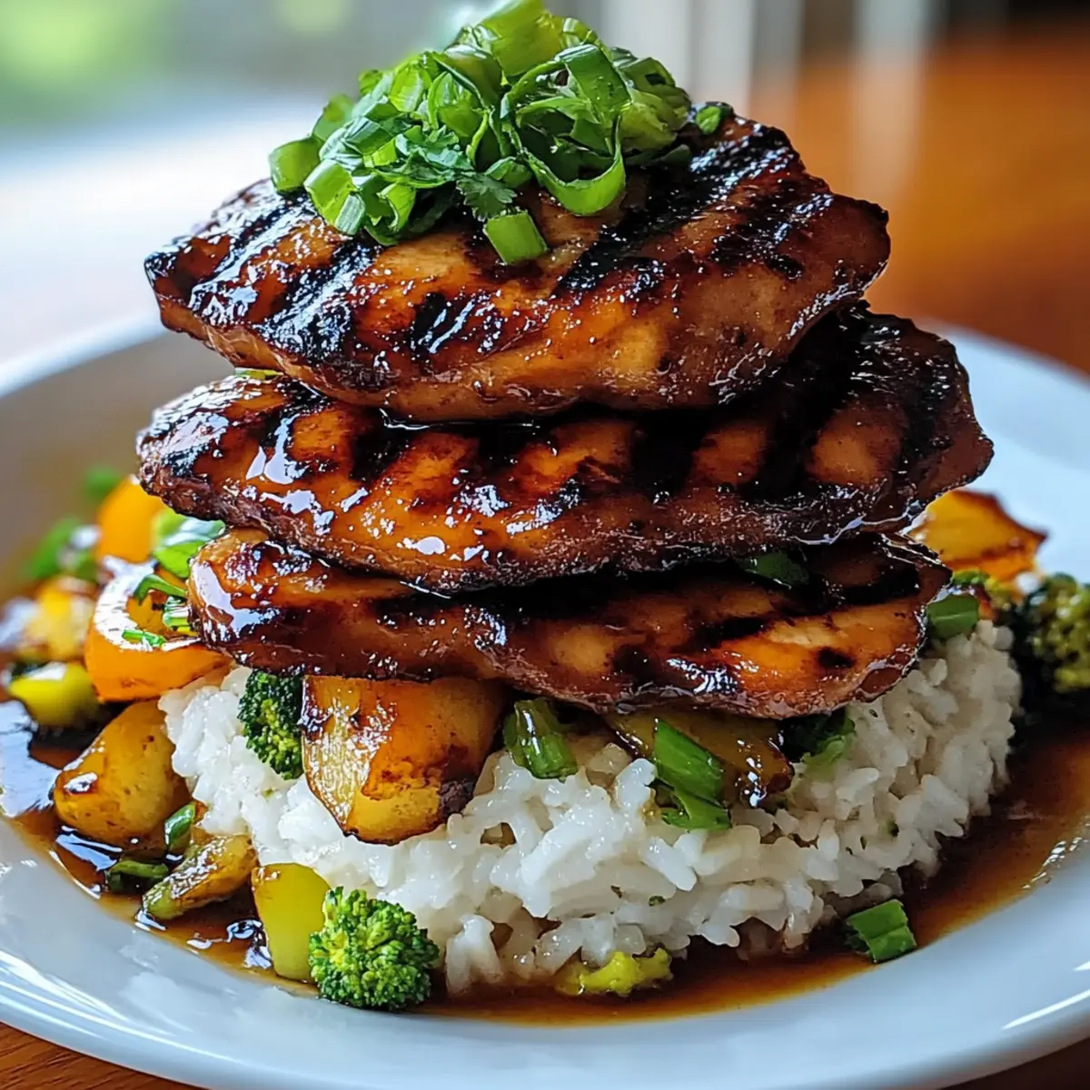 As the sun sets on another busy day, my grill sizzles with the irresistible aroma of marinated chicken, transporting me straight to the islands with each bite. This Hawaiian Huli Huli Chicken Stack is a vibrant celebration of flavors—juicy grilled chicken paired with fresh, crisp vegetables—perfect for a quick meal that brings the family together. In just 45 minutes, you can enjoy a wholesome, gluten-free delight that combines sweet and savory notes, making it a guaranteed crowd-pleaser for both kids and adults alike. Whether you’re looking to shake up the weeknight routine or impress guests with a taste of the tropics, this dish has got you covered. Are you ready to embark on a delicious culinary journey? Why is Huli Huli Chicken Stack Special? Flavor Explosion: This dish offers a tropical blend of sweet pineapple and savory soy sauce, creating a taste sensation that transports you to a Hawaiian paradise. Time-Saving Delight: With just 45 minutes from start to finish, it’s perfect for busy weeknights without sacrificing quality. Gluten-Free Goodness: Easily adaptable for dietary needs, just swap regular soy sauce for gluten-free options. Customizable Fun: Make it your own by mixing vegetables or swapping chicken for tofu, catering to all preferences! Crowd-Pleasing Appeal: Kids love the sweet, tangy flavors, making this a family favorite and the perfect dish to impress your guests. Don’t forget to check out our Cheesy Chicken Enchiladas for another delicious family meal! Hawaiian Huli Huli Chicken Stack Ingredients For the Marinade Soy Sauce – Adds umami and depth; substitute with gluten-free soy sauce or tamari for a gluten-free Hawaiian Huli Huli Chicken Stack. Brown Sugar – Provides sweetness to balance savory notes; coconut sugar is a healthier alternative. Ketchup – Contributes tangy sweetness; opt for low-sugar varieties if desired. Pineapple Juice – Adds natural sweetness and acidity; fresh juice enhances flavor, while canned works too. Minced Garlic – Infuses flavor with a hint of spiciness; using fresh maximizes impact. Grated Ginger – Offers a zesty kick; ground ginger can be substituted in a pinch. Sesame Oil – Brings nuttiness and richness; can be replaced with olive oil for a lighter option. Black Pepper – Adds mild heat and flavor; adjust according to preference. For the Chicken and Vegetables Boneless Skinless Chicken Thighs – Juicy and flavorful base; substitute with chicken breasts, noting they may cook faster. Mixed Vegetables (e.g., bell peppers, broccoli) – Gives crunch and nutrition; customize with any fresh vegetables you love. Green Onions – Garnish for a fresh, oniony flavor; can be omitted if desired. For the Serving Cooked Rice – The base for the dish; quinoa or cauliflower rice can be delicious alternatives. Now that you have your ingredients ready, let’s dive into preparing this tropical delight! Step‑by‑Step Instructions for Hawaiian Huli Huli Chicken Stack Step 1: Prepare Marinade In a medium bowl, whisk together soy sauce, brown sugar, ketchup, pineapple juice, minced garlic, grated ginger, sesame oil, and black pepper until the sugar fully dissolves. This vibrant marinade will infuse the chicken with sweet and savory flavors, setting the stage for your Hawaiian Huli Huli Chicken Stack. Aim for a smooth consistency that combines all ingredients evenly. Step 2: Marinate Chicken Place the boneless skinless chicken thighs in a large resealable bag or shallow dish, then pour the prepared marinade over them, ensuring each piece is fully coated. Seal the bag or cover the dish tightly and refrigerate for at least 30 minutes, allowing the chicken to soak up all those delicious flavors. If time permits, marinate for a few hours or overnight for the best taste. Step 3: Preheat Grill As the chicken marinates, preheat your grill to medium-high heat, around 375°F to 450°F. This temperature is perfect for achieving the beautifully charred exterior while keeping the chicken juicy inside. Make sure to oil the grill grates lightly to prevent sticking and to enhance those appealing grill marks on your Hawaiian Huli Huli Chicken Stack. Step 4: Grill Chicken Once the grill is hot, remove the chicken from the marinade and place it directly onto the grates. Grill the chicken for 6-7 minutes on each side, flipping only once, until it reaches an internal temperature of 165°F. Look for a nice char and caramelization on the outside, which adds flavor and texture to your dish. Let the chicken rest for a few minutes after grilling before slicing it into strips. Step 5: Sauté Vegetables While the chicken rests, heat a drizzle of oil in a large skillet over medium heat. Add your choice of mixed vegetables and sauté them for about 5-7 minutes until they’re tender yet vibrant. Aim for a balance where the vegetables are still crisp but starting to soften, providing a nutritious and colorful complement to your Hawaiian Huli Huli Chicken Stack. Step 6: Assemble the Stack To create your Hawaiian Huli Huli Chicken Stack, start with a base of cooked rice on each plate. Layer the sliced grilled chicken on top, followed by the sautéed vegetables. For a fresh finishing touch, sprinkle chopped green onions over the stacked layers. The vibrant colors and textures come together for a delightful meal that’s visually appealing and packed with flavor. Make Ahead Options These Hawaiian Huli Huli Chicken Stacks are a fantastic choice for meal prep! You can marinate the chicken up to 24 hours in advance to deepen the flavors. Simply follow the marinade instructions, coat the chicken, and refrigerate it in a sealed bag or dish. Additionally, you can chop your mixed vegetables and store them in an airtight container for up to 3 days; just remember to keep them refrigerated to maintain freshness. When you’re ready to enjoy your meal, grill the marinated chicken straight from the fridge and sauté the prepped veggies just before assembling the stack. With th