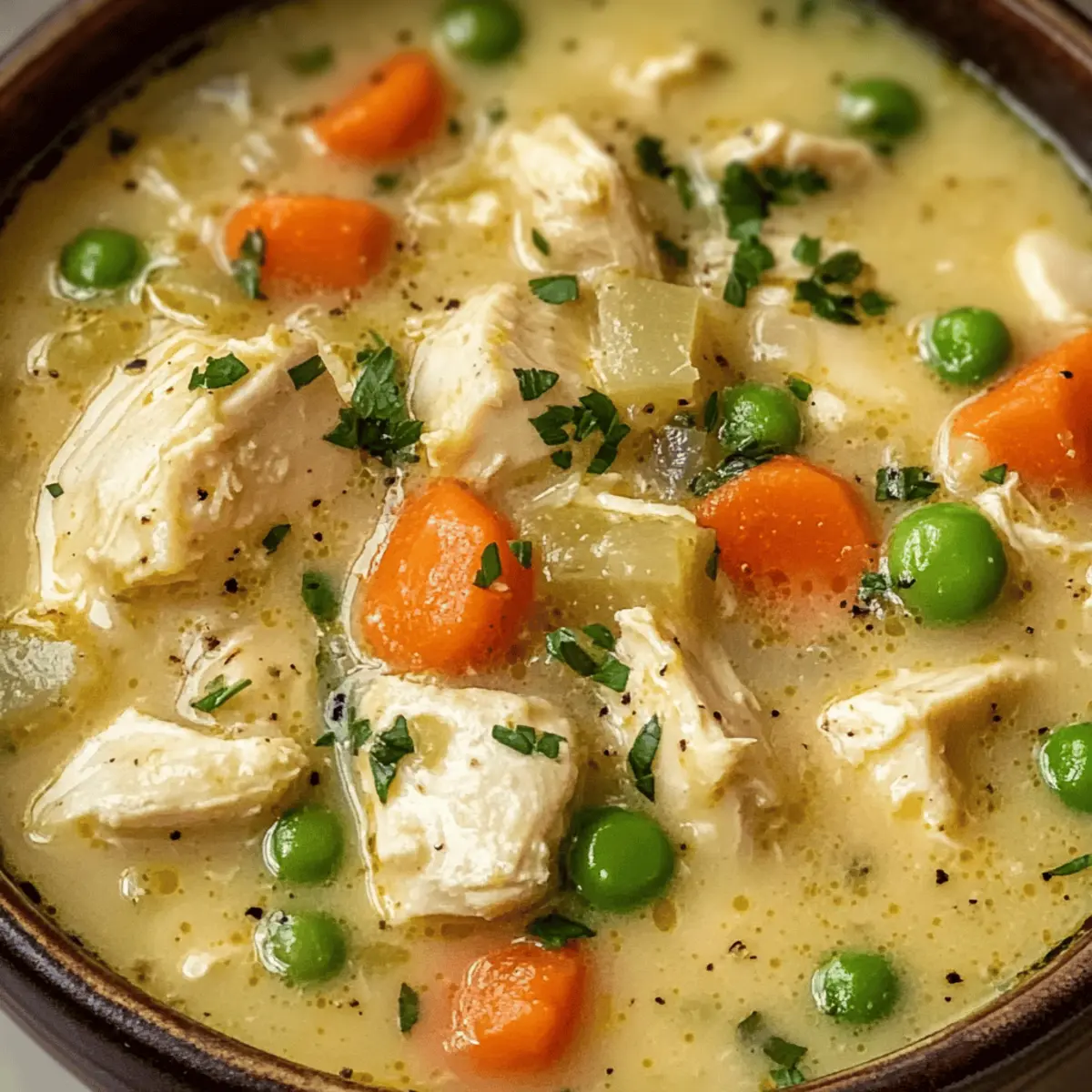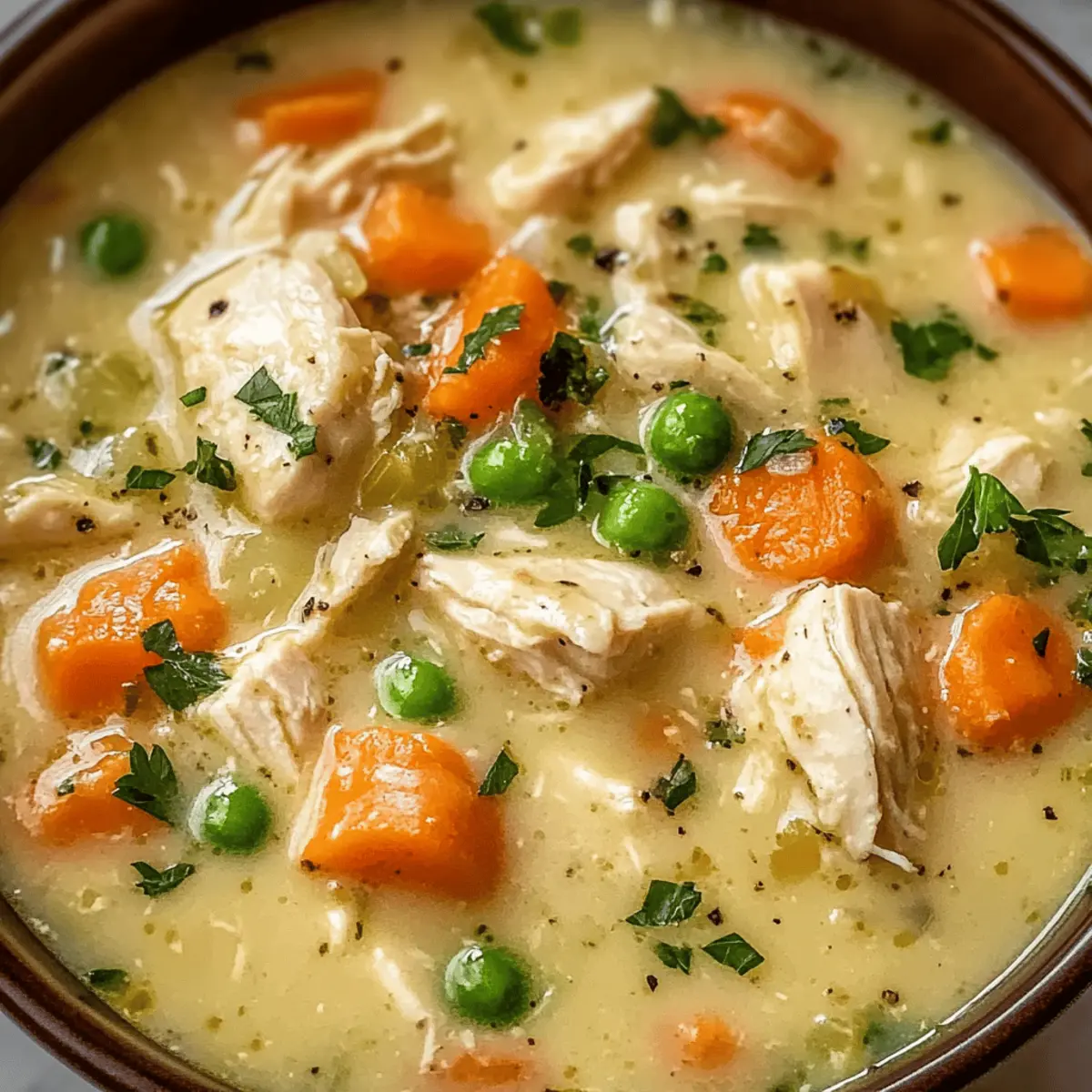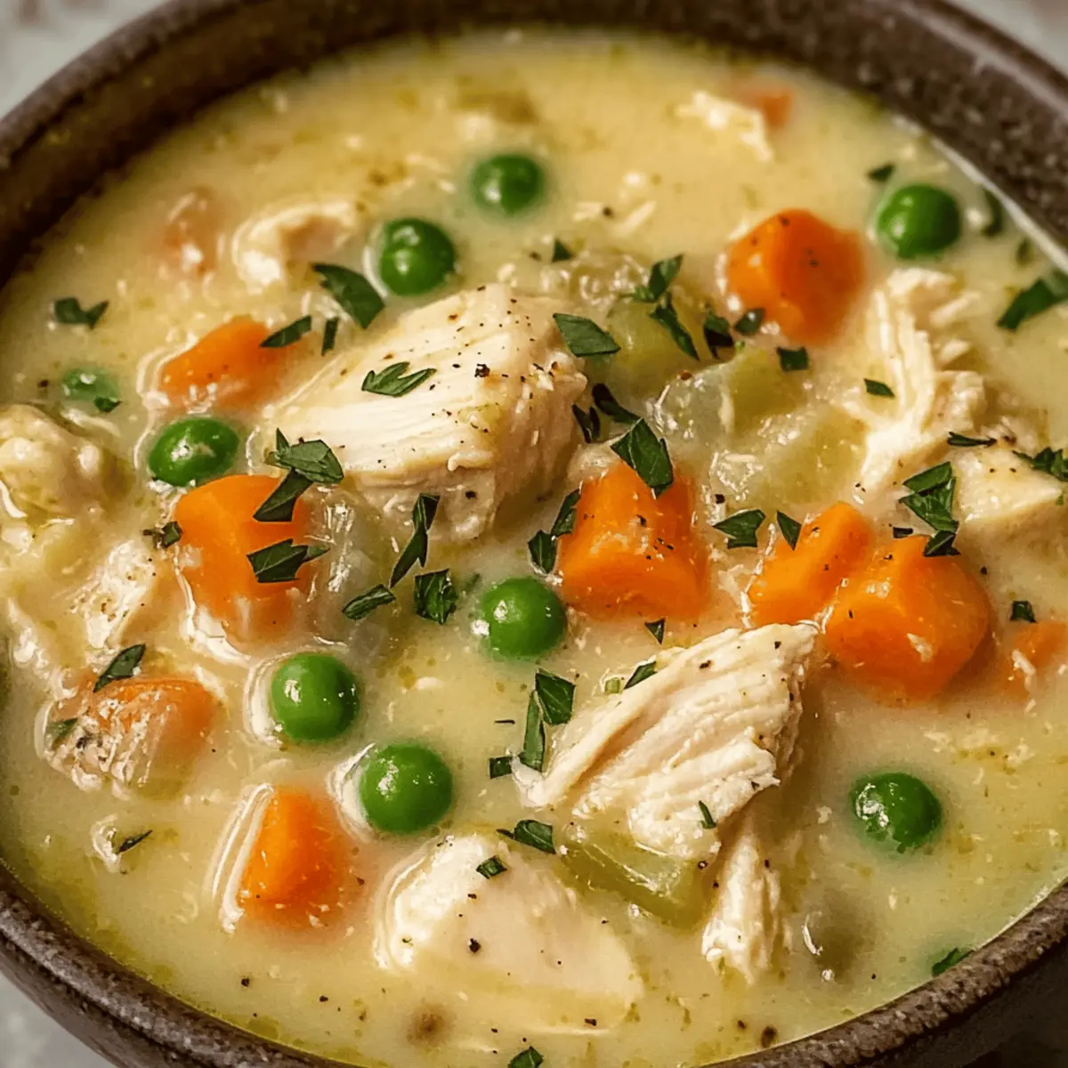 “Can you believe this creamy chicken pot pie has been transformed into a soup?” I overheard a friend marvel during a cozy fall gathering. This High Protein Chicken Pot Pie Soup is an exciting twist on a classic, and it’s quickly become a favorite in my kitchen. With tender chicken, hearty vegetables, and a silky texture, this family-friendly dish is not only a comforting bowl of warmth but also a high-protein delight perfect for busy weeknights. Prepare it in just 30 minutes, and you’ll find it’s as customizable as it is satisfying—whether you prefer a hearty chicken version, a festive turkey swap, or a vegetarian twist with chickpeas or tofu. Ready to dive into a bowl of nostalgia and warmth? Let’s get started! Why is This Soup So Irresistible? Comforting, this High Protein Chicken Pot Pie Soup is like a warm hug in a bowl! Quick to make, you can whip it up in just 30 minutes—a lifesaver for busy weeknights. Customizable, feel free to swap chicken for turkey or chickpeas for a vegetarian option. Flavor-packed, every spoonful is filled with savory herbs and tender vegetables, making it a crowd-pleaser at family gatherings. If you’re a fan of cozy dishes like Chicken Tortilla Soup or One Pot Chicken, this recipe will undoubtedly become a new favorite! High Protein Chicken Pot Pie Soup Ingredients Let’s gather everything you need for this delightful dish! For the Soup Base Olive Oil – Adds fat for sautéing and enhances flavor; substitute with any vegetable oil if needed. Onion – Provides an aromatic base and sweetness; shallots can be used as a milder alternative. Garlic – Adds depth of flavor; fresh is best, but garlic powder works in a pinch. Carrots – Contributes sweetness and color; parsnips are a great substitution for a different flavor. Celery – Essential for the aromatic base; swap with bell peppers for a slightly sweeter taste. For the Main Ingredients Cooked Chicken Breast – The star protein source that provides heartiness; use leftover turkey or rotisserie chicken as a time saver. Low-Sodium Chicken Broth – Acts as the soup’s flavorful base; for a vegetarian adaptation, use vegetable broth instead. Frozen Peas – Adds a burst of sweetness and vibrant color; green beans can be used if preferred. For the Seasoning Dried Thyme – Infuses the soup with an earthy flavor; Italian seasoning can serve as an effective replacement. Dried Rosemary – Enhances the soup’s fragrance and flavor; substitute sage for a different twist. For the Creamy Texture Heavy Cream or Milk – Creates a rich, velvety texture; half-and-half or plant-based milk can be alternatives for a lighter option. All-Purpose Flour – Used for thickening the soup; cornstarch is a great gluten-free alternative. Salt and Pepper – Essential for seasoning; adjust to your taste for a personalized touch. For Garnish Fresh Parsley – Adds a touch of freshness and color; can be replaced with thyme or chives if desired. With these ingredients in hand, you’re ready to create a comforting bowl of High Protein Chicken Pot Pie Soup that fills your kitchen with warm, inviting aromas! Step‑by‑Step Instructions for High Protein Chicken Pot Pie Soup Step 1: Heat the Base In a large pot, heat 1 tablespoon of olive oil over medium heat until shimmering. This will take about 1-2 minutes. Once the oil is warm, add in finely diced onion, minced garlic, sliced carrots, and chopped celery. Sauté these vegetables for approximately 5-7 minutes until they are softened and aromatic, creating a delicious foundation for your High Protein Chicken Pot Pie Soup. Step 2: Add the Chicken and Broth Stir in your shredded cooked chicken and pour in 4 cups of low-sodium chicken broth. Bring the mixture to a gentle simmer over medium heat, allowing it to bubble lightly for about 3-4 minutes. This will blend the flavors and thoroughly heat the chicken, setting the stage for your hearty soup. Watch for a slight steam rising as it reaches that perfect temperature. Step 3: Incorporate the Veggies and Herbs Mix in 1 cup of frozen peas, 1 teaspoon of dried thyme, and 1 teaspoon of dried rosemary. Continue to simmer for another 2-3 minutes, letting the peas soften and their sweetness meld with the broth. You’ll notice a beautiful color and aroma infusing your High Protein Chicken Pot Pie Soup as the ingredients combine harmoniously. Step 4: Create the Creamy Mixture In a small bowl, whisk together ½ cup of all-purpose flour and 1 cup of heavy cream until smooth. Gradually stir this mixture into the pot, ensuring there are no lumps. The soup will begin to thicken as you stir constantly for about 1-2 minutes. Watch as it transforms into a velvety, rich texture that is essential for a cozy, comforting meal. Step 5: Simmer and Season Allow the soup to simmer gently for an additional 10-15 minutes on low heat. This allows the flavors to deepen and the soup to reach the desired thickness. Check for doneness by stirring; it should coat the back of a spoon. Season with salt and pepper to taste, giving it that final comforting touch as the aroma fills the room. Step 6: Serve and Garnish Once the soup has thickened and you’re happy with the flavor, remove it from the heat. Let the High Protein Chicken Pot Pie Soup sit for a few minutes to cool slightly. Then, serve hot in bowls, garnished with freshly chopped parsley. This vibrant touch not only enhances the dish visually but adds a burst of freshness to each spoonful. What to Serve with High Protein Chicken Pot Pie Soup Your cozy bowl of soup is just the beginning of a heartwarming meal that will envelop your senses and gather loved ones around the table. Crusty Bread: Perfect for dipping, this warm and crispy accompaniment soaks up the deliciousness of the soup beautifully. Homemade Biscuits: Light and fluffy, biscuits add buttery richness and make for a satisfying combo that’s reminiscent of old-fashioned pot pie. Garden Salad: A refreshing mix of greens, tomatoes,