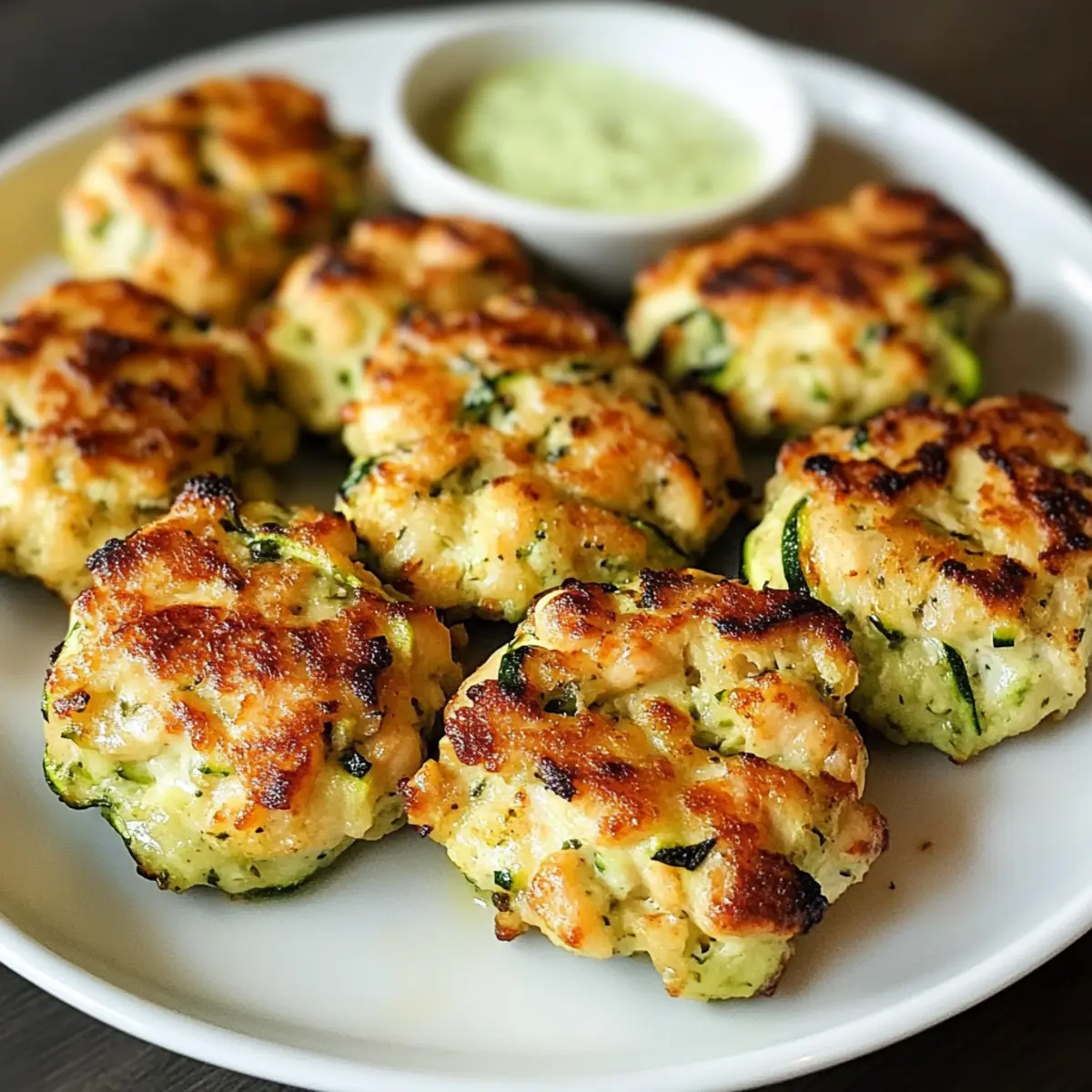 As I rummaged through my fridge one afternoon, a bright green zucchini caught my eye, reminding me of the vibrant flavors waiting to be unleashed. With a flavorful twist, I crafted these High Protein Chicken Zucchini Poppers, a culinary embrace of wholesome ingredients that promises a delicious, nutritious snack. Not only are they incredibly quick to prepare and bake in under 40 minutes, but these poppers also offer a satisfying crunch paired with a juicy center, making them perfect for any gathering or light meal. As a bonus, they’re a healthy alternative to conventional snacks, boasting high protein and a gluten-free option for those looking to clean up their eating habits. Are you ready to explore this delightful recipe and impress your friends with your newfound popper mastery? Why are these poppers a must-try? Healthy Snacking Redefined: These High Protein Chicken Zucchini Poppers are not just tasty; they’re a guilt-free snacking option your taste buds will love! Quick to Make: With just 40 minutes from prep to plate, they are perfect for busy schedules. Versatile Ingredients: Customize with different proteins or seasonings to mix things up. Ground turkey or a kick of cumin, anyone? Deliciously Nutritious: Packed with protein from chicken and cheese, they cater to both health-conscious eaters and flavor seekers alike. Ideal for Entertaining: Serve them as an appetizer or alongside a salad for a light meal. Don’t forget to pair them with a delicious dipping sauce, like marinara or spicy aioli! High Protein Chicken Zucchini Poppers Ingredients For the Poppers • Ground Chicken – the main protein source that keeps these poppers satisfying; feel free to swap it out for turkey or beef for variety. • Zucchini – adds moisture and nutrition; make sure to squeeze it well to prevent excess moisture. You can also use shredded carrots or yellow squash if desired. • Low-Fat Mozzarella Cheese – lends creaminess to the mix; nutritional yeast can be a fantastic dairy-free alternative. • Parmesan Cheese – for that extra flavor kick; try a dairy-free version if you prefer. • Almond Flour – acts as a binder while boosting protein content; traditional breadcrumbs or gluten-free options work too! • Egg – vital for holding the mixture together so each popper stays intact. • Garlic (minced) – enhances the flavor profile with a delightful aroma. • Onion (chopped) – contributes moisture and depth of flavor; don’t skip this! • Italian Seasoning – infuses that beloved Italian taste throughout your poppers. • Salt and Pepper – simple but essential for enhancing the overall taste of your High Protein Chicken Zucchini Poppers. Ready to whip up a batch? Let’s bring these flavorful poppers to life! Step‑by‑Step Instructions for High Protein Chicken Zucchini Poppers Step 1: Preheat the Oven Begin by preheating your oven to 400°F (200°C). While it warms up, line a baking sheet with parchment paper or lightly grease it with olive oil to prevent sticking. This initial setup is key for achieving those perfectly baked High Protein Chicken Zucchini Poppers that are crispy on the outside. Step 2: Prepare the Mixture In a large mixing bowl, combine your ground chicken with the grated zucchini, ensuring you’ve squeezed out any excess moisture. Add the low-fat mozzarella cheese, Parmesan cheese, and an egg to bind everything together. Incorporate minced garlic, chopped onion, almond flour, Italian seasoning, salt, and pepper. Mix thoroughly until you have a uniform blend that is ready to shape. Step 3: Shape the Poppers Take small amounts of the mixture in your hands and shape them into popper-sized balls or patties. Place each shaped popper on the prepared baking sheet, leaving enough space between them for even cooking. This is where your High Protein Chicken Zucchini Poppers start to take form, so aim for uniform sizes for consistent baking. Step 4: Add a Touch of Oil For an extra touch of golden brown perfection, lightly spray or brush the tops of the poppers with olive oil. This step will ensure that your High Protein Chicken Zucchini Poppers achieve a beautiful, appetizing color as they bake and adds a lovely crispness to each bite. Step 5: Bake the Poppers Carefully place the baking sheet in the preheated oven and bake for 20-25 minutes. Keep an eye on them; they should become golden brown and reach an internal temperature of 165°F (75°C). If you desire an extra crispy finish, switch on the broiler for the last minute or two, watching closely to prevent burning. Step 6: Cool and Serve Once the poppers are beautifully golden and cooked through, remove them from the oven and allow them to cool slightly on the baking sheet. This waiting time helps set their shape. Pair your delectable High Protein Chicken Zucchini Poppers with your favorite dipping sauce, such as marinara or spicy aioli, for a delightful snack experience. High Protein Chicken Zucchini Poppers Variations Feel free to get creative with these poppers and tailor them to your taste preferences or dietary needs! Turkey Twist: Substitute ground chicken with ground turkey for a leaner option that still packs a protein punch. Veggie Boost: Replace zucchini with shredded carrots or yellow squash for a colorful and nutritious twist. Dairy-Free Delight: Swap out the mozzarella and Parmesan for nutritional yeast to keep things creamy without dairy. This is a fantastic choice for vegan diets! Breadcrumb Swap: Use whole wheat breadcrumbs instead of almond flour for a traditional texture, perfect for those who prefer a familiar taste. Spicy Kick: Add a dash of red pepper flakes or cayenne pepper to the mixture for an exciting heat that will make your taste buds dance! For a delightful brunch option, you might even consider pairing these with a fresh salad or some homemade Sweet Chili Chicken for an unforgettable meal. Herb Infusion: Sprinkle in some fresh chopped herbs like basil or parsley for extra flavor and 