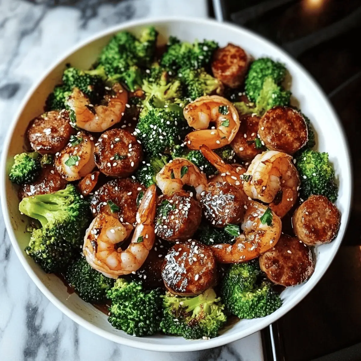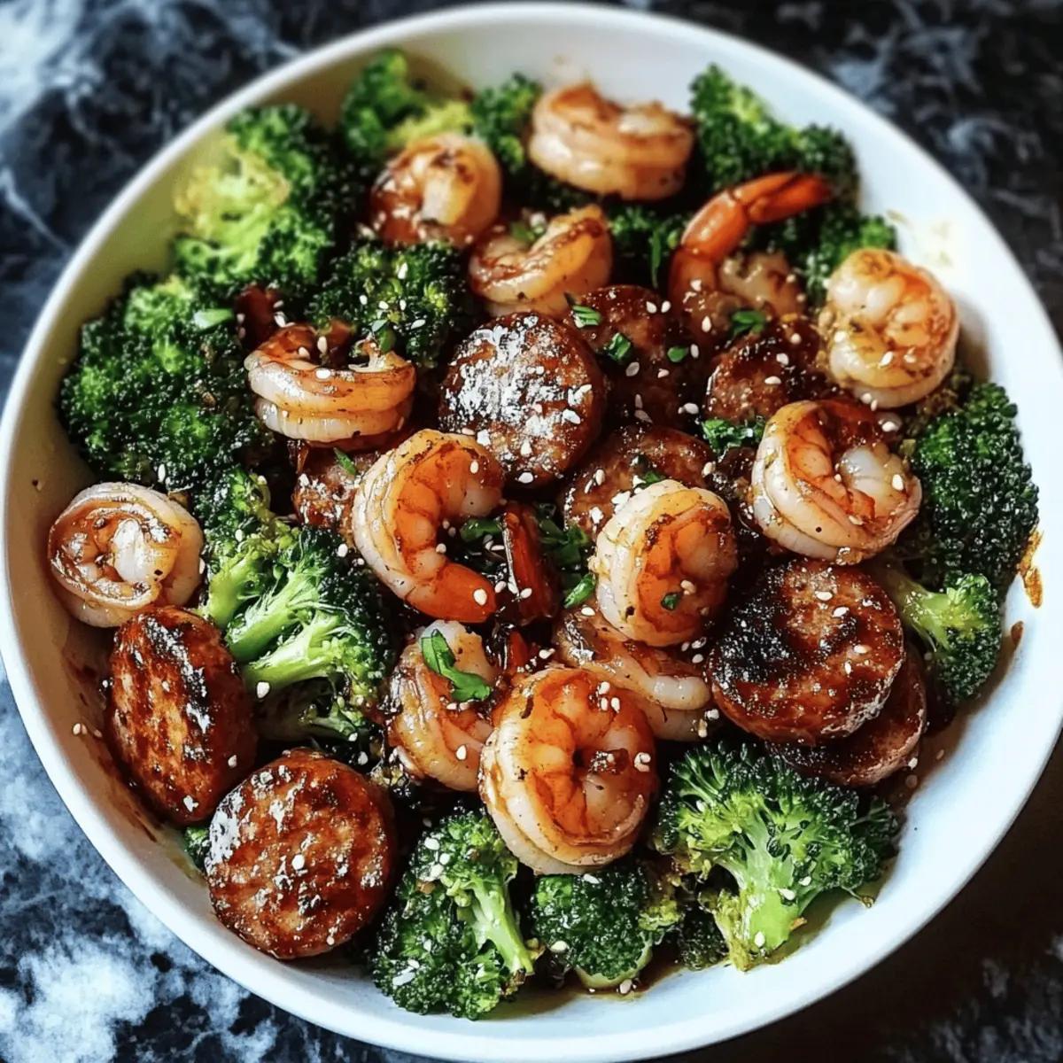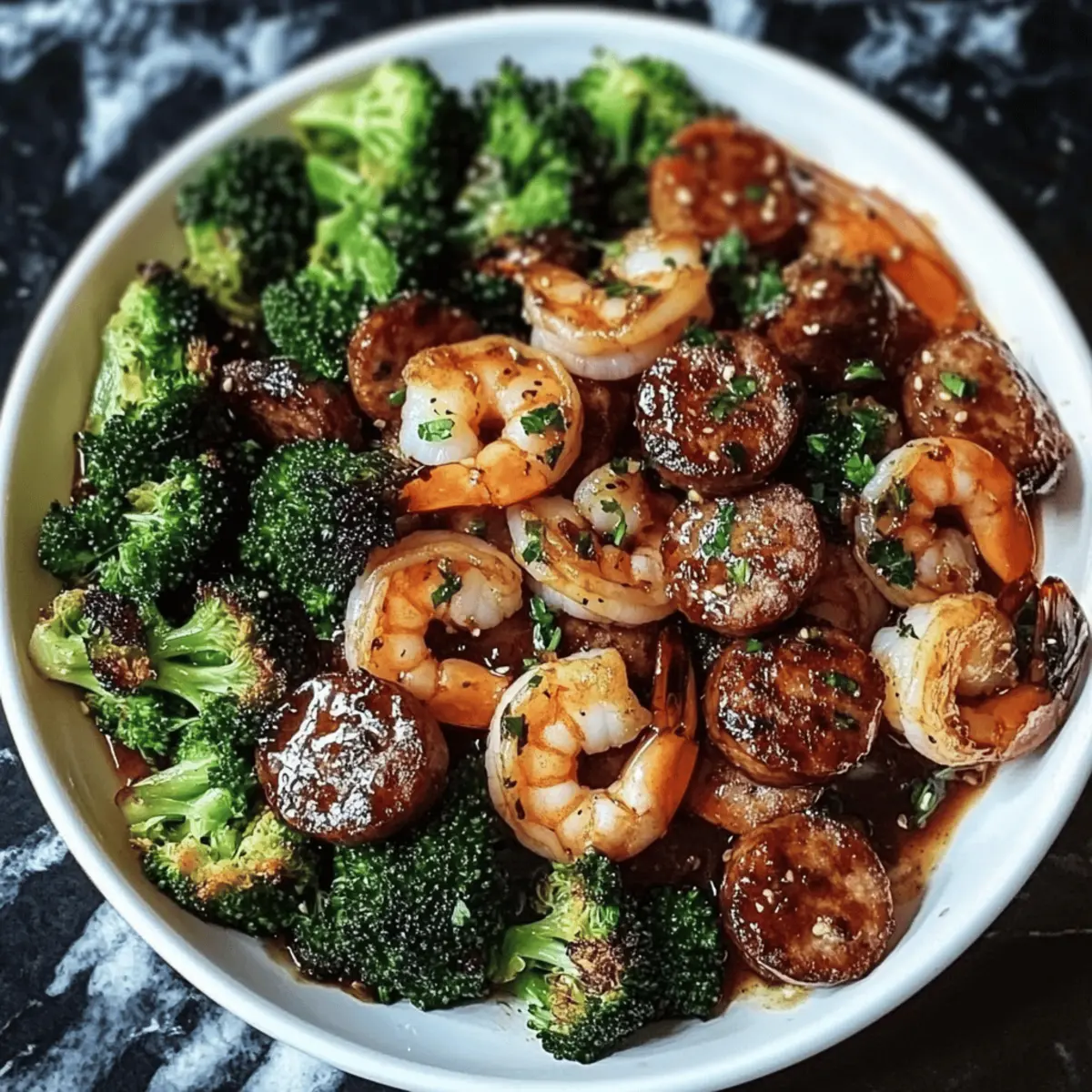 In just half an hour, you can bring the flavors of your favorite takeout home with this Honey Garlic Shrimp and Sausage Skillet. As the sweet, sticky sauce envelops tender shrimp, savory sausage, and vibrant broccoli, you’ll wonder how something this delicious can be so simple! This one-pan dinner not only saves time on cleanup but also allows for endless customization—switch up the veggies or spice levels to match your family’s tastes. Trust me, this recipe is a game-changer for busy weeknights when you crave a comforting meal without the fuss. Are you ready to give your dinner routine a delicious twist? Why is this recipe a must-try? Simplicity: With just one pan and under 30 minutes, this recipe is perfect for busy evenings. Delicious Flavor: The honey-soy-garlic sauce provides a sweet and savory punch that elevates your meal. Versatility: Feel free to customize with your favorite veggies or proteins—chicken or tofu make great substitutes! Quick Cleanup: Say goodbye to piles of dishes; everything cooks in one skillet for minimal mess. Crowd-Pleaser: This dish’s vibrant colors and enticing aromas will have everyone coming back for seconds, much like my Garlic Butter Chicken. Healthy Option: Easily adjusted to be gluten-free or low-sodium, making it fit for various dietary needs! Honey Garlic Shrimp and Sausage Skillet Ingredients For the Protein • Large Shrimp – This main protein provides a succulent texture; ensure they are thawed and patted dry for perfect searing. • Pre-Cooked Sausage (Kielbasa or Andouille) – Adds rich flavor; opt for andouille for a spicy kick or use turkey sausage for a lighter dish. For the Vegetables • Broccoli – A nutritional powerhouse, it adds color and crunch; other veggies like snap peas or bell peppers work well too. For Cooking • Olive Oil – Essential for searing the sausage; it helps achieve that ideal golden, browned flavor. For Garnish • Fresh Parsley – This vibrant herb adds a fresh touch and color to your dish. • Sesame Seeds – Sprinkle these on top for a nutty finish that enhances flavor. For the Sauce • Honey – Acts as the sweetener; warming it slightly beforehand helps it mix more easily. • Low-Sodium Soy Sauce – Offers that essential umami flavor while keeping sodium levels lower; tamari works for a gluten-free alternative. • Garlic – A must-have for flavor; make sure to mince finely for optimal aroma. • Fresh Ginger (optional) – This adds warmth and brightness; though optional, it enriches the sauce. • Sriracha (optional) – Adjust according to your spice preference; adds a gentle heat. • Sesame Oil – Use this as a finish to bring out the nutty profile of your dish. Prepare to enjoy a delightful Honey Garlic Shrimp and Sausage Skillet that pairs perfect texture with incredible flavors! Step‑by‑Step Instructions for Honey Garlic Shrimp and Sausage Broccoli Skillet Step 1: Whisk the Sauce In a medium bowl, combine 1/4 cup of honey, 1/4 cup of low-sodium soy sauce, 3 minced garlic cloves, 1 tablespoon of freshly grated ginger, and optional 1-2 teaspoons of sriracha. Whisk until the mixture is smooth and well combined. This glossy sauce will be drizzled over your shrimp and sausage, elevating the Honey Garlic Shrimp and Sausage Skillet to a whole new level of flavor. Step 2: Sear the Sausage Heat 1 tablespoon of olive oil in a large skillet over medium-high heat. Once the oil is shimmering, add sliced pre-cooked sausage to the pan in a single layer. Sear the sausage for about 2-3 minutes on each side until it’s beautifully browned and fragrant. Once browned, remove the sausage from the skillet and set it aside while keeping the heat on. Step 3: Cook the Broccoli In the same skillet that held the sausage, add 2 cups of broccoli florets, tossing them around to coat in the leftover oil. Cook for 4-5 minutes until the broccoli becomes bright green and slightly charred. Next, add 2 tablespoons of water, cover the skillet, and steam the broccoli for an additional 2 minutes until it’s tender-crisp and vibrant. Step 4: Cook the Shrimp Shift the cooked broccoli to the side of the skillet, creating space for the shrimp. Add 1 pound of thawed, patted dry large shrimp to the empty side of the skillet. Cook the shrimp for 1-2 minutes per side, flipping them when they turn opaque and curl into a C-shape, ensuring they don’t overcook. Remove the skillet from the heat once the shrimp are perfectly pink. Step 5: Combine & Glaze Return the sautéed sausage back to the skillet and pour the prepared honey-garlic sauce over the mixture. Gently toss everything together, allowing the sauce to coat the shrimp, sausage, and broccoli beautifully. Let it simmer for about 2-3 minutes until the sauce thickens slightly, becoming a luscious glaze that binds all the ingredients in your Honey Garlic Shrimp and Sausage Broccoli Skillet. Step 6: Garnish & Serve Once the sauce has thickened, remove the skillet from heat. Garnish the dish with a sprinkle of freshly chopped parsley and toasted sesame seeds for a delightful crunch. Serve the Honey Garlic Shrimp and Sausage Skillet directly from the pan or over a bed of rice, noodles, or cauliflower rice, bringing a delightful and colorful dish to your dinner table! Honey Garlic Shrimp and Sausage Skillet Variations Feel free to mix things up and tailor this dish to your preferences with exciting twists and substitutions! Gluten-Free: Substitute regular soy sauce with tamari for a gluten-free option that maintains the same delicious flavor. Lower Calorie: Use turkey sausage instead of traditional sausage to cut down on fat and calories while still savoring the taste. Vegetarian: Swap shrimp and sausage with tofu or chickpeas to create a protein-rich vegetarian version that’s equally satisfying. Asian Flavor Twist: Add a splash of rice vinegar and sesame oil to enhance the Asian profile of the dish, delivering an extra flavor punch! Spicy Kick: Increase the amount of sri