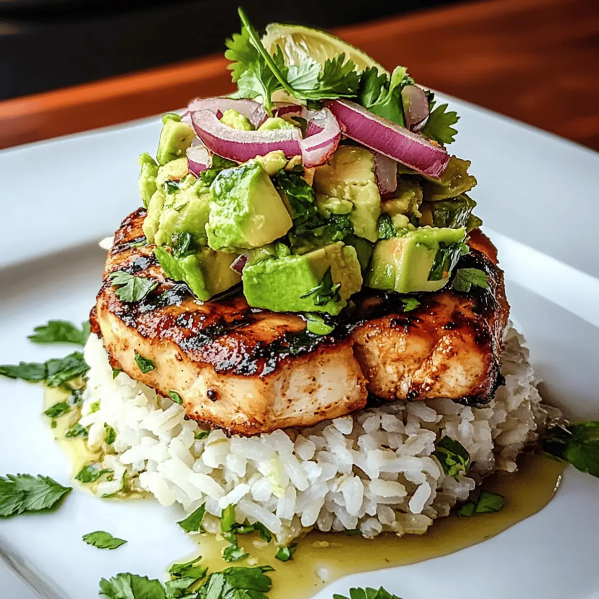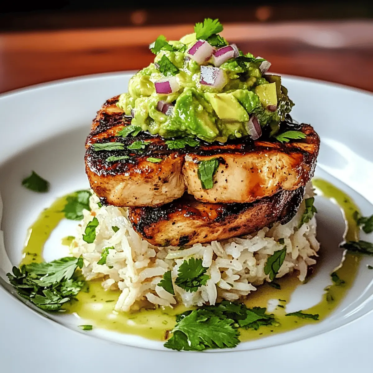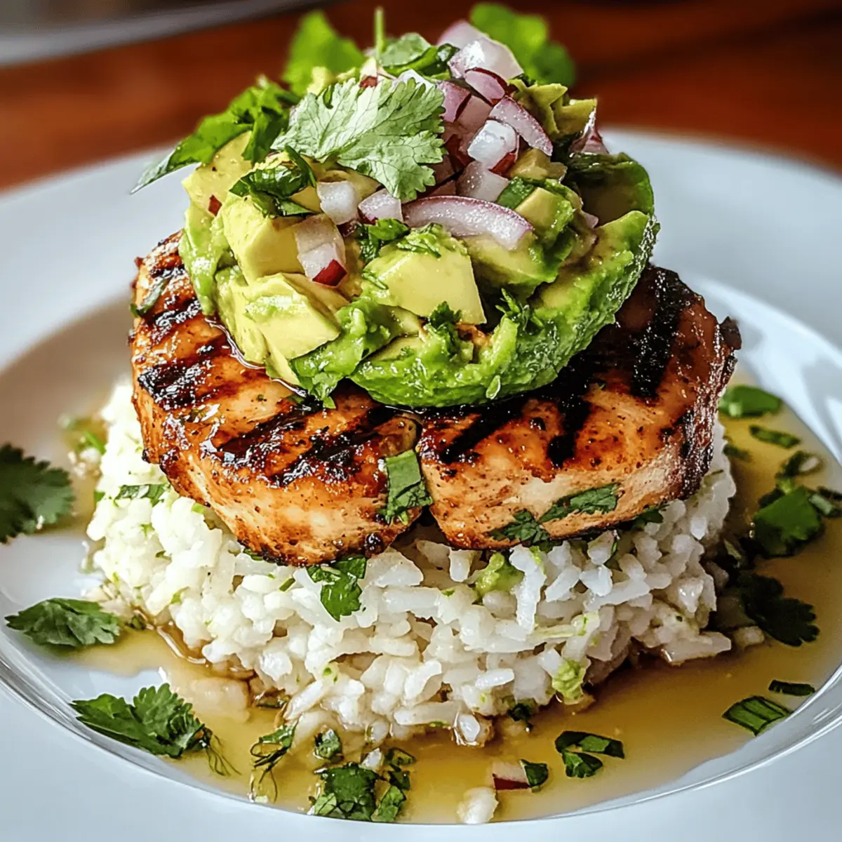 The sizzling sound of grilled chicken hitting the hot pan instantly sparks excitement in any kitchen. When you combine this with the vibrant flavors of honey, lime, and creamy avocado, you’re in for a culinary treat that will tantalize your taste buds. Today, I’m sharing my favorite Honey Lime Chicken & Avocado Rice Stack, a dish that promises to be a crowd-pleaser while being incredibly easy to whip up. Perfect for a quick dinner or a delightful lunch, this recipe is not only beginner-friendly but also packed with zesty goodness that brightens any meal. With juicy chicken layered over fluffy jasmine rice and topped with a fresh avocado mix, you won’t want to miss out on this colorful and satisfying feast. Curious how to create this delicious stack? Let’s dive in! Why is this Honey Lime Chicken a Must-Try? Zesty Flavors that pop in your mouth: The perfect balance of honey sweetness and tangy lime creates an irresistible marinade for the chicken. Quick and Easy: This dish is designed for busy cooks, taking just over an hour from start to finish, making it ideal for a weeknight dinner. Creamy Texture: The avocado adds a luscious creaminess that complements the grilled chicken beautifully, giving each bite a satisfying feel. Versatile Ingredients: Swap jasmine rice for basmati or even quinoa, and experiment with different veggies in the avocado mix for a unique twist! This recipe is certain to satisfy any craving while impressing your friends or family—consider pairing it with a fresh green salad or alongside Corn Chicken Rice for a delightful meal combo! Honey Lime Chicken & Avocado Rice Stack Ingredients Dive into the colorful world of flavors that make this dish unforgettable! For the Chicken Marinade Chicken Breasts – The star of the dish; choose boneless, skinless for the best texture. Honey – Sweetens the marinade; consider agave syrup for a vegan switch! Lime Juice – Key for the tangy flavor; freshly squeezed lime juice makes a big difference. Lime Zest – Enhances the lime aroma; always opt for fresh zest for the best results. Garlic – Adds depth and richness; garlic powder can be used in a pinch (1/4 tsp per clove). Ground Cumin – Infuses warmth into the marinade; omit if you prefer a lighter flavor. Salt and Pepper – Essential to boost all flavors; adjust to your personal palate. For the Rice and Base Jasmine Rice – The fragrant base; can be substituted with basmati rice for a different flavor. Chicken Broth – Enriches the rice; vegetable broth works wonderfully for a vegetarian option. For the Avocado Mix Avocado – Adds creaminess and balances the tangy lime; diced mango offers a nice fruity alternative. Red Onion – Provides a crunchy bite; green onions are a milder option if preferred. Cilantro – Brings a fresh herbal note; parsley can be used as a substitute if you’re not a fan. Olive Oil – Helps combine the avocado mix; avocado oil can also be a healthy replacement. For Serving Lime Wedges – Adds a final touch of zesty brightness; don’t skip these for extra zing! Gather these ingredients to embark on a culinary adventure that perfectly encapsulates the spirit of a Honey Lime Chicken & Avocado Rice Stack—it’s time to impress your loved ones! Step‑by‑Step Instructions for Honey Lime Chicken & Avocado Rice Stack Step 1: Prepare the Marinade In a medium bowl, whisk together the honey, lime juice, lime zest, minced garlic, ground cumin, salt, and pepper. This delicious marinade will infuse the chicken with sweet and zesty flavors. Once combined, set aside for a moment while you get ready to add the chicken. Step 2: Marinate the Chicken Place the boneless, skinless chicken breasts into a resealable plastic bag and pour in the honey lime marinade. Seal the bag tightly, ensuring the chicken is evenly coated. Allow the chicken to marinate in the refrigerator for at least 30 minutes and up to 2 hours for maximum flavor absorption. Step 3: Cook the Rice While your chicken marinates, rinse 1 cup of jasmine rice under cold water to remove excess starch. In a saucepan, bring 2 cups of chicken broth to a boil, then add the rinsed rice. Cover the pot, reduce the heat to low, and simmer for 15 minutes, or until the rice is fluffy and the liquid is absorbed. Step 4: Preheat the Grill Get your grill or grill pan ready by preheating it to medium-high heat. This temperature is essential for achieving those beautiful grill marks and a tasty char on your chicken. Make sure it’s hot enough before you start cooking the chicken. Step 5: Grill the Chicken Carefully remove the chicken from the marinade, allowing any excess to drip off. Place the chicken on the preheated grill and cook for about 6-7 minutes on each side. You’ll know it’s done when the internal temperature reaches a safe 165°F (75°C) and the outside is nice and golden. Step 6: Prepare the Avocado Mix While the chicken is grilling, prepare your avocado mixture. In a mixing bowl, combine the diced avocado, chopped red onion, cilantro, and a drizzle of olive oil. Gently toss these ingredients together until well mixed, ensuring the avocado remains chunky and not overly mashed. Step 7: Assemble the Stack Once the chicken is grilled and has rested for a few minutes, slice it into strips. Now it’s time to layer your Honey Lime Chicken & Avocado Rice Stack! On each plate, place a generous scoop of rice, then layer the sliced chicken on top followed by the creamy avocado mixture. Step 8: Garnish and Serve Finish your vibrant meal with a sprinkle of fresh cilantro and serve lime wedges on the side for an extra burst of citrus. This garnishing not only adds to the flavor but also enhances the visual appeal of your Honey Lime Chicken & Avocado Rice Stack—perfect for impressing your family and friends! How to Store and Freeze Honey Lime Chicken & Avocado Rice Stack Fridge: Store leftover chicken and avocado mix separately in airtight containers for up to 3 days to maintain flavor and texture