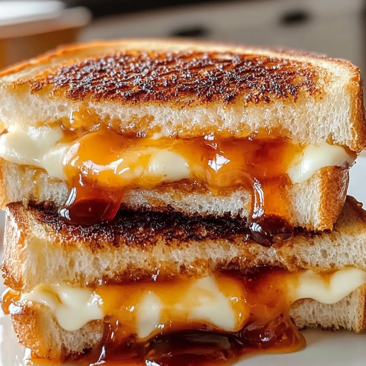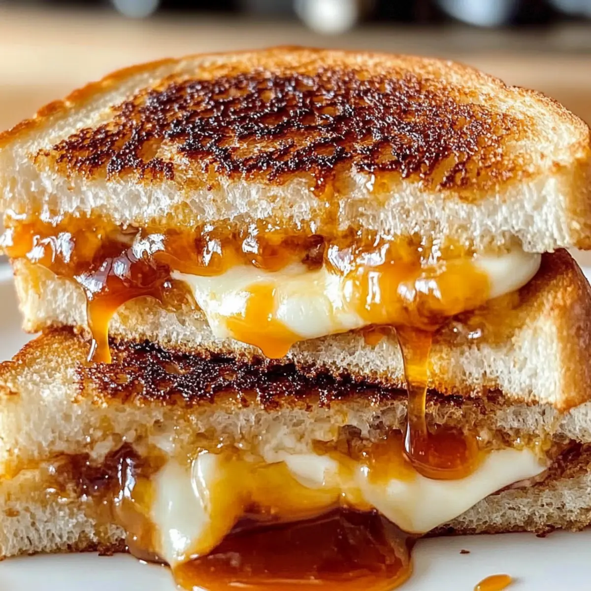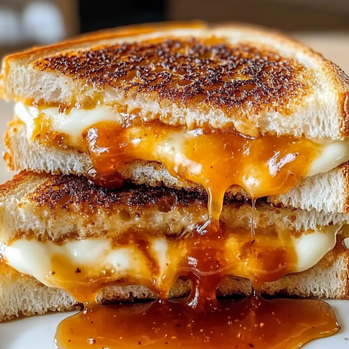As I stood in my kitchen, the aroma of toasty bread mingling with honey and sriracha wafted through the air, igniting a playful culinary adventure. Today, I’m thrilled to share with you my twist on a classic comfort dish: the Honey Sriracha Grilled Cheese. In just under 20 minutes, this vegetarian delight combines gooey, melted cheeses with a sweet and spicy kick that will make your taste buds dance. Not only is it quick to whip up, but it’s also endlessly customizable, making it a family-friendly feast that pleases both the kids and the spice enthusiasts. Whether you enjoy it solo or paired with a bowl of tomato soup, this grilled cheese is sure to become a staple in your kitchen. Curious about how to make your lunch or dinner exciting again? Let’s get started! Ready for a Flavor Explosion? Bold flavors come together in this Honey Sriracha Grilled Cheese, transforming a beloved classic into an unforgettable experience. Customizable heat allows you to adjust the spice level, making it perfect for everyone, from kiddos to adult spice lovers. Quick and easy to prepare, this sandwich is ready in under 20 minutes, perfect for those busy weeknights. Deliciously versatile, feel free to swap in your favorite cheeses or add exciting toppings like jalapeños or roasted red peppers. Pair it with a side of homemade Baked Mac Cheese for a comforting meal that’ll impress your family. Honey Sriracha Grilled Cheese Ingredients For the Bread Sourdough Bread – Provides a hearty texture; can be substituted with country-style or whole wheat bread. For the Cheese Filling Sharp Cheddar Cheese – Delivers robust flavor; try swapping it with gouda or pepper jack for different taste profiles. Mozzarella Cheese – Adds creaminess and meltability; using half a slice ensures sufficient coverage. For the Sweet and Spicy Sauce Honey – Offers sweetness to balance the spice; local honey can add a unique flavor twist. Sriracha Sauce – Introduces heat; adjust based on preference, using less for kids or more for spice enthusiasts. Consider a milder chili sauce as an alternative. For Grilling Unsalted Butter – Essential for grilling; enhances browning and crispiness on the sandwich’s exterior. Step‑by‑Step Instructions for Honey Sriracha Grilled Cheese Step 1: Prepare Honey-Sriracha Sauce In a small bowl, whisk together honey and sriracha sauce to create your sweet and spicy blend. Adjust the ratio based on your preferred level of heat—more sriracha for spice lovers and less for the kids. This flavorful sauce will give your Honey Sriracha Grilled Cheese its signature kick that will have everyone coming back for more! Step 2: Season Bread Take your slices of sourdough bread and spread a thin, even layer of the honey-sriracha mixture on one side of each slice. Ensure you cover the entire surface for maximum flavor. This step is key to infusing your grilled cheese with that delicious, bold flavor profile that makes the Honey Sriracha Grilled Cheese stand out. Step 3: Assemble Sandwiches Place two slices of bread butter-side down on a clean surface. Layer sharp cheddar cheese and half slices of mozzarella on one slice, then top with the second slice, sauce side facing inward. This combination of cheese will provide that nice gooey texture, ensuring your Honey Sriracha Grilled Cheese is irresistibly melty once grilled. Step 4: Butter Exterior Generously spread softened unsalted butter on the outer sides of the assembled sandwiches. Make sure each side is well-coated for a golden-brown crust. The butter helps achieve that perfect crispy exterior, giving your Honey Sriracha Grilled Cheese that desirable crunch when grilled. Step 5: Cook Sandwiches Preheat a nonstick skillet over medium heat. Once hot, carefully place your sandwiches in the skillet and cook for about 3-4 minutes on each side. Press down gently with a spatula to ensure even grilling. Keep an eye out for a beautifully golden-brown color on the bread, and listen for that satisfying sizzling sound as they cook. Step 6: Finish and Serve Once both sides are golden and the cheese has melted, remove the sandwiches from the skillet. Let them rest for 1 minute before slicing them in half. This pause allows the cheese to set slightly, making it easier to enjoy. Serve your Honey Sriracha Grilled Cheese while it’s still hot, and relish in the delightful blend of sweet and spicy flavors! Honey Sriracha Grilled Cheese Variations Feel free to take this delicious grilled cheese on a spicy journey as you customize it to suit your cravings! Dairy-Free: Replace the cheddar and mozzarella with vegan cheese options and use plant-based butter to make it creamy and delightful. You’ll be amazed at how well the flavors still shine through! Extra Heat: Add slices of fresh jalapeño or a drizzle of extra sriracha inside the sandwich for a real kick. This is especially perfect for those who like their flavors to pack a punch! Sweet and Savory: Incorporate slices of fresh apple or pear for a sweet contrast to the spicy elements. The juicy sweetness complements the heat beautifully, bringing an unexpected twist to a familiar dish. Cheese Combo: Swap in gouda or pepper jack cheese for a different flavor profile. Gouda’s smokiness or pepper jack’s added spices can elevate your grilled cheese experience into something truly special. Gourmet Touch: Top your grilled cheese with caramelized onions or roasted red peppers for a gourmet upgrade. These add depth and richness, creating a luxurious bite you won’t forget. Herb Infusion: Mix in some fresh herbs, like basil or cilantro, into your honey-sriracha sauce for an aromatic touch. The fresh flavors will brighten up your sandwich, making every bite refreshing. Crunch Factor: Add a layer of crushed tortilla chips or panko breadcrumbs before grilling for added texture. This crispy surprise will give your grilled cheese an exciting crunch with each bite. Opt for Whole Wheat: Use whole wheat or gluten-free bread for a 