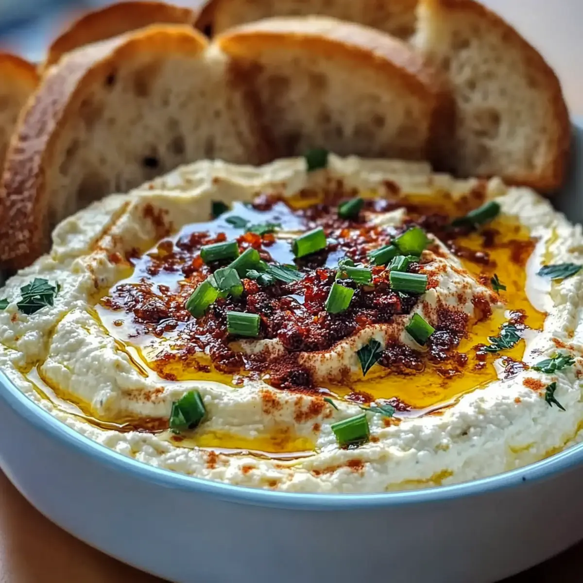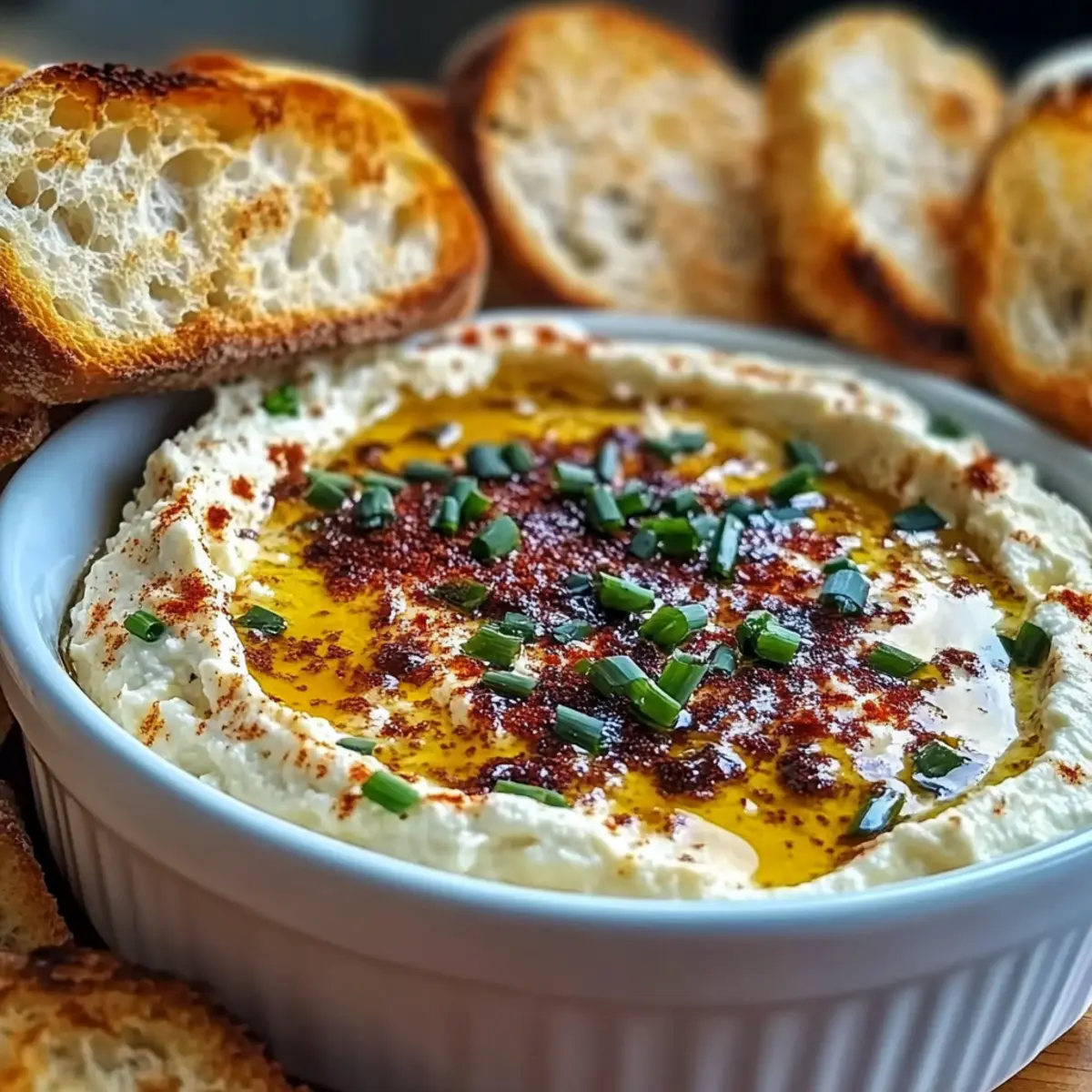 While rummaging through my pantry one day, I stumbled upon a forgotten tub of ricotta cheese that sparked an idea: a Hot Honey Ricotta Dip that would transform any gathering into a gourmet experience. This creamy and somewhat spicy delight is not only an easy appetizer but also a vegetarian wonder that you can whip up in under 30 minutes! Whether it’s a last-minute gathering or a casual weeknight treat, this dip is as versatile as it is flavorful. Just imagine serving this warm, gooey concoction alongside crispy crackers or crusty bread, leaving your guests clamoring for your secret. Curious about how to turn simple ingredients into a showstopper? Let’s dive into this delightful recipe! Why is this dip a must-try? Creamy, Decadent Delight: The smooth ricotta base combined with rich Parmesan creates a dip that feels indulgent without being heavy. Effortless Elegance: With just 30 minutes from start to finish, impressing your guests has never been easier! Versatile Pairing: Serve with your favorite crackers, toasted baguette, or even fresh veggies to create your own appetizer spread. Crowd-Pleasing Flavor: The sweet and spicy hot honey elevates the dip, making it a showstopper at any gathering—try it alongside my Honey Garlic Chicken for a memorable meal! Easily Customizable: Add roasted red peppers or sun-dried tomatoes for a fun twist and tailor it to your taste. Vegetarian Goodness: This recipe is perfect for any dietary preferences, making it a go-to appetizer for everyone. Hot Honey Ricotta Dip Ingredients For the Dip • Whole Milk Ricotta Cheese – A creamy base that provides a rich texture; part-skim ricotta can lighten it up. • Grated Parmesan Cheese – Adds a savory depth; substitute with Pecorino Romano for a sharper taste. • Extra-Virgin Olive Oil – Enhances richness and binds the flavors; canola oil works in a pinch, but won’t add as much flavor. • Lemon Zest – Introduces brightness and a fresh citrus note; lime zest can be a refreshing alternative. • Garlic Powder – Enhances flavor without the harshness of fresh garlic; fresh minced garlic can be subbed (1 clove) but reduce the amount slightly. • Kosher Salt – Balances flavors perfectly; any salt can suffice, but adjust measurements as table salt is denser. • Freshly Ground Black Pepper – Adds a subtle heat; white pepper can be used for a milder flavor if desired. • Hot Honey – Delivers sweetness with a spicy kick, making this dip truly special; substitute with regular honey plus a pinch of cayenne or sriracha for heat. • Chopped Fresh Chives – Garnishes beautifully while adding a mild onion flavor; green onions can be used as a substitute. For Serving • Crusty Bread or Crackers – The perfect vehicle for the dip; feel free to choose pita chips or crunchy veggies for a healthier option. Now that you have all the ingredients laid out, you’re well on your way to crafting this decadent Hot Honey Ricotta Dip that will leave your guests raving. Enjoy the simplicity and joy of creating something truly special! Step‑by‑Step Instructions for Hot Honey Ricotta Dip Step 1: Preheat the Oven Begin by preheating your oven to 375°F (190°C). While the oven heats up, take a small baking dish or an oven-safe skillet and lightly grease it with a drizzle of olive oil. This will ensure your Hot Honey Ricotta Dip comes out easily once baked and adds an extra layer of flavor. Step 2: Mix the Ingredients In a medium mixing bowl, combine the creamy whole milk ricotta cheese, grated Parmesan cheese, extra-virgin olive oil, lemon zest, garlic powder, kosher salt, and freshly ground black pepper. Use a fork or spatula to blend the ingredients together until the mixture is smooth and well combined, showing a cohesive texture indicating it’s ready for baking. Step 3: Transfer and Smooth the Mixture Carefully transfer the ricotta mixture into your prepared baking dish. With a rubber spatula, smooth the top so that it’s even and well-distributed across the dish. This ensures every bite of the Hot Honey Ricotta Dip has that creamy goodness you’re after. Step 4: Bake the Dip Place the baking dish in the preheated oven and let it bake for approximately 12-15 minutes. You’re looking for the edges to become slightly golden and the dip to be heated through—this is when the magic happens, transforming your mixture into an irresistible warm dip. Step 5: Add the Hot Honey Once the dip is baked to perfection, carefully remove it from the oven (it will be hot!). Immediately drizzle a generous amount of hot honey over the surface, allowing it to seep into the warm ricotta. This touch of sweetness paired with the savory base makes the Hot Honey Ricotta Dip even more delightful. Step 6: Garnish and Serve Finish off your dip by sprinkling chopped fresh chives on top for a pop of color and mild onion flavor. Now, it’s time to serve! Pair your gooey Hot Honey Ricotta Dip with crusty bread or your favorite crackers to create the perfect dipping experience. How to Store and Freeze Hot Honey Ricotta Dip Fridge: Store leftover dip in an airtight container for up to 3 days. This allows you to enjoy your Hot Honey Ricotta Dip in a timely manner while keeping it fresh. Freezer: If you need to keep it longer, freeze the dip for up to 1 month. Transfer it to a freezer-safe container and be sure to leave space at the top for expansion as it freezes. Reheating: Thaw frozen dip in the fridge overnight before reheating. Warm it gently in the oven at 350°F (175°C) covered with foil until heated through, about 15-20 minutes. Cold Option: Enjoy any leftover dip cold on toast or as a spread instead of reheating. It still tastes delightful! What to Serve with Hot Honey Ricotta Dip Elevate your gathering with delightful accompaniments that perfectly complement this creamy, sweet, and slightly spicy dip. Crunchy Crackers: Their crisp texture provides a satisfying contrast to the creamy dip, enhancing every bite. Toasted Baguette