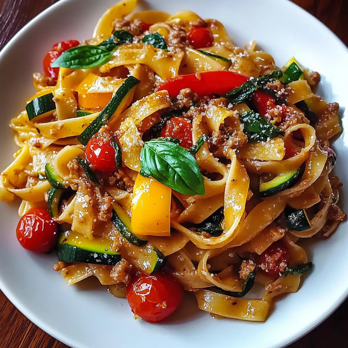These Italian Drunken Noodles are ideal for meal prep aficionados! You can chop your vegetables (bell peppers, zucchini, and garlic) up to 24 hours in advance, storing them in an airtight container in the refrigerator to keep them fresh. You can also cook the noodles ahead of time—just be sure to toss them with a bit of olive oil to prevent sticking and refrigerate them for up to 3 days. When you’re ready to serve, simply sauté the veggies as directed, add your prepped noodles, and finish them off with the sauce and fresh basil for that vibrant flavor. With these make-ahead options, you’ll enjoy a stress-free, delicious dinner in no time!