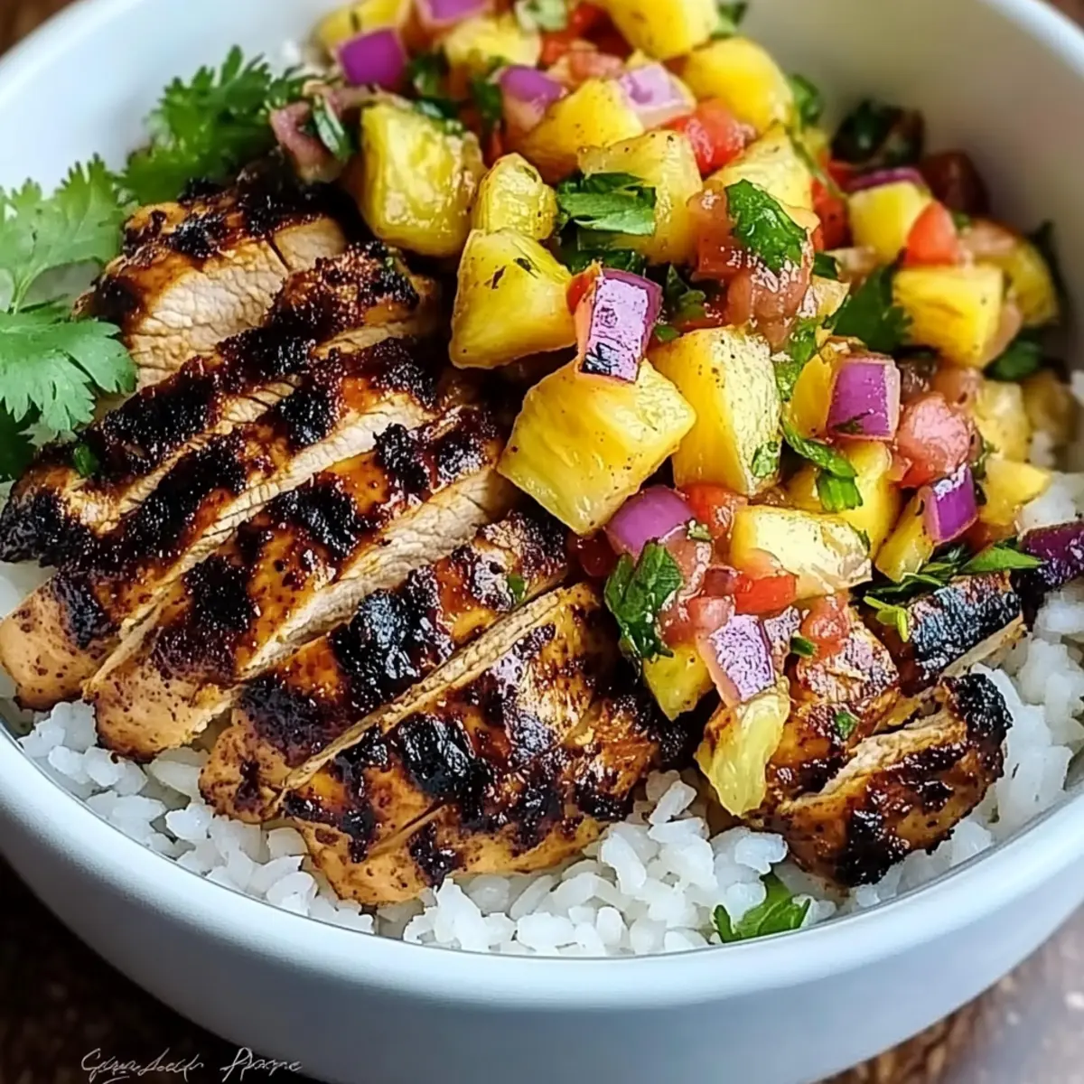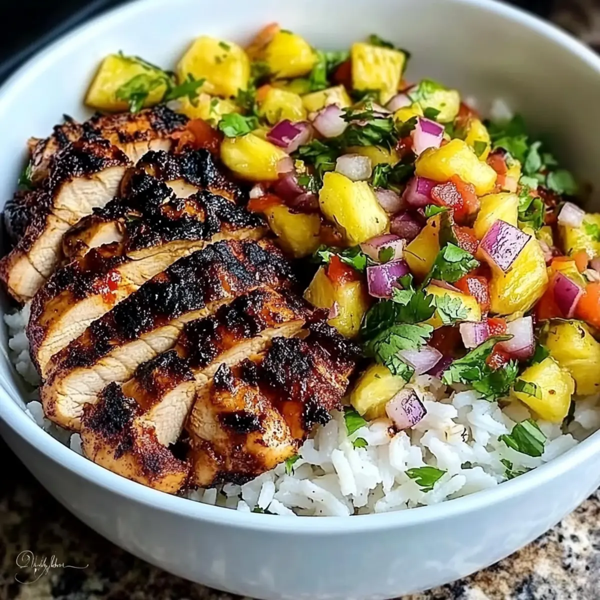 Spicy Jerk Chicken Bowl with Fresh Pineapple Salsa Delight