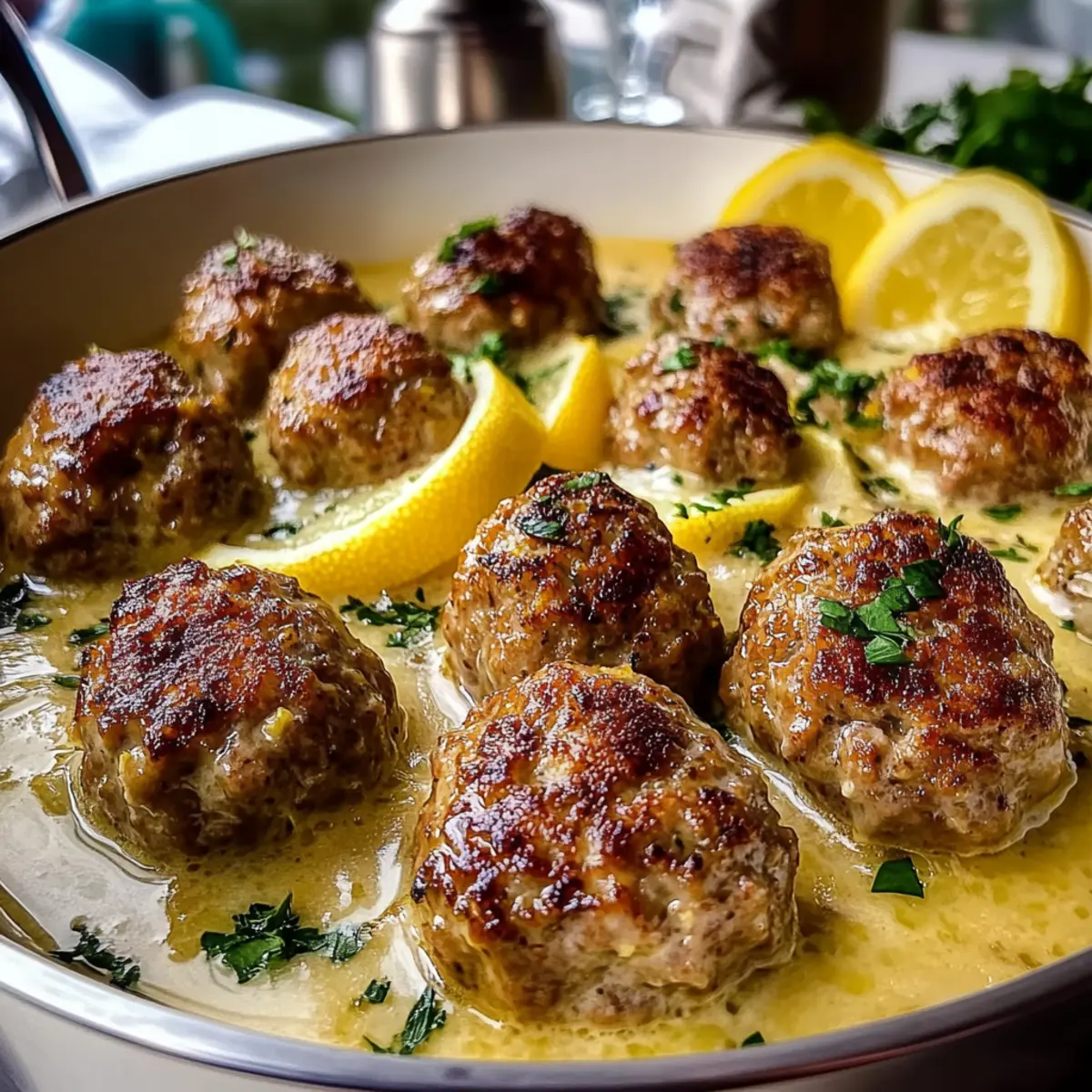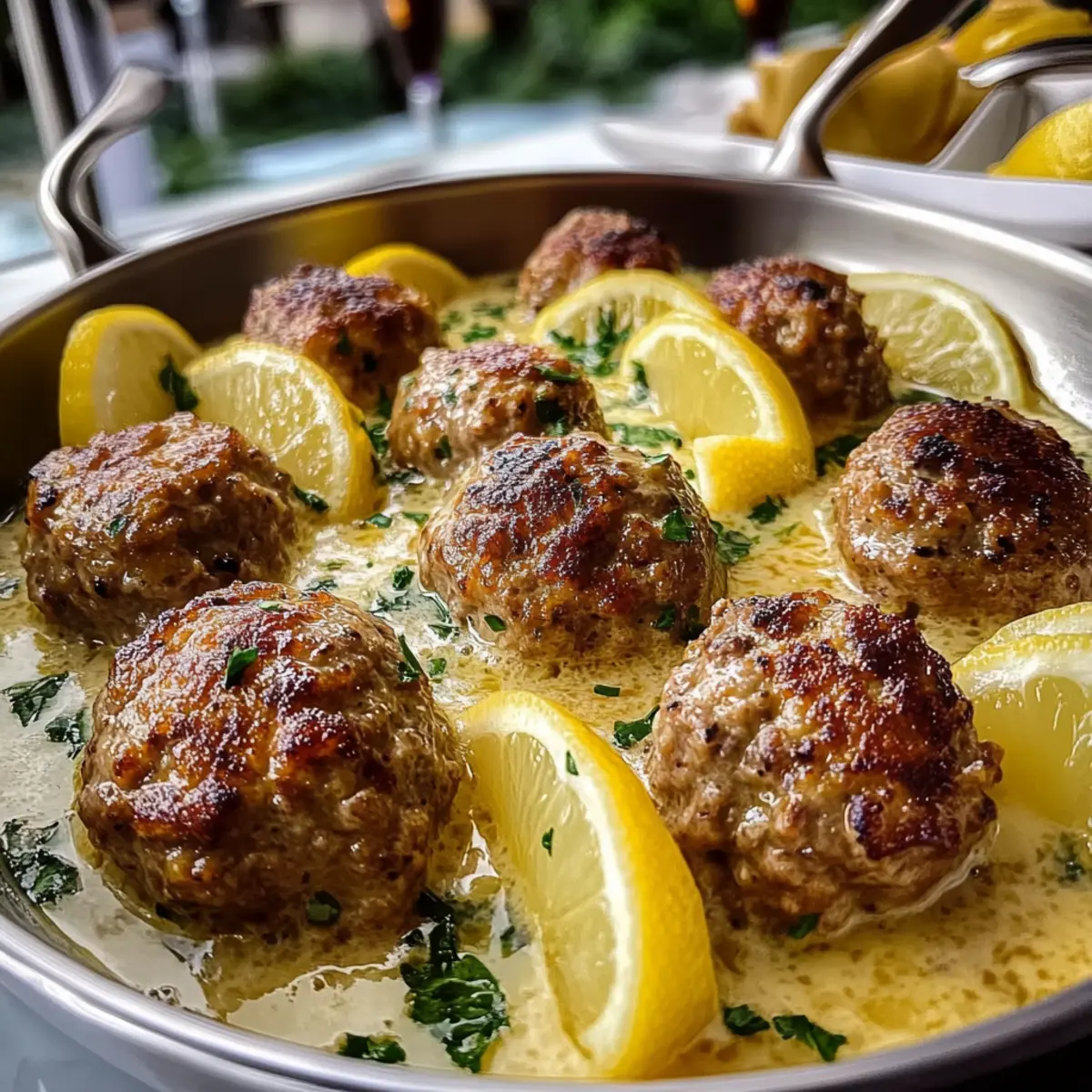 As the sun dipped below the horizon, filling the sky with a warm golden hue, the inviting aroma of sizzling meatballs wafted through my kitchen. These Soft and Juicy Greek Meatballs in Lemony Avgolemono Sauce are my go-to comfort food, infusing our family dinners with the heart of Mediterranean cuisine. Each bite of these tender meatballs, lovingly simmered in a creamy lemon sauce, transports me to sun-kissed landscapes and joyful gatherings. Not only do they promise a cozy meal for any evening, but they’re also adaptable for those seeking a lighter option—just swap the beef for turkey or chicken! Ready in under an hour, they beautifully blend tradition and convenience, making them an irresistible choice for any home chef. Ready to discover just how delightful Mediterranean flavors can transform your cooking? Why are these meatballs so irresistible? Tender Texture: The meatballs are impossibly soft and juicy, providing a delightful contrast to the luscious lemon sauce. Comfort Food Classic: This dish embodies the essence of Mediterranean comfort food, perfect for cozy family dinners or a special gathering. Quick to Prepare: Ready in under an hour, it’s an ideal option for busy weeknights without sacrificing flavor. Versatile Ingredients: Easily adaptable for lighter diets by substituting ground beef with ground turkey or chicken, without losing that comforting essence. A Taste of Greece: Immerse yourself in vibrant flavors that not only satisfy your taste buds but also bring the warmth of Mediterranean culture into your kitchen. Pair these meatballs with fresh herbs and crusty bread, and you’ll find yourself craving this dish daily! If you love lemon flavors, you might also enjoy this Baked Lemon Butter or Lemon Garlic Butter. Juiciest Greek Meatballs Ingredients • The ingredients you’ll need to create the juiciest Greek meatballs in lemon sauce are simple yet flavorful. For the Meatballs Ground Beef – This is your primary protein source; feel free to substitute with ground turkey or chicken for a lighter version. Grated Onion – Adds moisture and flavor; yellow or sweet onions work best for this dish. Arborio Rice – Provides structure and absorbs delicious flavors; make sure it’s uncooked and rinsed beforehand to remove excess starch. Fresh Parsley – Brightens the dish; if you want a fresh twist, you can swap it for mint, or omit it altogether for simplicity. Fresh Dill – This herb adds a distinct note; thyme can be a great substitute for a more savory flavor. Egg – Acts as a binder for the meatball mixture and enriches the average sauce. Oregano – Provide an earthy undertone that rounds out the flavors. Salt and Black Pepper – Essential for taste; season generously to your liking. Chicken Broth – The base cooking liquid for both the meatballs and the sauce; low-sodium broth is a healthy option. Olive Oil – Enhances flavor and aids with cooking, giving your dish that Mediterranean touch. For the Avgolemono Sauce Eggs (for sauce) – Essential for creating the creamy texture of the avgolemono sauce; whisk them well before use. Lemon Juice – Infuses the sauce with the distinctive tang; about 1/4 cup is needed to achieve the right flavor. Now that you have all the ingredients ready, let’s unleash the deliciousness of these juiciest Greek meatballs in lemon sauce! Step‑by‑Step Instructions for Juiciest Greek Meatballs in Lemon Sauce Step 1: Prepare the Meatball Mixture In a large mixing bowl, combine ground beef, grated onion, arborio rice, chopped parsley, dill, one egg, oregano, salt, and pepper. Use your hands or a spatula to gently mix until the ingredients are well-combined, but be careful not to overmix, which can toughen the meat. Cover the bowl with plastic wrap and let it chill in the refrigerator for about 15 minutes to firm up. Step 2: Shape the Meatballs Once the mixture is chilled, scoop and shape it into golf ball-sized meatballs, about 1.5 inches in diameter. As you form each meatball, place it on a parchment-lined baking sheet, ensuring they have a little space between them to prevent sticking. This step is crucial for the juiciest Greek meatballs in lemon sauce, as it helps maintain their shape during cooking. Step 3: Cook the Meatballs In a wide pot, heat the chicken broth and olive oil over medium heat until it reaches a gentle simmer. Carefully add the shaped meatballs to the pot, taking care not to overcrowd them—this ensures even cooking. Cover with a lid and let them simmer on low heat for about 30 minutes, or until they are cooked through and lightly browned on the outside. Step 4: Whisk the Avgolemono Sauce While the meatballs are cooking, whisk together the eggs and lemon juice in a separate bowl until well combined. This egg-lemon mixture is what makes the avgolemono sauce unique and creamy. To prevent curdling, ladle a small amount of hot broth from the pot into the egg mixture while whisking constantly, gradually warming it up. Step 5: Combine Sauce and Meatballs Once the egg mixture is tempered, pour it slowly back into the pot with the meatballs, stirring gently to avoid scrambling the eggs. Keep the heat on very low to allow the avgolemono sauce to thicken slightly, which should take just a few minutes. Be careful not to boil the sauce, as that will ruin its creamy texture. Step 6: Final Touches and Serve Remove the pot from the heat once the avgolemono sauce has thickened to your liking. Taste and adjust the seasoning with more salt and pepper if needed. Serve the juiciest Greek meatballs in lemon sauce warm, garnished with extra dill or lemon wedges if desired, and soak up the sauce with crusty bread or a side of rice for a delightful meal. Tips for the Best Greek Meatballs Perfectly Tender: Mix the meatball ingredients gently; overmixing can lead to tough meatballs. Keep that wonderful juiciness! Rinse the Rice: Ensure arboreal rice is rinsed before adding it to the mix; this prevents clumping and helps achieve th