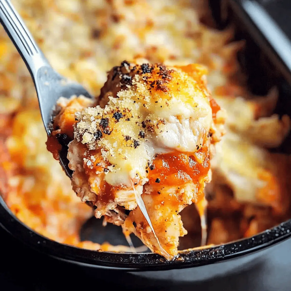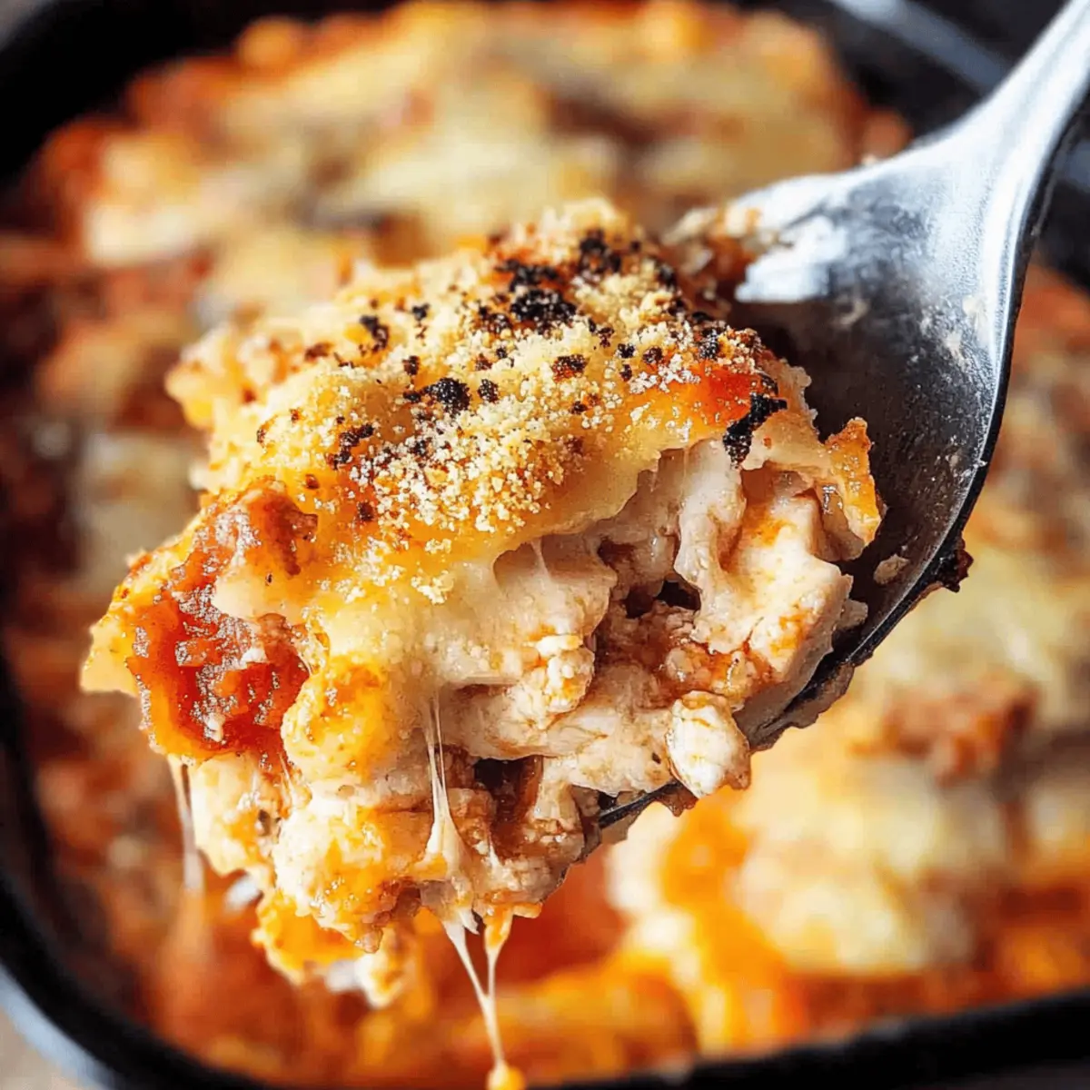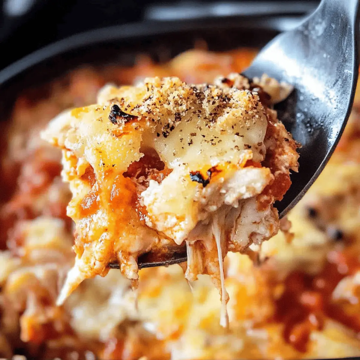 One evening, while sifting through my pantry for something to whip up, I stumbled upon a treasure: a jar of zesty marinara and some leftover rotisserie chicken. That’s when the idea for my Keto Chicken Parmesan Casserole sparked! This easy family meal combines tender chicken, robust marinara, and a cheesy crust, all while keeping it low carb and gluten-free. Not only does this casserole capture the essence of a classic chicken Parmesan, but it’s also a perfect solution for busy weeknights, leaving plenty of time for family fun. Plus, it’s a guaranteed crowd-pleaser that even the kids adore. Ready to indulge in a comforting dish that’s guilt-free? Let’s dive into this delicious recipe! Why is this casserole a must-try? Comforting, Hearty Meal: This Keto Chicken Parmesan Casserole combines familiar flavors with a twist, offering a truly satisfying dish for the whole family. Easy to Make: Quick preparation means you can spend less time in the kitchen and more time with loved ones. Versatile Ingredients: Feel free to customize with veggies like spinach or swap chicken for turkey, making it adaptable to your pantry. Crowd-Pleasing Appeal: Kids and adults alike can’t resist its gooey, cheesy crust and zesty marinara – a guaranteed hit at the dinner table. Guilt-Free Indulgence: With low carbs and gluten-free options, you can enjoy that classic chicken Parmesan flavor without the guilt. Don’t forget to check out my Cheesy Chicken Enchiladas or Air Fryer Parmesan Garlic Chicken Skewers for more quick and tasty family meals! Keto Chicken Parmesan Casserole Ingredients For the Chicken Base Cubed Rotisserie Chicken – Cooked and cubed chicken serves as the hearty base of this dish; feel free to swap it with cooked chicken breast for a fresh alternative. Non Added Sugar Marinara Sauce – Provides rich tomato flavor and moisture; using homemade marinara gives you better control over sugar content. For the Flavor Italian Seasoning – A blend of herbs that enhances the Italian flavor profile; fresh herbs offer a more intense taste. Minced Garlic – This key aromatic ingredient elevates the dish’s flavor; you can substitute it with garlic powder if needed. For Cooking Olive Oil – Used for sautéing garlic and chicken mixture; any preferred cooking oil can replace it if desired. For the Sauce Almond Flour – Acts as a thickener in the sauce; coconut flour or all-purpose flour works well for non-keto diets. For the Cheesy Topping Grated Parmesan Cheese – Adds a savory, cheesy flavor and forms a crunchy top layer; opt for freshly grated for better melt quality. Shredded Mozzarella Cheese – Provides gooey texture and richness; low-moisture mozzarella is recommended for the best results. Finely Crushed Parmesan Crisps or Pork Rinds – Creates a crunchy topping on the casserole; crushed crackers can be used for non-keto versions. For Baking Non-stick Cooking Spray – Prevents sticking to the casserole dish; a must for easy cleanup! With these ingredients, you’re on your way to creating a delicious Keto Chicken Parmesan Casserole that will delight your family without the carbs! Step‑by‑Step Instructions for Keto Chicken Parmesan Casserole Step 1: Preheat the Oven Begin by preheating your oven to 350°F (175°C). This ensures that when the Keto Chicken Parmesan Casserole is ready, it will bake evenly and thoroughly. Make sure to have your 9″x13″ casserole dish on hand, as you’ll be using it shortly. Step 2: Sauté the Garlic In a large skillet, heat a tablespoon of olive oil over medium heat until it shimmers. Add the minced garlic and sauté for about 1 minute, stirring constantly until fragrant but not browned. This aromatic start will enhance the flavor of your casserole, making it irresistible. Step 3: Combine Ingredients Next, add the cubed rotisserie chicken, Italian seasoning, marinara sauce, and almond flour to the skillet. Mix well, cooking for approximately 5 minutes until the mixture is heated through and fragrant. The chicken should be coated evenly in the sauce, creating a rich base for your casserole. Step 4: Transfer to Casserole Dish Carefully transfer the chicken-marinara mixture into your greased 9″x13″ casserole dish, spreading it out evenly. This will serve as the hearty foundation of your Keto Chicken Parmesan Casserole. Ensure there are no gaps, as this helps the flavors meld beautifully while baking. Step 5: Add the Cheesy Layers Sprinkle grated Parmesan cheese generously over the chicken mixture, followed by a layer of shredded mozzarella cheese, ensuring an even distribution. Finally, top it off with finely crushed parmesan crisps or pork rinds for that delightful crunch. Visualize the bubbling, cheesy goodness that’s about to unfold! Step 6: Bake the Casserole Place the casserole dish into the preheated oven and bake for 25–30 minutes. Keep an eye on it; the cheese should melt and become golden and bubbly, creating a mouthwatering crust. This is when the aromas fill your kitchen, promising a delicious meal ahead. Step 7: Let It Rest Once baked, remove your Keto Chicken Parmesan Casserole from the oven and allow it to cool for 5 minutes. This brief resting period helps the layers settle and makes serving easier, ensuring that each slice holds together beautifully. Enjoy this comforting dish with your family! How to Store and Freeze Keto Chicken Parmesan Casserole Fridge: Keep any leftover Keto Chicken Parmesan Casserole in an airtight container for up to 3 days. This ensures it stays fresh and ready for quick meals later in the week. Freezer: If you want to freeze the casserole, do so before baking. Cover tightly with foil or plastic wrap and store in the freezer for up to 2 months. When ready to use, thaw in the fridge overnight and bake as directed. Reheating: To reheat, place your leftover casserole in the oven at 350°F (175°C) for about 20-25 minutes until heated through and the cheese is melted. This method helps maintain its del