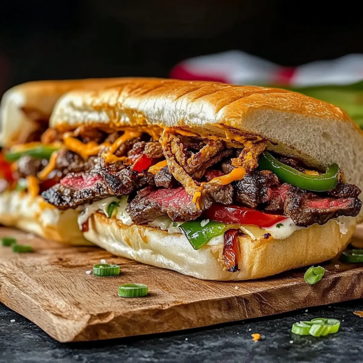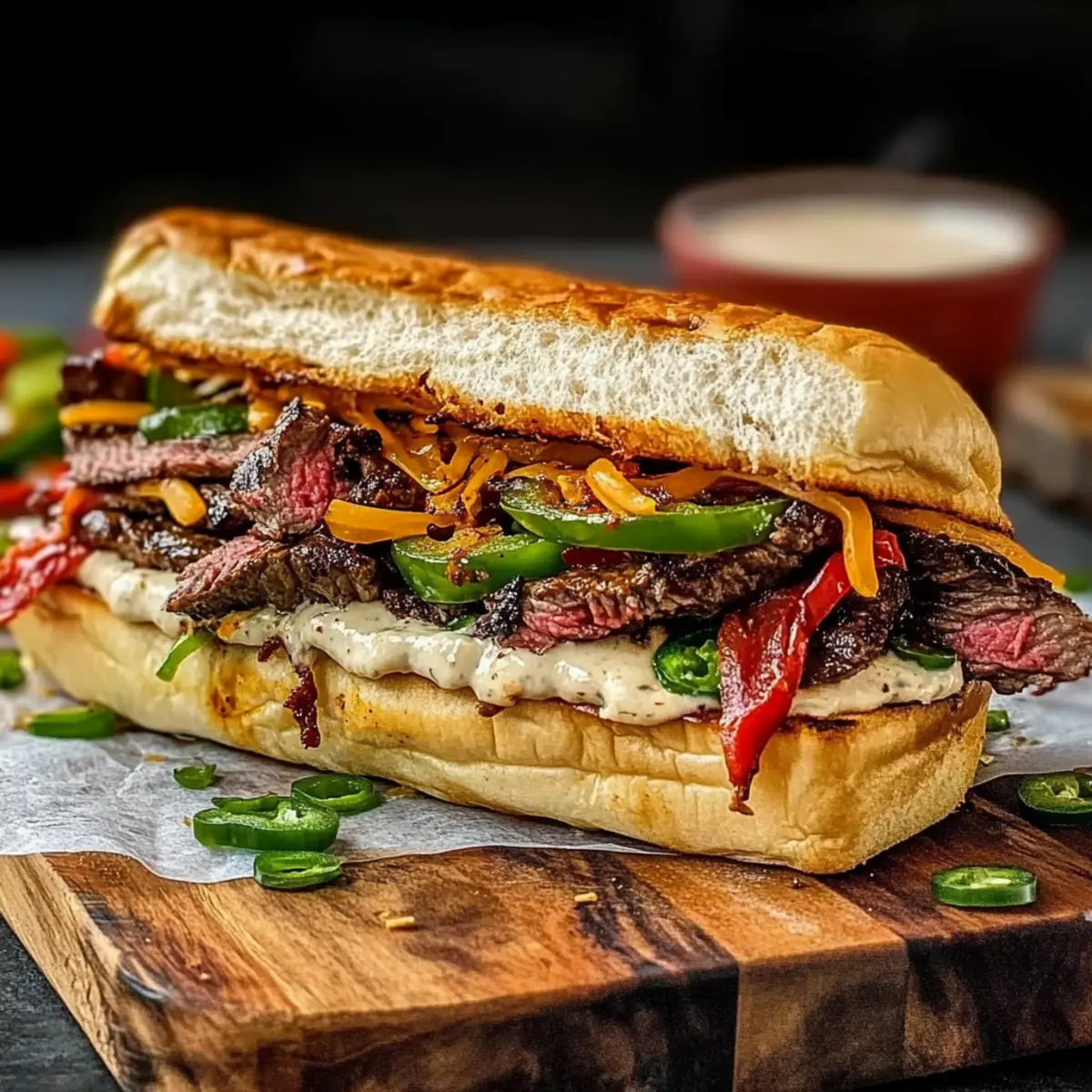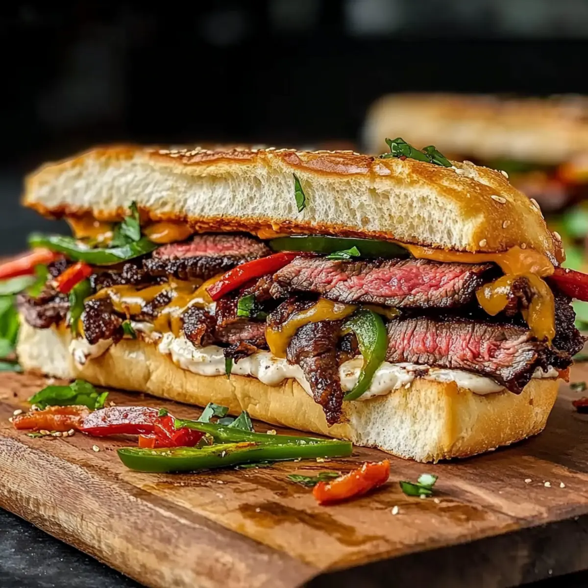 Walking through a bustling market in Seoul, the air is rich with the tantalizing aroma of grilled meats and fresh veggies. It’s here that the inspiration for my Bold and Spicy Korean Steak Sandwich hit me like a burst of flavor! This dish effortlessly merges Korean flavors with the comforting vibes of a classic sandwich, featuring tender ribeye marinated in a harmonious blend of sweet and spicy gochujang. It’s not only quick to prepare, making it perfect for busy weeknights, but it’s also a crowd-pleaser that will impress family and friends alike. With crispy bell peppers and a creamy garlic mayo, this sandwich elevates a simple meal into a savory experience you won’t forget. Ready to take your taste buds on a delicious adventure? Let’s dive into this mouthwatering recipe! Why is this Korean Steak Sandwich a Must-Try? Mouthwatering Flavors: This sandwich features tender ribeye marinated in a sweet-and-spicy gochujang blend that keeps you coming back for more. Quick Preparation: In just 30 minutes, you can whip up this savory delight, making it perfect for busy weeknights or a surprise brunch for guests. Versatile Ingredients: Feel free to experiment! Substitute cheeses or add extra veggies like mushrooms or spinach for a unique twist. Crowd-Pleasing Appeal: Serve it at your next gathering, and watch your friends rave about this exciting fusion of Korean flavors with a classic comfort food vibe. Experience the simplicity of preparation while still delivering a gourmet taste that rivals any restaurant dish. The Bold and Spicy Korean Steak Sandwich with Creamy Garlic Mayo is everything you didn’t know you needed in your recipe rotation! Korean Steak Sandwich Ingredients For the Marinade • Ribeye Steak – Offers rich flavor and tender texture; substitute with sirloin or flank steak for similar results. • Soy Sauce – Adds saltiness and umami depth; use low-sodium versions to control salt levels. • Gochujang Paste – Introduces a sweet and spicy flavor; for milder taste, reduce the amount or choose a milder chili paste. • Minced Ginger – Adds warmth and enhances flavor; fresh ginger is preferred for depth. • Light Brown Sugar – Balances the savory notes with sweetness; white sugar can be a substitute. • Rice Wine – Contributes subtle acidity and sweetness; dry sherry or apple cider vinegar can be used as alternatives. • Garlic Cloves – Provides robust flavor; garlic powder can substitute if needed, adjusting quantity accordingly. • Grated Apple – Offers unexpected sweetness and moisture; pears can be a suitable replacement. • Toasted Sesame Oil – Enhances the nutty flavor profile; avoid if allergic, use another oil instead. • Black Pepper – Adds mild heat; adjust based on personal preference. For the Sandwich • Oil (for cooking) – Necessary for sautéing; any neutral oil works well. • Bell Peppers – Provide sweetness and crispness; opt for colorful varieties for visual appeal. • Bread (Thick slices) – Acts as the base; sourdough or ciabatta works wonderfully for added texture. • Salted Butter – Ensures a crispy, golden exterior; substitute with olive oil for a dairy-free version. • Mature Cheddar Cheese – Melts beautifully and adds richness; consider mozzarella or dairy-free alternatives as substitutes. • Red Onion – Offers sharpness and enhances the sandwich’s color; white onion can be used for a milder taste. • Jalapenos – Adds heat; omit or swap with pickled jalapenos for less spice. • Spring Onions (Scallions) – Adds freshness; they can be omitted without affecting the recipe. For the Garlic Mayo • Mayonnaise – Acts as a creamy base for the sauce; Greek yogurt can provide a lighter option. • Garlic (for mayo) – Boosts the flavor of the homemade mayo; adjust to taste. • Sweet Chili Sauce – Adds sweetness; can be omitted or replaced with honey for a different twist. This Korean Steak Sandwich is sure to be a hit, combining earthy, spicy, and savory ingredients for a truly delightful mouthful! Step‑by‑Step Instructions for Korean Steak Sandwich Step 1: Prep Steak Begin by placing the ribeye steak in the freezer for 30 minutes, allowing it to firm up slightly. This makes it easier to slice into thin strips, around 2mm in thickness. A sharp knife is essential here for clean cuts, ensuring your steak pieces are uniform for even marinating and cooking. Step 2: Marinate In a bowl, whisk together soy sauce, gochujang paste, minced ginger, light brown sugar, rice wine, minced garlic, black pepper, grated apple, and toasted sesame oil. Once well combined, add the sliced steak strips and coat them thoroughly in the marinade. Allow the beef to marinate at room temperature for 30 minutes, enhancing the flavors and tenderness. Step 3: Cook Steak Heat a skillet over high heat and add a splash of oil. Once shimmering, add the marinated steak strips, spreading them out to sear evenly. Cook for about 4-5 minutes, ensuring the beef caramelizes nicely while draining any excess liquid. Once done, remove the steak from the skillet and let it rest on a plate while keeping the pan warm. Step 4: Cook Vegetables In the same skillet, toss in the colorful bell peppers and sauté for 2-3 minutes. You want them to become bright and slightly tender while still retaining their crispness. This step adds a vibrant texture and sweetness to your Korean Steak Sandwich, complementing the savory meat perfectly. Step 5: Assemble Sandwiches Butter the outside of each thick slice of bread, creating a golden, crispy exterior. On one slice, layer the cooked steak strips followed by the sautéed bell peppers, a sprinkle of sesame seeds, cheddar cheese, thinly sliced red onion, jalapenos, and spring onions. Top with another slice of buttered bread to complete the assembly. Step 6: Grill Heat the same skillet or a sandwich press over low to medium heat. Place the assembled sandwich in the pan and grill for 2-3 minutes on each side, or unt