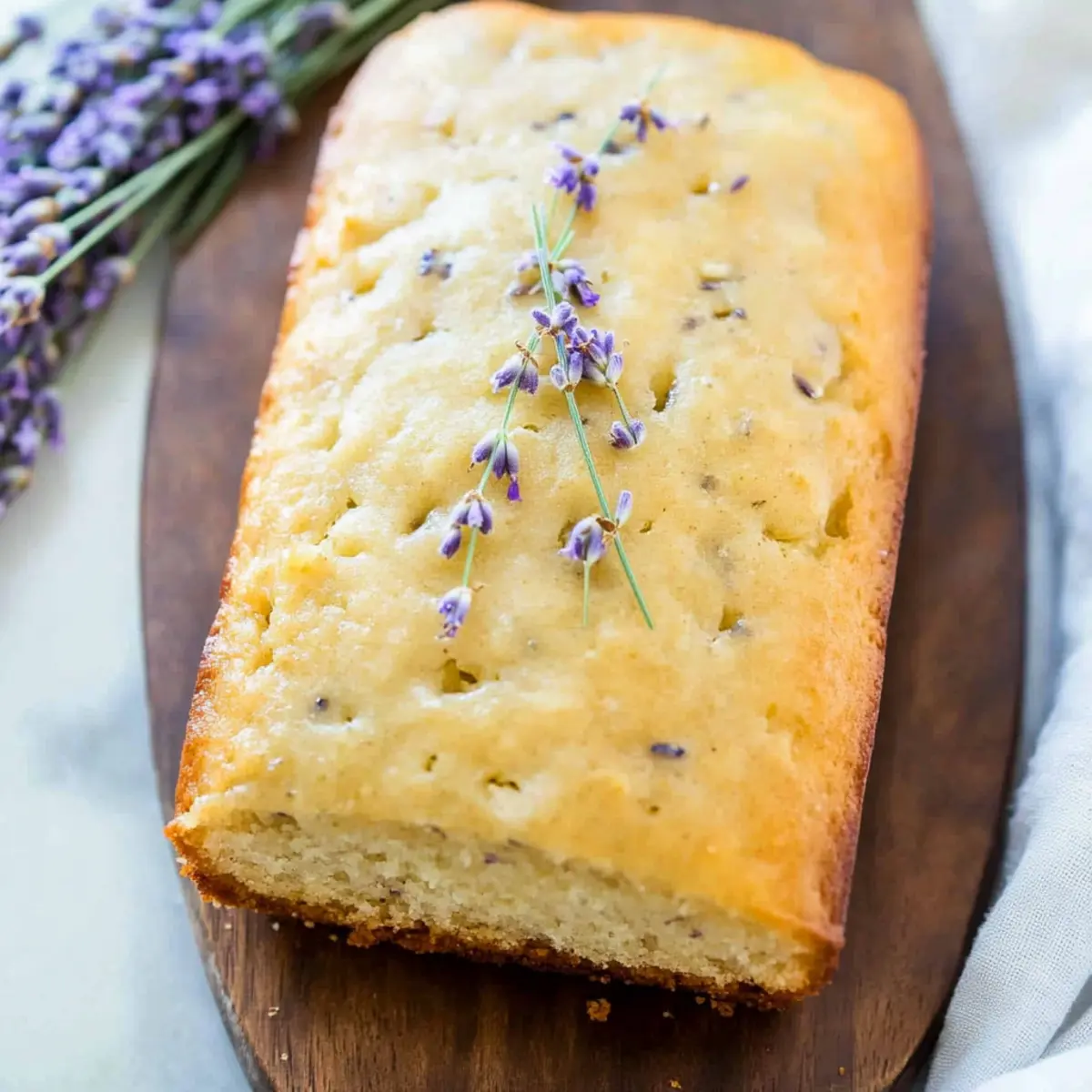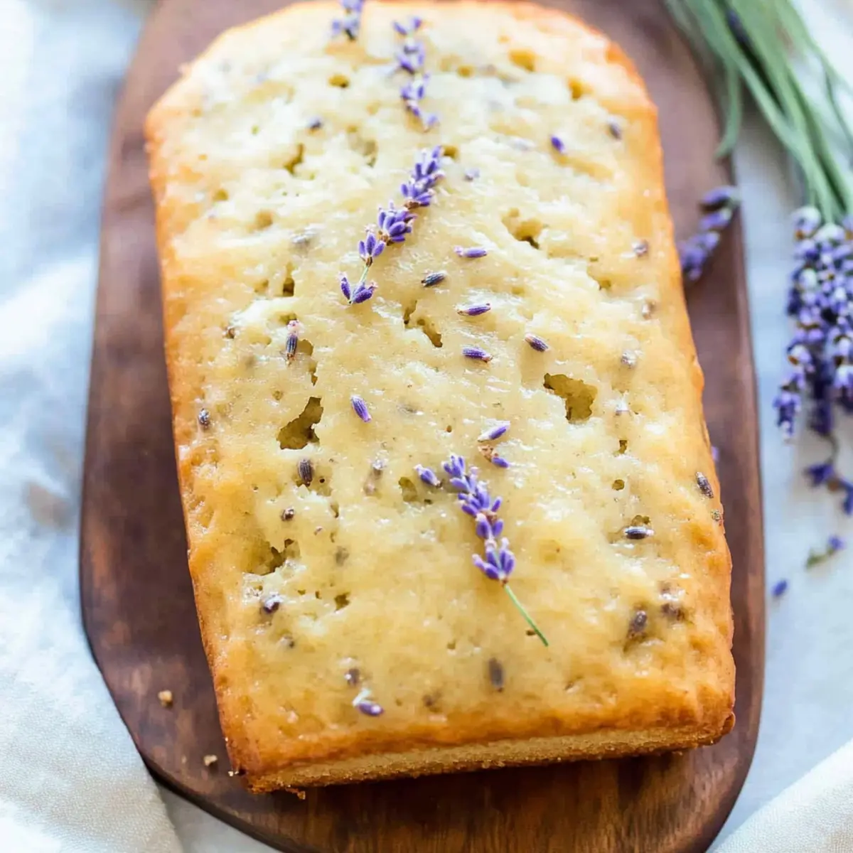 The aroma of lavender wafted through the air as I connected with my inner Downton Abbey. Inspired by the elegance of that iconic world, I set out to create a delightful treat: Lavender Tea Bread. This loaf, infused with the soothing flavors of fresh lavender, is not only a quick recipe to whip up but also a stunning centerpiece for your next tea party. Its moist texture and zesty glaze will leave your guests in awe, transforming ordinary tea time into a truly special occasion. Whether you’re a seasoned home chef or just getting started, this Lavender Tea Bread promises to be a crowd-pleaser that even your most discerning friends will adore. Curious how to make this enchanting treat? Let’s dive into the recipe together! Why Choose Lavender Tea Bread? Unique Flavor Profile: The floral notes of lavender combined with citrusy lemon zest create an extraordinary taste that elevates any gathering. Quick to Prepare: With simple, easily accessible ingredients, this delightful bread is perfect for those busy days when you crave something special. Perfect for Tea Time: Serve alongside your favorite brews to impress guests or enjoy a cozy afternoon alone. Versatile Variations: Swap out lavender for other herbs or edible flowers to shake things up, making each loaf a new adventure! Whether you enjoyed my Banana Bread Old or love a cheesy twist like in my Joe Garlic Bread, you’ll want to add this to your regular baking rotation. Lavender Tea Bread Ingredients For the Bread • 3/4 cup milk – Adds moisture to the bread; substitute with almond or soy milk for a dairy-free option. • 1 Tbsp. fresh lavender (or 3-4 tsp. dried) – Provides a distinct floral flavor; dried lavender is often preferred for convenience. • 6 Tbsp. butter, softened – Ensures a rich, tender texture; can be replaced with coconut oil for a dairy-free version. • 1 cup white sugar – Adds sweetness and structure; substitute with coconut sugar for a less refined option. • 1 tsp. lemon zest – Enhances flavor complexity; use orange zest for a different citrus note. • 2 eggs – Binds the ingredients together and adds moisture; can use flax eggs (2 tbsp. flaxseed meal + 6 tbsp. water) for vegan option. • 1/4 cup Greek yogurt (or plain/vanilla) – Provides tanginess and moisture; replace with a nondairy yogurt for a vegan alternative. • 1/2 tsp. vanilla extract – Adds depth of flavor; optional to increase for a more vanilla-forward taste. • 2 cups all-purpose flour – Main structure of the bread; use whole wheat flour for a heartier loaf. • 1 1/2 tsp. baking powder – Leavening agent to help the bread rise; make sure it’s fresh for best results. • 1/2 tsp. salt – Balances sweetness and enhances flavor. For the Glaze • 1/2 cup sifted powdered sugar – Used for the glaze; can replace with a sugar-free alternative if desired. • 3 tsp. lemon juice – Adds tartness to the glaze; use more for a zippier glaze. • 1/2 tsp. vanilla extract (for glaze) – Complements the lemon flavor in the glaze. Step‑by‑Step Instructions for Lavender Tea Bread Step 1: Preheat the Oven and Prepare the Pan Begin by preheating your oven to 325°F (165°C). While it heats, grease a 9×5 inch loaf pan with butter or non-stick spray, ensuring every corner is covered for easy loaf removal. If you prefer, you can also use three smaller pans. This prepares the perfect environment for your lovely Lavender Tea Bread to rise beautifully without sticking. Step 2: Infuse the Milk with Lavender In a small saucepan, gently heat 3/4 cup of milk along with 1 tablespoon of fresh lavender over medium heat until it just begins to simmer. Once it reaches a gentle simmer, remove it from heat and allow it to cool slightly. This infusion will enrich your Lavender Tea Bread with a delightful floral aroma that will fill your kitchen. Step 3: Cream Butter and Sugar In a mixing bowl, cream together 6 tablespoons of softened butter and 1 cup of white sugar until the mixture is smooth and light. This should take about 2-3 minutes. Once well combined, add in 2 eggs, 1 teaspoon of lemon zest, 1/4 cup of Greek yogurt, and 1/2 teaspoon of vanilla extract, mixing until everything is incorporated and creamy. The batter should appear fluffy and vibrant, setting a strong base for your lavender-infused creation. Step 4: Combine Dry Ingredients In a separate bowl, whisk together 2 cups of all-purpose flour, 1 1/2 teaspoons of baking powder, and 1/2 teaspoon of salt. This step is essential for evenly distributing the leavening agent throughout your Lavender Tea Bread. Gradually mix these dry ingredients into the wet mixture, starting with a third of the flour blend, alternating with the infused milk, and continuing until all ingredients are just combined. Avoid overmixing to keep your loaf tender. Step 5: Fill the Pan and Bake Pour the batter into your prepared loaf pan, ensuring it’s evenly distributed. If using smaller pans, divide the batter accordingly. Place it in the preheated oven and bake for 45-50 minutes for the larger loaf, or about 30 minutes for the smaller versions. Your Lavender Tea Bread is done when a toothpick inserted into the center comes out clean, with a golden brown top that looks inviting. Step 6: Prepare the Glaze While the bread is baking, prepare the glaze. In a small bowl, whisk together 1/2 cup of sifted powdered sugar, 3 teaspoons of lemon juice, and 1/2 teaspoon of vanilla extract until smooth. The glaze should have a pourable consistency, ready to enhance the moist texture of the Lavender Tea Bread once it is baked and cooled slightly. Step 7: Glaze the Bread As soon as you’ve removed your Lavender Tea Bread from the oven, allow it to cool in the pan for about 20 minutes. Then, carefully poke small holes across the top of the still-warm loaf and pour the glaze over it, allowing it to soak in. This step adds a delightful citrusy sweetness that complements the lavender beautifully, making each slice incredibly flavorfu