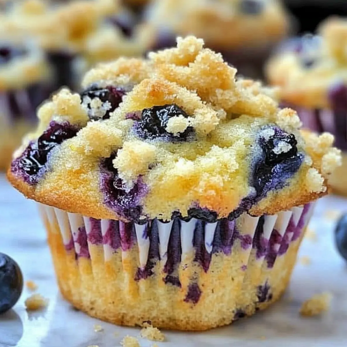 As I opened the door to my kitchen one sunny morning, I was greeted by the fresh, invigorating aroma of lemons reminding me that a batch of Lemon Blueberry Muffins was just moments away. These delightful treats blend the tangy zest of lemon with the sweet burst of blueberries for a breakfast that’s both nutritious and gratifying. Packed with Greek yogurt for moisture, this easy recipe guarantees you’ll whip up fluffy, bakery-style muffins in no time—perfect for busy mornings or when you need a quick snack. And the best part? They’re kid-friendly and freezer-friendly, making them a go-to for families. Ready to delight your taste buds and fill your kitchen with warmth? Let’s dive into this scrumptious recipe together! Why are these muffins a must-try? Moist and Flavorful: Each muffin is packed with juicy blueberries and the bright zest of lemon, making every bite a refreshing treat. Easy to Make: With straightforward steps and minimal ingredients, you can whip these up in no time—perfect for busy mornings! Kid-Friendly: These Lemon Blueberry Muffins are a hit with kids, ensuring a nutritious breakfast they’ll actually enjoy. Freezer-Friendly: Bake a batch and store extras in the freezer for quick snacks or breakfasts throughout the week! Versatile Variations: Feel free to get creative—swap blueberries for your favorite berries or make a delightful lemon glaze for extra sweetness. Plus, if you’re a fan of bright and zesty flavors, check out our Lemon Velvet Cake for another tasty lemon-inspired treat! Lemon Blueberry Muffin Ingredients For the Muffins All-purpose flour – Provides structure; substitute with a gluten-free flour blend if needed. Granulated sugar – Adds sweetness; brown sugar can be used for a deeper flavor. Baking powder – Leavening agent for rising; ensure it’s fresh for best results. Salt – Enhances flavor; use cautiously to avoid overpowering the taste. Greek yogurt – Adds moisture and tenderness; can substitute with sour cream or dairy-free yogurt. Vegetable oil – Contributes to moistness; melted butter is a great substitute. Lemon zest – Infuses a bright flavor; feel free to add more or use lemon extract for a stronger aroma. Lemon juice – Balances sweetness with acidity; fresh is preferred, but bottled can work in a pinch. Egg – Binds ingredients together; replace with flaxseed meal for a vegan option. Blueberries – Provide fruity taste; you can use fresh or frozen without thawing. For the Streusel Topping Flour – Creates the crumbly texture that topping your muffins. Butter – Provides richness; ensure it’s at room temperature for easy mixing. Sugar – Sweetens and adds crunch; brown sugar can enhance the flavor for a deeper taste. Pinch of salt – Balances sweetness in the topping; just a small amount will do. These Lemon Blueberry Muffin ingredients promise a delightful baking experience that culminates in a tasty, satisfying treat. Step‑by‑Step Instructions for Lemon Blueberry Muffins Step 1: Preheat the Oven Begin by preheating your oven to 400°F (200°C). While the oven warms up, prepare a muffin tin by either lining it with paper liners or greasing it with a bit of butter or cooking spray. This guarantees that your Lemon Blueberry Muffins will come out easily once they’re baked to perfection. Step 2: Mix Dry Ingredients In a large mixing bowl, whisk together the all-purpose flour, granulated sugar, baking powder, and salt until thoroughly combined. This dry mixture sets the foundation for your Lemon Blueberry Muffins, ensuring they rise beautifully. Look for any lumps to ensure everything is evenly mixed, and set the bowl aside. Step 3: Combine Wet Ingredients In another bowl, blend together Greek yogurt, vegetable oil, fresh lemon juice, lemon zest, and egg. Use a whisk to beat the mixture until smooth and well-combined, creating a luscious, creamy base. The Greek yogurt adds moisture, making your muffins tender and flavorful, and the lemon zest infuses a delightful aroma. Step 4: Combine Mixtures Gently fold the wet mixture into the dry ingredients using a spatula, mixing just until combined. Be careful not to over-mix; you want your Lemon Blueberry Muffins to be light and fluffy. Once the batter is almost homogeneous, fold in the blueberries delicately to avoid breaking them apart. Step 5: Prepare Streusel Topping In a small bowl, combine flour, sugar, and a pinch of salt for the streusel topping. Add room temperature butter and rub the mixture together with your fingers until crumbly. This crumbly texture is what gives your muffins a delightful crunch, adding extra flavor to the already delicious Lemon Blueberry Muffins. Step 6: Fill Muffin Tins Spoon the muffin batter evenly into each cup of the prepared muffin tin, filling them about two-thirds full. This allows enough space for the muffins to rise without overflowing. After filling, generously sprinkle the prepared streusel topping over each muffin to create that irresistible crunchy layer on top. Step 7: Bake Place your muffin tin in the preheated oven and bake for 15-20 minutes. Keep an eye on them; they should rise beautifully and turn a lovely golden color. Test for doneness by inserting a toothpick in the center of a muffin; it should come out clean, indicating your Lemon Blueberry Muffins are ready! Step 8: Cool Once baked, remove the tin from the oven and allow the muffins to cool in the pan for about 5 minutes. This helps them set and makes them easier to handle. After that, transfer the muffins to a wire rack to cool completely, which helps maintain their fluffy texture while letting the delicious lemon scent linger in the air. Expert Tips for Lemon Blueberry Muffins Mixing Matters: Avoid over-mixing the batter to keep your muffins light and fluffy; stir until just combined for the best texture. Fresh Blueberries: Always opt for fresh, plump blueberries for the richest flavor; if using frozen, there’s no need to thaw them beforehand. Zesty Boo