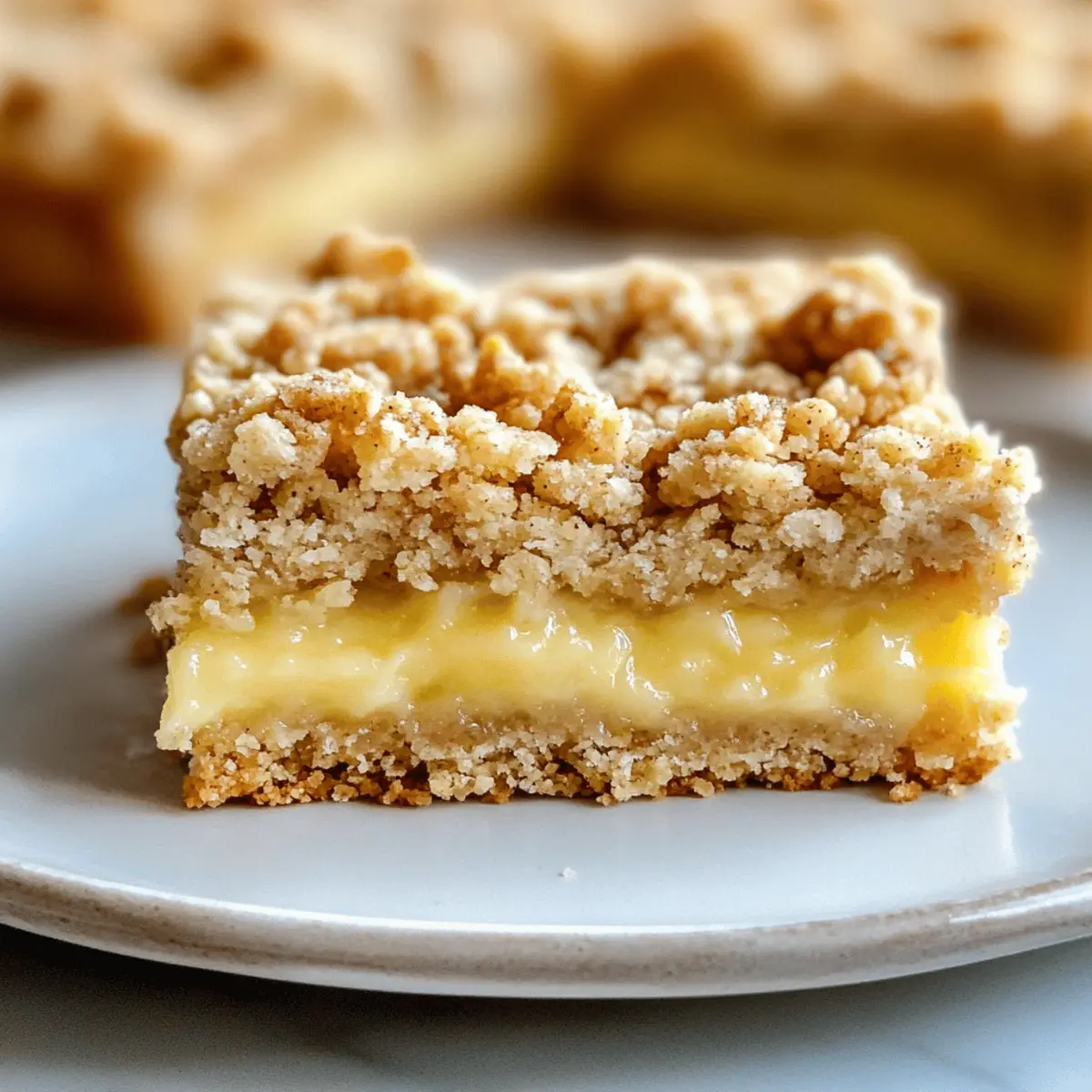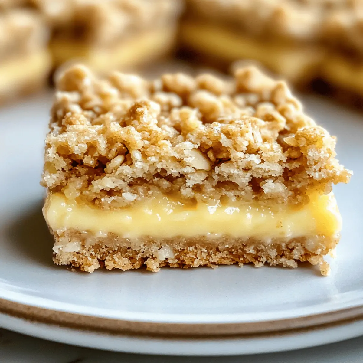 The bright, citrusy scent of lemon wafted through my kitchen, instantly transforming my day. That’s when I stumbled upon the perfect recipe for Creamy Lemon Oatmeal Crumble Bars. Easy to make and incredibly satisfying, these bars boast a luscious lemon filling, cushioned by a rich, buttery oatmeal crust that delicately crumbles with every bite. Not only do they make for a gorgeous centerpiece at any gathering, but they’re also a fantastic remedy for those sweet cravings that strike unexpectedly. Whether you’re celebrating or simply treating yourself, these dessert bars are sure to brighten your table and your day! Ready to indulge in the zesty goodness that awaits? Let’s dive into the recipe! Why Are Lemon Oatmeal Crumble Bars Irresistible? Bright, Zesty Flavor: The combination of tangy lemon and sweet brown sugar creates a refreshing taste that dances on your palate. Deliciously Creamy: Filled with a smooth lemon filling made from sweetened condensed milk, these bars feature a blissfully creamy texture. Easy to Make: With just a few simple ingredients and minimal prep time, you can whip up a batch in no time. Perfect for Any Occasion: Whether it’s a family gathering or a casual afternoon snack, these bars are sure to impress. Versatile Variations: You can easily customize them by adding lemon curd or swapping oats for nuts to tailor them to your taste—get inspiration from Creamy Lemon Chicken for another delightful citrus twist. These bars encapsulate the joy of homemade desserts, providing comfort and delight in every bite! Lemon Oatmeal Crumble Bars Ingredients For the Crust & Topping • Unsalted Butter – Adds a rich, buttery texture to both the crust and topping; make sure it’s softened for easier mixing. • Brown Sugar – Provides sweetness that harmonizes with the tangy lemon filling; light or dark brown sugar works well. • Vanilla Extract – Enhances the overall flavor profile; a must-have for desserts. • All-Purpose Flour – This forms the crucial base of the crumble; be sure to spoon and level it for accuracy. • Baking Powder – Gives the crust a slight rise, leading to a lighter texture. • Salt – Balances the sweetness and elevates the overall flavor of the bars. • Old-Fashioned Oats – Contributes chewiness and texture for a satisfying bite; quick oats can be substituted, but may alter the texture. For the Creamy Lemon Filling • Sweetened Condensed Milk – The superstar for a creamy lemon filling; avoid fat-free versions as they won’t set properly. • Lemon Juice – Provides zesty tang; using fresh lemon juice is always best for flavor. • Lemon Zest – Enhances the lemony aroma and taste, making the bars even more delightful. These Lemon Oatmeal Crumble Bars are not only delicious but also easy to make—a perfect treat for any occasion! Step‑by‑Step Instructions for Lemon Oatmeal Crumble Bars Step 1: Preheat Oven and Prepare Pan Start by preheating your oven to 350°F (177°C). While it warms, line an 8-inch baking pan with parchment paper, ensuring there’s an overhang for easy removal later. This setup will provide a smooth start for your Lemon Oatmeal Crumble Bars, making it convenient to lift them out once they cool. Step 2: Make Crust & Topping In a mixing bowl, combine 7 tablespoons of softened unsalted butter and 3/4 cup of brown sugar. Beat until creamy and smooth, about 2-3 minutes. Add in 1 teaspoon of vanilla extract, 1 cup of all-purpose flour, 1 teaspoon of baking powder, 1/4 teaspoon of salt, and 1 cup of old-fashioned oats. Mix until crumbly; this mixture will form the base and topping for your dessert. Step 3: Form the Crust Take slightly more than half of your crumbly mixture and press it firmly into the bottom of the prepared pan. Use your fingers or a spatula to create an even layer that extends all the way to the edges. This crust will be the foundation of your delicious Lemon Oatmeal Crumble Bars and provide a sturdy base for the creamy filling. Step 4: Pre-bake the Crust Place the pan in the preheated oven and bake the crust for 12 minutes. You’ll know it’s ready when the edges appear lightly golden. Carefully remove the pan from the oven and set it aside to cool slightly while you prepare the lemon filling. Step 5: Prepare the Lemon Filling In a mixing bowl, whisk together 14 ounces of sweetened condensed milk, 6 tablespoons of fresh lemon juice, and 1 tablespoon of lemon zest until well combined and smooth. The mixture should have a creamy texture and a vibrant lemon fragrance. This filling will provide the luscious center for your Lemon Oatmeal Crumble Bars. Step 6: Assemble the Bars Pour the creamy lemon filling over the pre-baked crust, spreading it evenly with a spatula. Then, sprinkle the remaining crumb mixture over the top, ensuring it’s well distributed. This final layer will add a satisfyingly crunchy topping to complement the smooth lemon filling of your bars. Step 7: Bake Again Return the assembled Lemon Oatmeal Crumble Bars to the oven and bake for an additional 22–25 minutes. Watch for the edges to turn a beautiful golden brown and the center to set. You’ll know it’s ready when it no longer jiggles and the aroma fills your kitchen. Step 8: Cool & Cut Once baked, remove the pan from the oven and allow it to cool completely on a wire rack. Once cool, lift the bars out using the parchment overhang and slice them into squares. The contrasting textures of the crust, filling, and topping will shine through, making every bite irresistible. Storage Tips for Lemon Oatmeal Crumble Bars Room Temperature: Store leftover bars in an airtight container at room temperature for up to 2 days to keep them fresh and flavorful. Fridge: If you’d like to extend their life, refrigerate the Lemon Oatmeal Crumble Bars for up to 1 week. This will help maintain their delicious texture while adding a slight chill. Freezer: For longer storage, freeze the bars in a single layer between parchment paper in a 