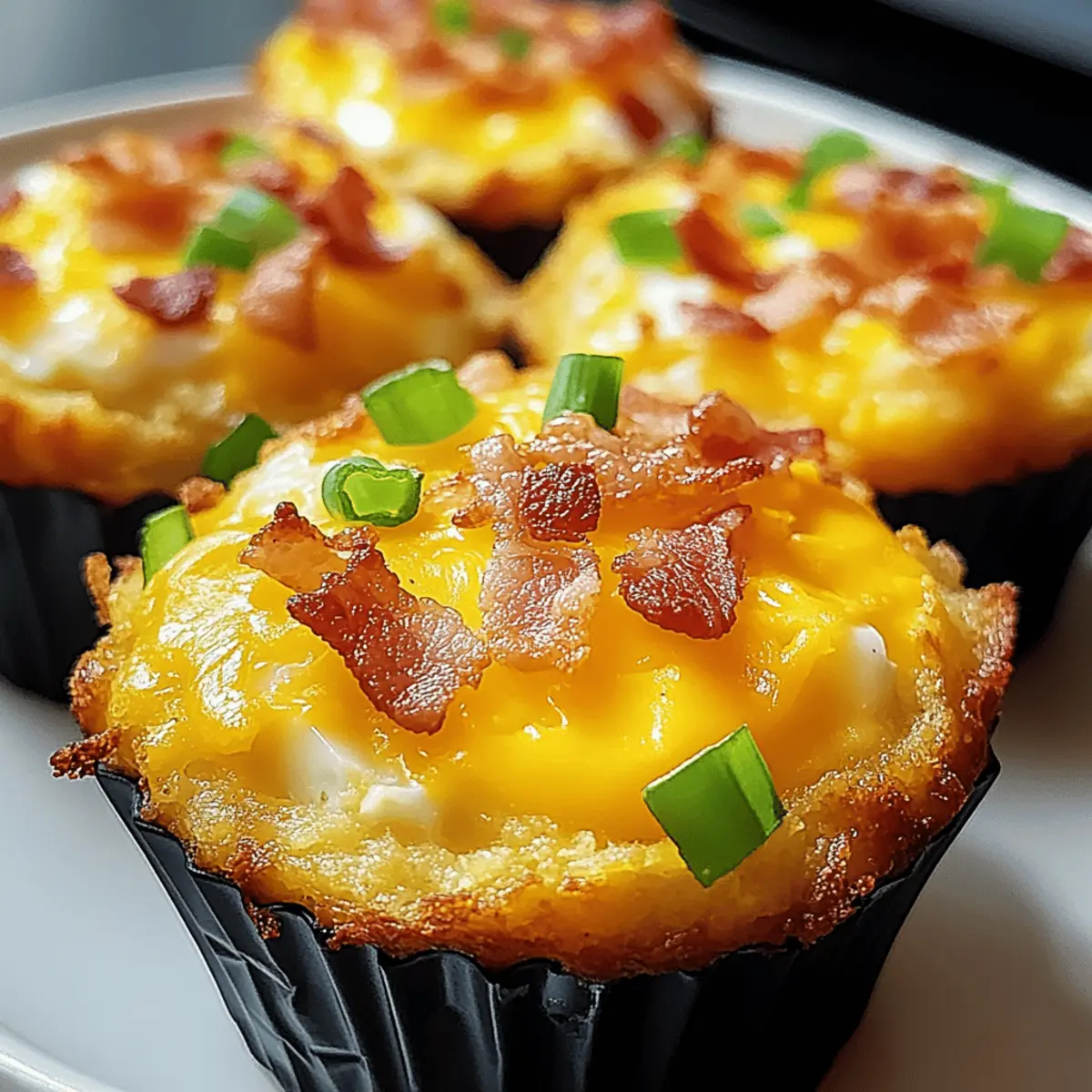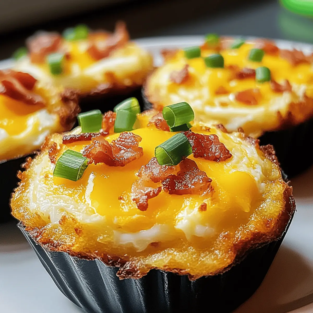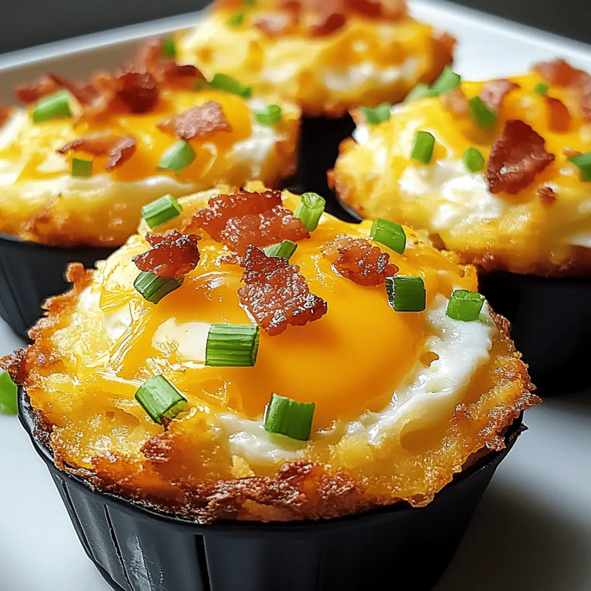 As I flipped through my favorite breakfast recipes, a sudden craving for something comforting yet portable struck me. Enter the Loaded Bacon and Egg Hash Brown Muffins: an ingenious fusion that delivers all the heartiness of breakfast in a delightful muffin form! These savory gems are perfect for quick mornings, and with just a handful of ingredients, they transform into a customizable meal prep dream—whether you’re a bacon aficionado, a sausage lover, or a devoted vegetarian. Not only are they freezer-friendly and ideal for reheating, but they also bring a bit of cheer to your breakfast spread with every bite. Are you ready to elevate your breakfast game and make mornings a little less hectic? Let’s dive into this delicious adventure together! Why Are These Muffins a Must-Try? Convenient and Portable: Perfect for busy mornings, these muffins are easily grab-and-go! Savory Goodness: The combo of crispy bacon, cheesy eggs, and crispy hash browns delivers a flavor explosion with every bite. Customizable Delight: Tailor them to your taste by swapping proteins or adding veggies, making them ideal for everyone at the breakfast table. Freezer-Friendly: Make a big batch and store some for later—just pop them in the microwave for a quick warm-up! Balanced Nutrition: Each muffin packs balanced calories and nutrients, fitting perfectly into your meal prep routine. Elevate your breakfast experience with these Loaded Bacon and Egg Hash Brown Muffins, and don’t forget to check out our Homemade Blueberry Muffins for a sweet treat! Loaded Bacon and Egg Hash Brown Muffin Ingredients • For a delightful start to your breakfast journey, here are the essential ingredients you’ll need! For the Muffins Frozen Shredded Hash Browns – Ensure they are thawed and well-drained for crispy muffin bases. Shredded Cheddar Cheese – This adds incredible creaminess; dairy-free cheese works well for a vegan alternative. Cooked and Crumbled Bacon – Wonderful for that smoky flavor and protein kick; feel free to substitute with sausage or omit for a vegetarian option. Large Eggs – They provide structure and richness; you can use egg whites for a lighter version. Milk – For added moisture; swap for a non-dairy option to cater to dairy-free diets. Chopped Green Onions – Fresh and flavorful; swap in diced bell peppers for a colorful twist. Salt and Pepper – Essential seasoning to enhance flavors; adjust based on your taste preferences. Cooking Spray – Aids in easy muffin removal to keep your creations intact. With these Loaded Bacon and Egg Hash Brown Muffins ingredients, you’re ready to create a comforting and customizable breakfast treat! Step‑by‑Step Instructions for Loaded Bacon and Egg Hash Brown Muffins Step 1: Preheat and Prepare Begin by preheating your oven to 375°F (190°C). As it heats, generously grease a 12-cup muffin tin with cooking spray to ensure easy release of your Loaded Bacon and Egg Hash Brown Muffins later. This step is crucial to achieve that perfect, crispy exterior without sticking. Step 2: Mix Hash Brown Base In a large mixing bowl, combine the thawed and well-drained frozen shredded hash browns with 1 cup of shredded cheddar cheese and half of the crumbled bacon. Mix thoroughly, ensuring every strand of hash brown is coated. The mixture should be cohesive and ready to form the nests that will cradle the egg filling. Step 3: Form Muffin Nests Take the hash brown mixture and press it firmly into the prepared muffin cups, creating a nest shape in each. Make sure the edges are slightly higher than the center to hold the filling. Bake these nests in the preheated oven for 15 minutes, or until the edges are golden brown and crispy, providing a sturdy base for the muffins. Step 4: Whisk the Egg Mixture While the nests are baking, whisk together the large eggs, milk, salt, pepper, and chopped green onions in a separate bowl. Blend the ingredients well until they are fully combined and slightly frothy. This egg mixture will pour beautifully into the hash brown nests, filling them with richness. Step 5: Fill Muffin Cups Once the nests are ready, carefully remove them from the oven. Using a ladle or measuring cup, fill each muffin cup with the egg mixture until they are about three-quarters full. Take care not to overfill. Sprinkle the remaining cheese and bacon on top of each muffin to create a deliciously cheesy and savory topping. Step 6: Bake Until Set Return the muffin tin to the oven and bake for an additional 12 to 15 minutes. Keep an eye on the muffins as they bake, looking for the tops to rise and set firmly. The muffins are done when the eggs are fully cooked and no longer jiggly in the center, ensuring each bite will deliver a burst of flavor. Step 7: Cool and Serve Once baked, remove the muffin tin from the oven and allow the Loaded Bacon and Egg Hash Brown Muffins to cool for about 5 minutes. This cooling time helps them firm up for easy removal. Carefully run a knife around the edges before gently lifting them out. Serve warm for the best taste experience! What to Serve with Loaded Bacon and Egg Hash Brown Muffins Add a delightful touch to your breakfast spread with these mouthwatering pairings that enhance every bite of your savory muffins. Fresh Fruit Medley: A colorful assortment of berries, bananas, and oranges brings a refreshing contrast to the hearty muffins. Greek Yogurt Parfait: Creamy yogurt layered with granola and fruit adds a creamy texture and a celebratory crunch to your meal. Savory Spinach Salad: Tossed greens with a zesty vinaigrette perfectly balance the richness of the muffins while offering a crisp, fresh bite. Sizzling Breakfast Sausages: Juicy links or patties add an additional layer of smoky flavor, enhancing the overall breakfast experience. Homemade Salsa: A zesty salsa made with diced tomatoes, onion, and cilantro adds a vibrant, spicy kick to your breakfast. Coffee or Herbal Tea: The warm, comforting notes of a rich coffee or a soothi