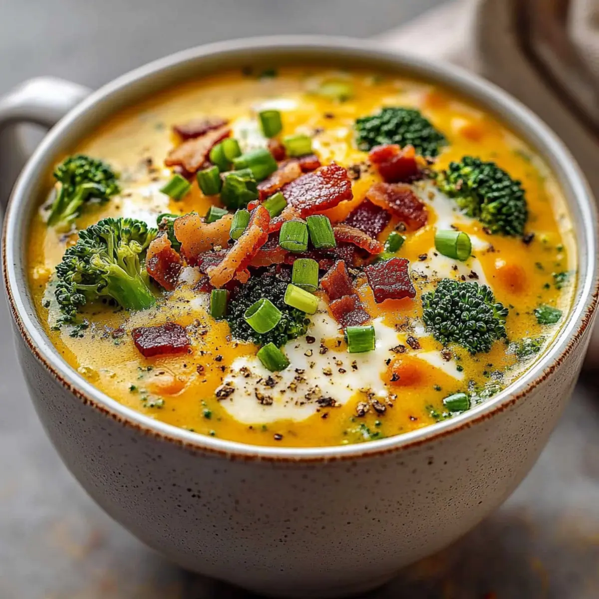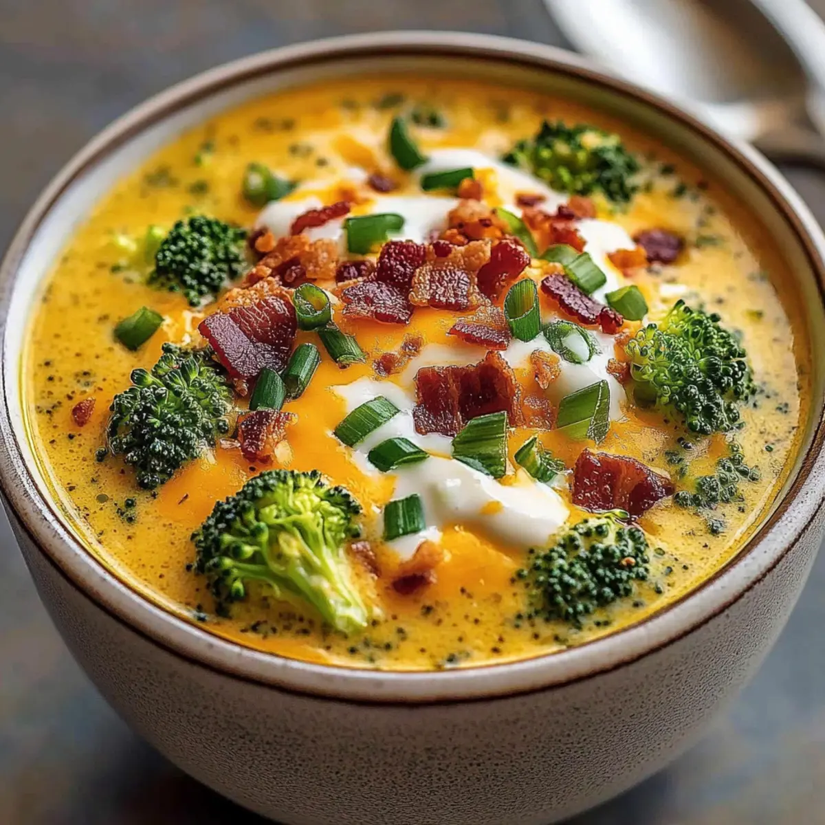 The aroma of comfort wrapped in every spoonful makes me smile as I bring you my recipe for Loaded Broccoli Cheddar Soup. This delightful dish fuses tender green broccoli with rich, sharp cheddar, creating a bowl of creamy goodness that’s perfect for those chilly evenings. Not only is it a fabulous comfort food option, but it’s also a quick and satisfying meal that can be ready in under an hour! Plus, it offers simple variations like vegetarian and dairy-free adaptations, ensuring everyone can enjoy this warm hug in a bowl. Are you ready to whip up some magic in your kitchen and find out how to create this delicious broccoli cheddar delight? Why is this soup so comforting? Creamy Indulgence: Each spoonful brings a rich blend of sharp cheddar and smooth creaminess that warms your soul. Quick to Make: In just under an hour, you’ll have a delicious meal ready, perfect for busy weeknights. Customizable Options: With vegetarian and dairy-free adaptations available, this soup caters to various dietary needs without sacrificing flavor. Versatile Variations: Feel free to swap broccoli for asparagus in spring or add roasted butternut squash in fall for seasonal flair. Toss in some bacon or green onions for extra crunch! Ultimate Cozy Meal: Pair it with crusty sourdough bread for the ultimate comfort food experience! If you prefer more warming soup options, check out my Chicken Noodle Soup or One Pot Soup for a delightful twist! Loaded Broccoli Cheddar Soup Ingredients For the Soup Broccoli – Adds fiber and nutrients; fresh is preferred for texture but frozen works in a pinch. Carrot – Brings sweetness and color to the mix, making it visually appealing. Onion – Provides depth of flavor that enhances the overall experience. Garlic – Boosts aroma and taste, filling your kitchen with inviting scents. Celery – Contributes a crunch that complements the creaminess of the soup. Unsalted Butter – Perfect for sautéing aromatics, forming a rich base for the soup. Whole Milk – Adds creaminess; can be replaced with half-and-half for a lighter version. Heavy Cream – Intensifies richness; optional for a lighter variant of the soup. Sharp Cheddar Cheese – The main flavor component; try smoked cheddar for an extra flavor kick. Cream Cheese – Ensures a silky texture and amplifies creaminess. All-Purpose Flour – Thickens the soup, giving it that luscious consistency. Low-Sodium Vegetable or Chicken Broth – Essential for flavor; choose low-sodium for a healthier option. Smoked Paprika – Elevates flavor complexity, making every bite a delight. Black Pepper & Kosher Salt – Season to taste; adjust the seasoning to your preference. For Optional Toppings Crumpled Bacon – Adds a savory crunch; a perfect indulgence for meat lovers! Chopped Green Onions – Provide freshness and a burst of color to your serving bowl. Sour Cream – Adds creaminess and tang; perfect for those who love that extra layer of flavor. Indulge in this Loaded Broccoli Cheddar Soup, and transform your cozy evenings into a delightful culinary experience! Step‑by‑Step Instructions for Loaded Broccoli Cheddar Soup Step 1: Sauté Aromatics In a large pot over medium heat, melt 3 tablespoons of unsalted butter until bubbling. Add one diced onion, one chopped carrot, one chopped stalk of celery, and two minced garlic cloves, sautéing for about 5 minutes until the onion is translucent and the vegetables are tender. This will create a fragrant base for your Loaded Broccoli Cheddar Soup. Step 2: Add Flour Sprinkle 1/4 cup of all-purpose flour over your sautéed vegetables, stirring constantly for about 2 minutes. This cooking time ensures that the flour is well incorporated, preventing a raw taste in your soup. You’ll notice the mixture thickening slightly, preparing it to absorb the liquids that follow. Step 3: Incorporate Broth and Broccoli Gradually whisk in 4 cups of low-sodium vegetable or chicken broth, ensuring no lumps remain. Once combined, add 4 cups of chopped broccoli, 1 teaspoon of smoked paprika, and season with black pepper and kosher salt to taste. Bring the mixture to a simmer, as the broccoli begins to brighten in color and soften, which takes about 5 minutes. Step 4: Simmer Soup Cover the pot and allow the soup to simmer for 15 minutes. During this time, the broccoli will become tender yet vibrant, with the flavors melding beautifully. Stir occasionally to prevent sticking and ensure an even cook, filling your kitchen with the delicious aromas of this Loaded Broccoli Cheddar Soup. Step 5: Add Dairy Ingredients Reduce the heat to low and stir in 1 cup of whole milk, 1/2 cup of heavy cream, and 8 ounces of cream cheese. Mix until smooth and creamy, allowing the cream cheese to fully incorporate, which will enhance the luscious texture of your soup. This step contributes to the comforting nature of your Loaded Broccoli Cheddar Soup. Step 6: Incorporate Cheddar Cheese Gradually add in 2 cups of shredded sharp cheddar cheese, stirring constantly until melted and incorporated. This creates that rich, cheesy goodness synonymous with Loaded Broccoli Cheddar Soup. If the cheese has melted smoothly, the soup is ready for the next optional steps. Step 7: Blend (Optional) For a smoother texture, you can use an immersion blender directly in the pot. Blend just until desired consistency, leaving some broccoli chunks for heartiness. If you prefer a rustic Loaded Broccoli Cheddar Soup, skip this step and enjoy the natural texture of the ingredients. Step 8: Season and Serve Taste and adjust the seasoning as needed, adding more salt, pepper, or paprika for extra depth. Once the flavors are to your satisfaction, ladle the soup into bowls and garnish with optional toppings like crumbled bacon, chopped green onions, or a dollop of sour cream for extra richness. Serve hot alongside crusty bread for an ultimate cozy meal experience. Loaded Broccoli Cheddar Soup Variations Feel free to explore creative twists to make thi