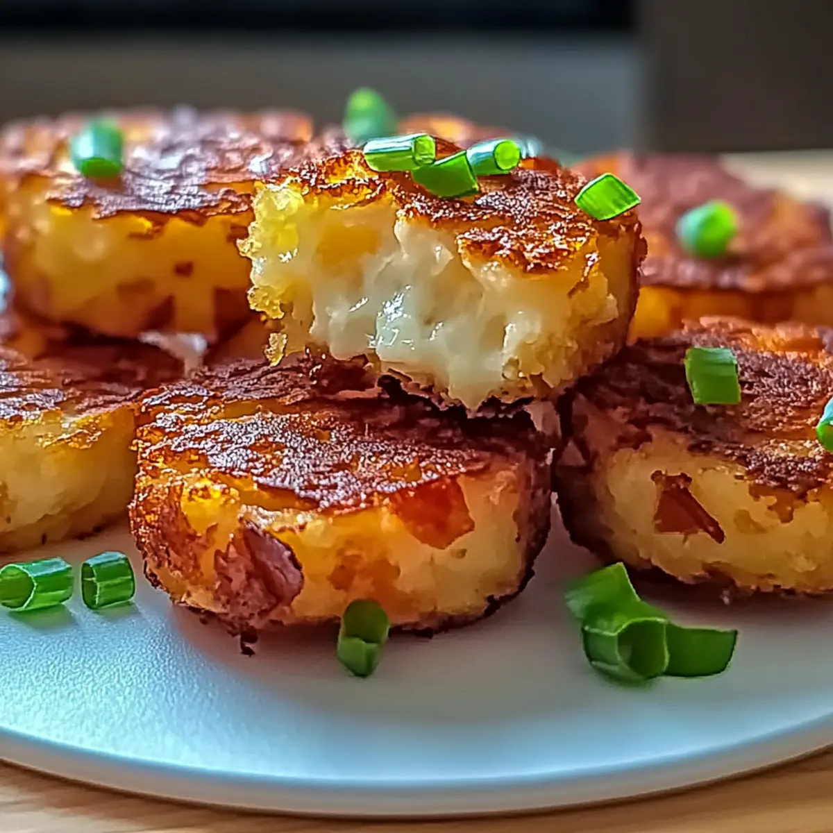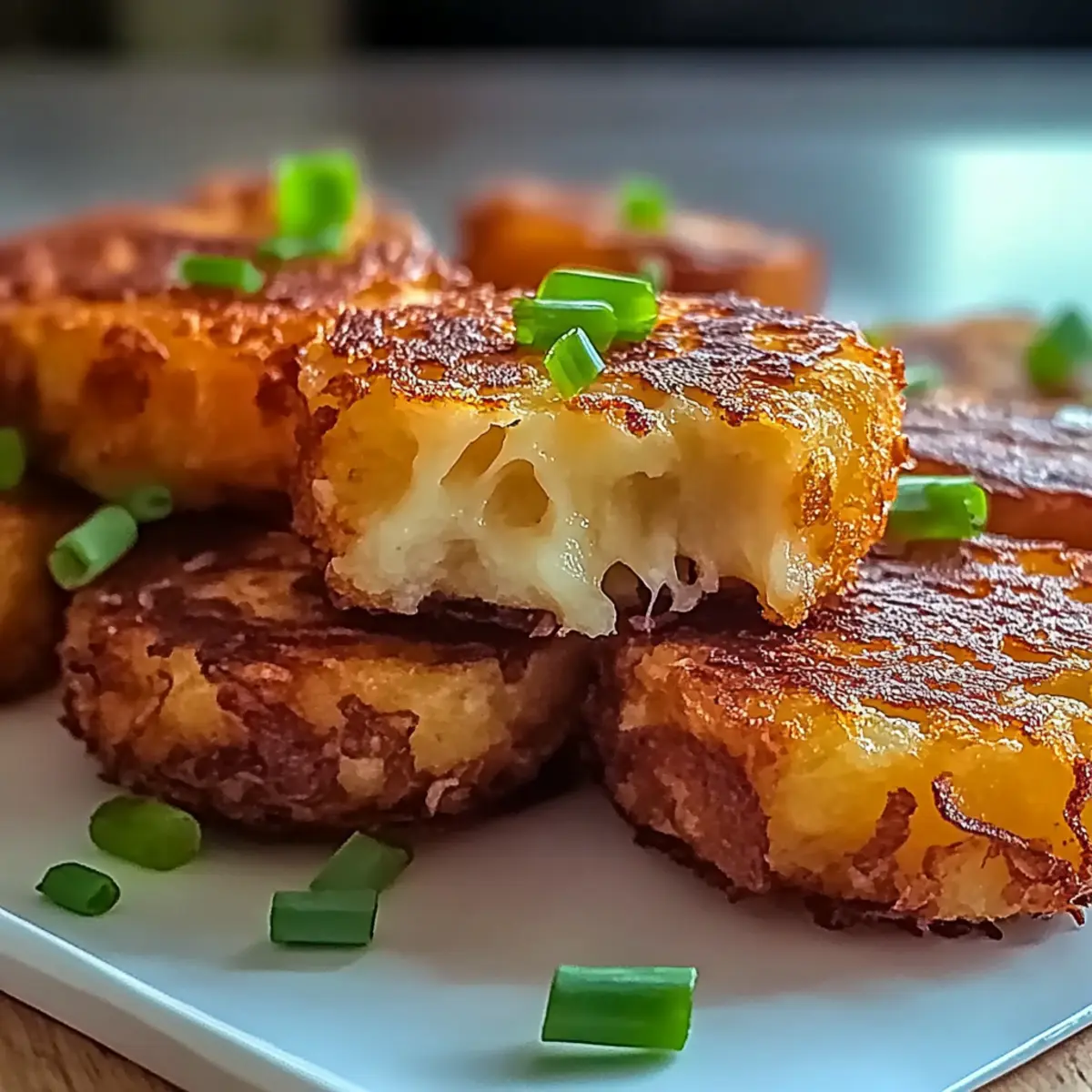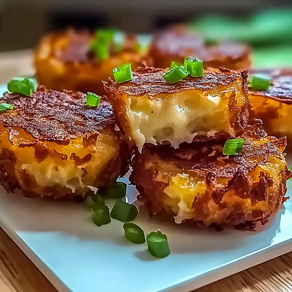 The aroma of crispy, golden delight filled my kitchen as I pulled out a tray of Loaded Hashbrown Bites. These little gems, with their cheesy insides and satisfying crunch, are perfect for a cozy brunch or as a fun appetizer at your next gathering. The best part? They’re quick to whip up in under an hour, making them an ideal snack for any occasion. Plus, with their customizable nature, you can easily tweak the ingredients to suit your dietary preferences, whether you’re a meat lover, vegetarian, or looking for a vegan option. Are you ready to learn how to create these irresistible bites that everyone will adore? Let’s dive into this delicious recipe! Why Are Loaded Hashbrown Bites So Irresistible? Irresistible Crunch: Each bite boasts a tempting crunch that keeps you coming back for more. Customizable Delight: Easily adapt these bites to suit your tastes—whether for a cozy family brunch or a lively party spread. Quick Preparation: Whip up these treats in under an hour, perfect for impromptu gatherings. Cheesy Comfort: The gooey cheese centers create a satisfying melt-in-your-mouth experience that’s hard to resist! Crowd-Pleasing Appetizer: These Loaded Hashbrown Bites are sure to be a hit with everyone, making them perfect for hosting or just enjoying at home. Explore Variations: Want a spicy twist? Add jalapeños for an extra kick or switch bacon for plant-based alternatives for a vegetarian-friendly option. Loaded Hashbrown Bites Ingredients • Dive into the components that make these bites a delectable treat! For the Base Frozen Hashbrowns – The main structure providing that satisfying crunch; fresh hashbrowns can be used if rinsed and dried thoroughly. Shredded Cheese – This adds creamy goodness; swap for dairy-free cheese to make it vegan. For the Flavor Bacon Bits – They bring a savory punch; omit for vegetarian or vegan adaptations or choose plant-based bacon alternatives. Green Onions – They add a fresh, mild bite; chop them finely for an even mix. Garlic Powder – Essential for depth of flavor; adjust according to your taste preference. Onion Powder – Complements the garlic and adds a lovely savory touch; it’s recommended but can be optional. For Seasoning Salt – A must for flavor enhancement; feel free to adjust based on your dietary needs. Pepper – Adds a hint of spice; freshly ground is preferred for the best flavor impact. Feel free to get creative with these Loaded Hashbrown Bites and make them your own! Step‑by‑Step Instructions for Crispy Loaded Hashbrown Bites Step 1: Preheat the Oven Begin by preheating your oven to 400°F (200°C). This crucial step ensures that your Loaded Hashbrown Bites cook evenly and become beautifully crisp. While the oven warms up, gather your ingredients and get ready for assembly—this will streamline your cooking process and keep everything moving smoothly. Step 2: Combine the Ingredients In a large mixing bowl, combine the frozen hashbrowns, shredded cheese, bacon bits, and chopped green onions. Add the garlic powder, onion powder, salt, and freshly ground pepper. Mix everything together thoroughly until well blended, ensuring that all ingredients are evenly distributed for maximum flavor in each bite. Step 3: Form the Patties Now, take about a tablespoon of the mixture and shape it into round patties with your hands. Aim for uniform size to ensure even cooking for your Loaded Hashbrown Bites. The mixture should hold together well; if it feels crumbly, consider adding a bit more cheese to help bind it together. Step 4: Prepare the Baking Sheet Next, take a baking sheet and either grease it lightly or line it with parchment paper. This will help prevent sticking and make cleanup easier. Arrange the patties on the sheet, leaving space in between each one to allow for airflow, which is essential for achieving that deliciously crispy texture when baked. Step 5: Bake to Perfection Place the baking sheet in your preheated oven and bake the Loaded Hashbrown Bites for 25-30 minutes. Keep an eye on them, and look for a golden-brown color and a crispy exterior as visual cues that they are ready to be taken out. If you desire extra crispiness, feel free to leave them in for a couple of additional minutes. Step 6: Cool and Serve Once baked to perfection, remove the tray from the oven and let the Loaded Hashbrown Bites cool for about 5 minutes. This allows them to set further before serving. Pair them with your favorite dips like ranch, spicy aioli, or guacamole for an irresistible snack that will leave everyone wanting more! What to Serve with Crispy Loaded Hashbrown Bites Picture a vibrant gathering filled with laughter and the enticing aroma of golden-brown goodness wafting through the air—it’s the perfect moment to elevate your snack experience! Creamy Ranch Dip: The cool creaminess pairs perfectly with the crispy texture, enhancing every bite for a delightful contrast. Zesty Aioli Sauce: A garlic-infused, creamy dip that adds a flavor boost, bringing out the savory notes of the hashbrown bites. Light Mixed Green Salad: Crisp, fresh greens offer a refreshing balance to the rich, cheesy bites, creating a well-rounded meal. Spicy Jalapeño Relish: For those who love a kick, this zesty topping brings heat and brightness that perfectly complements the hashbrowns. Crispy Bacon and Cheese Quesadillas: Rich, cheesy quesadillas increase the comfort food factor, satisfying all your cravings in one spread. Sweet Chili Sauce: The touch of sweetness contrasts beautifully with the savory bites, adding a delicious tang that keeps you reaching for more! Fruity Sparkling Lemonade: A refreshing drink that brightens the palate between bites, setting a cheerful tone for your gathering. Chocolate Lava Cake: For dessert, the warm, gooey chocolate pairs decadently with the appetizers, leaving a lasting impression! Expert Tips for Loaded Hashbrown Bites Preheat Properly: Ensure your oven is fully preheated to 400°F (200°C) to achieve 