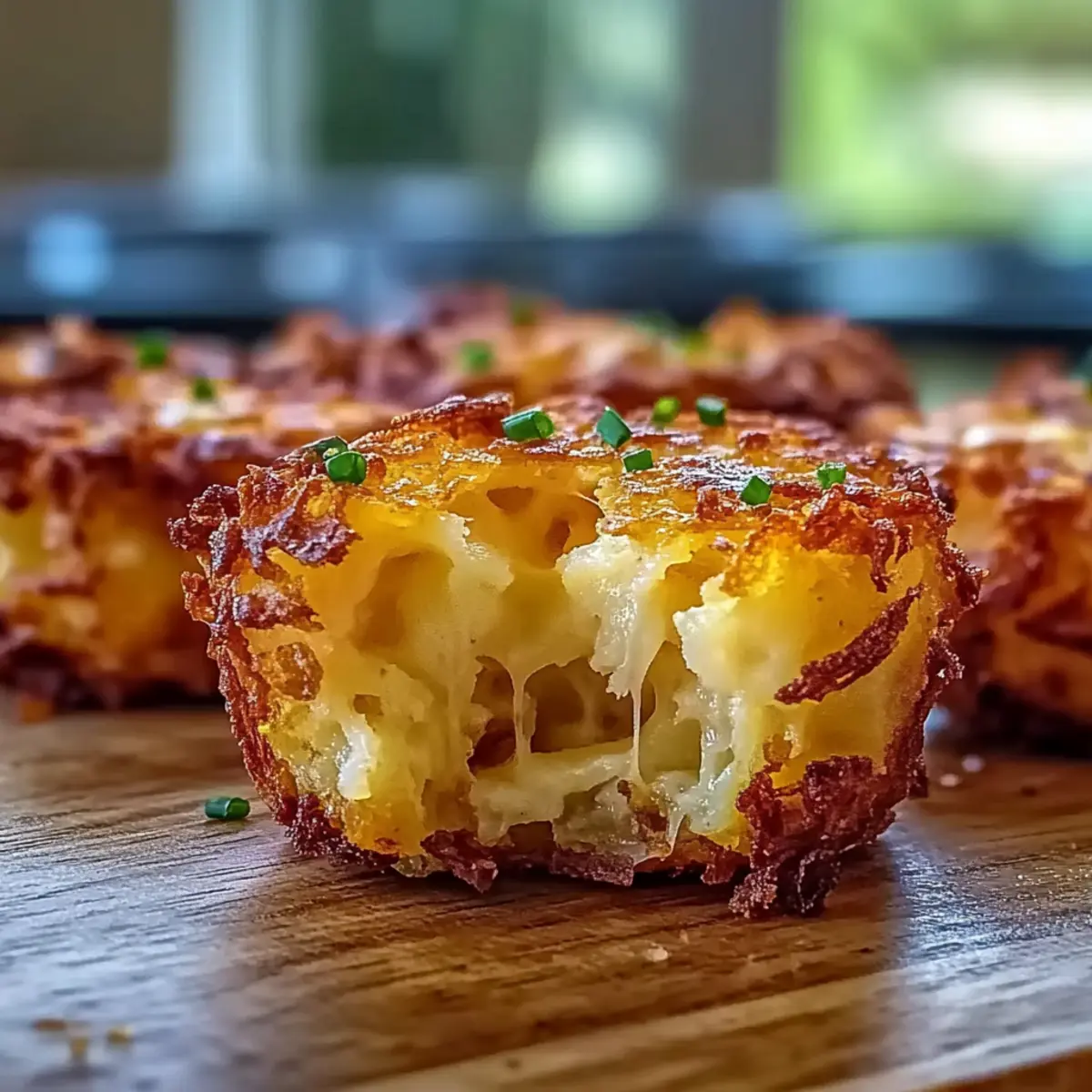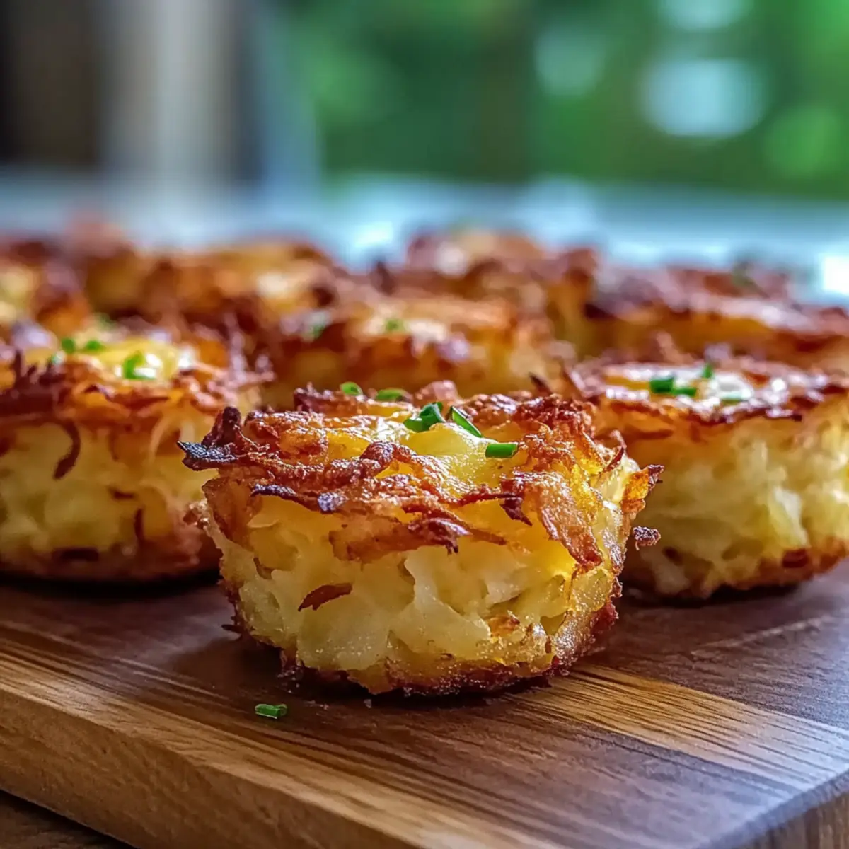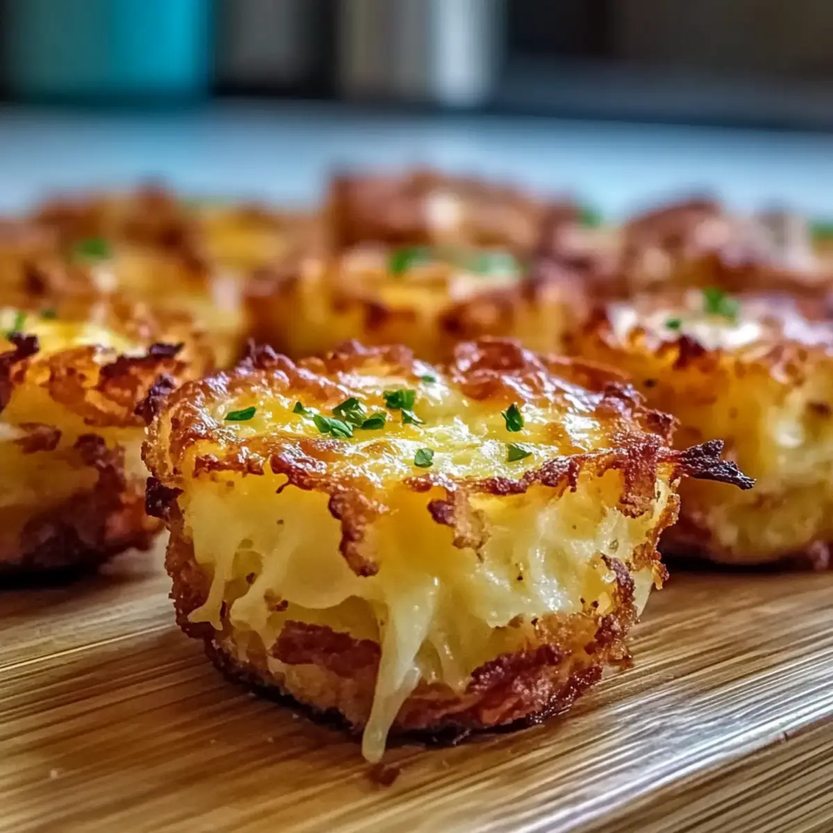 As I rummaged through my pantry in search of a quick and satisfying snack, I stumbled upon a bag of frozen hashbrowns that sparked a delicious idea. Enter my Loaded Hashbrown Bites—a crunchy, cheesy delight that’s perfect for those last-minute cravings or hosting weekend get-togethers. This snack is not only easy to whip up in just 15 minutes of prep time, but it’s also incredibly versatile; you can easily customize it to fit vegetarian or vegan diets by swapping out bacon and cheese. Imagine the aroma wafting through your kitchen as these golden bites bake to perfection! Ready to discover how simple it is to create such a delightful treat? Let’s dive into the recipe! Why Are Loaded Hashbrown Bites a Must-Try? Irresistible flavor awaits: Blending crispy hashbrowns, velvety cheese, and savory bacon, these bites deliver an explosion of taste in every nibble. Quick preparation: With just 15 minutes of prep time, you can have these snacks ready to share (or keep all to yourself!) in no time. Versatile options: Cater to everyone’s tastes by easily modifying the recipe. Add spicy jalapeños for a kick or omit bacon for a vegetarian twist. Perfect for any occasion: Whether you’re hosting a brunch or enjoying a movie night, these Loaded Hashbrown Bites are sure to be a crowd-pleaser! Easy to store: Leftovers (if there are any!) can be kept for up to three days or even frozen, ensuring you have a convenient snack on hand. Get creative and explore more variations to elevate this snack, and don’t forget to check out our other delicious recipes like Cheesy Spinach Dip and Classic Guacamole. Loaded Hashbrown Bites Ingredients For the Base • Frozen Hashbrowns – Ensure they’re evenly thawed for consistent texture and the perfect base for your Loaded Hashbrown Bites. • Shredded Cheese – Adds creaminess and flavor; you can swap for dairy-free cheese to make it vegan. • Bacon Bits – Provides a savory crunch; feel free to omit or replace with a plant-based alternative for vegetarian or vegan options. For the Flavor • Green Onions – These add freshness and a mild onion flavor to brighten your bites; use them to enhance your dish. • Garlic Powder – Boosts the overall flavor profile; adjust according to your taste preferences. • Onion Powder – Another layer of flavor; feel free to use more or less based on your liking. • Salt & Pepper – Essential seasonings to balance flavors; adjust according to your preference. Now that you have all your ingredients ready, let’s get cooking! These Loaded Hashbrown Bites will surely become your new favorite snack sensation! Step‑by‑Step Instructions for Loaded Hashbrown Bites Step 1: Preheat the Oven Begin by preheating your oven to 400°F (200°C) to ensure even cooking and crispiness for your Loaded Hashbrown Bites. This initial heat will help the bites achieve that golden-brown exterior. While the oven warms up, prepare your ingredients to save time during assembly. Step 2: Prepare the Mixture In a large mixing bowl, combine the evenly thawed frozen hashbrowns, shredded cheese, bacon bits, chopped green onions, garlic powder, onion powder, salt, and pepper. Stir thoroughly until all ingredients are well incorporated, allowing the flavors to blend together. This mixture should be cohesive enough to hold its shape when formed into patties. Step 3: Form the Patties Using your hands, scoop about a tablespoon of the mixture and shape it into round patties. Be sure they hold together well; if the mixture feels too crumbly, feel free to add a bit more cheese to help bind it. Set the formed patties aside on a plate or cutting board as you continue shaping the rest. Step 4: Prepare the Baking Sheet Lightly grease a baking sheet or line it with parchment paper for easy cleanup. This step is crucial as it prevents the Loaded Hashbrown Bites from sticking to the surface and ensures they cook evenly. Space the patties out on the sheet, leaving enough room between them for airflow. Step 5: Bake the Bites Place the baking sheet in the preheated oven and bake for 25–30 minutes. Keep an eye on them and look for visual cues, such as a stunning golden-brown crust and a slightly crisp edge. The aroma wafting through your kitchen will be an irresistible indication that they’re on their way to being perfectly delicious. Step 6: Cool and Serve Once baked, remove the Loaded Hashbrown Bites from the oven and allow them to cool on the sheet for a few minutes. This cooling time will help them firm up a bit, making them easier to serve. Pair your delightful bites with your favorite dipping sauces like ranch or guacamole for an extra touch of flavor. How to Store and Freeze Loaded Hashbrown Bites • Room Temperature: Loaded Hashbrown Bites are best enjoyed fresh. If left out, consume within 2 hours to ensure food safety. • Fridge: Store leftovers in an airtight container in the refrigerator for up to 3 days. Reheat in the oven at 350°F (175°C) for 10-15 minutes to restore that delightful crunch. • Freezer: You can freeze Loaded Hashbrown Bites for up to 2 months. Place them in a single layer on a baking sheet to freeze individually, then transfer to a freezer-safe container or bag. • Reheating: To reheat frozen bites, preheat the oven to 400°F (200°C) and bake for 20-25 minutes until heated through and crispy. Enjoy your tasty snack anytime! Loaded Hashbrown Bites Variations Feel free to let your creativity shine and customize these delightful bites to suit your taste buds! Spicy Kick: Add diced jalapeños for a zesty boost. The heat elevates the overall flavor, making each bite a delicious surprise. Vegetarian Delight: Omit the bacon and replace it with your favorite veggies such as bell peppers or mushrooms. This swap warms your heart while keeping it satisfying. Dairy-Free Option: Use dairy-free cheese to make these bites vegan-friendly. You won’t miss the cheese, as the loaded flavors still deliver comfort and joy! Herb Infusion: 