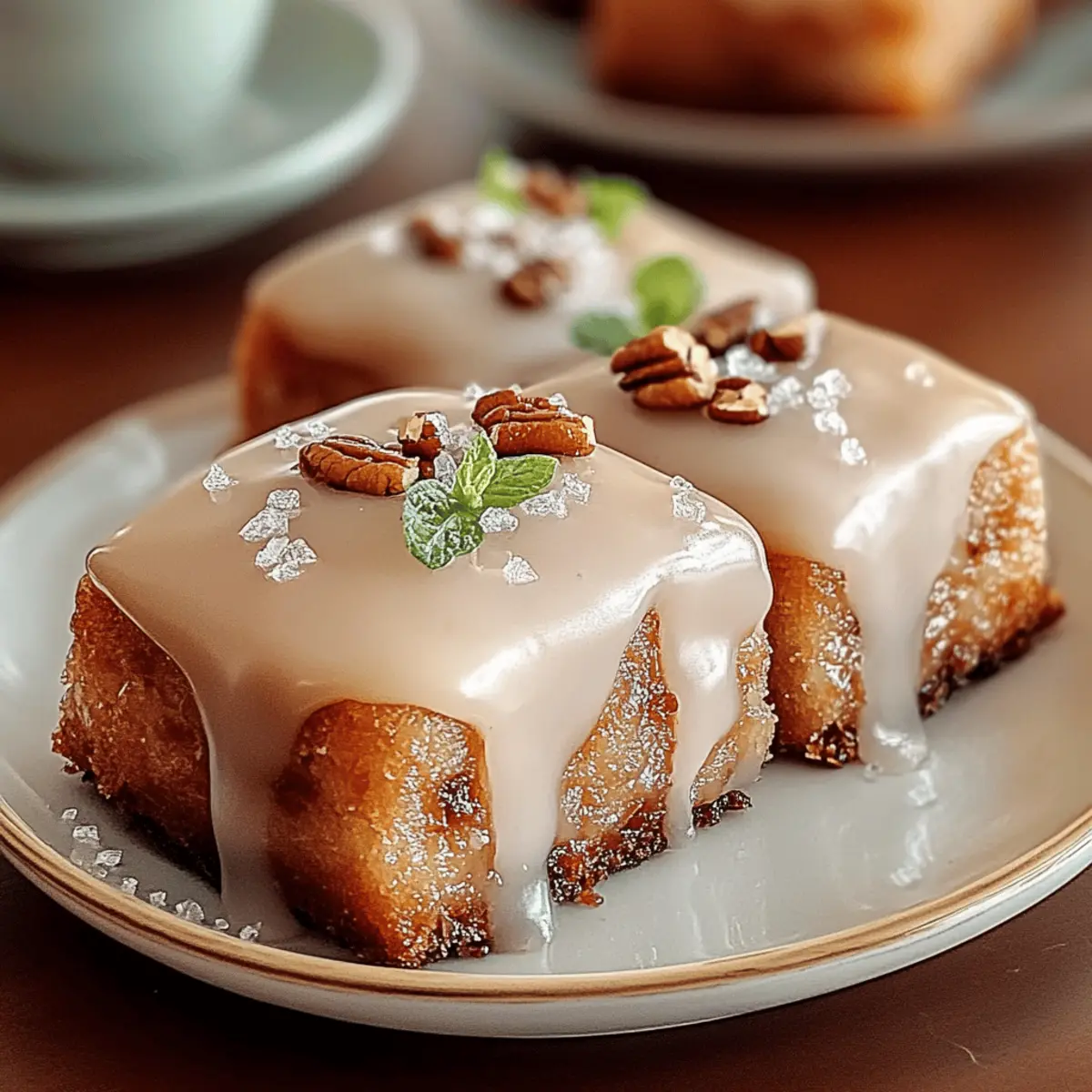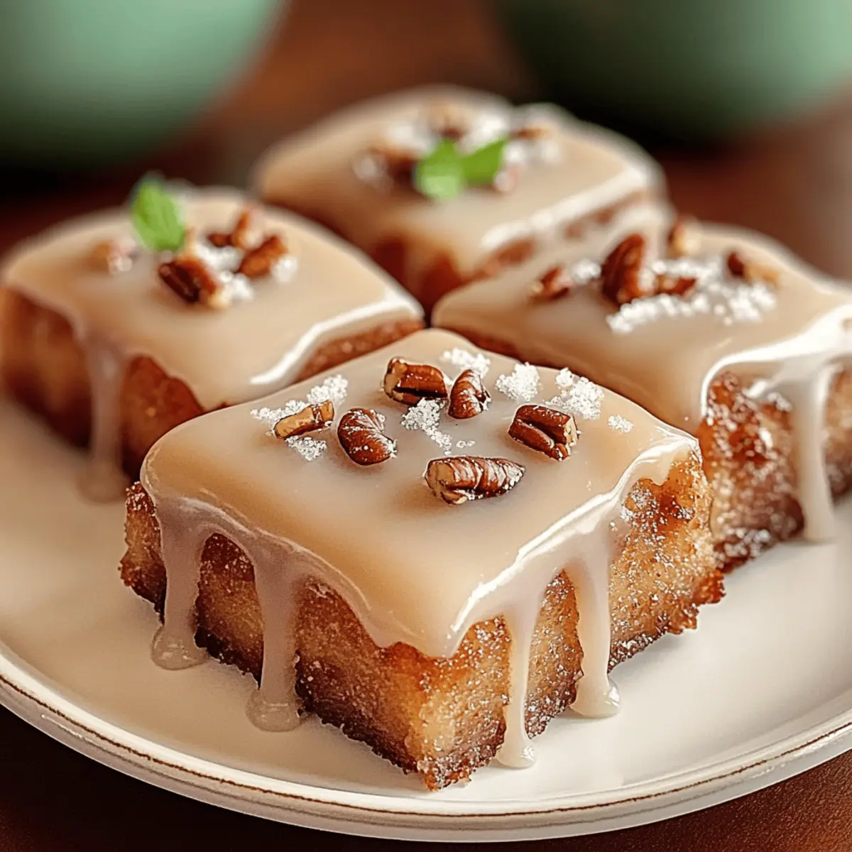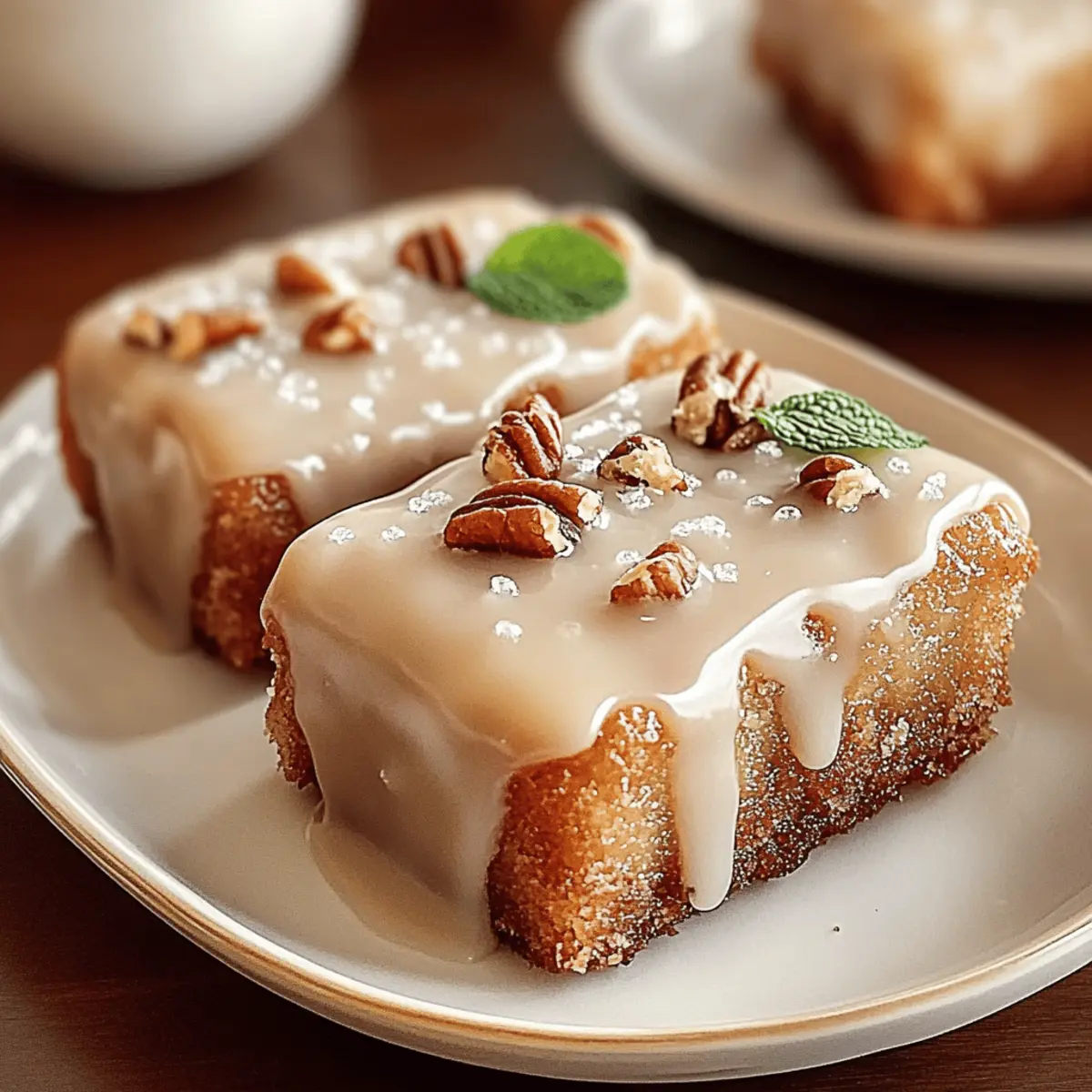 As I stood in my kitchen, the scent of roasting nuts mingled with the sweet aroma of maple syrup, instantly whisking me away to a cozy café in New England. There’s something incredibly comforting about homemade Maple Donut Bars, where each bite feels like a warm hug on a chilly day. This easy baked treat marries the soft, pillowy texture with a luscious maple glaze that truly elevates your dessert game. Not only are these bars quick to whip up, but the flexibility of customizable toppings means you can unleash your creativity. From adding crispy bacon for a savory twist to sprinkling pecans for an extra crunch, there’s a flavor combination for everyone. Are you ready to dive into this delightful baking adventure and transform your kitchen into a sweet haven? Why will you love these Maple Donut Bars? Comforting, Homemade Delight: There’s nothing quite like the warmth of freshly baked goods coming from your oven. These Maple Donut Bars bring that cozy café vibe home while being incredibly simple to prepare. Endless Customization: From Maple Bacon to Maple Pecan, you can create your own unique flavors or stick to the classic vanilla glaze for a timeless treat. Quick Baking: With just a few steps, you’ll have these bars baked and ready to enjoy in no time—perfect for those busy mornings when you need a sweet pick-me-up! Crowd-Pleasing Flavors: These bars are sure to impress family and friends at brunches and gatherings. Don’t be surprised when everyone asks for seconds! Perfect Texture: The soft, cakey interior paired with the glossy, sweet glaze creates a heavenly contrast that will make your taste buds dance. Ready to elevate your dessert game? These Maple Donut Bars are the perfect solution! Check out this fantastic easy baked treat that everyone will love! Maple Donut Bars Ingredients For the Batter All-Purpose Flour – Provides structure to the donut bars; substitute with a gluten-free flour blend for a gluten-free version. Baking Powder – Acts as a leavening agent, helping the bars to rise; ensure freshness for the best results. Baking Soda – Another leavening agent that enhances rise; use with acidic ingredients like buttermilk. Salt – Enhances all flavors present in the recipe; it’s essential for balance. Ground Nutmeg – Adds warmth and spiced flavor, creating that cozy vibe; you can substitute with cinnamon for a different spice profile. Granulated Sugar – Sweetens the batter; try swapping in brown sugar for a richer flavor. Unsalted Butter – Adds richness and moisture; coconut oil works great for a dairy-free alternative. Eggs – Provides binding and moisture; consider using flax eggs for a vegan version. Buttermilk – Adds moisture and flavor, plus it reacts with baking soda for leavening; milk with vinegar or lemon juice can mimic buttermilk. Vanilla Extract – Enhances overall flavor; opt for high-quality extract for the best impact. For the Glaze Powdered Sugar – The main ingredient for the glaze, offering sweetness and a smooth texture; feel free to use powdered erythritol for a healthier option. Pure Maple Syrup – Provides the signature flavor of the Maple Donut Bars; always use real maple syrup for optimal taste. Milk – Adjusts the glaze’s consistency; almond milk or any dairy-free milk can be used as a substitute. For Toppings (Optional) Chopped Pecans or Walnuts – Optional toppings for added crunch and flavor; you can omit these or replace them with other nuts. Sprinkles – A fun decorative topping; customize based on your preference! Crumbled Bacon – Suggested for Maple Bacon Donut Bars, giving a sweet-savory twist; crispy bacon enhances the flavor contrast beautifully. Now that you have gathered all the ingredients, let’s dive into the wonderful world of baking these delightful Maple Donut Bars! Step‑by‑Step Instructions for Maple Donut Bars Step 1: Prepare Dry Ingredients In a large mixing bowl, whisk together 2 cups of all-purpose flour, 2 teaspoons of baking powder, ½ teaspoon of baking soda, ½ teaspoon of salt, and ½ teaspoon of ground nutmeg until evenly combined. This blend of dry ingredients is vital for achieving the perfect texture in your Maple Donut Bars, so make sure there are no lumps. Step 2: Prepare Wet Ingredients In another bowl, melt ½ cup of unsalted butter and allow it to cool slightly. Next, whisk in 1 cup of granulated sugar, 2 large eggs, 1 cup of buttermilk, and 1 teaspoon of vanilla extract until the mixture is smooth and creamy. This rich wet mixture will contribute to the tenderness and flavor of your homemade bars. Step 3: Combine Mixtures Gradually pour the wet ingredient mixture into the bowl with the dry ingredients. Gently fold the mixtures together using a spatula until just combined, ensuring there are still a few streaks of flour visible. Avoid overmixing, as this can lead to dense Maple Donut Bars; a light hand ensures a soft, cakey texture. Step 4: Prepare Baking Pan Preheat your oven to 350°F (175°C) while you prepare your baking pan. Grease and flour a 9×13 inch baking pan to prevent the bars from sticking. This step is essential for easy removal once your Maple Donut Bars are baked and cooled, ensuring a clean and beautiful presentation. Step 5: Bake Spread your batter evenly into the prepared baking pan, smoothing the top with a spatula. Place the pan in the preheated oven and bake for 20-25 minutes. The bars are done when the edges turn golden brown and a toothpick inserted in the center comes out clean, indicating a perfectly baked texture. Step 6: Cool Once baked, remove the pan from the oven and let the Maple Donut Bars cool in the pan for about 10 minutes. Afterward, carefully transfer them to a wire rack to cool completely. Allowing them to cool properly will help set their texture and prepare them for the delicious glaze to come. Step 7: Make Glaze In a mixing bowl, sift 1 cup of powdered sugar and then whisk in ¼ cup of pure maple syrup, 2 tablespoons of milk, 2 ta