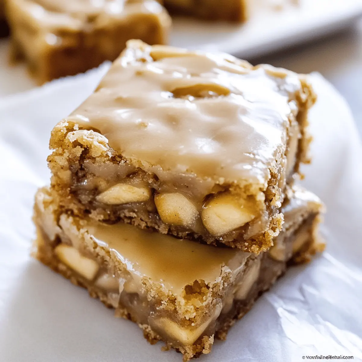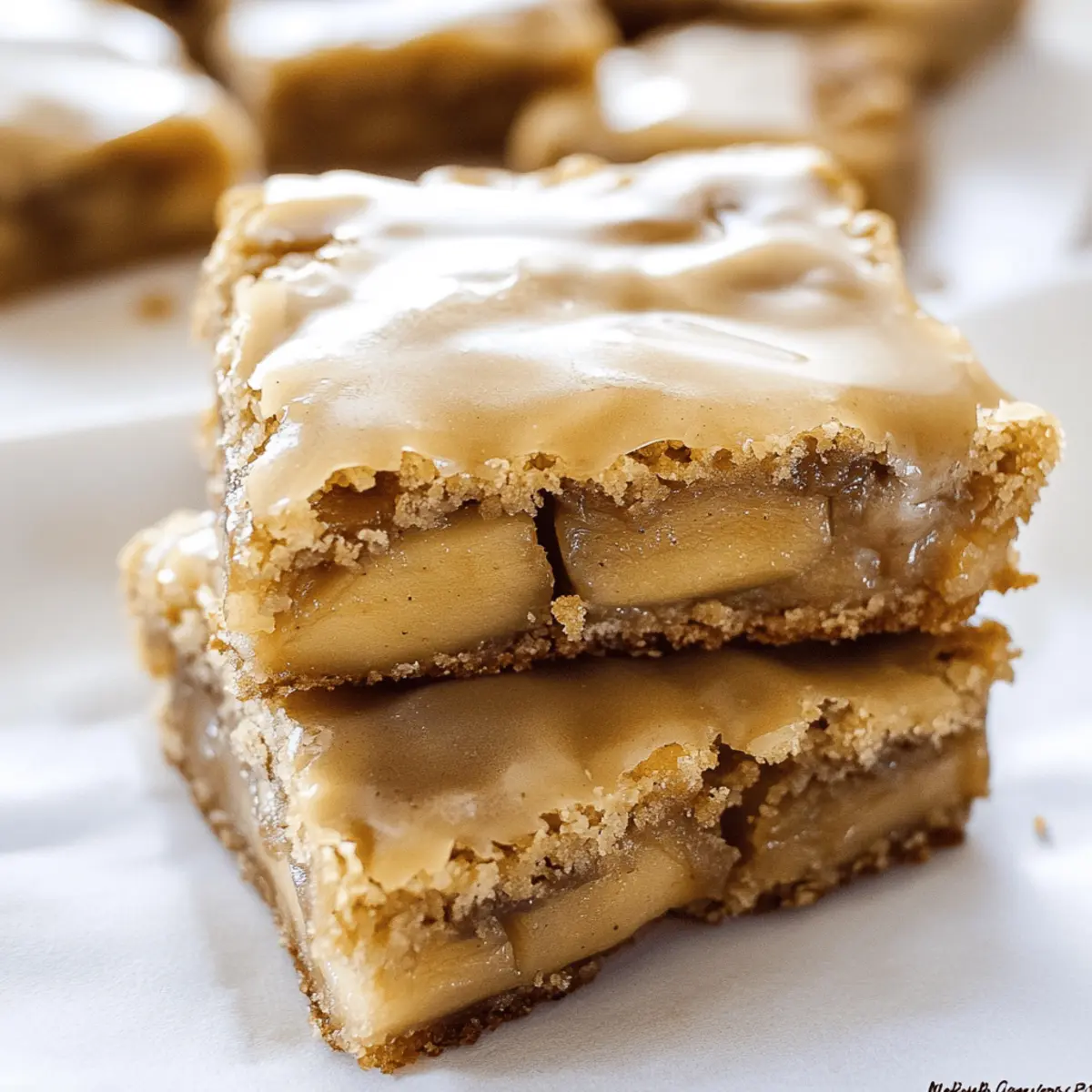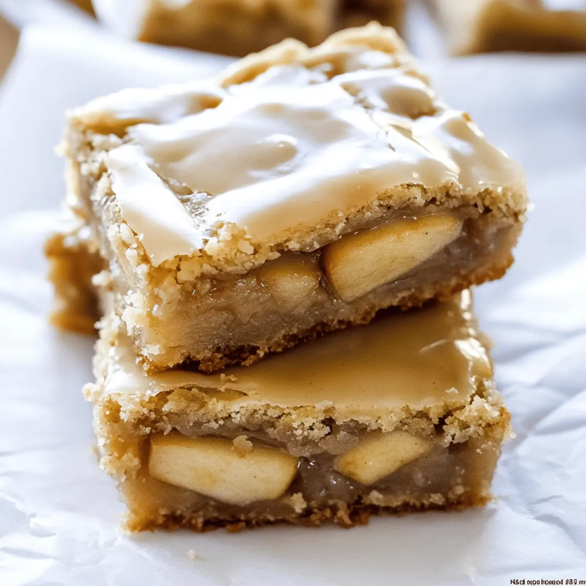 As the leaves turn crisp and the air fills with the scent of autumn, I can’t help but crave something sweet and comforting. Enter my Maple Glazed Apple Blondies, a delightful twist on classic blondies that combines tender apples and a drizzle of luscious maple glaze. Not only are these blondies incredibly simple to whip up (perfect for beginner bakers), but they’re also guaranteed to wow friends and family at any gathering. With their chewy texture and warm, spiced flavors, they’re a slice of fall on a plate, turning any dessert table into a celebration. Ready to fall in love with this cozy dessert? Let’s dive into the recipe and bring those autumn vibes to life! Why Are These Blondies So Special? Simplicity at Its Best: These Maple Glazed Apple Blondies come together effortlessly, making them perfect for bakers of all skill levels. Irresistible Flavor: The fusion of sweet apples and rich maple syrup creates a flavor profile that’s both comforting and familiar, akin to a slice of apple pie. Perfect for Sharing: Ideal for gatherings, these treats will surely be crowd-pleasers, ensuring no one leaves without raving about them. Versatile Variations: Feel free to customize your blondies by adding different nuts or chocolate chips, tailoring them to your family’s favorites. Seasonal Satisfaction: With warm cinnamon and autumn flavors, these blondies truly embody the essence of fall, making them a seasonal must-try. Whether enjoyed fresh from the oven or paired with a scoop of vanilla ice cream, these blondies promise a delightful experience. If you’re looking for another delicious dessert with fall flavors, check out my mouthwatering Apple Crumble Cheesecake that’s sure to be a hit! Maple Glazed Apple Blondies Ingredients For the Blondies All Purpose Flour – Provides structure to the blondies; use gluten-free flour for a gluten-free version. Baking Powder – Helps the blondies rise during baking; ensure it’s fresh for best results. Salt – Enhances flavor and balances sweetness. Butter (Softened) – Adds moisture and richness; unsalted is recommended for better control over saltiness. Granulated Sugar – Contributes sweetness and promotes browning. Dark Brown Sugar – Provides a deep, caramel-like flavor; light brown sugar can be a substitute if needed. Large Eggs – Binds the mixture and aids in structure; room temperature eggs mix better. Vanilla Extract – Offers a warm, aromatic flavor; use pure vanilla extract for optimal taste. Cinnamon – Adds warmth and a fall-inspired flavor; it’s optional but highly recommended. Apples (Chopped Finely) – Provides texture and natural sweetness; Honeycrisp or Fuji apples work wonderfully. For the Apple Filling Brown Sugar – Enhances sweetness and balances the tartness of apples. Butter – Adds moisture to the apple mixture. Vanilla Extract – Boosts the flavor of the apple filling. Cinnamon – Complements the flavors of the apples beautifully. For the Maple Glaze Butter – Creates a rich, spreadable texture; unsalted is preferred. Pure Maple Syrup – Adds that distinct maple flavor; be sure to use real maple syrup for the best results. Powdered Sugar – Helps achieve the ideal glaze consistency. Vanilla Extract – Adds depth to the glaze flavor. Ground Cinnamon – Offers a warm, spiced aroma that ties everything together. These Maple Glazed Apple Blondies are sure to bring warmth and joy to your autumn gatherings with their inviting flavors! Step‑by‑Step Instructions for Maple Glazed Apple Blondies Step 1: Prepare Apple Filling In a medium skillet, combine finely chopped apples, brown sugar, butter, vanilla extract, and cinnamon. Cook over medium-low heat for about 3-4 minutes, stirring occasionally, until the apples soften and the mixture becomes fragrant and syrupy. Once done, remove from heat and allow the apple filling to cool while you prepare the blondie batter. Step 2: Prepare Blondie Batter In a large mixing bowl, cream the softened butter using an electric mixer until it’s light and fluffy, approximately 2 minutes. Gradually add both granulated and dark brown sugars, mixing well to combine. Add the eggs, one at a time, beating well after each addition. Stir in the salt and vanilla extract until fully incorporated, creating a smooth batter. Step 3: Combine Dry Ingredients In a separate bowl, whisk together the all-purpose flour, baking powder, and cinnamon until well combined. Gradually add this dry mixture into the wet ingredients, stirring gently until just combined. Be careful not to overmix, as you want to maintain the plush texture of the Maple Glazed Apple Blondies. Step 4: Layer Blondies Preheat your oven to 350°F (175°C) and grease an 11×7 inch baking pan with cooking spray. Spread half of the blondie batter evenly into the bottom of the pan using a spatula. Spoon the cooled apple filling on top, spreading it gently. Finally, dollop the remaining blondie batter over the apple layer, spreading carefully to cover the apples. Step 5: Bake Place the prepared pan in the preheated oven and bake for 25-30 minutes. Keep an eye on the blondies; they should be golden brown around the edges and a toothpick inserted in the center should come out clean. Once baked, remove the pan from the oven and allow to cool on a wire rack for about 10 minutes before glazing. Step 6: Prepare Maple Glaze In a small saucepan over low heat, melt the butter, then whisk in the pure maple syrup, vanilla extract, and ground cinnamon. Gradually add the powdered sugar, stirring until the mixture is smooth and glossy. Remove from heat and let it cool slightly to thicken while the blondies finish cooling. Step 7: Glaze Blondies Once the blondies have cooled for approximately 10 minutes, pour the maple glaze evenly over the top, allowing it to drizzle down the sides. Let the glaze set for a few minutes before slicing the blondies into squares. Your Maple Glazed Apple Blondies are now ready to be enjoyed and shared! Tips for