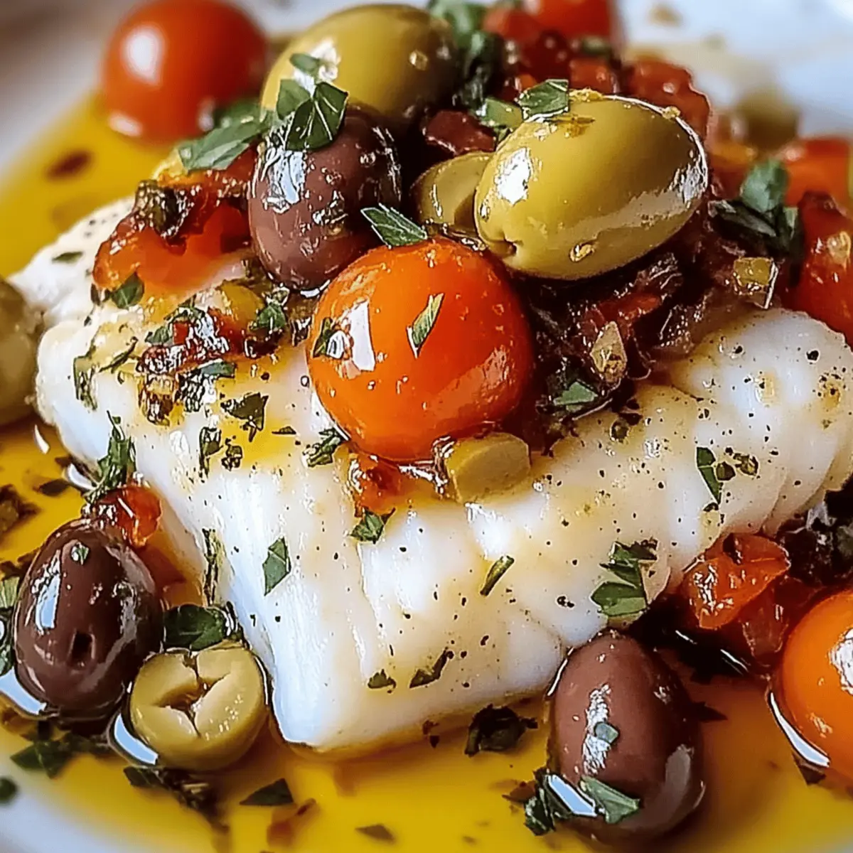 As I pulled the cod fillets from the oven, the comforting scents of garlic and lemon wafted through my kitchen, instantly brightening my mood. This Mediterranean Baked Cod with Olives is one of those recipes that not only excites your taste buds but also fits seamlessly into a busy lifestyle. It’s a healthy dish that comes together in just 40 minutes and serves as the perfect antidote to fast food fatigue. The flaky cod, paired with briny olives and vibrant cherry tomatoes, creates a delightful balance of flavors that will impress your family—yes, even the pickiest eaters! Curious about how to make this easy, healthy meal? Let’s dive into the recipe! Why Is Mediterranean Baked Cod Special? Quick & Easy: This dish comes together in just 40 minutes, making it the perfect choice for busy weeknights when you crave homemade goodness without the hassle. Bursting with Flavor: The combination of fresh herbs, garlic, and zesty lemon elevates the mild cod, while olives and capers bring an authentic Mediterranean flair. Versatile Options: You’re not limited to just cod; feel free to experiment with other flaky fish, or add seasonal vegetables like zucchini to tailor the dish to your preferences. Healthy & Wholesome: Low in calories yet rich in omega-3s, this meal aligns perfectly with a healthy lifestyle. It’s the ideal choice for those wanting to swap fast food for nutritious and satisfying flavors. Crowd-Pleaser: Impress friends and family with this delightful dish that caters to all palates, even the pickiest eaters in your home. Pair it with a refreshing side salad or some Baked Mac Cheese for a complete meal! Mediterranean Baked Cod with Olives Ingredients For the Cod Dish Cod Fillets – The star of the dish; ensures a flaky and moist texture. Substitute with halibut or haddock for a different taste. Kalamata Olives – Infuses brininess and complexity; a must for that authentic Mediterranean flavor. Green olives can be swapped in for variance. Cherry Tomatoes – Add a burst of sweetness and acidity; they also enhance the visual appeal of your dish. Diced canned tomatoes are an excellent alternative when fresh ones are unavailable. Red Onion – Brings a sweet and aromatic depth. Shallots can be a milder substitute if desired. Garlic – Provides that delicious aromatic foundation. If you’re in a pinch, garlic powder can work well. Capers – Adds a tangy punch to the flavor profile; consider omitting them if you’re not a fan, but lemon juice could provide a similar brightness. Olive Oil – Adds richness and aids browning; feel free to use avocado oil for a healthy twist. Dried Oregano – Contributes traditional Mediterranean flavor; switch to fresh oregano for a more vibrant essence (use three times the amount). Fresh Lemon – Enhances acidity and zest; both zest and juice are key to elevating the dish. Lime can replace lemon if needed. Salt & Black Pepper – Essential for building flavor; adjust according to your taste. Fresh Parsley – For garnish, this herb freshens up the dish. Basil can stand in if you prefer another flavor. Suggested Serving For a Complete Meal – Pair with a side of quinoa, couscous, or a vibrant fresh green salad to round out your dining experience. This Mediterranean Baked Cod with Olives is sure to become a beloved family favorite that rekindles the joy of home-cooked meals! Step‑by‑Step Instructions for Mediterranean Baked Cod with Olives Step 1: Preheat the Oven Begin by preheating your oven to 400°F (200°C). As it warms, grab a baking dish, ideally around 9×13 inches, and lightly grease it with olive oil to prevent sticking. This dish will be the cozy home for your Mediterranean Baked Cod with Olives, so ensure it’s ready for the delightful ingredients to come. Step 2: Prepare Vegetables While the oven is heating, chop your cherry tomatoes, red onion, garlic, and kalamata olives. Aim for bite-sized pieces to ensure even cooking and a wonderfully colorful presentation. Once prepped, toss these ingredients directly into your baking dish. A mix of vibrant colors will not only look fantastic but add layers of flavor as they roast. Step 3: Season the Vegetables Sprinkle the chopped vegetables generously with salt, black pepper, and dried oregano. This seasoning helps to enhance the natural goodness of the veggies, creating a base that bursts with Mediterranean flavor. Ensure everything is well mixed in the baking dish, allowing the spices to coat the veggies evenly for optimal taste. Step 4: Add the Cod Fillets Next, take your seasoned cod fillets and place them gently on top of the prepared vegetable mixture. Ensure each fillet is nestled securely, allowing the juices to mingle during baking. This is the heart of your Mediterranean Baked Cod with Olives, and positioning them this way will guarantee a flaky, tender finish. Step 5: Drizzle and Zest Now, drizzle a generous amount of olive oil over the cod and vegetable medley. Follow this with the zest of one fresh lemon, ensuring it gracefully covers the top. This step adds flavor and brightness, which is essential for a well-rounded dish. The aroma will begin to fill your kitchen, hinting at the deliciousness to come. Step 6: Bake to Perfection Place the baking dish in the preheated oven and let it bake for about 20 minutes. Keep an eye on your dish; the cod should become opaque and flake easily with a fork once it reaches an internal temperature of 145°F (63°C). The vegetables will become tender and aromatic, creating a delightful medley alongside your flavorful cod. Step 7: Finish with Lemon and Parsley After removing the dish from the oven, give your Mediterranean Baked Cod with Olives a final touch! Squeeze fresh lemon juice over the top for an extra zing, and sprinkle a handful of freshly chopped parsley. This brightens the presentation and infuses the dish with vibrant flavors, ready to serve to your eager family! How to Store and Freeze Mediterranean Baked Cod with Olives Fridge