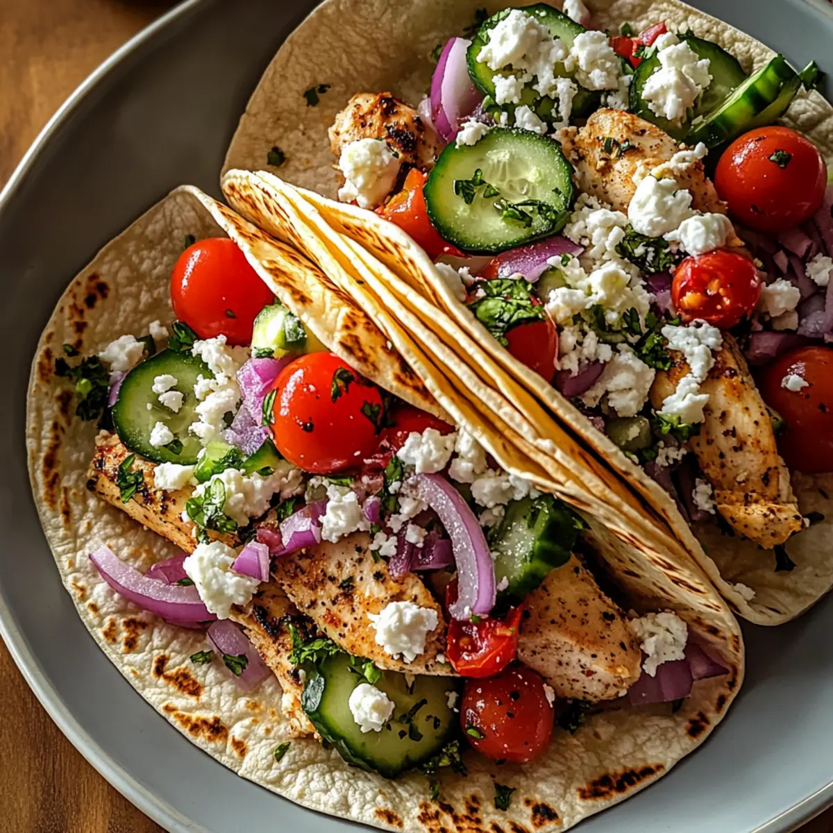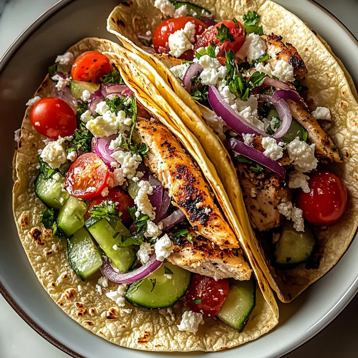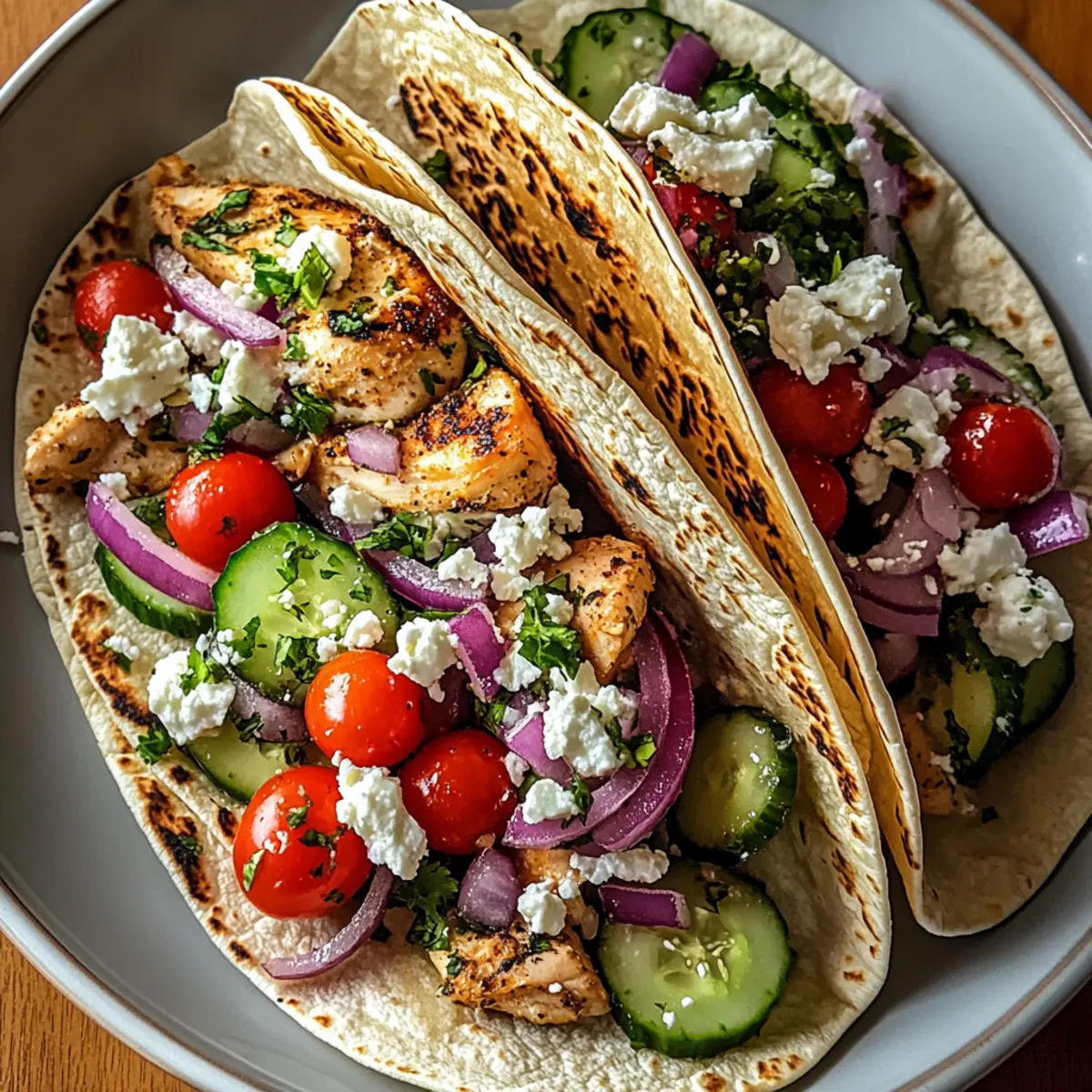 Sizzling chicken hits the skillet, filling the kitchen with an intoxicating aroma that beckons everyone to the table. Tonight, I’m serving up Mediterranean Chicken Tacos, a wonderfully quick and healthy dinner option that brings a taste of the Mediterranean right to our plates. With just an hour to spare, these beginner-friendly tacos feature juicy marinated chicken and a colorful array of fresh toppings that will delight the whole family. You’ll appreciate how easily they come together, making busy weeknights a little more special without sacrificing your health goals. Plus, they’re a surefire crowd-pleaser that can be customized to suit any taste. Ready to delve into this flavorful adventure? Let’s get cooking! Why Choose Mediterranean Chicken Tacos? Quick Preparation: This recipe comes together in just over an hour, making it perfect for busy nights. Zesty Flavor: Each bite bursts with the wonderful Mediterranean spices of garlic, cumin, and paprika, enhancing your meal experience. Healthy Ingredients: Packed with lean chicken, fresh veggies, and creamy feta, you’ll love the nutritious boost in every taco! Customizable: Feel free to switch up the toppings or even use shrimp for a seafood twist; versatility is key! Family-Friendly: These tacos are a hit with both adults and kids, ensuring your dinner table is full of smiles. Why not pair them with a refreshing side like Mediterranean rice for an even more satisfying meal? Let’s dive into the cooking process! Mediterranean Chicken Tacos Ingredients For the Chicken Marinade Chicken Breasts – A lean protein choice that tenderizes beautifully through marination; substitute with tofu or chickpeas for a vegetarian version. Olive Oil – Adds healthy fats and enhances flavor; using high-quality olive oil is recommended. Lemon Juice – Brightens flavors and balances richness; fresh lemon juice is best, but lime can be a suitable substitute. Garlic – Offers aromatic depth; feel free to increase the amount for a bolder garlic punch. Dried Oregano – Captures the earthy notes characteristic of Mediterranean cuisine; fresh oregano is a great alternative if you have it on hand. Paprika – Provides a sweet pepper flavor and vibrant color; smoked paprika can introduce an extra layer of flavor. Ground Cumin – Essential for warmth and nuttiness in the dish; no suggested substitution as it’s key to the flavor. Salt and Pepper – Enhances the dish’s overall flavor profile; adjust according to your taste preferences. For the Tacos Tortillas – Hold all the delicious fillings; using small corn or flour tortillas will yield the best results. Feta Cheese – Adds a creamy, salty element to the tacos; substitute with goat cheese or omit for a dairy-free option. Cherry Tomatoes – Bring a sweet burst of flavor and vibrant color; diced regular tomatoes can work if needed. Cucumber – Offers a fresh, crispy crunch; zucchini can be a good alternative if you prefer. Red Onion – Provides a sharp bite; substitute with sweet onion for a milder taste. Fresh Parsley – Adds brightness and freshness to the dish; cilantro can be swapped in for a different taste. Kalamata Olives – Introduce a delightful briny depth; any type of black olives can be used instead. For the Tzatziki Sauce Greek Yogurt – The creamy base for the sauce; feel free to choose a low-fat version if preferred. Grated Cucumber – Adds a refreshing crunch; squeeze out excess moisture before mixing. Garlic – Offers a nice zing to the sauce; adjust to your flavor liking. Fresh Herbs – Use dill or mint for traditional flavor components in tzatziki. These Mediterranean Chicken Tacos are bursting with flavors and are just what you need for a quick and healthy dinner. Happy cooking! Step‑by‑Step Instructions for Mediterranean Chicken Tacos Step 1: Prepare Marinade In a large bowl, combine ¼ cup of olive oil, the juice of 2 lemons, 4 minced garlic cloves, 1 teaspoon of dried oregano, 1 teaspoon of paprika, 1 teaspoon of ground cumin, and salt and pepper to taste. Whisk thoroughly until well blended. The marinade should have a fragrant and cohesive look, ready to enhance the chicken’s flavor for your Mediterranean Chicken Tacos. Step 2: Marinate Chicken Slice 1 pound of chicken breasts into thin strips and add them to the marinade. Using your hands or a spatula, ensure each piece is well-coated in the mixture. Cover the bowl with plastic wrap and refrigerate for at least 30 minutes, allowing the chicken to soak up the delicious Mediterranean flavors. For the best taste, marinate longer, up to 2 hours if possible. Step 3: Cook Chicken Heat a large skillet over medium-high heat. Once hot, add the marinated chicken strips to the skillet in a single layer. Cook for 6-8 minutes, turning occasionally, until the chicken is fully cooked and displays a light char, indicating it’s tender and flavorful. This sizzling step fills your kitchen with an inviting aroma as your Mediterranean Chicken Tacos come to life. Step 4: Warm Tortillas While the chicken is cooking, prepare your tortillas. In a separate dry skillet or microwave, warm small corn or flour tortillas for about 30 seconds until they are soft and pliable. This step will ensure that your tortillas easily wrap around the hearty chicken and toppings, creating the perfect base for your Mediterranean Chicken Tacos. Step 5: Assemble Tacos Once the chicken is ready, take your warm tortillas and arrange them on a serving platter. Place a generous amount of the cooked chicken strips in the center of each tortilla. Leave ample space for the toppings, as they will bring color and freshness to your Mediterranean Chicken Tacos, making them as delightful to look at as they are to eat. Step 6: Add Toppings Now it’s time to layer on the delicious toppings! Sprinkle crumbled feta cheese over the chicken, followed by halved cherry tomatoes, diced cucumber, and thinly sliced red onion. Add chopped fresh parsley and kalamata olives 