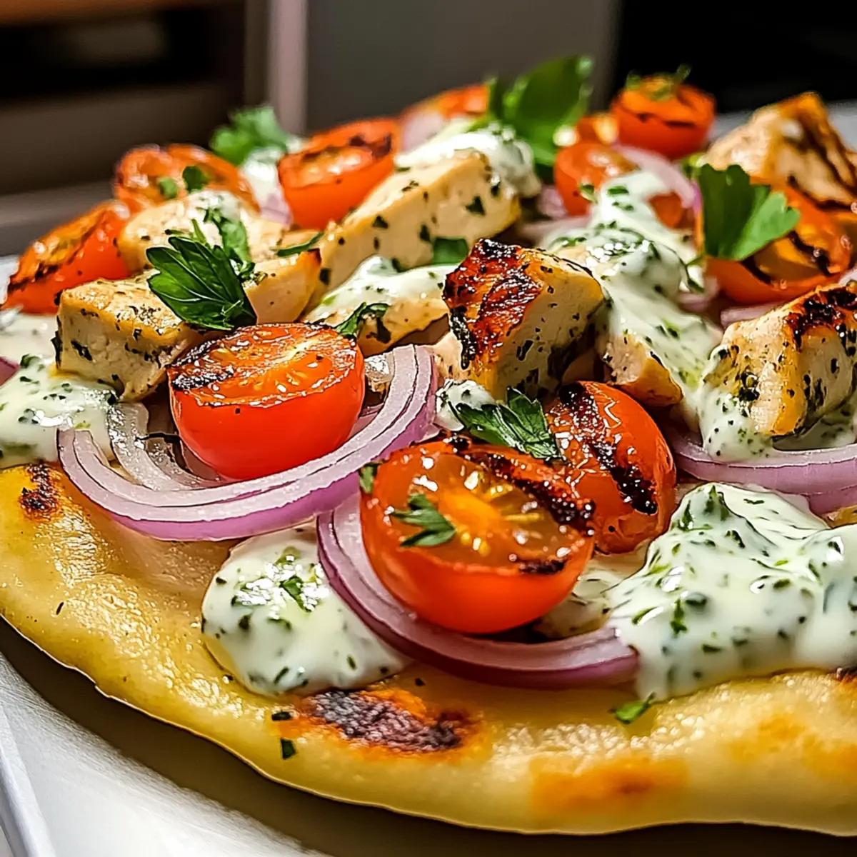 • Don’t Rush the Grill: Ensure your grill is preheated to medium-high for that perfect char. Undercooked chicken can ruin your Mediterranean Tzatziki Chicken Naan Pizza.
