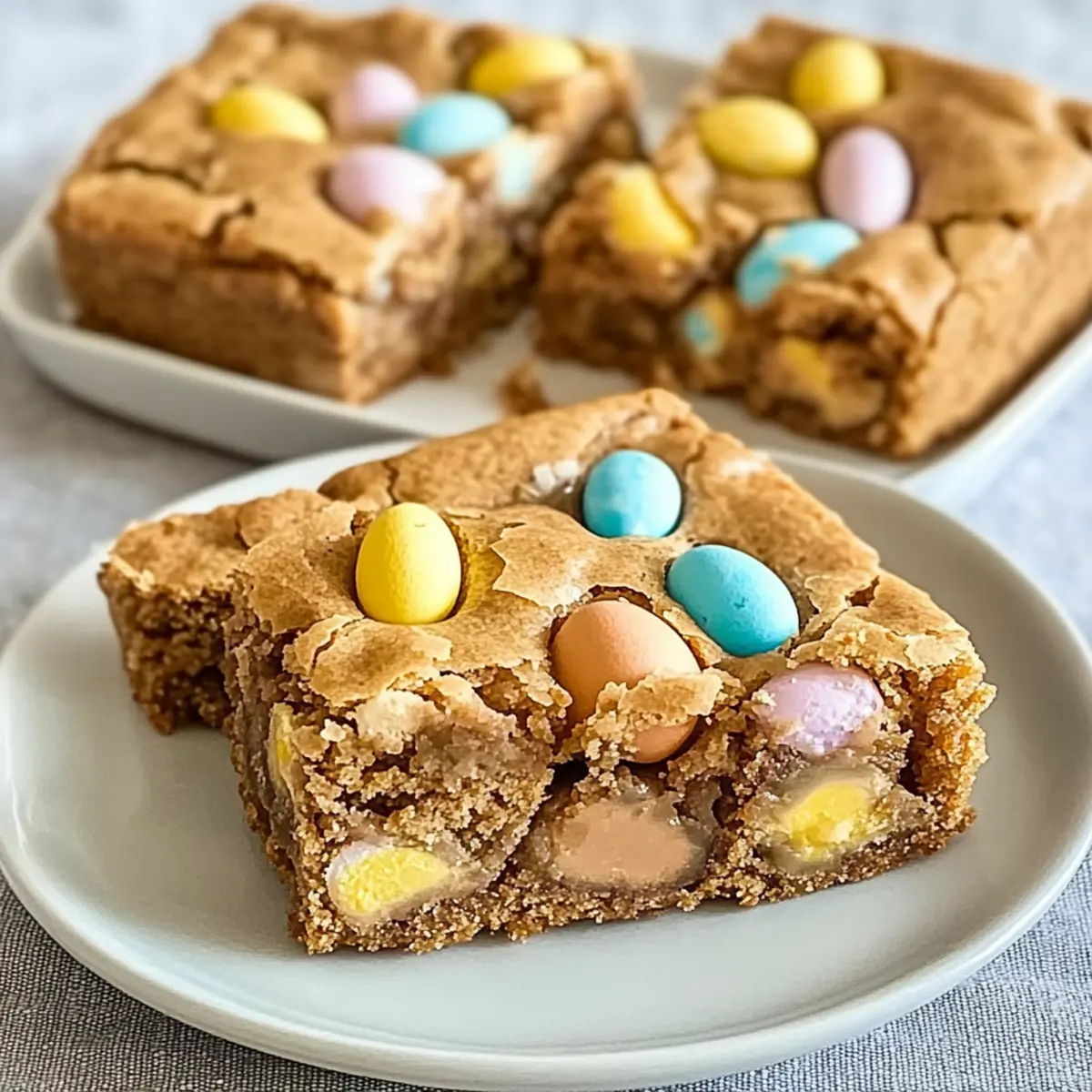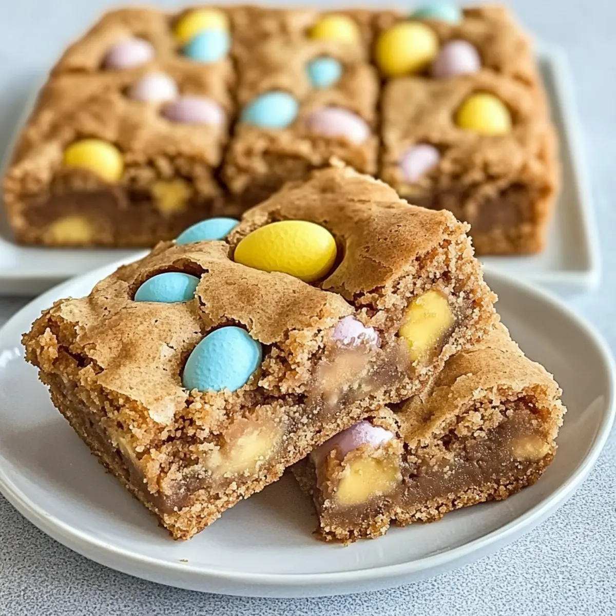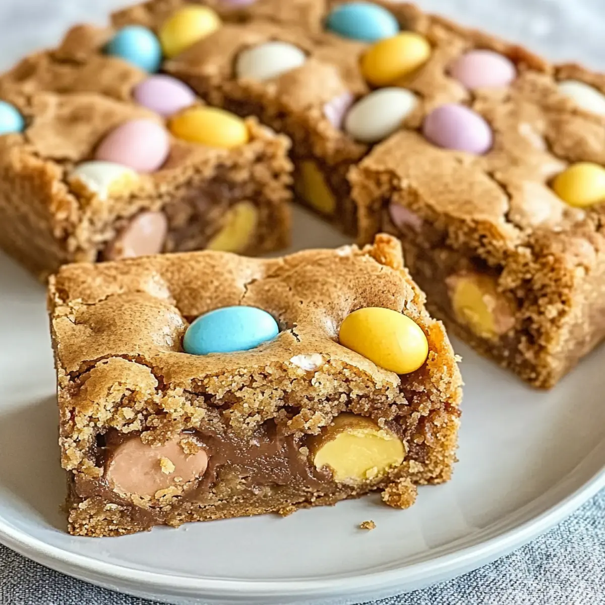 “Did you hear that?” I whispered to my friend as the aroma of freshly baked cookies wafted through the kitchen. It wasn’t just any cookie, but a mouthwatering batch of Mini Cadbury Easter Egg Blondies, the ultimate Easter-themed dessert that takes just minutes to whip up. These delightful treats are warm and gooey, packing in rich chocolatey goodness while featuring crunchy bits of colorful Cadbury eggs. With a quick preparation time and endless customization options, they’ll turn any snack time into a festive celebration. Whether you’re bringing a sweet surprise to an Easter gathering or just indulging your sweet cravings at home, these blondies are sure to please. Curious to find out how to make these irresistible treats? Let’s dive into the recipe! Why are these blondies a must-try? Irresistible flavor: Each bite of these Mini Cadbury Easter Egg Blondies is bursting with rich chocolate paired with delightful bits of crunchy mini eggs. Quick to make: Whip up this treat in under an hour, making it perfect for last-minute gatherings. Customizable: Feel free to substitute mini eggs with your favorite chocolate candies or add nuts for extra texture! Perfect for sharing: Whether it’s Easter or any occasion, these blondies are a hit among friends and family, making every moment special. Craving something Easter-themed? You might also enjoy our delicious Fried Egg Quesadilla for a unique twist on comfort food! Mini Cadbury Easter Egg Blondies Ingredients • Get ready to indulge in this delightful dessert with the perfect balance of flavors and textures! For the Blondies Unsalted Butter – Provides richness and moisture; use salted butter if you prefer a more savory flavor. Light Brown Sugar – Adds sweetness and depth; dark brown sugar can enhance that molasses note. Granulated Sugar – Balances sweetness and texture; swapping with brown sugar gives a chewier bite. Eggs – Acts as a binding agent for structure; make sure they’re at room temperature for better mixing. Pure Vanilla Extract – Enhances overall flavor; almond extract can provide a lovely twist if desired. All-Purpose Flour – Provides structure and a tender crumb; for gluten-free, use a gluten-free flour blend. Baking Powder – Helps the blondies rise; freshness is key, so always check the expiration date. Salt – Balances sweetness and enhances flavor; a touch of sea salt on top adds a delightful contrast. Chopped Mini Cadbury Eggs – Adds that signature chocolatey goodness; feel free to substitute with your favorite candies! These Mini Cadbury Easter Egg Blondies are not just delicious but customizable to fit your preferences! Enjoy making them! Step‑by‑Step Instructions for Mini Cadbury Easter Egg Blondies Step 1: Preheat and Prepare Begin by preheating your oven to 350°F (175°C). While the oven warms, prepare an 8×8 inch baking pan by greasing it lightly or lining it with parchment paper. This will ensure your Mini Cadbury Easter Egg Blondies release easily after baking, giving you that perfect golden edge. Step 2: Melt the Butter In a medium saucepan over low heat, melt ½ cup of unsalted butter, stirring occasionally until it’s completely liquid and glossy, about 2-3 minutes. Be careful not to let it brown; you want it melted but still clear. Once melted, remove from heat and let it cool slightly before moving on to the next step. Step 3: Mix in Sugars After the butter has cooled a bit, stir in ¾ cup of light brown sugar and ½ cup of granulated sugar until fully combined, about 2-3 minutes. The mixture should appear smooth and slightly thickened. This blend is crucial for the sweetness and chewy texture of your blondies, so mix well! Step 4: Add Eggs and Vanilla Let the sugar-butter mixture cool for a moment before whisking in 2 room-temperature eggs, one at a time. Ensure each egg is fully incorporated before adding the next. Then, stir in 1 teaspoon of pure vanilla extract until the batter is smooth and luscious, giving your Mini Cadbury Easter Egg Blondies a lovely flavor foundation. Step 5: Combine Dry Ingredients In a separate bowl, sift together 1 ½ cups of all-purpose flour, 1 teaspoon of baking powder, and a pinch of salt. Once sifted, gently fold the dry mixture into the wet ingredients using a spatula. Mix until just combined; being careful not to overmix will help keep your blondies tender and delicious. Step 6: Fold in Cadbury Eggs Now comes the exciting part! Fold in 1 cup of chopped Mini Cadbury Eggs gently until they’re evenly distributed throughout the batter. These little gems will bring flavor and texture, making your Mini Cadbury Easter Egg Blondies a special treat that stands out! Step 7: Bake the Blondies Pour the batter into the prepared baking pan, spreading it evenly with a spatula. Place it in the preheated oven, baking for 25-30 minutes. The blondies are done when a toothpick inserted comes out with a few moist crumbs but not wet batter. Keep an eye on them during the last few minutes for perfect doneness! Step 8: Cool and Slice Once baked, remove the blondies from the oven and allow them to cool in the pan for at least 15-20 minutes. This cooling period allows the edges to set up nicely. After cooling, lift the blondies out using the parchment paper and slice them into squares. Now they’re ready for sharing or enjoying all to yourself! Make Ahead Options These Mini Cadbury Easter Egg Blondies are perfect for meal prep, allowing you to savor sweet moments with minimal fuss! You can prepare the batter up to 24 hours in advance. Simply follow the recipe steps up until pouring the batter into the baking pan, then cover it tightly with plastic wrap and refrigerate. This helps to maintain their gooey texture and flavor. When you’re ready to bake, preheat your oven, pour the chilled batter into the pan, and bake as directed. You’ll still achieve those delightful, decadent blondies that are just as delicious as when made fresh! Enjoy the time-saving benefits o