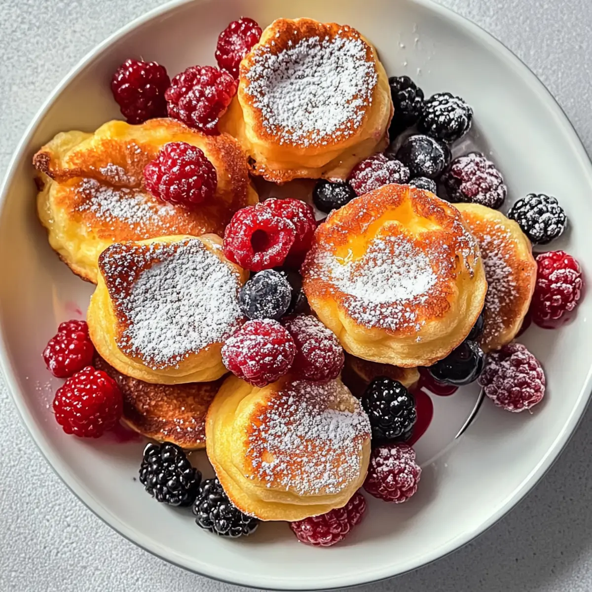 There’s something magical about watching a batch of Mini Dutch Baby Pancakes puff up in the oven, filling the kitchen with an irresistible aroma that beckons everyone to breakfast. These delightful, fluffy baked pancakes are not only visually stunning but also incredibly easy to whip up, making them perfect for a quick brunch or a cozy family gathering. With their airy texture and slightly crispy edges, they offer a warm embrace without the fuss of traditional frying. Plus, they can easily accommodate gluten-free or dairy-free diets, ensuring everyone can enjoy this delightful treat. Curious about how to make them puff to perfection? Let’s dive into this simple yet impressive recipe! Why Are Mini Dutch Baby Pancakes Amazing? Fluffiness Awaits: Experience a breakfast revelation with light and airy Mini Dutch Baby Pancakes that simply melt in your mouth. Crowd-Pleasing Delight: Perfect for brunch, these stunning individual portions are sure to impress friends and family alike. Quick and Easy: With minimal prep time, making these effortless pancakes is a breeze—no frying necessary! Versatile Options: Customize your pancakes by using gluten-free or dairy-free substitutes to cater to everyone’s dietary needs. Plus, they’re just as delicious topped with fresh berries or a drizzle of syrup, making them joyful to serve. Why not enjoy them with a side of Protein Pancakes Healthy for a well-rounded breakfast table? Mini Dutch Baby Pancakes Ingredients Make these delightful Mini Dutch Baby Pancakes with fresh ingredients that elevate your brunch game! For the Batter Eggs – 2 large, at room temperature for optimal fluffiness in your mini pancakes. Milk – ½ cup, use whole or a non-dairy alternative like almond or oat milk for a lactose-free option. All-Purpose Flour – ½ cup, or substitute with a gluten-free blend for a gluten-free treat. Butter – 2 tablespoons, melted to impart rich flavor and another for greasing the muffin tin. Vanilla Extract – ½ teaspoon, optional but adds a lovely depth to the flavor profile. Salt – ¼ teaspoon, balances sweetness and enhances the overall taste. Powdered Sugar – for dusting, adds a delightful sweetness on top if desired. Step‑by‑Step Instructions for Mini Dutch Baby Pancakes Step 1: Preheat the Oven Begin by preheating your oven to 425°F (220°C) to create the ideal environment for puffing your Mini Dutch Baby Pancakes. This high temperature is crucial for achieving that glorious rise, so set aside about 10 minutes for the oven to reach its full temperature while you prepare the batter. Step 2: Prepare the Batter In a mixing bowl, whisk together 2 large room-temperature eggs, ½ cup of milk (whole or a non-dairy alternative), and 2 tablespoons of melted butter until well combined. Gradually add in ½ cup of all-purpose flour, ½ teaspoon of vanilla extract, and ¼ teaspoon of salt, whisking until the mixture is smooth and free of lumps. This vibrant batter will set the stage for fluffy pancakes that will delight your family. Step 3: Grease the Muffin Tin Next, prepare your muffin tin by adding about ½ teaspoon of butter to each cup. Place the greased tin in the oven for approximately 5 minutes or until the butter is hot and bubbling. This step ensures that your Mini Dutch Baby Pancakes develop crispy edges, adding to their delightful texture. Step 4: Pour the Batter Carefully remove the hot muffin tin from the oven, taking caution with the heat. Quickly pour the prepared batter into each muffin cup, filling them halfway, ensuring that each cup is evenly filled. You should hear a gentle sizzle as the batter hits the hot butter, indicating they are ready to puff beautifully when baked. Step 5: Bake Place the muffin tin back into the oven and bake the Mini Dutch Baby Pancakes for about 15 minutes. Refrain from opening the oven door during this time to prevent deflation. As they bake, watch them rise dramatically and turn a beautiful golden brown, providing a visual delight that will excite anyone waiting for brunch. Step 6: Serve Once baked, carefully remove the Mini Dutch Baby Pancakes from the oven. Let them cool slightly before dusting with powdered sugar for an elegant touch. Serve them warm alongside fresh berries or syrup, making for an irresistible brunch treat that everyone will adore. Storage Tips for Mini Dutch Baby Pancakes Fridge: Store leftover Mini Dutch Baby Pancakes in an airtight container for up to 3 days. Reheat in the oven or microwave for a warm, fluffy treat. Freezer: For longer storage, freeze the pancakes individually wrapped in plastic wrap or parchment paper, then place them in an airtight container for up to 2 months. Reheating: To reheat, place the frozen pancakes directly in a preheated oven at 350°F (175°C) for about 10–15 minutes, or until warmed through and slightly crisped. Serving Fresh: Mini Dutch Baby Pancakes are best served warm, so enjoy them right out of the oven, or reheat carefully to maintain their delightful texture! What to Serve with Mini Dutch Baby Pancakes? Enhance your brunch table with delightful side dishes that beautifully complement the airy goodness of Mini Dutch Baby Pancakes. Fresh Berries: A vibrant medley of strawberries, blueberries, and raspberries, adding natural sweetness and a refreshing contrast. Creamy Greek Yogurt: Provides a rich and tangy balance, perfect for topping your pancakes or enjoying on the side. Maple Syrup: Drizzle this classic choice over your pancakes for that irresistible sweetness that pairs perfectly with the fluffy texture. Savory Bacon: Crispy, salty bacon adds a wonderful crunch that contrasts deliciously with the light pancake; a flavor match made in heaven! Cottage Cheese: Spoon some cottage cheese on the side for a protein-packed companion that adds creaminess to each bite. Cinnamon Apples: Warm, caramelized cinnamon apples create a cozy topping that elevates your pancakes to a whole new level of indulgence. Herb-Infused Scrambled Eggs: Flu