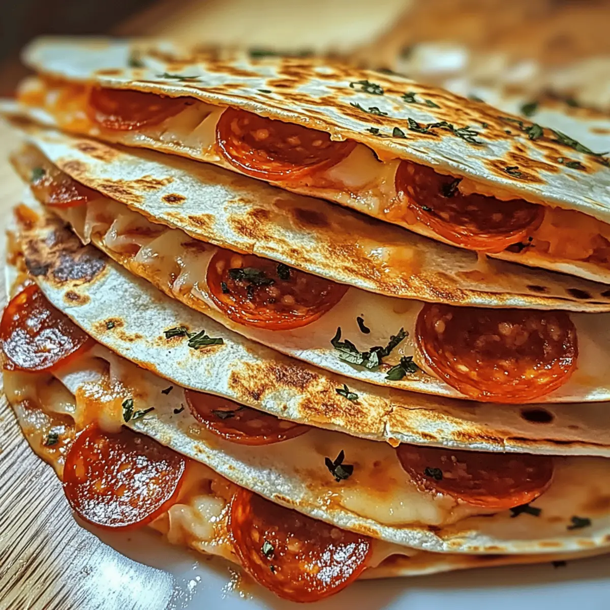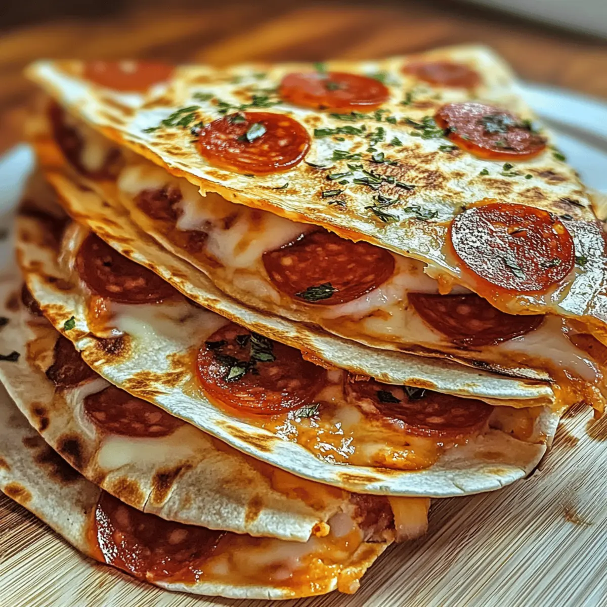 Just the other day, while hurriedly prepping dinner, I had a moment of revelation: why not combine two loved dishes into one stunning creation? That’s how my irresistible mozzarella and pepperoni quesadillas came to life! This quick and customizable recipe is not only packed with gooey, melted mozzarella and savory turkey pepperoni but also ready in under 20 minutes—perfect for those busy weeknights when you crave something both delicious and hassle-free. Plus, if you’re looking for a healthier twist, you can easily swap in plant-based pepperoni or load up on veggies! With each crispy, cheesy bite, you’ll experience a delightful fusion that’s sure to become a family favorite. Are you ready to transform your mealtime? Let’s dive into this mouthwatering adventure! Why Make Mozzarella and Pepperoni Quesadillas? Quick and Easy: You can whip up these quesadillas in under 20 minutes, making them a perfect weeknight solution. Customizable: Whether you’re craving classic pepperoni or preferring a vegetarian option, this recipe adapts to your taste for ultimate satisfaction. Cheesy Goodness: The melty mozzarella mixes beautifully with savory turkey pepperoni, ensuring every bite is a flavor-packed experience. Family-Friendly: Adults and kids alike will love this fun, interactive meal—perfect for bringing everyone together at the table. If you’re interested in a more traditional twist, consider pairing it with a fresh salad or our easy Baked Mac and Cheese for a complete dinner. Healthier Options: Simply swap pepperoni for plant-based alternatives or pile on your favorite vegetables for a guilt-free delight. Mozzarella and Pepperoni Quesadilla Ingredients For the Quesadillas Large Flour Tortillas – Use these for the ultimate crispy texture and pliability as you fold them. Turkey Sandwich Pepperoni – Leaner than traditional options, but feel free to swap in regular pepperoni or plant-based for a vegetarian variant. Mozzarella Cheese – Opt for shredded for easy melting; it creates that gooey, cheesy goodness everyone loves. Olive Oil or Butter – Use olive oil for a lighter dinner or butter for richer flavor while cooking. Garlic Powder – This optional ingredient enhances the overall taste, adding a delicious depth. Italian Seasoning – A delightful blend that evokes classic pizza flavors; don’t skip this for full flavor impact. Pizza Sauce – Perfect for dipping or adding a touch of extra flavor—homemade or store-bought works beautifully. Embrace this delightful mozzarella and pepperoni quesadilla recipe and discover a world of flavors, all packed into a quick and easy dish! Step‑by‑Step Instructions for Mozzarella and Pepperoni Quesadilla Step 1: Prep Tortillas Begin by laying out your large flour tortillas on a clean surface. Spread a generous layer of pizza sauce evenly on one side of each tortilla for a flavorful kick. Make sure to leave a little space around the edges to prevent the sauce from spilling out when cooked. Step 2: Add Filling Next, sprinkle about 1/4 cup of shredded mozzarella over the pizza sauce on each tortilla. Distribute the turkey pepperoni slices evenly on top of the cheese, ensuring every bite will burst with flavor in your mozzarella and pepperoni quesadilla. The gooey cheese will melt beautifully around the pepperoni as it cooks. Step 3: Sprinkle Seasoning Enhance the flavor by lightly sprinkling garlic powder and Italian seasoning over the cheese and pepperoni layer. This will add aromatic richness to your quesadillas. Ensure the seasonings are spread uniformly to avoid uneven flavor in your delicious dish. Step 4: Assemble Carefully fold each tortilla in half, encasing the cheesy goodness and pepperoni. Press down gently on each folded quesadilla to secure the filling and ensure it holds together during cooking. This method will give you a delightful shape and maintain the delicious contents within. Step 5: Cook In a medium skillet, heat a dab of butter or a drizzle of olive oil over medium heat until melted. Place the folded quesadillas in the skillet and cook for 2-3 minutes on each side. Look for a golden, crispy exterior and melted cheese bubbling from within to signal they’re done. Step 6: Serve Once cooked to perfection, remove the quesadillas from the heat and let them cool for a minute. Slice them into wedges for easy eating, and serve them immediately with extra pizza sauce on the side for dipping. Your irresistible mozzarella and pepperoni quesadillas are now ready to be devoured! Expert Tips for Mozzarella and Pepperoni Quesadillas Prep Ahead: Prepare your quesadillas in advance and refrigerate for up to 8 hours. This saves time during hectic weeknights. Flipping Technique: Flip your mozzarella and pepperoni quesadillas halfway through cooking to ensure both sides achieve that perfect golden crispiness. Avoid Sogginess: Don’t add overly watery vegetables unless they’re pre-cooked, as they can make your quesadilla soggy. Try Different Cheeses: Experiment with various cheeses, like cheddar or Monterey Jack, to elevate the flavor of your quesadilla. Sauce Alternatives: Use homemade pizza sauce or even pesto for a unique twist on dipping, enhancing the overall flavor experience. Variations & Substitutions for Mozzarella and Pepperoni Quesadillas Feel free to unleash your creativity with these delightful quesadillas! Vegetarian Twist: Substitute turkey pepperoni with plant-based pepperoni or add grilled veggies like zucchini and bell peppers for a fresh flavor. Cheese Lovers: Experiment with different cheeses like sharp cheddar or creamy provolone for a unique taste that suits your palate. Spicy Kick: Add sliced jalapeños or a sprinkle of crushed red pepper flakes for that extra heat that elevates the dish. Herb Infusion: Swap Italian seasoning for fresh herbs like basil or oregano to infuse a bright, fragrant note into your quesadillas. Chili Enhancement: Mix in a spoonful of your favorite chili sauce for a zesty blend