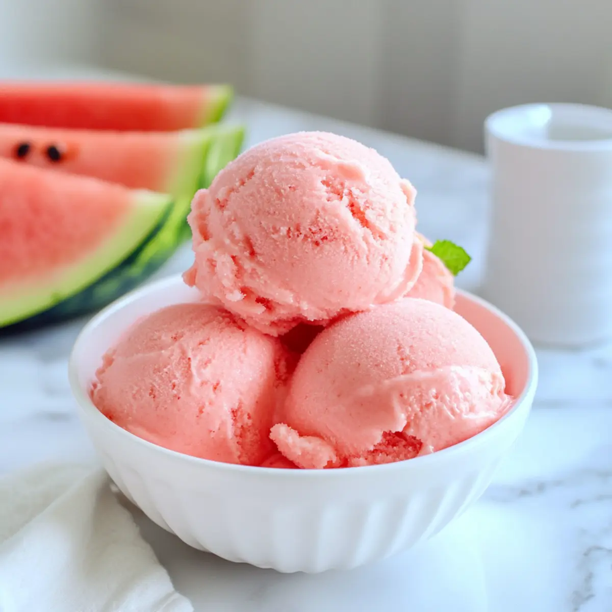 As the sun blazes overhead, I find myself on a quest for something cool and refreshing—a delicious antidote to the summer heat. That’s when I discovered the magic of the 2-Ingredient Ninja Creami Watermelon Sorbet. With just ripe, juicy watermelon and hydrating coconut water, this creamy sorbet is not only a breeze to whip up, but it’s also dairy-free, vegan, and delightfully healthy! What better way to indulge your sweet tooth while staying hydrated? This treat will become your go-to summer dessert, perfect for cooling off after a long day in the sun. So, ready to beat the heat and impress your friends with this easy, vibrant sorbet? Let’s dive into the recipe and make summer a little sweeter! Why is this sorbet a must-try? Refreshing and Hydrating: Made with juicy watermelon and coconut water, this sorbet is like sunshine in a bowl, keeping you cool while delivering hydration. Simple to Make: With only two ingredients and your Ninja Creami, you’ll whip up this delicious treat in no time—perfect for those busy summer days! Vegan Delight: This healthy dessert fits seamlessly into a plant-based lifestyle, making it a guilt-free indulgence for everyone. Versatile Flavor: Don’t hesitate to play around—add a splash of lime juice for a zesty twist or swap watermelon with your favorite summer fruits for different tastes! Crowd-Pleaser: Serve this vibrant sorbet at gatherings, and you’ll have everyone asking for seconds. It’s a sweet treat that makes any occasion special! For more creamy adventures, check out my delightful Baked Mac Cheese for an indulgent twist to balance out your healthier choices! Ninja Creami Watermelon Sorbet Ingredients Dive into the summer vibe with these delightful ingredients! For the Sorbet Watermelon – Use ripe, seedless watermelon for optimal sweetness and hydration. Coconut Water – This boosts electrolytes and adds a light tropical flavor; feel free to substitute it with any clear, naturally flavored liquid for variety. Embrace summer with this invigorating Ninja Creami Watermelon Sorbet, where each spoonful delivers a sweet escape from the heat! Step‑by‑Step Instructions for Ninja Creami Watermelon Sorbet Step 1: Prepare the Watermelon Wash and slice a ripe, seedless watermelon, carefully removing the rind. Chop it into small cubes, aiming for roughly 2-inch pieces to ensure even freezing. You’ll need enough watermelon to fill the Ninja Creami pint container. This juicy base is critical for your refreshing Ninja Creami Watermelon Sorbet. Step 2: Fill the Container Pack the Ninja Creami pint container tightly with the chopped watermelon cubes until they reach the max fill line. Pour coconut water over the watermelon, ensuring it also reaches the max fill line. This combination will create a wonderfully creamy texture when churned, setting the stage for a delicious sorbet. Step 3: Freeze the Mixture Secure the lid on the container and place it horizontally in your freezer. Allow it to freeze for 12 to 24 hours to ensure the watermelon and coconut water are completely solid. Proper freezing is crucial for achieving that light and creamy consistency when you create your Ninja Creami Watermelon Sorbet. Step 4: Spin the Sorbet Once fully frozen, remove the container and slightly warm the outside by microwaving it for 30 seconds or running it under hot water. Carefully insert the container into the Ninja Creami machine, select the sorbet setting, and let it churn away. You’ll know it’s ready when it transforms into a lovely, velvety sorbet. Step 5: Achieve the Perfect Texture After the first spin, check the texture of your Ninja Creami Watermelon Sorbet. If it appears too dry or chunky, re-spin for a smoother consistency. This step will ensure your sorbet is creamy and scoopable, perfect for serving on those hot summer days. Step 6: Serve and Enjoy Once finely churned, scoop out your delightful watermelon sorbet into chilled bowls or cups. You might add a garnish of fresh mint leaves or a slice of lime for an extra touch. Your refreshing Ninja Creami Watermelon Sorbet is now ready to impress your friends and family! What to Serve with Ninja Creami Watermelon Sorbet Elevate your summer gatherings with a delightful array of pairings that complement the icy sweetness of this refreshing treat. Savory Grilled Shrimp: The smoky, grilled flavors add a savory contrast to the sweet, fruity sorbet, balancing each bite perfectly. Crisp Garden Salad: A light salad with mixed greens, cherry tomatoes, and a zesty vinaigrette offers a refreshing crunch that enhances the sorbet’s coolness. Chilled Coconut Water: This hydrating drink mirrors the coconut notes in the sorbet, making for a naturally refreshing pairing that’s perfect for hot days. Minted Cucumber Slices: Fresh cucumber slices sprinkled with mint provide a cool, crunchy element that complements the sorbet beautifully. Lime Coconut Rice: The citrus notes in lime coconut rice harmonize with the sweetness of the sorbet, creating a delightful tropical atmosphere. Tropical Fruit Platter: Serve alongside a selection of tropical fruits like mango and pineapple for a colorful, fresh dessert spread that amplifies summer vibes. Vanilla Bean Panna Cotta: This creamy, elegant dessert pairs delightfully with the sorbet, adding richness that contrasts with the vibrant flavors of watermelons. Sparkling Citrus Mocktail: A bubbly drink with a splash of citrus invigorates the palate and perfectly complements the sorbet’s fruity essence, enhancing your summertime experience. Storage Tips for Ninja Creami Watermelon Sorbet Fridge: Keep any leftovers out for a maximum of 1 hour during serving to preserve texture; after that, return to the freezer to maintain quality. Freezer: Store the Ninja Creami Watermelon Sorbet in an airtight container for up to a week. Ensure it’s covered to prevent freezer burn and preserve its flavor. Reheating: Avoid reheating this sorbet; simply let it sit at room temperature fo