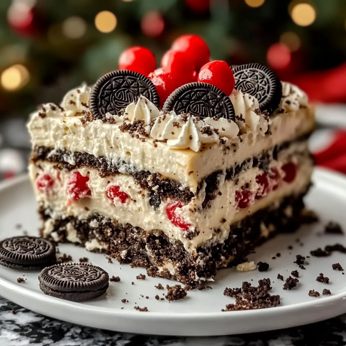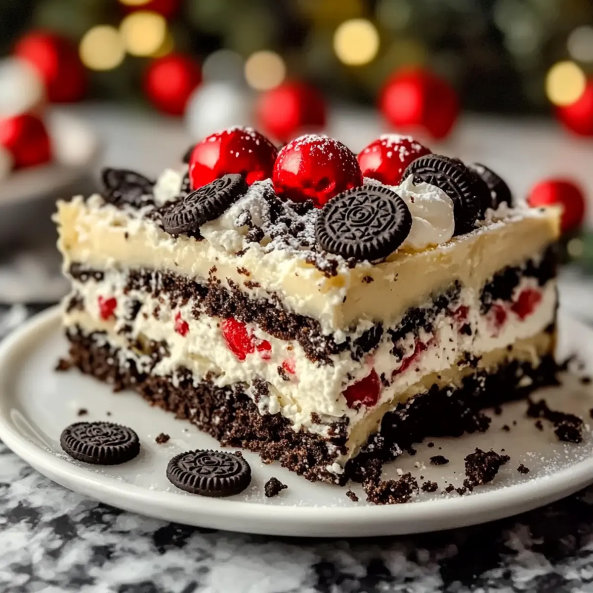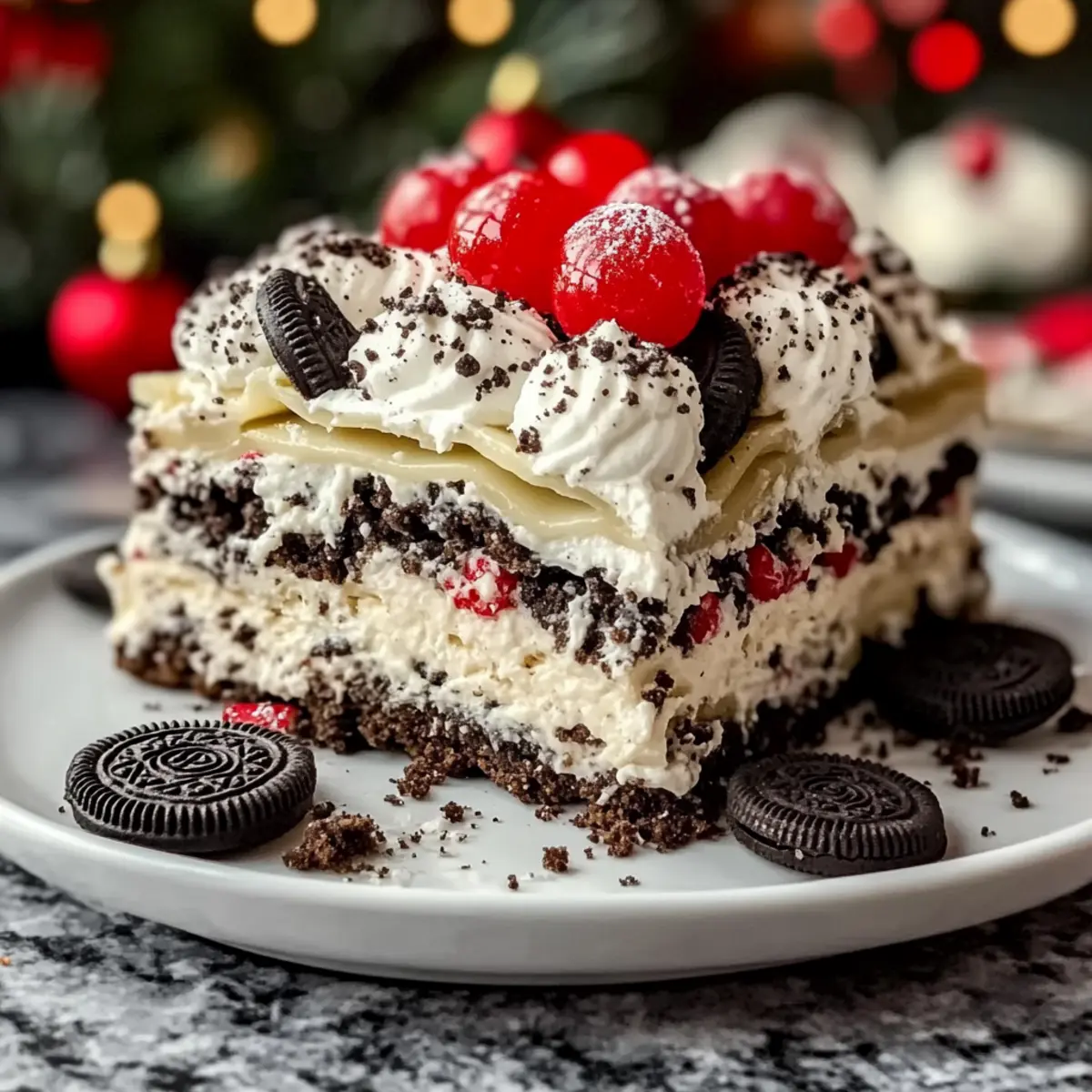 The holiday season is knocking at our doors, and with it comes the delight of festive treats! One dessert that always catches my attention is the No-Bake Christmas Oreo Lasagna. Imagine the satisfaction of layering chocolatey goodness and creamy filling without ever turning on your oven—how fantastic is that? This easy, no-bake recipe is not only quick to whip up, but it’s also a crowd-pleaser that will have friends and family asking for seconds. A perfect get-ahead dessert, this layered delight allows you to enjoy more quality time with loved ones. Are you ready to transform your holiday gatherings with this scrumptious, seasonal sweet? Let’s dive into the festive flavors of this irresistible delight! Why is this Oreo Lasagna a must-try? Effortless Preparation: No baking means you can have this dessert ready in no time, making it ideal for busy holiday schedules. Layered Indulgence: Each bite combines rich creamy layers with a satisfying crunch from the Oreos, ensuring a delightful taste experience. Festive Appeal: With its beautiful layers and optional crushed Oreos on top, it’s the perfect centerpiece for your holiday table. Versatile Treat: Feel free to customize this dessert by adding ingredients like crushed peppermint for a festive twist or turning it into individual cups for a fun presentation! Crowd Favorite: This easy recipe is sure to impress everyone at your gathering, and leftovers (if any) disappear quickly! Don’t forget to check out our Oreo Flag Pops for another festive delight to share. No-Bake Christmas Oreo Lasagna Ingredients For the Base • Oreo Cookies – The foundation of this dessert, offering a rich chocolate crunch; you can opt for gluten-free Oreos for a gluten-free version. For the Cream Filling • Cream Cheese – This creamy ingredient adds depth and stability to the luscious filling; make sure it’s softened for easier blending. • Whipped Topping – Lightens the filling, creating an airy texture; if preferred, you can make homemade whipped cream with heavy whipping cream and powdered sugar. • Powdered Sugar – Sweetens the cream filling, ensuring it’s perfectly smooth; no need for substitutions here. For Topping • Whipped Cream – Adds a delectable finish to the dessert; feel free to enhance the presentation with crushed Oreos as a festive garnish. • Additional Crushed Oreos – Perfect for sprinkling on top, enhancing both flavor and festive appeal; this will make your No-Bake Christmas Oreo Lasagna truly eye-catching! Step‑by‑Step Instructions for No-Bake Christmas Oreo Lasagna Step 1: Crush Oreo Cookies Begin by crushing 24 Oreo cookies until they become fine crumbs. You can achieve this using a food processor, which takes about 30 seconds, or place the cookies in a ziplock bag and crush them with a rolling pin. The texture should resemble sand, ensuring the base layer is deliciously crunchy for your No-Bake Christmas Oreo Lasagna. Step 2: Make the Cream Filling In a mixing bowl, combine 8 ounces of softened cream cheese, 1 cup of whipped topping, and 1 cup of powdered sugar. Using an electric mixer, beat the mixture on medium speed until it’s smooth and creamy—about 2-3 minutes. Watch for any lumps to disappear, resulting in a velvety filling that will beautifully complement the crunchy cookie layers. Step 3: Layer Ingredients Take a rectangular dish and evenly spread half of the crushed Oreo cookies at the bottom, creating a solid base. Next, spoon half of the smooth cream filling over the cookie layer, spreading it out gently to cover completely. The layers should be distinct but level, ensuring every bite of the No-Bake Christmas Oreo Lasagna is a balanced delight. Step 4: Repeat Layers Repeat the layering process by adding the remaining crushed Oreo cookies over the cream filling. After that, spread the remaining cream filling on top. Make sure to spread the filling smoothly and evenly to form a beautiful layered look. Your dessert is shaping up to be a festive showstopper that’s as appealing to the eyes as it is to the palate. Step 5: Top It Off To finish your festive masterpiece, spread a generous layer of whipped cream on the top of your No-Bake Christmas Oreo Lasagna. This adds a light and airy finish. For an extra holiday touch, sprinkle additional crushed Oreos over the whipped cream, creating a visually appealing and crunchy topping that’s sure to impress your guests. Step 6: Chill Cover the dish tightly with plastic wrap and refrigerate your creation for at least 4 hours, but preferably overnight. Chilling allows the layers to meld together and the dessert to set properly. Once it’s well-chilled, the No-Bake Christmas Oreo Lasagna will hold its shape beautifully when sliced and served. Expert Tips Chilling Time: Ensure you let the No-Bake Christmas Oreo Lasagna chill overnight for the best texture and flavor blend. Layering Technique: Distribute layers evenly for aesthetic appeal and balanced taste; uneven layers can lead to a messy presentation. Store Properly: Keep leftovers in an airtight container in the refrigerator for up to 3 days. Avoid freezing, as the whipped topping may separate. Customize Flavors: Experiment with different flavors of cream cheese or add festive elements like peppermint for a seasonal twist—your creativity can elevate the traditional recipe! Presentation Matters: Use a piping bag to add whipped cream on top for a decorative touch; a beautiful presentation makes all the difference during holiday gatherings. What to Serve with No-Bake Christmas Oreo Lasagna Prepare to impress your holiday guests with delightful pairings that elevate your dessert experience! Rich Hot Chocolate: This warm, chocolatey beverage enhances the dessert’s creamy texture while a sprinkle of marshmallows offers a nostalgic touch. Coffee or Espresso: Perfect for balancing the sweetness of the Oreo lasagna, a cup of freshly brewed coffee adds a comforting element to your dessert spread. Festive Fruit 