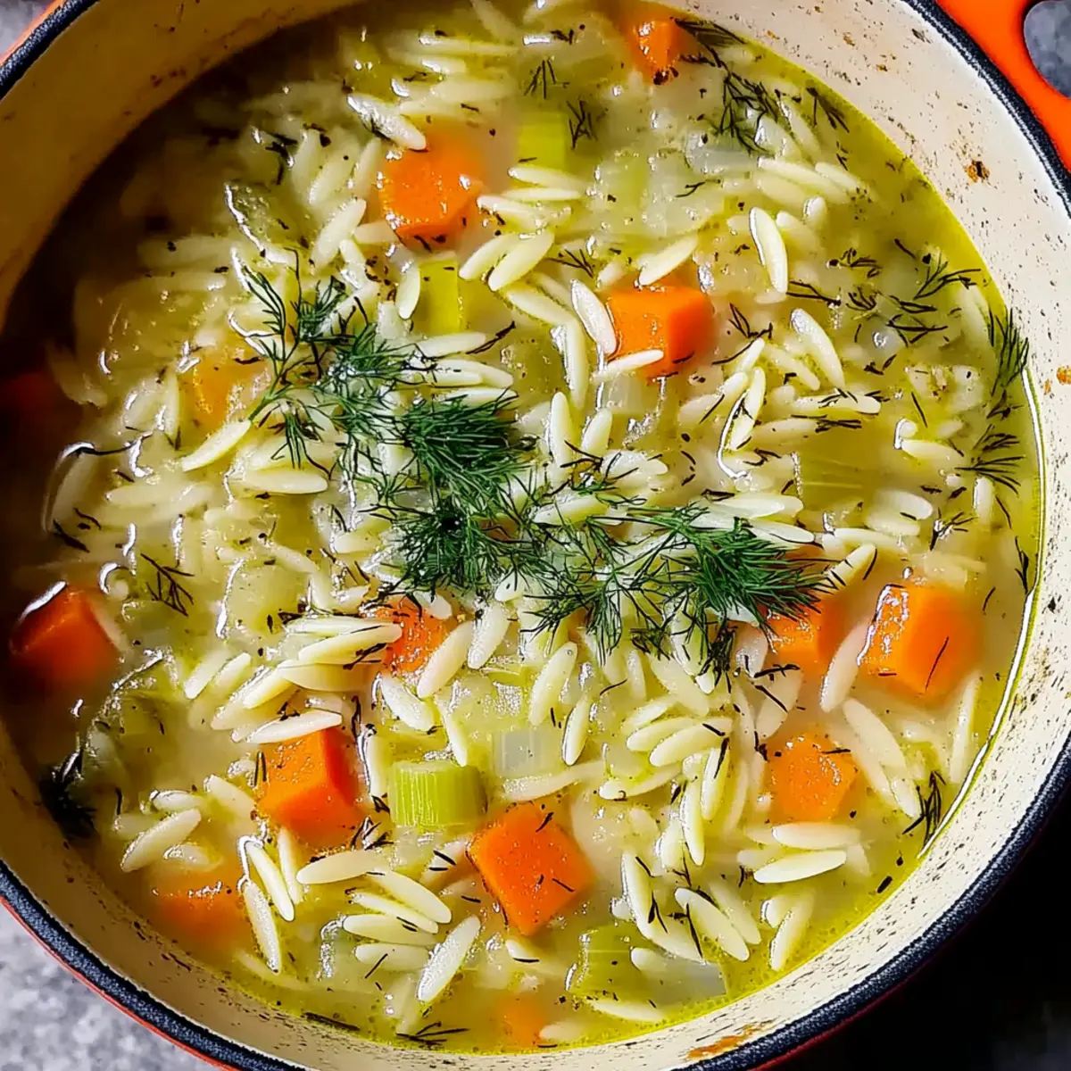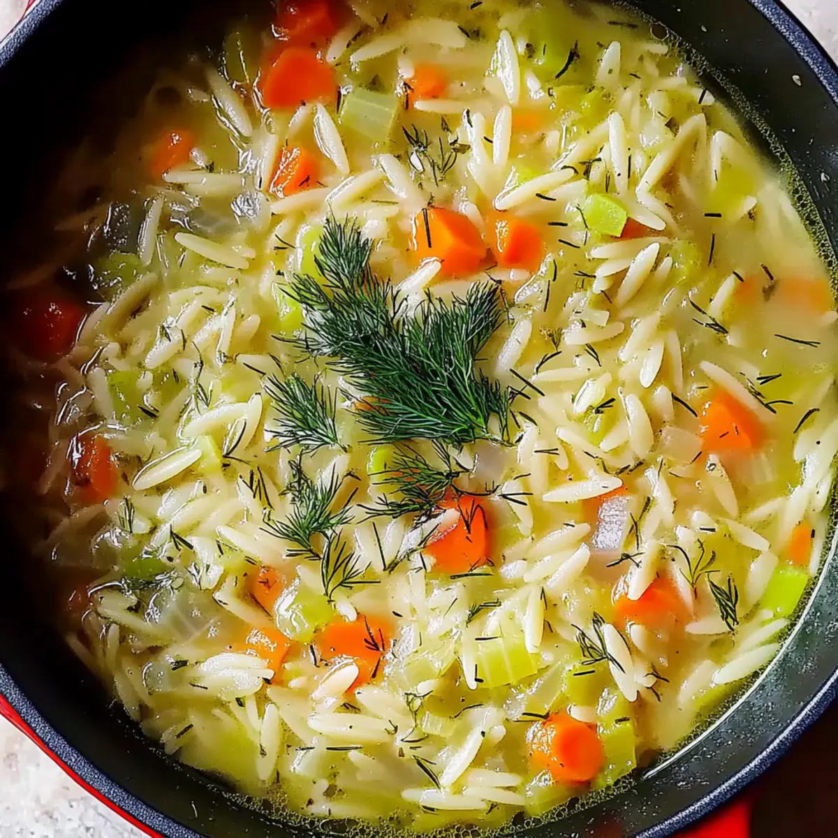 While rummaging through my pantry the other day, I stumbled upon a bag of orzo and a couple of leeks that had just been waiting for their moment to shine. What a delightful surprise! That’s how this Easy Orzo, Leek, and Dill Soup was born—a comforting, quick meal that’s perfect for those busy weeknights when you crave something wholesome yet simple. Packed with vibrant flavors and a satisfying texture, this vegetarian soup comes together in just 35 minutes, making it both a time-saver and a pleasure to share with family and friends. Plus, it’s easily adaptable for gluten-free diets, ensuring everyone can enjoy a delicious bowl. Ready to discover how to transform a few humble ingredients into a cozy masterpiece? Let’s dive in! Why is This Soup So Irresistible? Comforting flavors combine beautifully in this dish, offering a warm hug in every spoonful. Quick and Easy to prepare, you’ll have a delicious meal ready in just 35 minutes—ideal for busy evenings! Versatile by nature, feel free to swap ingredients to suit your taste or dietary needs, like opting for gluten-free orzo. Unique Texture from soft veggies and tender orzo creates a delightful mouthfeel that everyone will love. Plus, it’s an excellent pairing with crusty bread or a fresh Greek salad for a complete meal. Dive into this comforting experience and impress your family with minimal effort! Orzo, Leek and Dill Soup Ingredients • Explore the essential ingredients that make this Orzo, Leek and Dill Soup a comforting favorite! For the Soup Base Olive Oil – Adds richness and aids in sautéing vegetables; substitute with avocado oil for a neutral flavor. Red Onion – Provides sweetness and depth; yellow onion can be used as a substitute for a sharper flavor. Garlic Cloves – Infuses the soup with a pungent aroma; fresh garlic is preferred, but garlic powder can work in a pinch. Carrot (diced) – Offers natural sweetness and texture; any root vegetable, like parsnips, can create a different taste. Leek (diced, including green parts) – Delivers a mild onion flavor; essential for the dish, though green onions can substitute. Dried Thyme – Enhances the herbal flavor; can be replaced with Italian seasoning for a delightful alternative. For the Main Ingredients Orzo Pasta (4.25 cups or 120 g) – The main carbohydrate that thickens the soup; gluten-free orzo is perfect for those sensitive to gluten. Vegetable Broth (6 1/3 cups) – Forms the soup base; homemade broth adds much-welcomed depth. Fresh Dill Sprigs (3 to 4) – Provides freshness and bright flavor; replace with parsley if needed, understanding it alters the taste. For Seasoning & Acidity Salt and Pepper – Essential seasoning to elevate flavors; adjust according to taste. Lemon Juice (from 1/2 lemon) – Brightens and enhances the flavors; lime can be an alternative for a refreshing citrus twist. Extra Virgin Olive Oil (for drizzling) – Used for garnish, adding richness; can be omitted but certainly enhances overall flavor. Step‑by‑Step Instructions for Orzo, Leek and Dill Soup Step 1: Sauté Vegetables Begin by finely chopping the red onion and garlic, then dicing the carrot and leek. Heat 2 tablespoons of olive oil in a large pot over medium heat. Add the chopped onions, garlic, carrots, and leeks, seasoning with salt and pepper. Sauté for about 6 minutes, stirring occasionally, until the vegetables are soft and fragrant. Step 2: Prepare Broth While the vegetables are cooking, bring 6 1/3 cups of water to a boil in a separate pot. Once boiling, dissolve a vegetable broth cube in the water to create a rich, flavorful broth. Once fully dissolved, remove from heat and set aside, allowing the broth to remain hot for when you add it to the soup. Step 3: Cook Orzo After the vegetables are sautéed to perfection, add 120 grams of orzo to the pot with the sautéed veggies. Stir well to coat the orzo in the flavored oil. Pour the hot vegetable broth into the pot, adding a sprinkle of dried thyme. Bring the mixture to a gentle boil, then reduce the heat to a simmer. Cook for about 12 minutes, stirring occasionally, until the orzo is tender but still has a slight bite. Step 4: Finish Soup Once the orzo is cooked, taste the soup and adjust the seasoning with additional salt and pepper if necessary. Remove the pot from heat and stir in the lemon juice along with the fresh dill sprigs. This final step will enhance the flavors and add a bright freshness to your comforting orzo, leek, and dill soup. Step 5: Serve Ladle the hot soup into bowls, taking a moment to appreciate its vibrant colors. Drizzle a bit of extra virgin olive oil over each serving for added richness. You may also garnish with extra dill for a beautiful finish. Enjoy your delicious orzo, leek, and dill soup alongside some crusty bread for a complete and satisfying meal. Make Ahead Options These Easy Orzo, Leek, and Dill Soup preparations are perfect for busy home cooks looking to save time during the week! You can chop your vegetables (onion, garlic, carrot, and leek) and store them in an airtight container in the refrigerator for up to 3 days. Additionally, you can cook the orzo and let it cool before adding it to the soup—just be sure to refrigerate it to maintain quality. When you’re ready to enjoy your soup, simply sauté the prepped veggies, add the vegetable broth, and mix in the cooked orzo for a cozy meal that feels freshly made. This method allows you to have a comforting, homemade soup at a moment’s notice! Variations & Substitutions for Orzo, Leek and Dill Soup Feel free to get creative with your Orzo, Leek and Dill Soup and customize it to your taste preferences or dietary needs! Dairy-Free: Substitute olive oil with vegan butter for richness without dairy. Creamy, yet completely plant-based! Protein-Packed: Add cooked and shredded chicken or chickpeas for extra protein. It turns a lovely soup into a filling meal! Herb Swap: Experiment with fresh basil or cilantro instead 