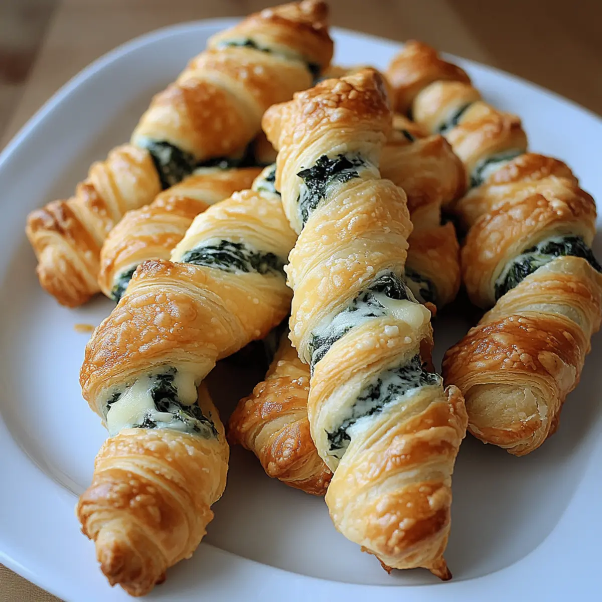 As the oven hums to life, a familiar scent wafts through the kitchen, transporting me back to cozy gatherings filled with laughter andmouthwatering snacks. These Irresistible Parmesan and Spinach Cheese Twists are my secret weapon for impressing guests while keeping things easy and delicious. With golden, flaky puff pastry encasing a creamy blend of cheeses and fresh spinach, they’re not just a feast for the eyes; they’re a delight to the palate. One of the best parts? They come together in no time, making this recipe perfect for those spontaneous get-togethers or whenever you crave a scrumptious snack. Plus, they’re entirely customizable—whether you want to swap in different cheeses or add your favorite herbs, that creativity is all yours! Ready to bring some gourmet flair into your kitchen? Let’s dive in! Why Are These Twists So Irresistible? Quick and Easy: The beauty of these Parmesan and Spinach Cheese Twists lies in their simplicity. They come together in under 30 minutes, making them an ideal choice for last-minute guests or snack cravings. Versatile Ingredients: With customizable fillings like Baked Mac Cheese or various cheeses, you can tailor these twists to match personal preferences or dietary needs. The possibilities are endless! Crowd Pleaser: Their golden, flaky layers and cheesy goodness are sure to impress everyone at the table. Pair them with marinara or garlic butter, and you’ve got a hit appetizer on your hands! Make-Ahead Convenience: Assembled twists can be refrigerated before baking, allowing you to prep ahead of time—perfect for busy days when you still want a delicious home-cooked treat. Get ready to serve up a snack that’s sure to delight both family and friends! Parmesan and Spinach Cheese Twists Ingredients For the Pastry Puff Pastry – Essential for that perfect flaky texture; feel free to swap it with crescent roll dough or phyllo layers if needed. For the Cheese Filling Parmesan Cheese – Adds a sharp, salty flavor to your twists; substitute with Pecorino Romano or Asiago for a different twist. Mozzarella Cheese – Offers a creamy, melty texture; cheddar or provolone can be used for a fun variation! For the Spinach Fresh Spinach – Provides freshness and vibrant color; consider using kale or arugula as alternatives. For Seasoning Garlic Powder – Enhances the overall flavor; fresh minced garlic can bring a stronger kick if preferred. Salt & Pepper – Essential for seasoning to taste; don’t be shy to adjust according to your preference! Now that you’re equipped with the ingredients for these delightful Parmesan and Spinach Cheese Twists, let’s roll up our sleeves and get cooking! Step‑by‑Step Instructions for Parmesan and Spinach Cheese Twists Step 1: Prep the Oven Start by preheating your oven to 400°F (200°C). This ensures the perfect baking temperature for achieving golden, flaky layers on your Parmesan and Spinach Cheese Twists. While the oven heats, gather your baking sheet and line it with parchment paper for easy cleanup and to prevent sticking. Step 2: Roll Out Puff Pastry Once your oven is preheated, take your thawed puff pastry and place it on a floured surface. Using a rolling pin, gently roll it out into a rectangle about 1/8 inch thick. The goal is to ensure it’s pliable and easy to work with—this will result in wonderfully flaky twists once baked! Step 3: Mix Filling In a large mixing bowl, combine freshly wilted spinach with grated Parmesan cheese, shredded mozzarella, garlic powder, salt, and pepper to taste. Stir until the ingredients are thoroughly mixed, creating a rich filling that will complement the puff pastry beautifully. The vibrant green spinach should be evenly distributed throughout for a colorful bite. Step 4: Assemble Twists Using a sharp knife or pizza cutter, slice the rolled-out puff pastry into strips, about 1 inch wide. Take a generous spoonful of the cheesy filling and place it at one end of each strip. Gently twist the pastry over the filling, creating a spiral shape, and pinching the ends to secure them. This step is key for ensuring each Parmesan and Spinach Cheese Twist holds its delightful filling. Step 5: Bake Arrange your assembled twists on the prepared baking sheet, leaving space between each one to allow for puffing. For an extra touch of golden gloss, you may brush each twist lightly with an egg wash made from whisked egg and water. Bake in the preheated oven for about 18 minutes, or until they are puffed and golden brown, marveling at the delicious aroma filling your kitchen. Step 6: Cool & Serve Once baked, remove the Parmesan and Spinach Cheese Twists from the oven and let them cool on the baking sheet for a few minutes. This brief cooling period helps them firm up and makes them easier to handle. Serve warm alongside your favorite dipping sauces, such as marinara or garlic butter—perfect for any gathering or a cozy night in! Expert Tips for Parmesan and Spinach Cheese Twists Squeeze Spinach Dry: Make sure to properly drain and squeeze the spinach to avoid sogginess in your twists. Extra moisture can lead to a less-than-ideal texture. Uniform Twists: Ensure you twist the pastry tightly to maintain the shape while baking. This helps keep the delicious filling inside for a cheesy surprise with every bite. Immediate Baking: For the best results with your Parmesan and Spinach Cheese Twists, bake them immediately after assembling. If holding for later, refrigerate without baking for up to a few hours. Creative Variations: Don’t hesitate to experiment with different cheeses or herbs to customize your twists. Consider adding feta or goat cheese for a delightful twist on the traditional recipe. Storage Smartly: If you have leftovers, store them in an airtight container for up to 2 days. Reheat in the oven for that fresh, crispy texture, making them just as good as when you first baked them! Parmesan and Spinach Cheese Twists Customization Feel free to unleash your creativity 