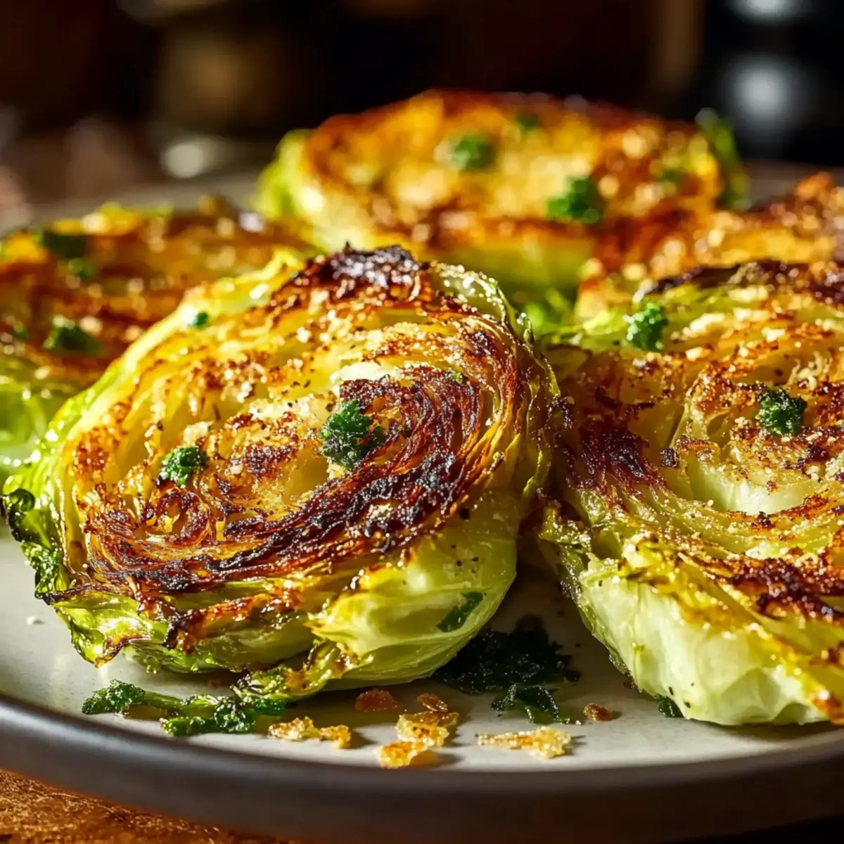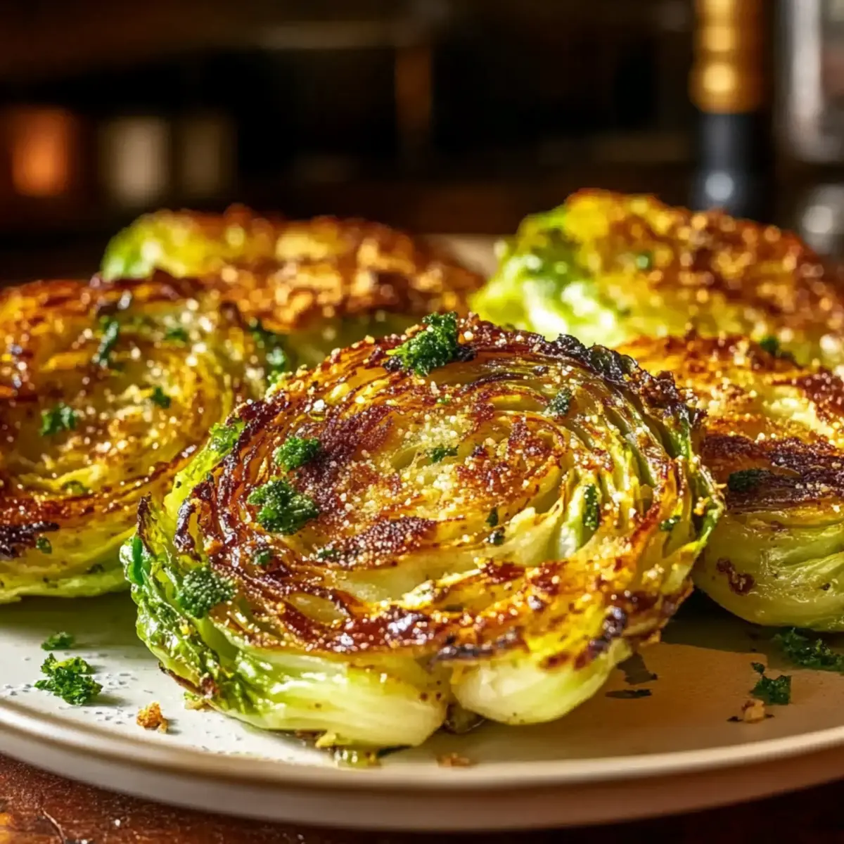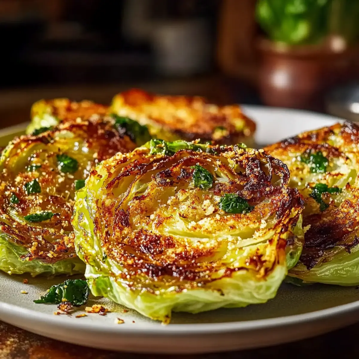 The first time I tasted roasted cabbage was a revelation—who knew this simple vegetable could be such a culinary powerhouse? Enter my Crispy Parmesan Cabbage Steaks, an effortless way to elevate an often-overlooked ingredient into a thriving centerpiece on your dinner table. With their satisfying crunch and rich, nutty flavor from the Parmesan cheese, these savory steaks are not only incredibly healthy but also surprisingly fun to make. Whether you’re looking to impress guests or simply jazz up your weeknight meals, they make it easy to introduce more veggies into your diet. Are you ready to transform cabbage into something extraordinary? Let’s get cooking! Why are these Cabbage Steaks a Must-Try? Bold, Flavor-Packed Dish: Experience the delightful crunch and robust flavors as the cabbage turns into a gourmet dish. Quick Preparation: This recipe takes under 30 minutes, making it perfect for busy weeknights or last-minute gatherings. Versatile Serving Options: Serve them as a side with grilled meats or layer them in salads for an exciting twist, much like my Garlic Parmesan Cheeseburger recipe. Family-Friendly Appeal: Even the pickiest eaters will love the cheesy topping, making it a hit at any table! Nutrient-Rich and Healthy: Packed with vitamins while being low in calories, these steaks are a guilt-free indulgence. Turn ordinary cabbage into a stunning centerpiece that will leave your guests asking for seconds! Parmesan Cabbage Steaks Ingredients For the Cabbage Steaks Cabbage – A medium head (2–3 pounds) delivers bulk and nutrients to this delicious dish. Extra Virgin Olive Oil – Drizzle to add richness; alternatively, try avocado oil for a different flavor. Freshly Grated Parmesan Cheese – A must for a cheesy topping that enhances savoriness; swap with cheddar for a unique twist. For Seasoning Garlic Powder – Provides a rich depth of flavor; fresh minced garlic can make it even more robust. Salt and Pepper – Essential for seasoning; use sea salt for an extra touch of flavor. Transform your cabbage into stunning Parmesan Cabbage Steaks that are sure to impress! Step‑by‑Step Instructions for Parmesan Cabbage Steaks Step 1: Preheat the Oven Begin by preheating your oven to 400°F (200°C). This temperature is perfect for roasting the cabbage and achieving that crispy exterior. While the oven warms up, gather a baking sheet and line it with parchment paper for easy cleanup and to prevent sticking. Step 2: Prepare the Cabbage Carefully remove any damaged or wilted leaves from the head of cabbage. Slice it into ¾-inch thick ‘steaks,’ ensuring each piece is uniform for even cooking. You should get about four to six steaks from a medium-sized cabbage. This step transforms the cabbage into a hearty, interesting dish that will be the star of your table. Step 3: Season the Steaks Place the cabbage steaks on the prepared baking sheet, ensuring they have plenty of space between them for optimal roasting. Drizzle a generous amount of extra virgin olive oil over the steaks, then sprinkle with salt and pepper. Use your hands to rub the oil and seasoning into the cabbage for a thorough coating that enhances flavor and crispness. Step 4: Add Parmesan and Garlic In a small bowl, mix the freshly grated Parmesan cheese with garlic powder until well combined. Generously sprinkle this mixture over the seasoned cabbage steaks, making sure each steak is covered with a delicious cheesy layer. This step is crucial as the cheese will melt and form a crispy crust while roasting. Step 5: Roast Cabbage Steaks Slide the baking sheet into the preheated oven and roast the cabbage steaks for 25-30 minutes. About halfway through, carefully flip each steak to ensure even browning and crispiness. You will know they’re done when the Parmesan is golden and the edges of the cabbage are crispy. Step 6: Serve and Enjoy Once roasted to perfection, remove the Parmesan Cabbage Steaks from the oven and let them cool for a couple of minutes. Serve them warm as a delightful side dish or as a unique vegetarian main. Let the rich, nutty aroma and crispy texture impress your family and friends! Parmesan Cabbage Steaks Variations & Substitutions Feel free to get creative and customize your Parmesan Cabbage Steaks with these delightful variations! Spicy Kick: Add smoked paprika or chili flakes for a zesty heat that ignites your taste buds. This little touch can elevate your dish from ordinary to extraordinary! Bacon Lover’s Twist: For non-vegetarians, top your steaks with crispy crumbled bacon for a savory crunch that complements the cheese beautifully. It’s a sure crowd-pleaser! Creamy Drizzle: Serve with a balsamic glaze, ranch dressing, or homemade hummus for an extra layer of flavor and contrast. Imagine the creamy contrast balancing the crunch of the cabbage! Nutty Flavor Boost: Add a sprinkle of toasted pine nuts or walnuts after roasting for a delightful crunch and a dose of nuttiness. They’ll add texture and depth to your meal. Herb Infusion: Mix fresh herbs like rosemary or thyme into your seasoning for a fragrant twist that enhances aroma and flavor. Fresh herbs will make your kitchen smell heavenly! Cheese Variety: Swap out Parmesan for aged gouda or feta for different flavor profiles. Gouda will add a rich creaminess, while feta will give a tangy taste that brightens the dish. Asian-Inspired: Brush with soy sauce and sprinkle with sesame seeds before roasting for an Asian twist that will surprise and delight your palate. It’s fusion at its best! Layered Dish: Slice and layer the cabbage on a bed of greens for a colorful, nutrient-packed salad, similar to how I would serve my Air Fryer Parmesan Chicken Skewers for a heartier meal. No matter how you choose to customize them, these Parmesan Cabbage Steaks are destined to impress! Storage Tips for Parmesan Cabbage Steaks Fridge: Store leftover Parmesan Cabbage Steaks in an airtight container for up to 3 days to maintain freshness and flavor. 