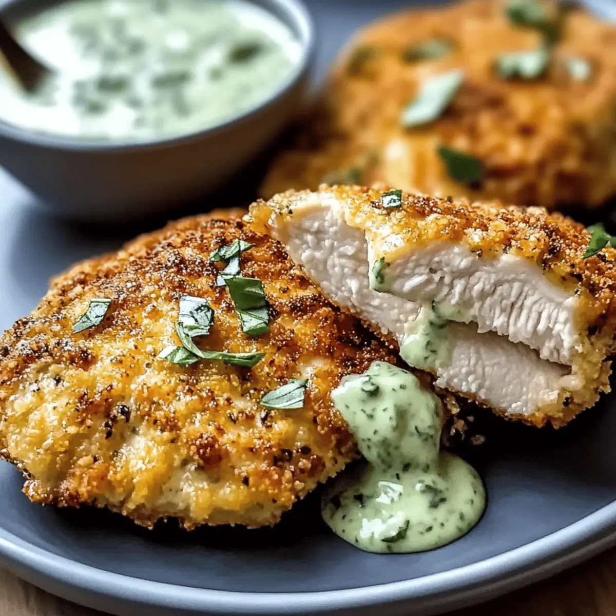 As I set foot in my kitchen, the tantalizing aroma of sizzling chicken instantly transports me to an Italian trattoria tucked away on a cobbled street. Today, I’m excited to share my recipe for Crispy Parmesan Crusted Chicken with Creamy Basil Aioli—a dish that beautifully combines crispy textures with fresh, vibrant flavors. Not only is this recipe a true crowd-pleaser that will impress family and friends, but it’s also surprisingly simple to prepare, making it a perfect option for both elegant dinners and cozy weeknight meals. Plus, with gluten-free alternatives for the breadcrumbs, we can cater to everyone at the table. Are you ready to elevate your dinner game with this mouthwatering delight? What Makes This Chicken Recipe Special? Crispy Texture: The Parmesan crust delivers an irresistible crunch that complements the juicy chicken beautifully. Fresh Flavors: The creamy basil aioli brings a burst of herbaceous goodness, elevating this dish to new heights. Gluten-Free Options: Substitute the panko with gluten-free breadcrumbs, ensuring everyone can enjoy this scrumptious meal. Easy Meal Prep: This recipe is perfect for prepping ahead of time, allowing for a quick, hassle-free dinner option during the week. Versatile Pairings: Serve it alongside roasted vegetables or a fresh salad for a well-rounded, delightful dining experience. Discover more serving suggestions with our Cheesy Chicken Enchiladas or Caribbean Chicken Rice to mix it up! Parmesan Crusted Chicken Ingredients For the Chicken • Chicken Breasts – Fresh, boneless, skinless chicken ensures a tender, juicy dish; avoid frozen for the best texture. • Parmesan Cheese – Offers a sharp, nutty flavor that creates a crunchy crust for the Parmesan Crusted Chicken. • Panko Breadcrumbs – These light breadcrumbs provide an ideal crunchy texture; gluten-free options are available for those needing them. For the Aioli • Mayonnaise – The base for the creamy aioli, contributing rich creaminess; can be swapped with cashew cream for a dairy-free option. • Fresh Basil – Essential for that aromatic freshness in the aioli; feel free to substitute with cilantro or parsley for a different twist. • Garlic – Adds depth and enhances the overall flavor profile of both the chicken and the aioli. • Lemon Juice – Brightens the aioli and balances its richness, making every bite pop. Seasonings • Salt & Pepper – Basic seasonings that elevate the overall flavor of the dish, ensuring it tastes just right. Step‑by‑Step Instructions for Parmesan Crusted Chicken with Basil Aioli Step 1: Preheat and Prepare Begin by preheating your oven to 400°F (200°C) and lining a baking sheet with parchment paper for easy cleanup. This will ensure your Crispy Parmesan Crusted Chicken has a smooth baking surface. While the oven is heating, gather your ingredients and equipment, such as a shallow dish for the breadcrumb mixture, a skillet for frying, and a mixing bowl for the aioli. Step 2: Create the Coating In a shallow dish, combine freshly grated Parmesan cheese and panko breadcrumbs. Season the mixture lightly with salt, pepper, and any optional spices you prefer for added zest. Stir the ingredients together until evenly mixed. This crunchy blend will form the beautiful crust on your Parmesan Crusted Chicken, so make sure it’s well combined. Step 3: Dredge the Chicken Take your boneless, skinless chicken breasts and dip each piece into the breadcrumb mixture. Firmly press the mixture onto the chicken to ensure it adheres well, creating that irresistible crunch during cooking. Place the coated chicken breasts aside on a plate as you finish preparing the rest of the dish for the oven. Step 4: Sear the Chicken In a large skillet, heat a tablespoon of olive oil over medium heat. Once hot, carefully place the coated chicken breasts in the skillet and pan-fry for about 2-3 minutes on each side until they turn golden brown. This step not only adds flavor but also enhances the crispy texture of the Parmesan Crusted Chicken before baking. Step 5: Bake to Perfection Transfer the pan-fried chicken to the prepared baking sheet and place it in the preheated oven. Bake for 15-20 minutes, or until the chicken reaches an internal temperature of 165°F (75°C). Keep an eye on the chicken as it bakes; the crust should be golden and crispy, and the meat should be juicy and tender. Step 6: Prepare the Basil Aioli While the chicken is baking, prepare the creamy basil aioli. In a mixing bowl, combine mayonnaise, finely chopped fresh basil, minced garlic, and a squeeze of lemon juice. Stir the mixture until smooth and creamy, adjusting the seasoning with salt and pepper as needed. This vibrant aioli will complement your Parmesan Crusted Chicken beautifully. Step 7: Serve with Flair Once the chicken is cooked through and beautifully golden, remove it from the oven. Serve your Crispy Parmesan Crusted Chicken hot, drizzling or pairing it with the creamy basil aioli. This dish is perfect for impressing your family and friends, and the added flavors of the aioli elevate it to a delightful dining experience. Parmesan Crusted Chicken with Variations Feel free to let your creativity shine as you customize this delightful dish to your taste! Dairy-Free: Swap mayonnaise in the aioli for cashew cream to make a delicious dairy-free version. Gluten-Free: Use gluten-free breadcrumbs in place of traditional panko for all your gluten-sensitive guests. Herb Swaps: Experiment with different herbs in the aioli, like cilantro or dill, to discover a fresh alternative. Spice It Up: Add a pinch of cayenne pepper to the breadcrumb mixture for a delightful kick of heat that elevates the flavor. Juicier Alternative: Substitute chicken breasts with thighs for a more tender and juicy bite that everyone will love. Tangy Twist: Replace mayonnaise in the aioli with Greek yogurt for added tang and creaminess, perfect for a lighter touch. Flavorful Crunch: Mix in some grated lemon ze
