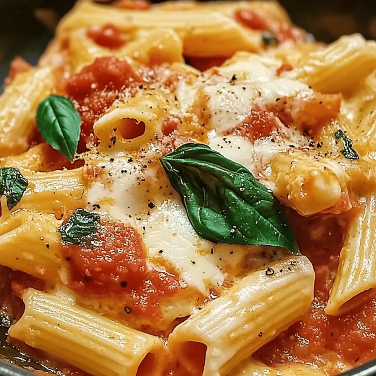 As I took my first bite of Pasta alla Sorrentina, I was instantly transported to a sun-drenched terrace overlooking the cliffs of Southern Italy, where the aroma of ripe tomatoes and melting mozzarella hangs in the air. This beloved dish captures the essence of comfort food with its hearty layers of flavor and gooey texture, making it a beloved choice for both cozy family dinners and gatherings with friends. What I adore about Pasta alla Sorrentina is not just how comforting it is, but also how effortlessly it comes together in the kitchen—perfect for those evenings when you want something satisfying without spending hours cooking. Plus, it’s vegetarian-friendly, giving everyone at the table something to enjoy. Ready to whip up a dish that feels like a warm hug? Let’s dive into this delicious recipe together! Why is Pasta alla Sorrentina irresistible? Simplicity: This dish comes together with minimal ingredients and straightforward steps, perfect for busy weeknights. Hearty Flavor: The combination of rich, tangy tomatoes and gooey mozzarella creates an unforgettable taste that warms your soul. Comfort in a Bowl: It’s not just a meal; it’s a cozy experience reminiscent of family gatherings and friendly conversations. Versatile: Customize the dish by adding vegetables or proteins for a personal touch! You might also enjoy making a side of Garlic Parmesan Pasta to pair perfectly with it. Quick and Easy: In under 30 minutes, you can serve up a delicious dinner that impresses without the hassle. Crowd-Pleaser: Everyone loves a cheesy pasta dish! Impress family and friends alike with this delightful and satisfying meal. Pasta alla Sorrentina Ingredients For the Pasta • Pasta (penne or rigatoni) – Acts as the hearty base; opt for gluten-free pasta if you’re looking for a gluten-free option. For the Sauce • Canned whole tomatoes or fresh tomatoes (800g) – Brings a juicy, tangy essence; pureed tomatoes can be used for a smoother sauce. • Onion (1 medium, finely chopped) – Adds natural sweetness when sautéed; yellow or white varieties work best. • Garlic (2 cloves, minced) – Introduces depth of flavor; you can increase for a more pronounced garlic zing or use garlic powder as an alternative. • Olive oil (3 tablespoons) – Essential for sautéing, adding richness; vegetable oil can be used if preferred. For the Cheesy Layer • Mozzarella cheese (250g) – Provides creaminess and melt-in-your-mouth texture; fresh mozzarella yields the best results. • Grated Parmesan cheese (50g) – Enhances flavor with a salty depth; consider substituting with Pecorino Romano for a sharper twist. For Garnish • Fresh basil leaves – Adds a fragrant finish; dried basil can substitute in emergencies, though the flavor will vary. • Salt and pepper – Essential seasonings to elevate flavor; adjust according to personal preference. Step‑by‑Step Instructions for Pasta alla Sorrentina Step 1: Cook the Pasta Begin by bringing a large pot of salted water to a rolling boil. Add your pasta of choice, such as penne or rigatoni, and cook for 8–10 minutes until al dente. Stir occasionally to prevent sticking, then drain the pasta in a colander and set aside while you prepare the sauce. Step 2: Sauté Onions In a spacious skillet, heat 3 tablespoons of olive oil over medium heat. Once hot, add the finely chopped onion and sauté for about 5 minutes until it becomes translucent and fragrant. This step builds a flavor foundation for your Pasta alla Sorrentina, so ensure the onions are softened but not browned. Step 3: Add Garlic Introduce the minced garlic to the skillet, stirring well to combine. Sauté for an additional minute until the garlic becomes aromatic, taking care not to burn it. The combination of onions and garlic creates a beautifully fragrant base for the sauce, enhancing the overall flavor of the Pasta alla Sorrentina. Step 4: Prepare Sauce Pour in the canned whole tomatoes or fresh tomatoes, crushing them gently to release their juices. Season with salt and pepper, then bring the mixture to a simmer. Let the sauce bubble over low heat for 15-20 minutes, stirring occasionally until it thickens and reduces slightly, allowing the flavors to meld beautifully. Step 5: Combine Pasta and Sauce Once the sauce has thickened, add your drained pasta directly into the skillet. Gently toss everything together until the pasta is well coated with the luscious tomato sauce. This step ensures that every bite of your Pasta alla Sorrentina is bursting with flavor, so take your time and combine thoroughly. Step 6: Incorporate Cheese Dice the fresh mozzarella cheese and stir it into the pasta and sauce mixture. Allow the heat from the pasta to slightly melt the cheese as you stir, creating that irresistible gooey texture. This cheesy incorporation is what makes your Pasta alla Sorrentina so comforting and delicious. Step 7: Garnish Tear fresh basil leaves and sprinkle them over the pasta as a fragrant garnish. Give everything a final gentle toss and adjust the seasoning with more salt and pepper to taste. This last touch elevates your dish, adding freshness and vibrant color to your Pasta alla Sorrentina. Step 8: Optional Baking If you’d like to take your Pasta alla Sorrentina to the next level, transfer it to a baking dish. Sprinkle grated Parmesan cheese on top, then bake at 180°C (350°F) for 15-20 minutes until the cheese is melted, bubbly, and golden brown. This step adds a delightful crust and enhances the overall texture. Step 9: Rest Allow your baked Pasta alla Sorrentina to sit for about 5 minutes before serving. This resting time lets the flavors further develop and ensures that your dish holds together nicely when you serve it. Step 10: Serve Dish out generous portions of your comforting Pasta alla Sorrentina, garnishing with extra fresh basil and a drizzle of olive oil for a lovely finish. Share this heartwarming meal with loved ones and savor every delightful bite! Make Ahea